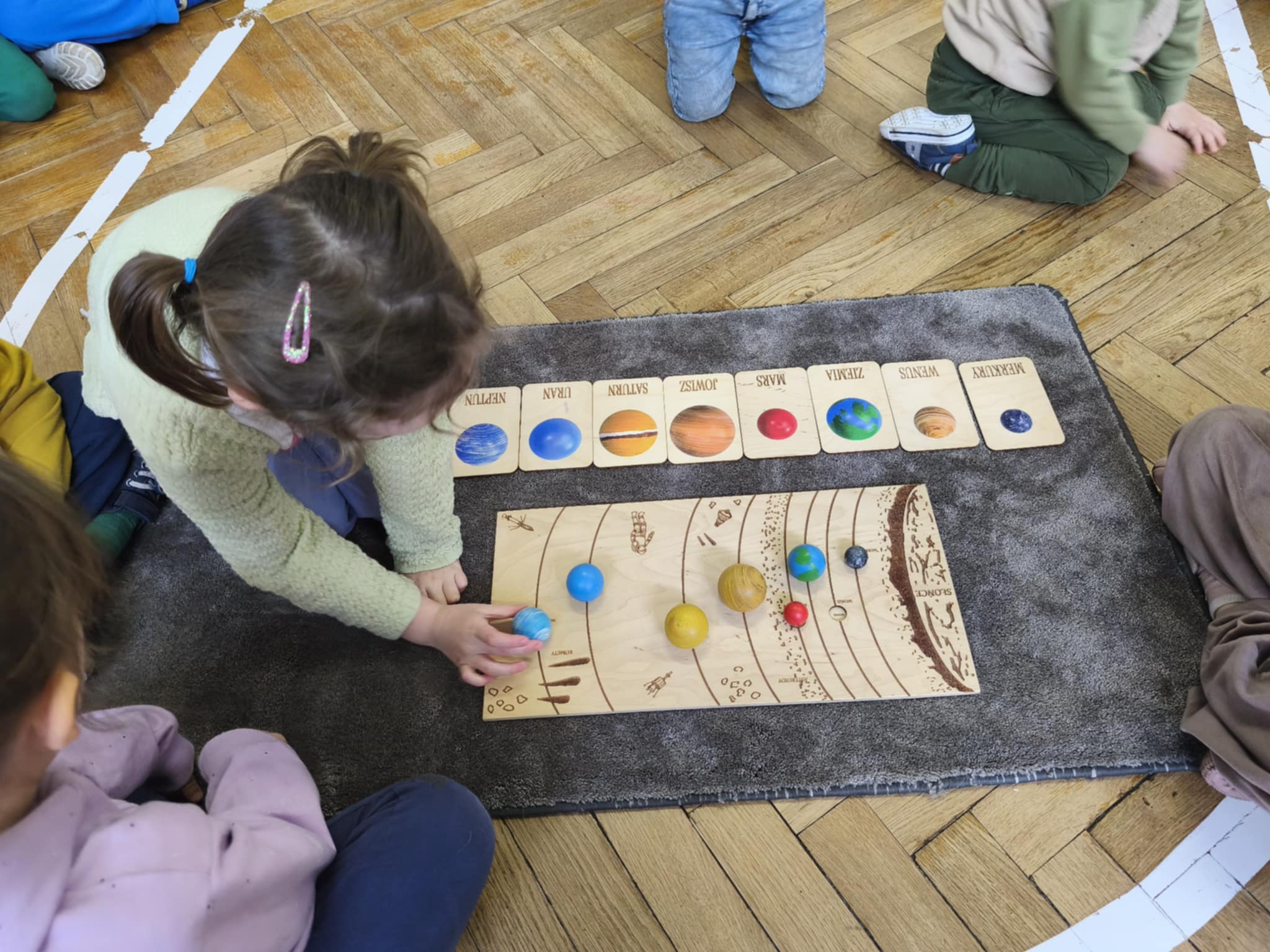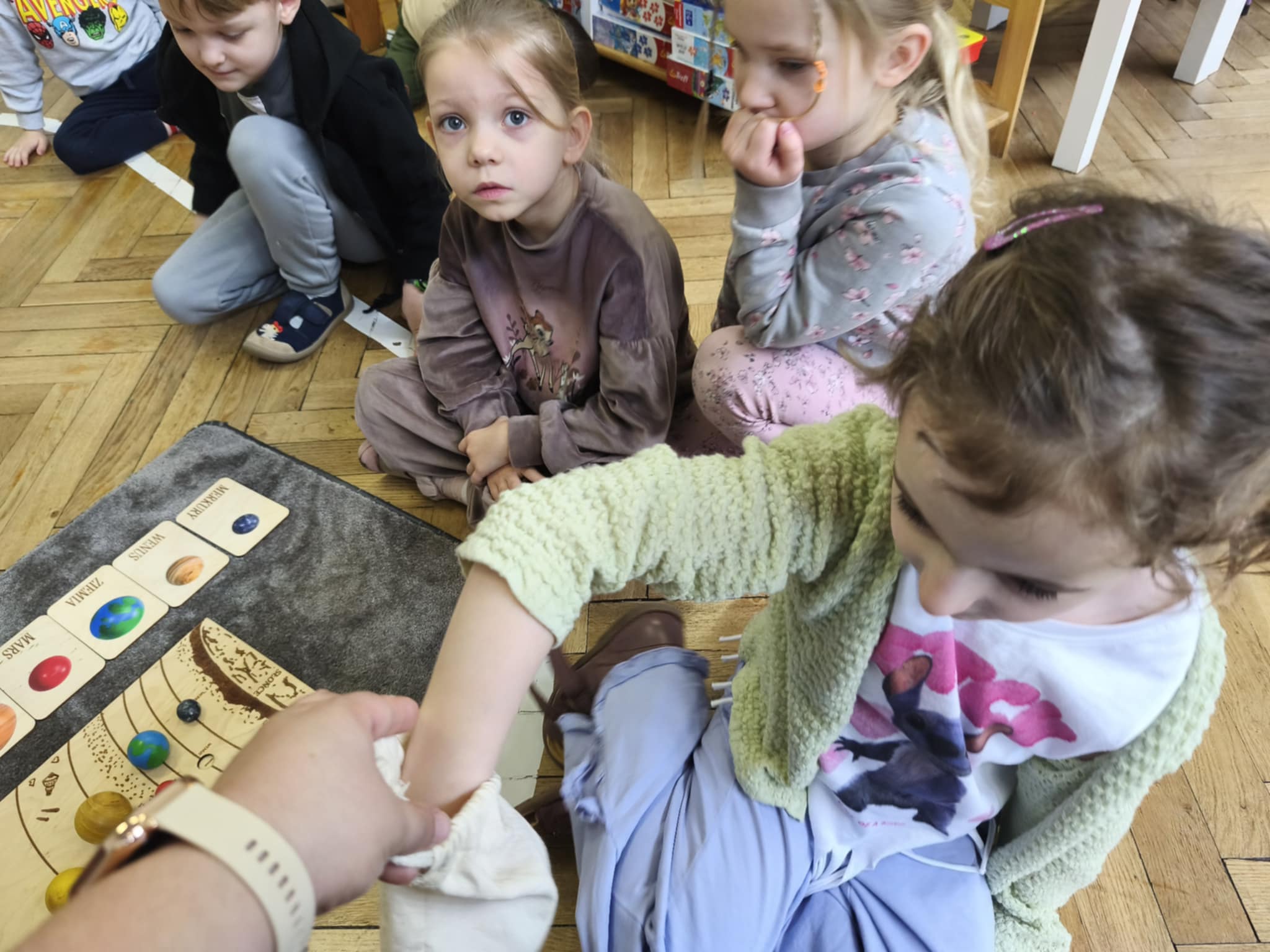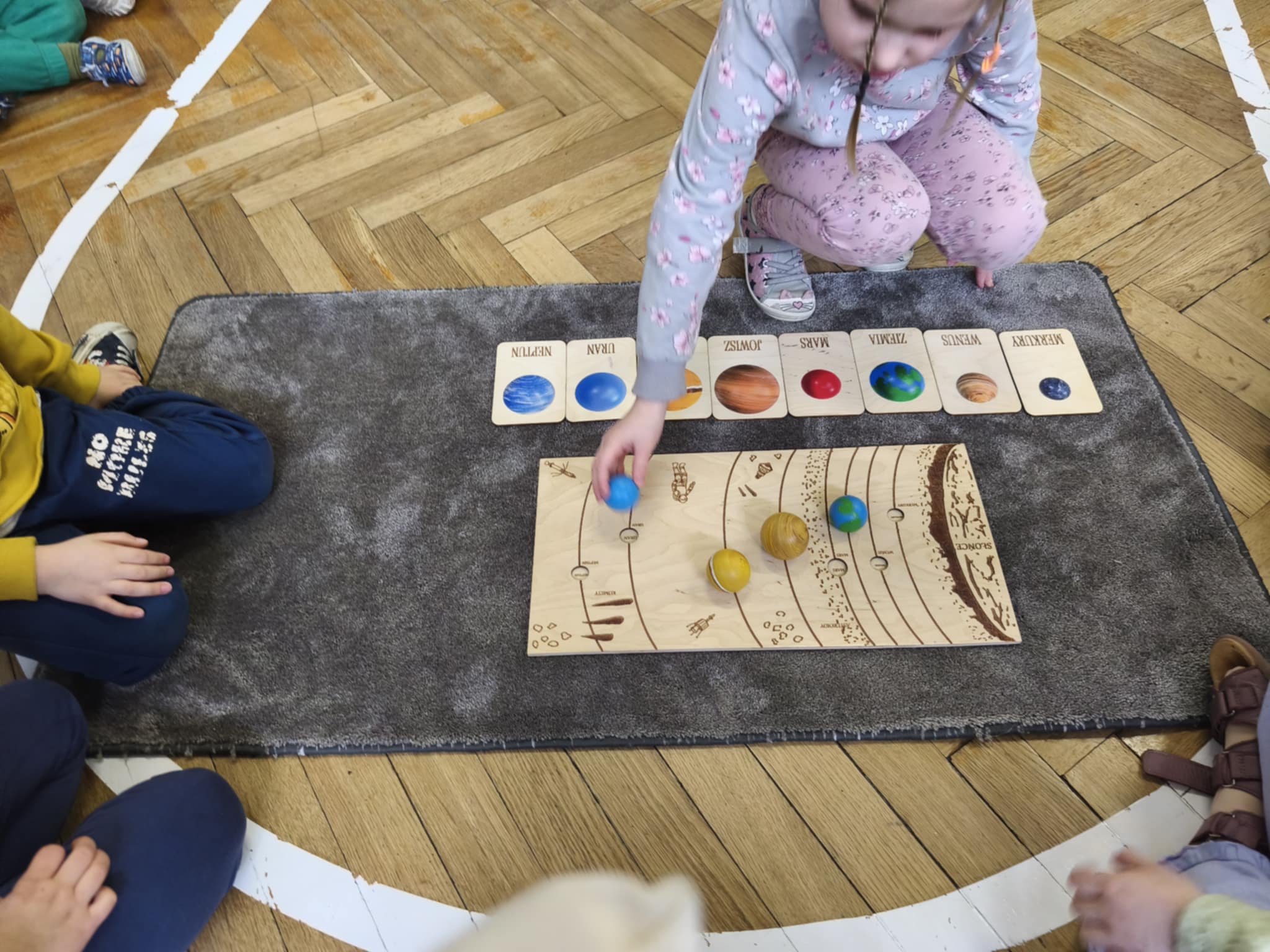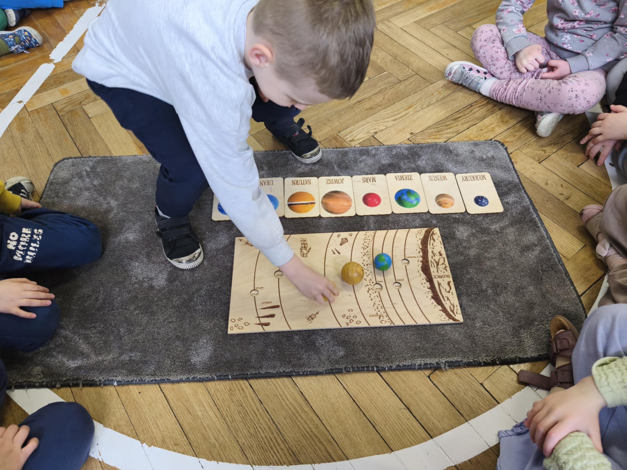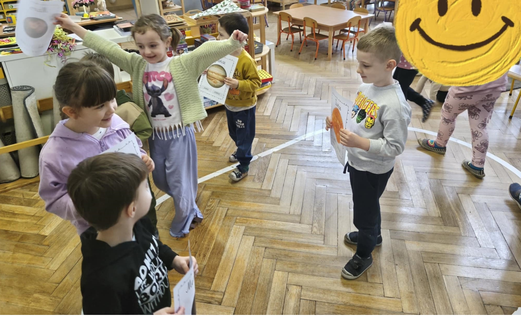 W tym tygodniu nasze przedszkolaki wyruszyły w wielką podróż do gwiazd. Dzieci poznały bądź utrwalały imiona wszystkich planet i dowiedziały się, że nasza Ziemia zawsze krąży wokół gorącego Słońca.