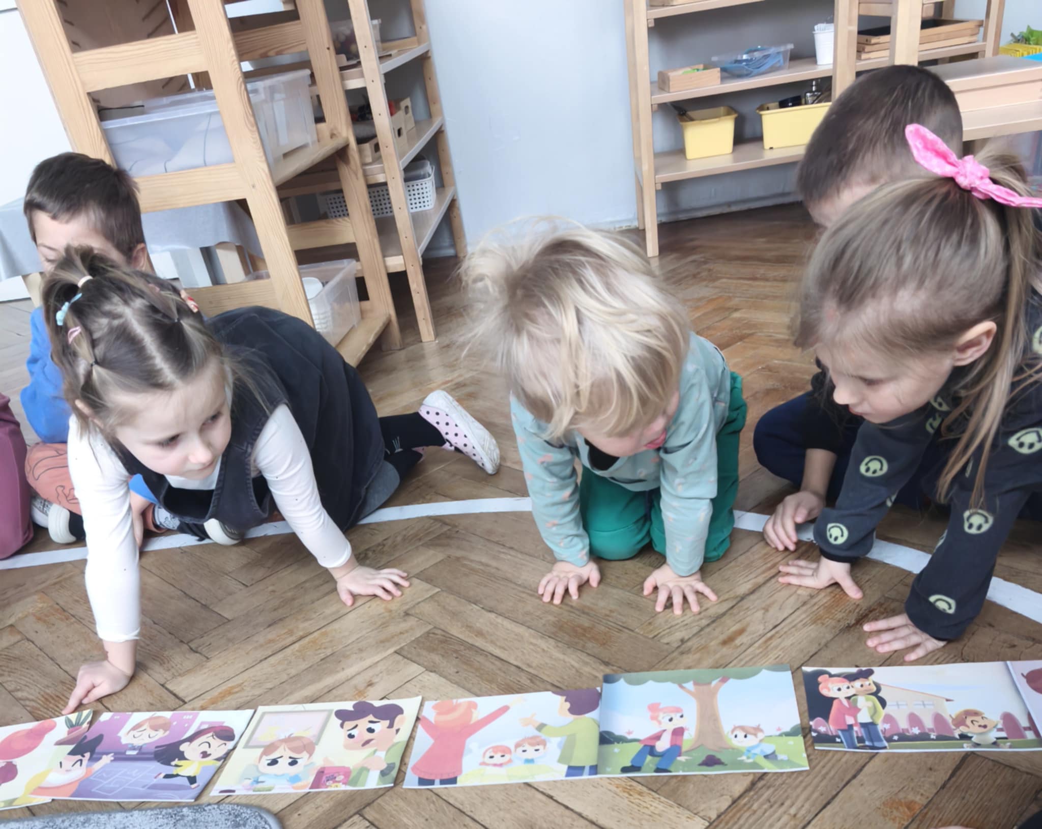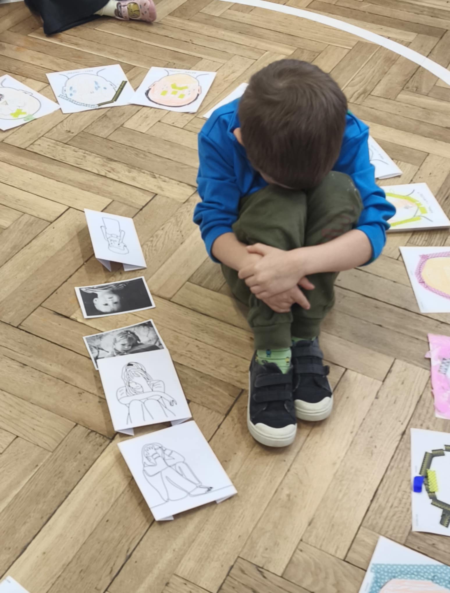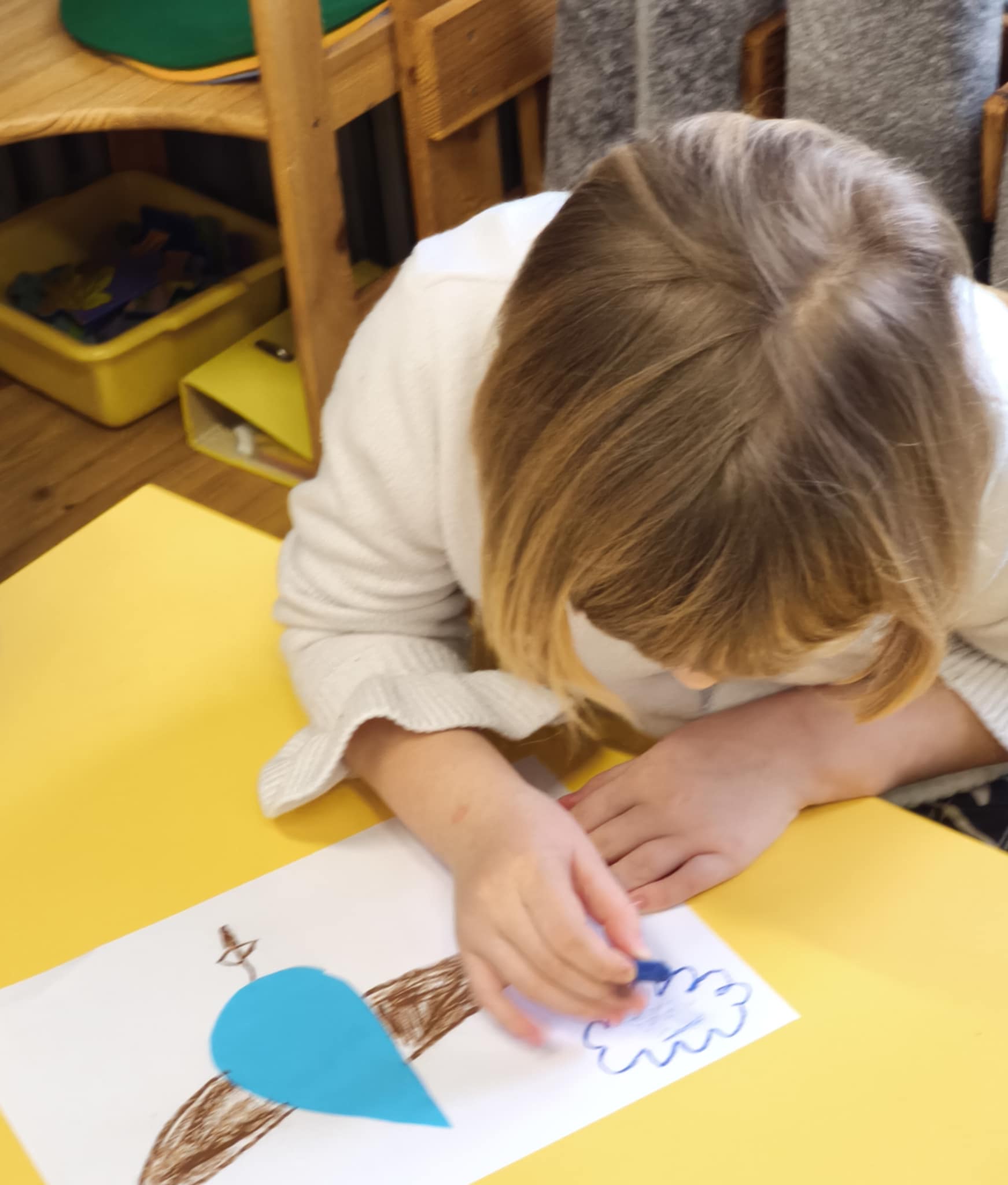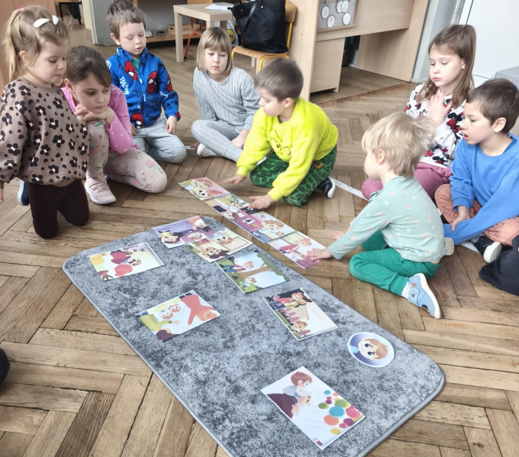 Podczas zajęć dzieci uczyły się akceptacji uczucia smutku, radzenia sobie z nim. W oparciu o bajki terapeutyczne, rozmawialiśmy o tym skąd bierze się smutek, kiedy go dzieci odczuwają i co wtedy dzieje się z naszym ciałem. Udało się nam również porozmawiać o sposobach na poprawę nastroju, dzieci dawały propozycje z własnego doświadczenia a ponieważ jesteśmy rożni to każdy miał inne sposoby na radzenie sobie ze smutkiem. Przeobraziliśmy nawet łzę w cos śmiesznego co też może być jednym z takich sposobów.
