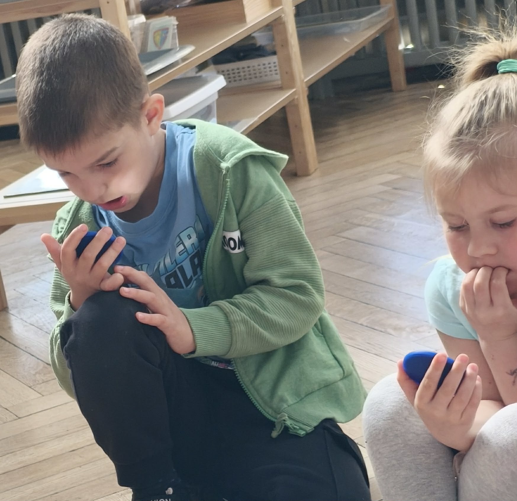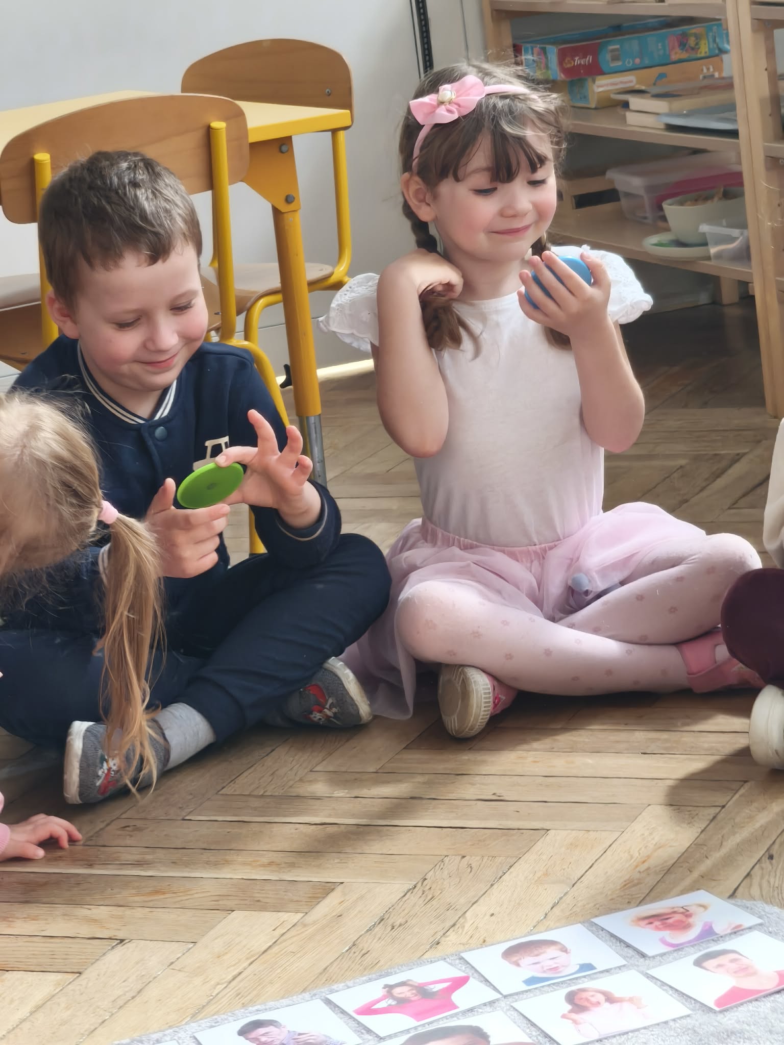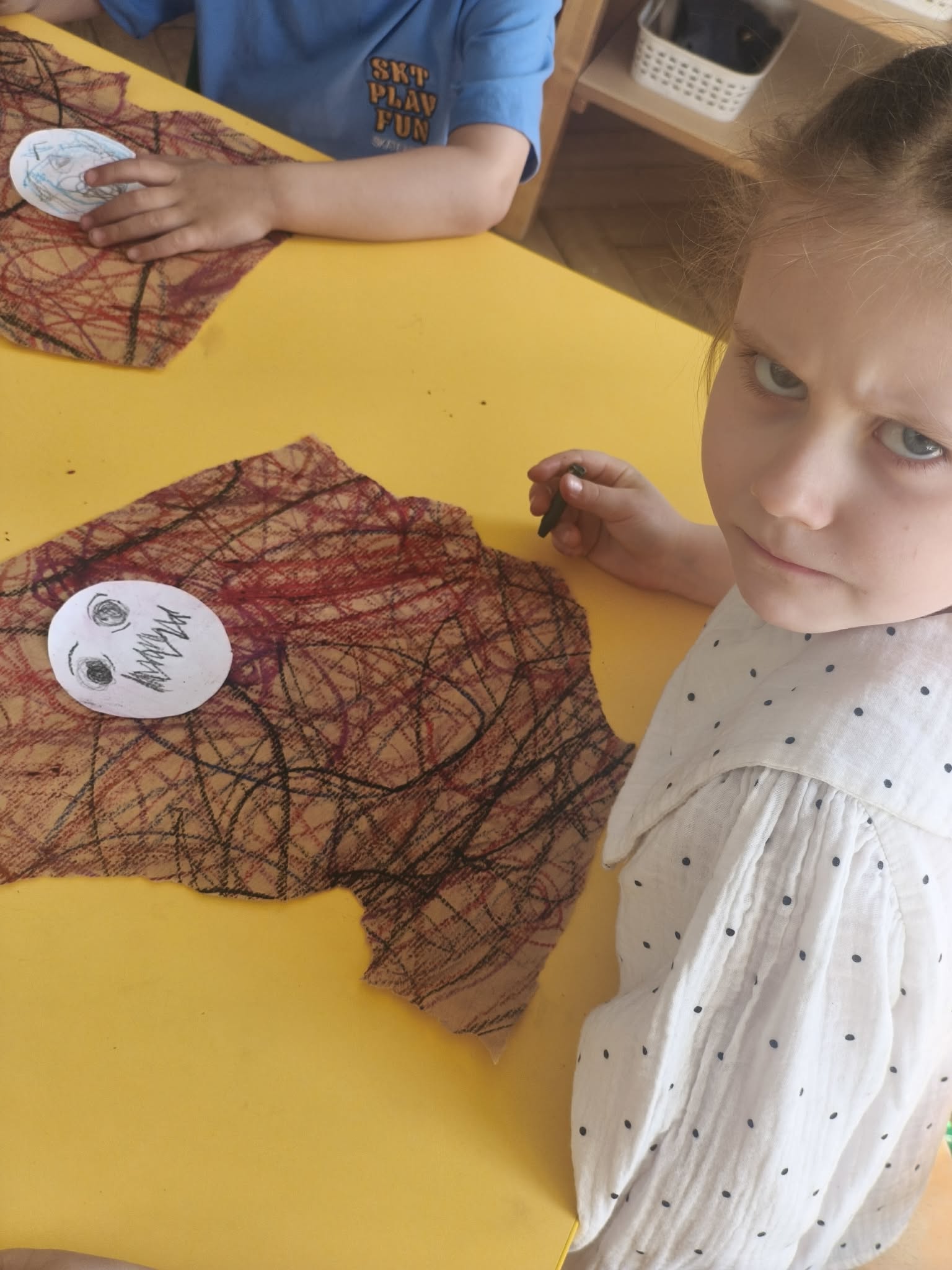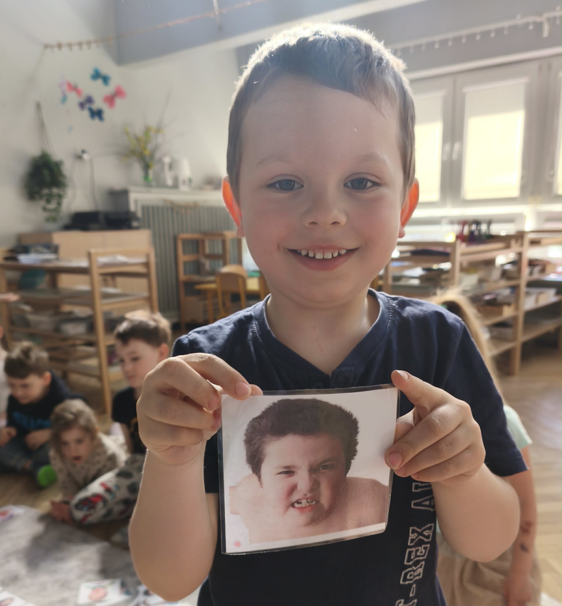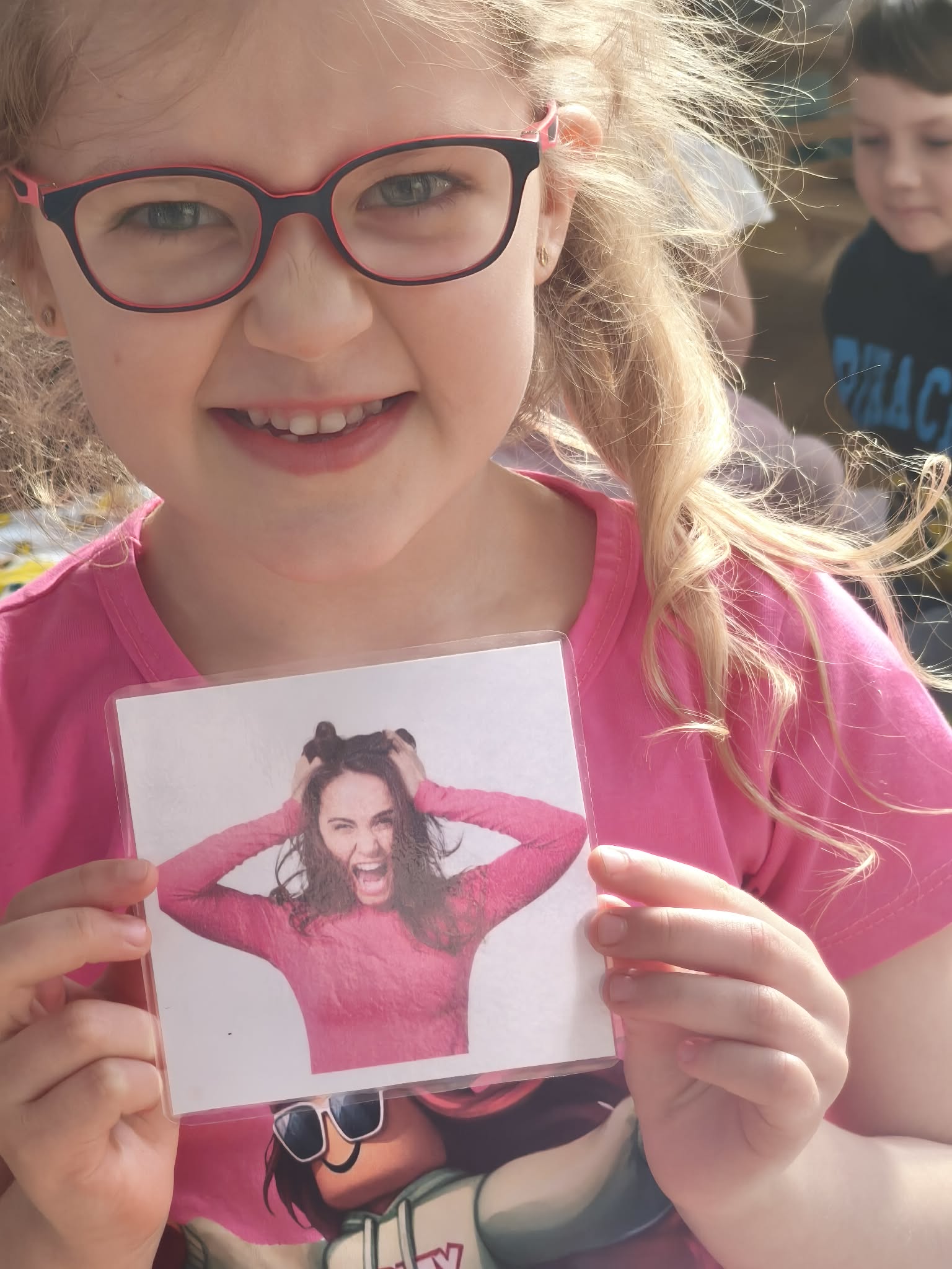 W minionym tygodniu dużo rozmawialiśmy o złości. Nasze działania koncentrowały się na jej oswojeniu i nauce konstruktywnego reagowania na złość, zamiast tłumienia tego uczucia. Dzieci dowiedziały się że, każda emocja jest dopuszczalna, ale nie każde zachowanie pod jej wpływem jest akceptowalne. Ważne było przećwiczenie społecznie akceptowalnych sposobów radzenia sobie z napięciem. Dzieci uczyły się również swoich twarzy, tego jak wyglądają (patrząc w lusterka), jak są odbierane przez innych ludzi.