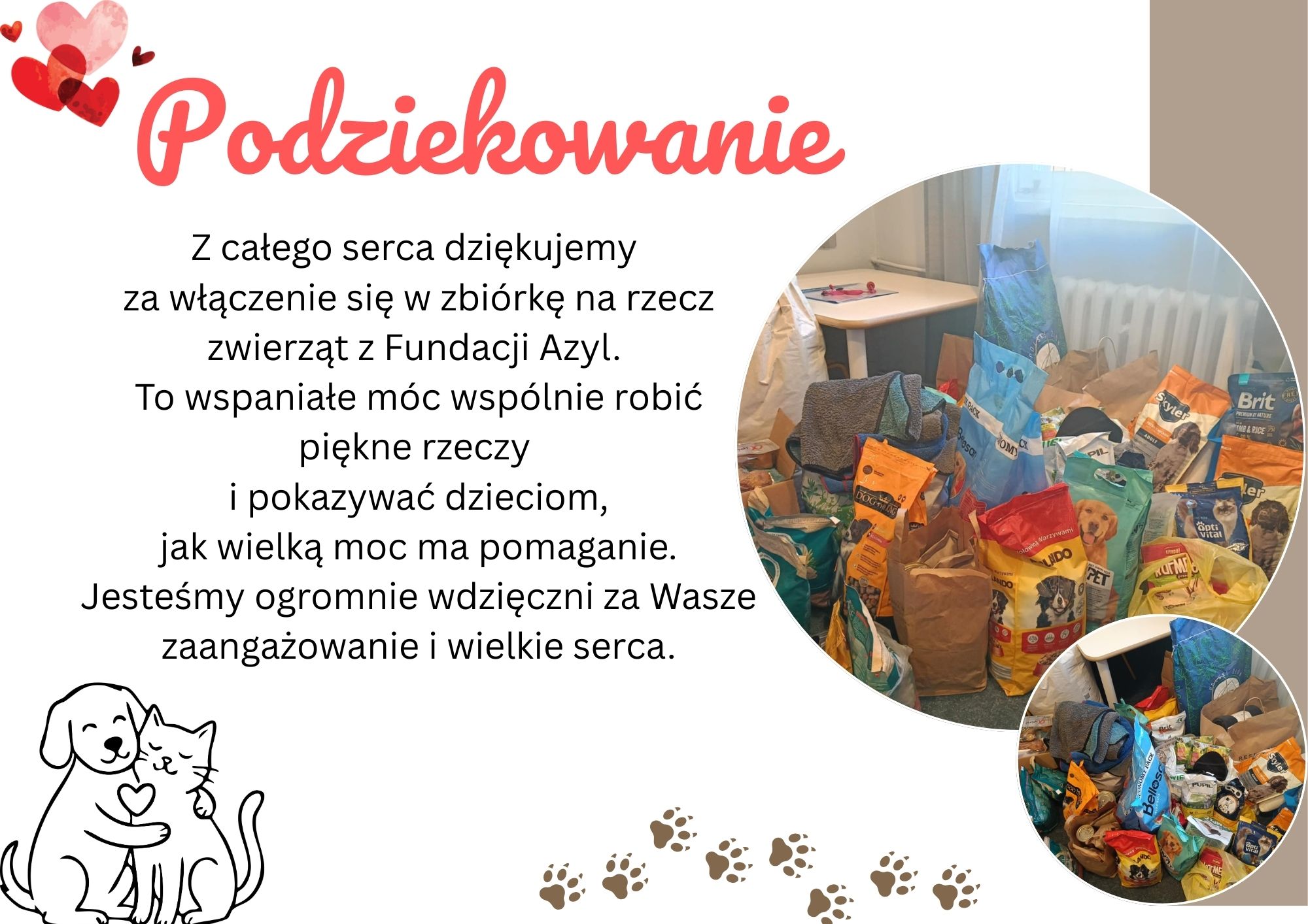 Z całego serca dziękujemy za włączenie się w zbiórkę na rzecz zwierząt z Fundacji Azyl. To wspaniałe móc wspólnie robić piękne rzeczy i pokazywać dzieciom, jak wielką moc ma pomaganie. Jesteśmy ogromnie wdzięczni za Wasze zaangażowanie i wielkie serca.