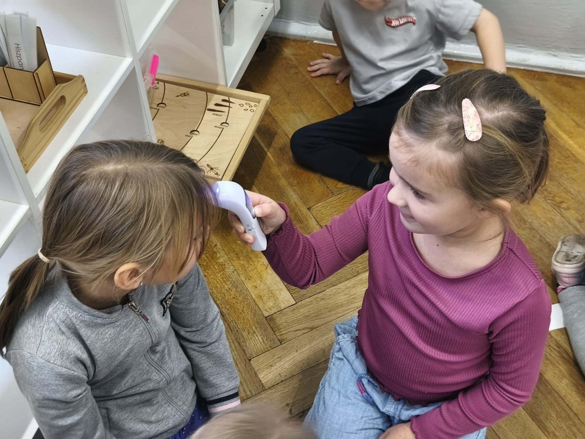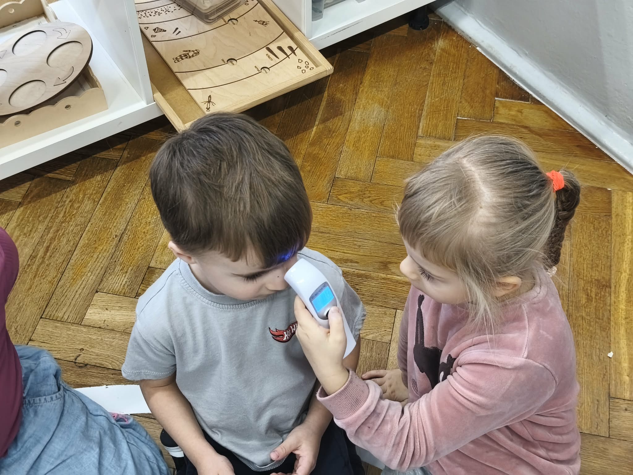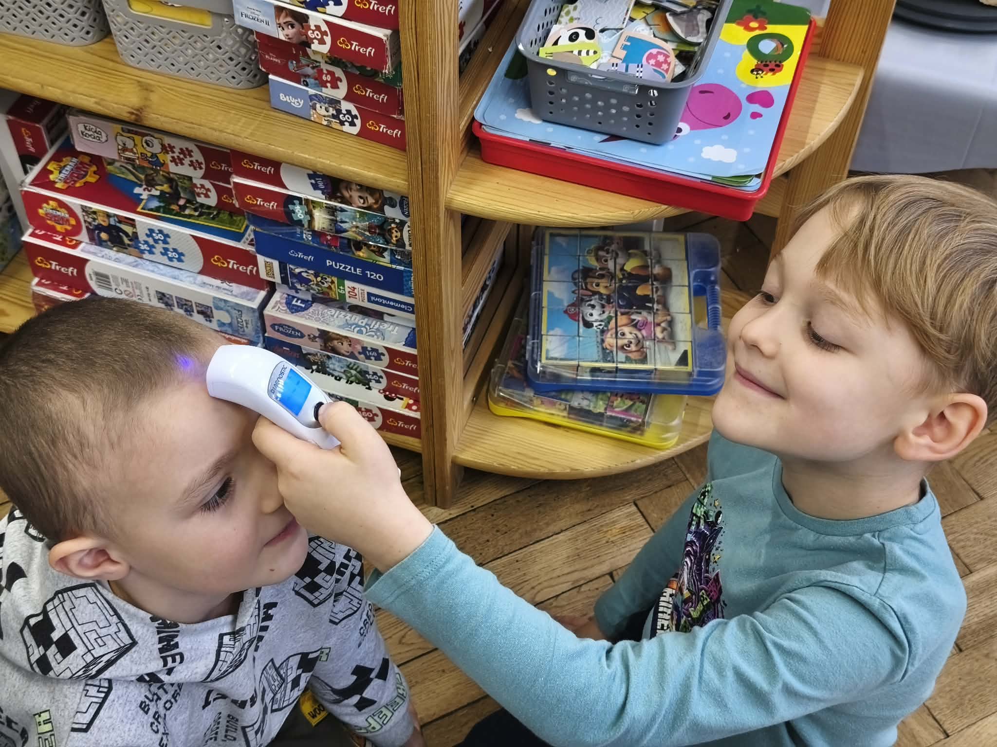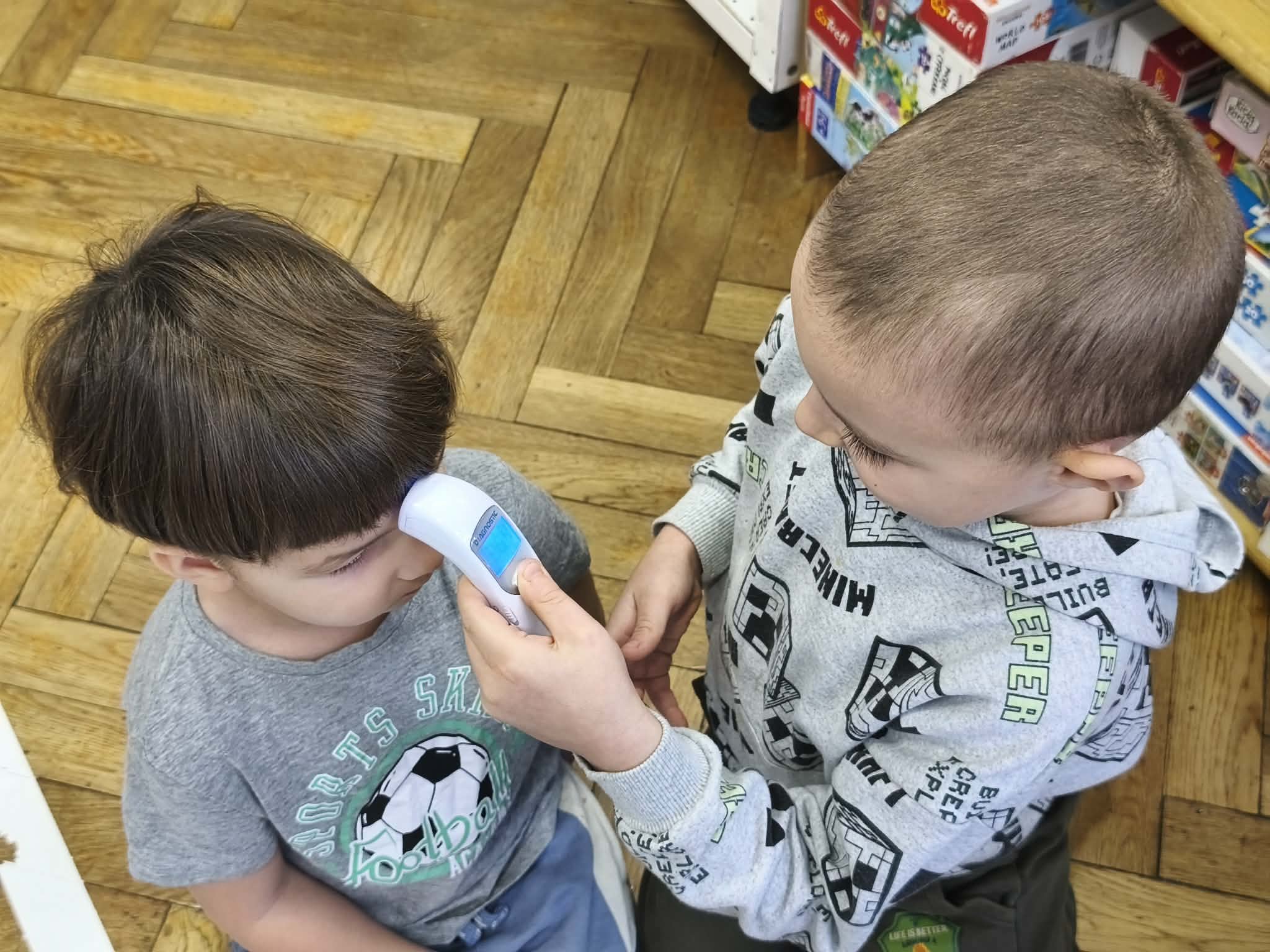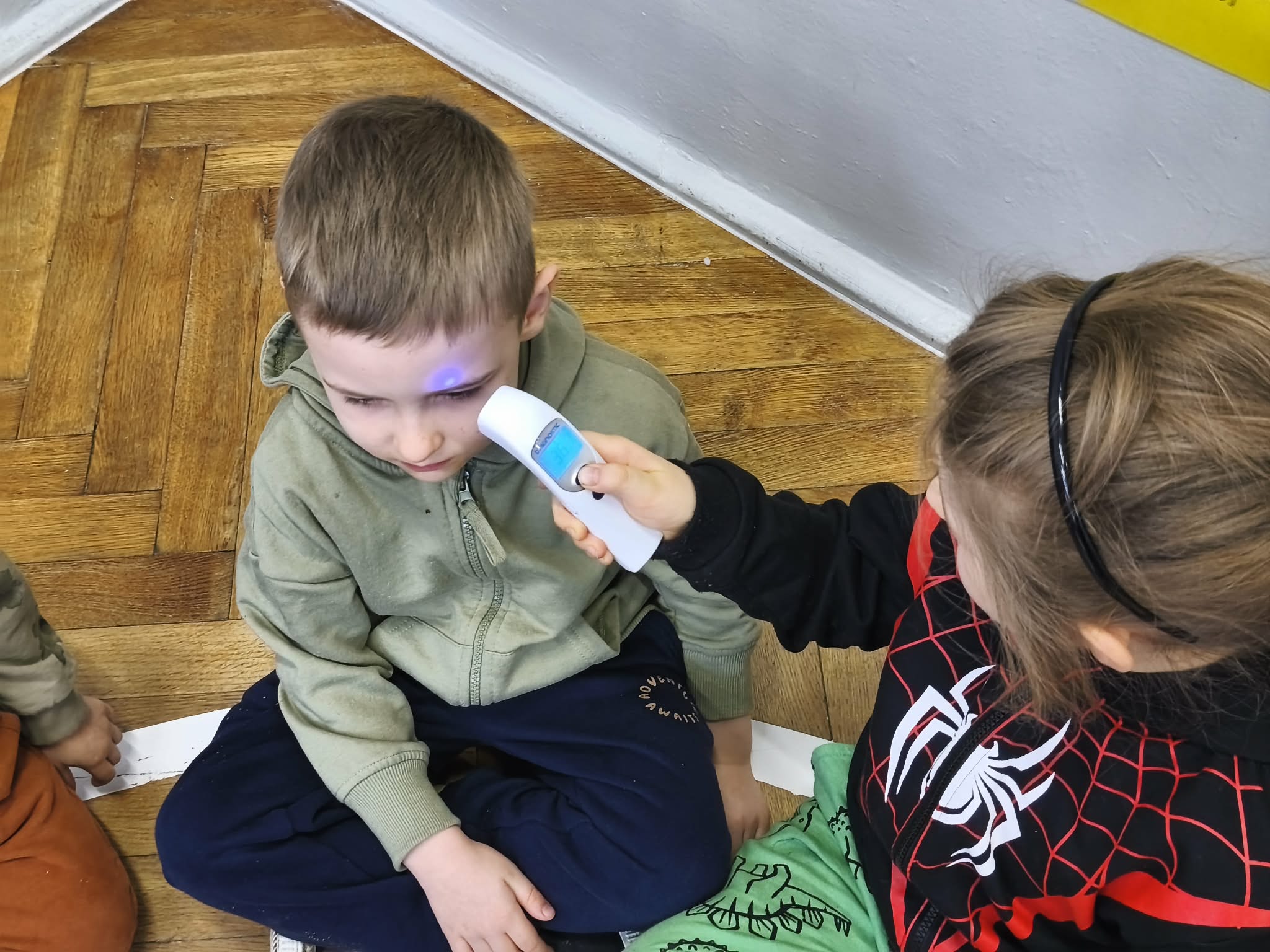 W tym tygodniu rozmawialiśmy na temat jesiennej pogody. Poznawaliśmy różne zjawiska atmosferyczne możliwe podczas jesieni. Pani nauczycielka przyniosła nam do obejrzenia kilka rodzajów termometrów, m.in: termometr zaokienny z barometrem, termometr do mierzenia temperatury w pomieszczeniu, itp.. Mieliśmy także możliwość termometrem zmierzyć temperaturę na swoich czołach. Wszystkim dzieciom termometr wskazywał temperaturę odpowiednią.