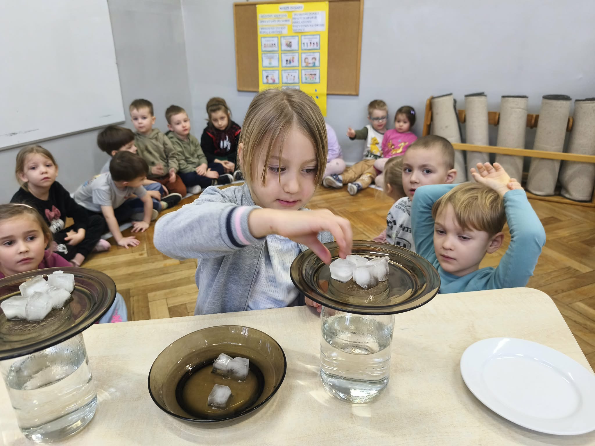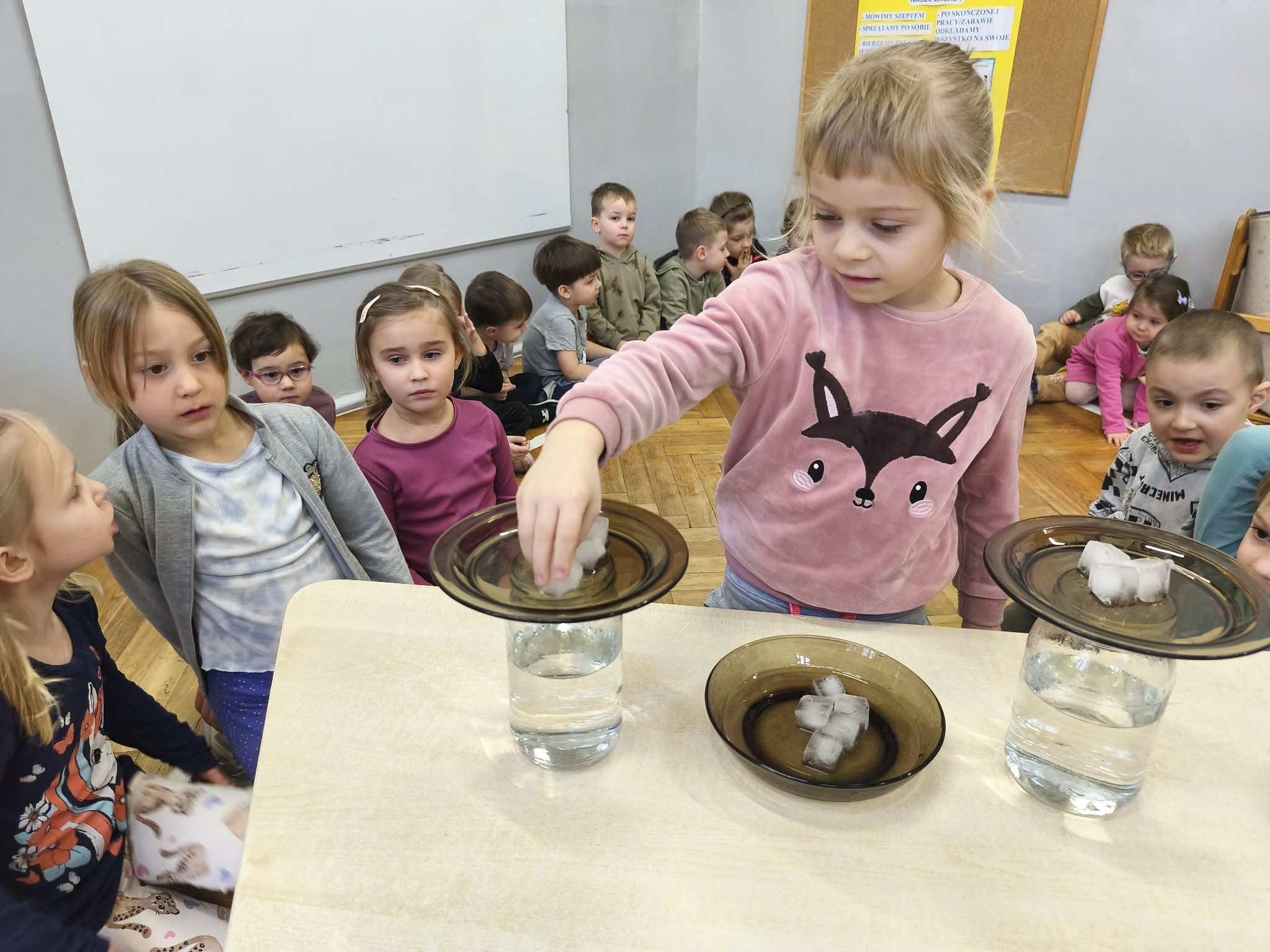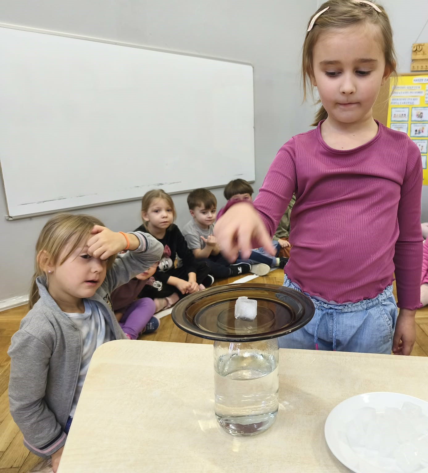 Wykonaliśmy także dwa doświadczenia z tworzeniem deszczu - jeden z wykorzystaniem wody i kostek lodu,