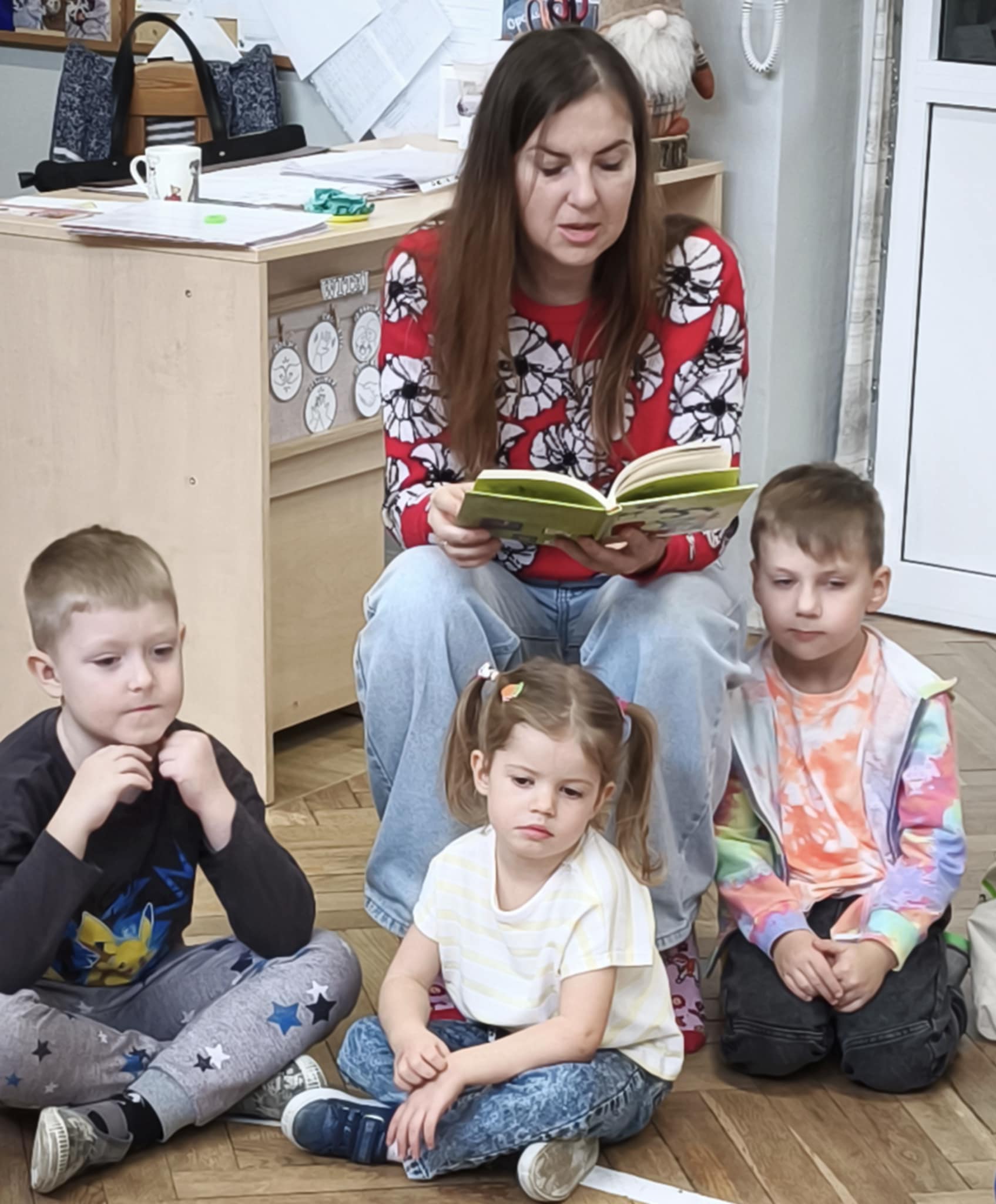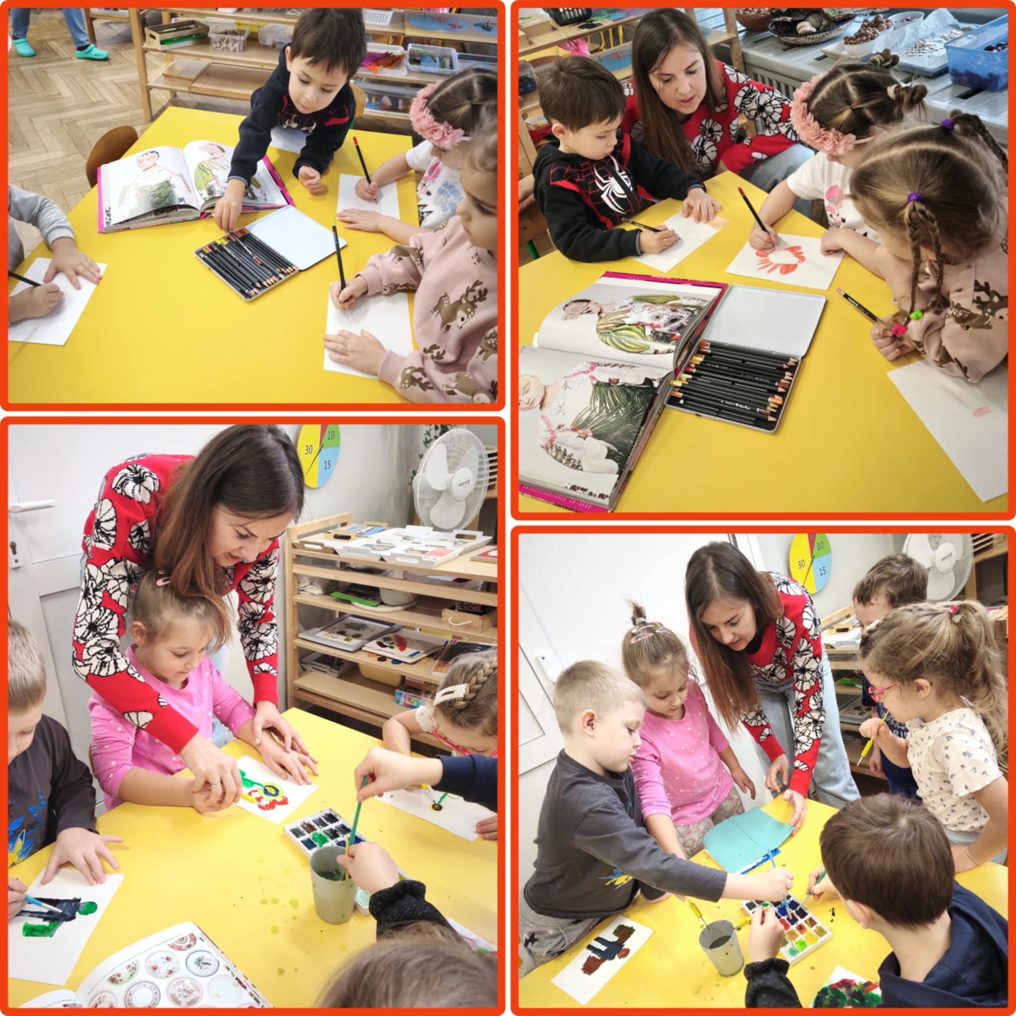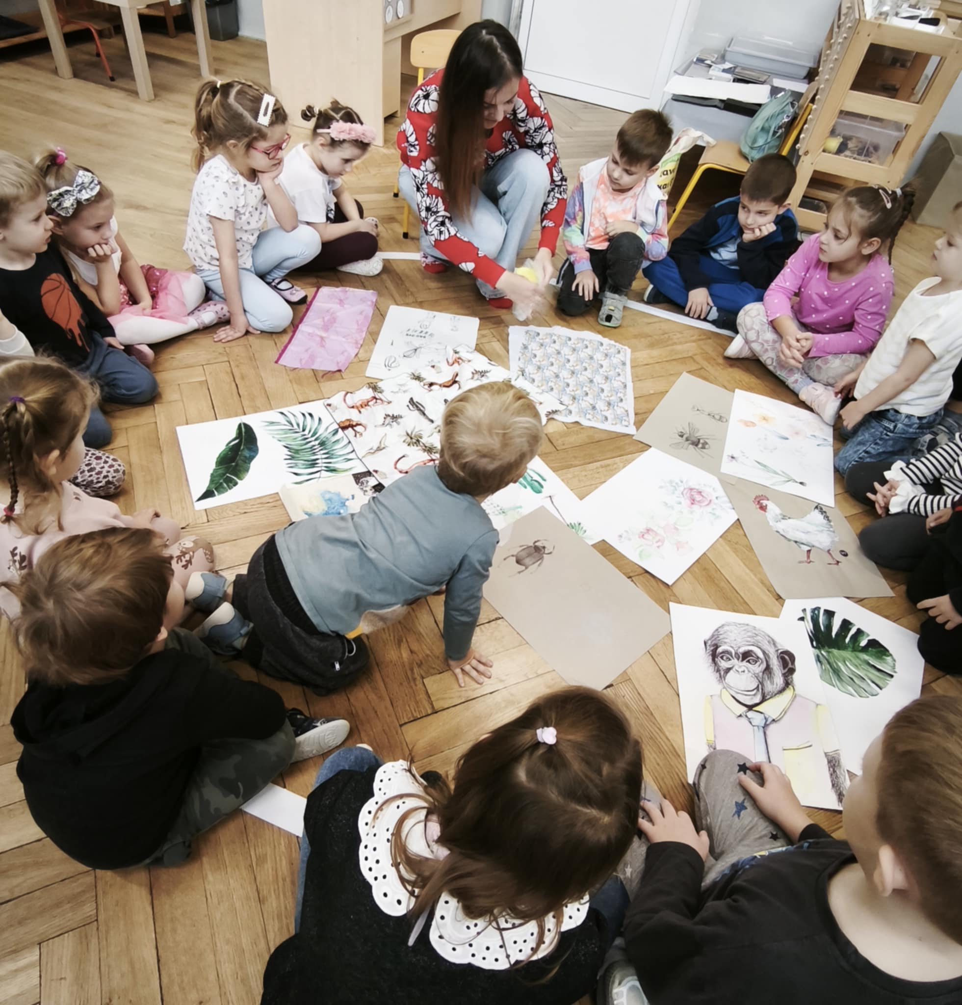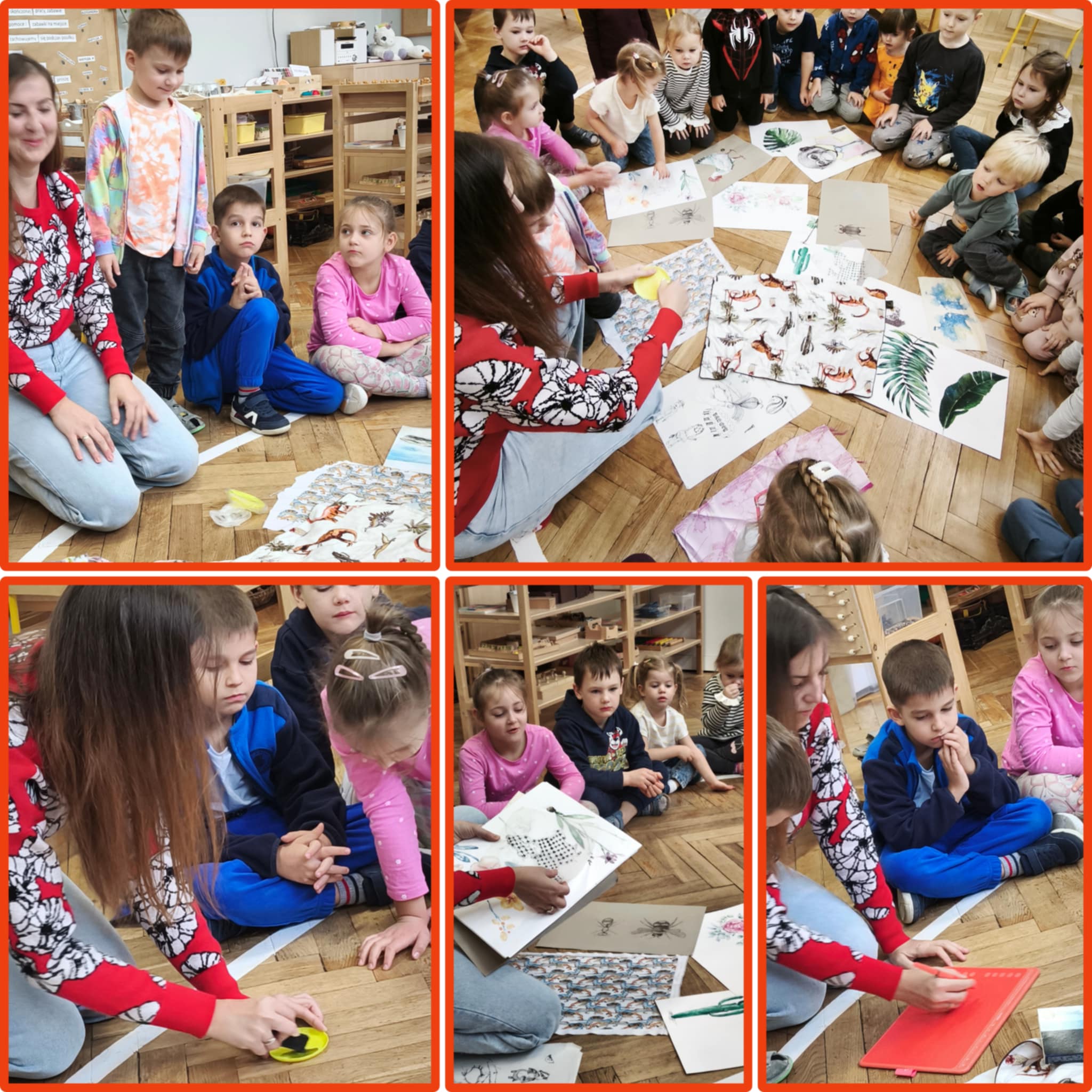 W piątek dzieci poznały kolejny ciekawy zawód - projektantka wzorów. Okazało się, że mama Aleksa projektuje oryginalne, pełne pasji wzory na tkaniny, które mogą zdobić np ubrania, poduszki, firany, obicia mebli. Dzieci oglądały tkaniny wykonane przez mamę, jej rysunki i szkice. Dowiedziały się jak projektuje się te wzory wykorzystując do tego technologie komputerową. Z ochotą wykonały obrazki przedstawiające: kwiaty (dziewczynki), roboty (chłopcy) wykorzystując do tego farby i specjalne kredki. Nasze dzieła zabrała mama Aleksa aby przygotować z nich dla nas jakąś niespodziankę...już nie możemy się doczekać.