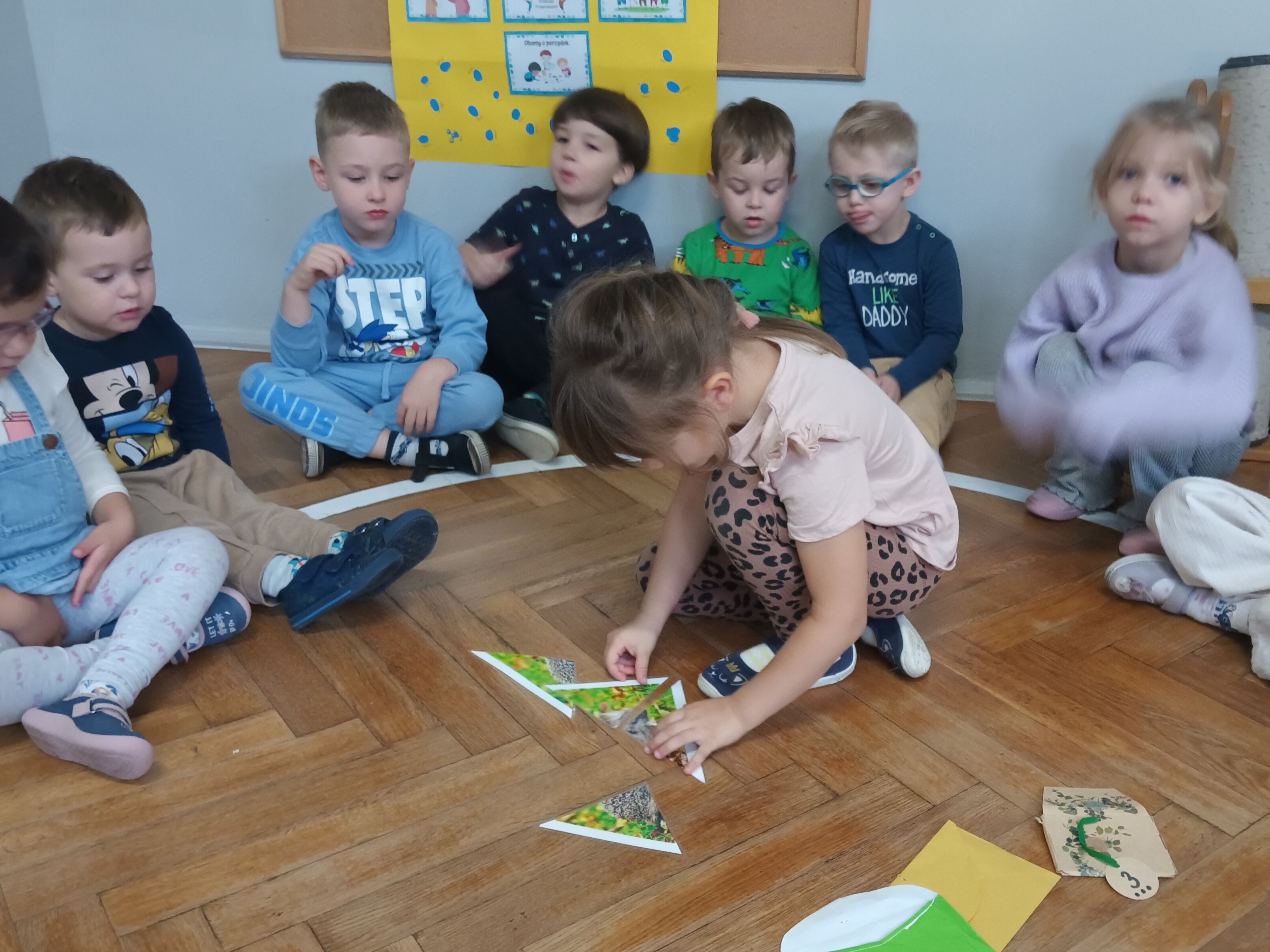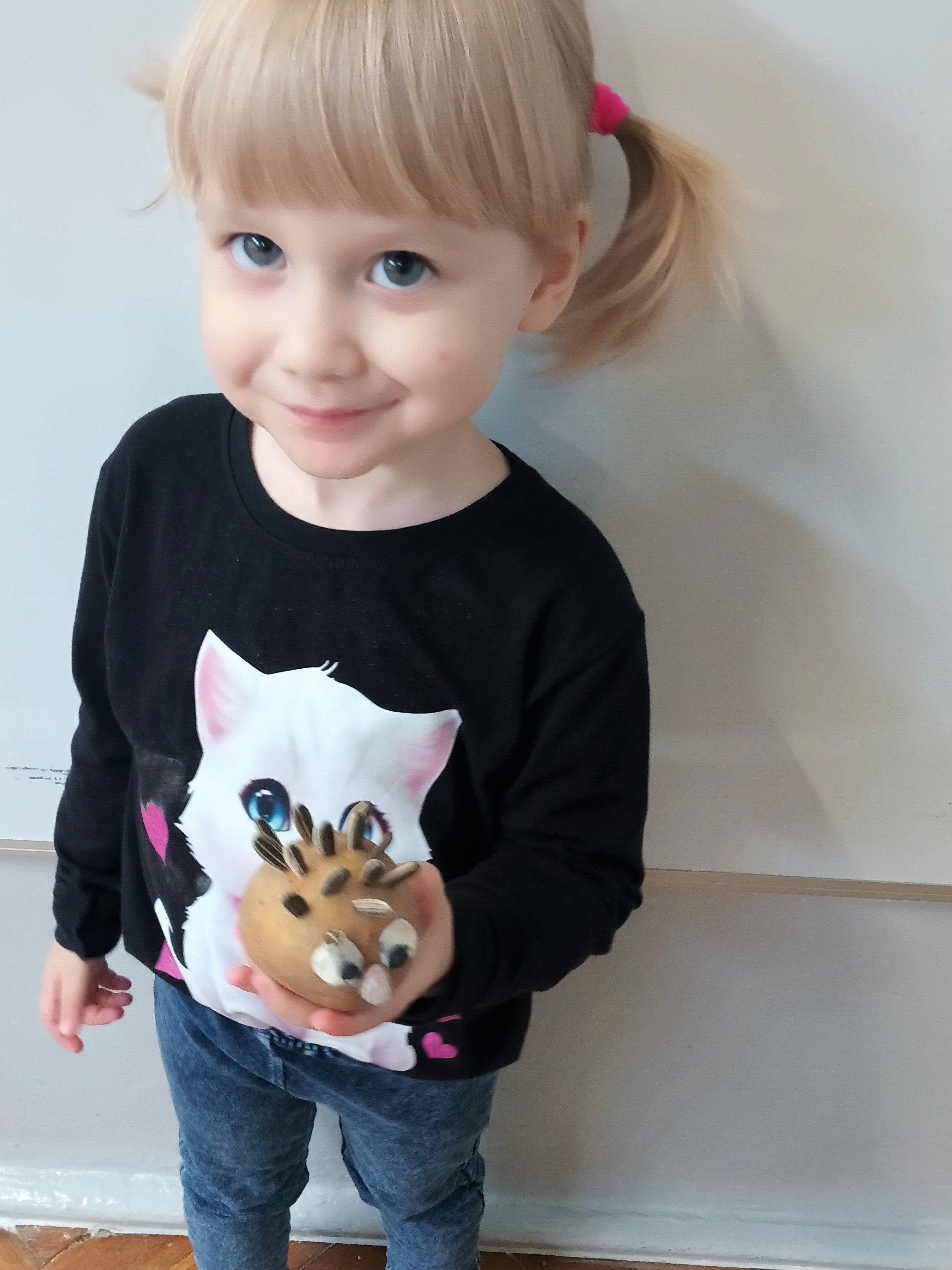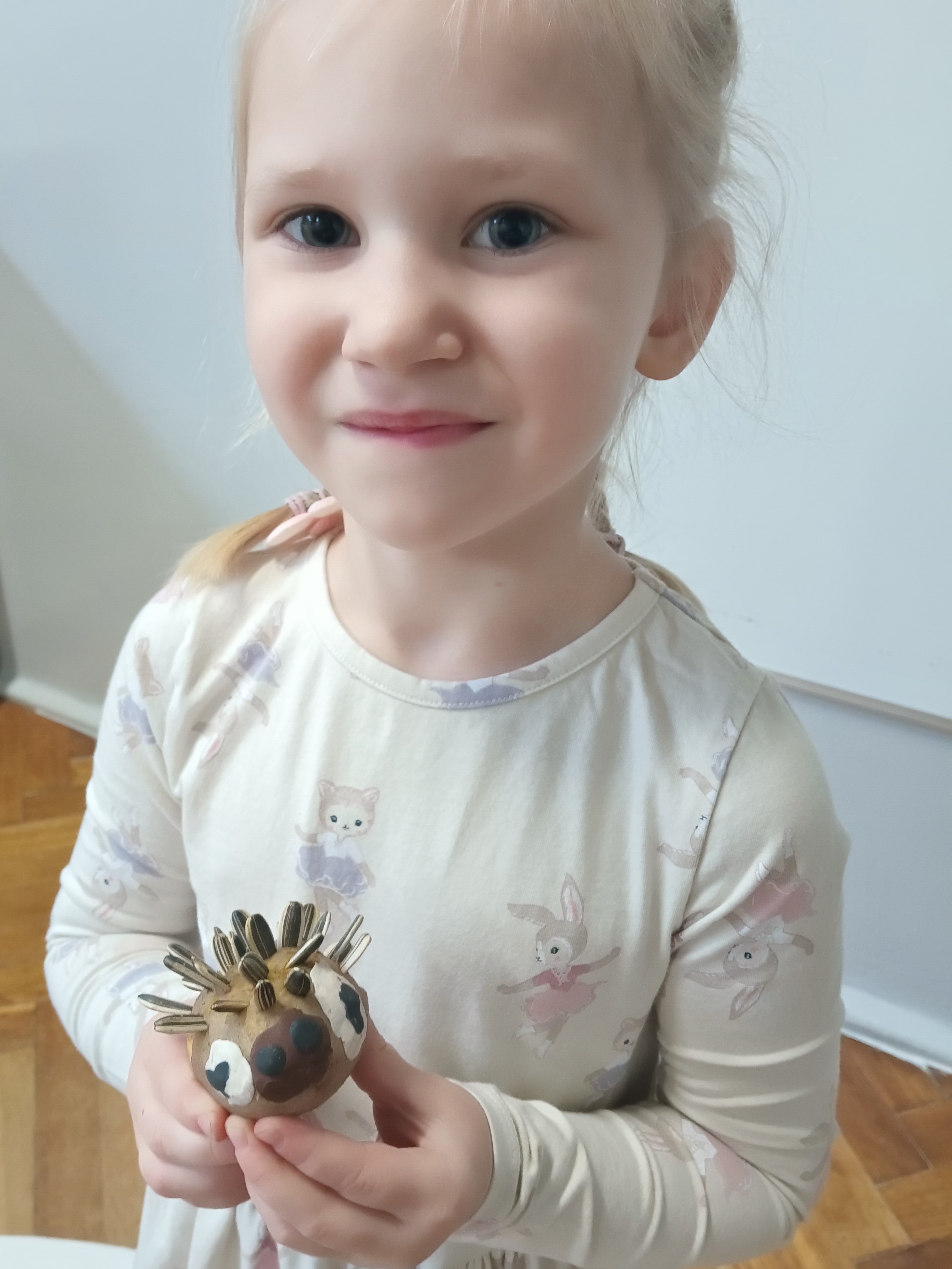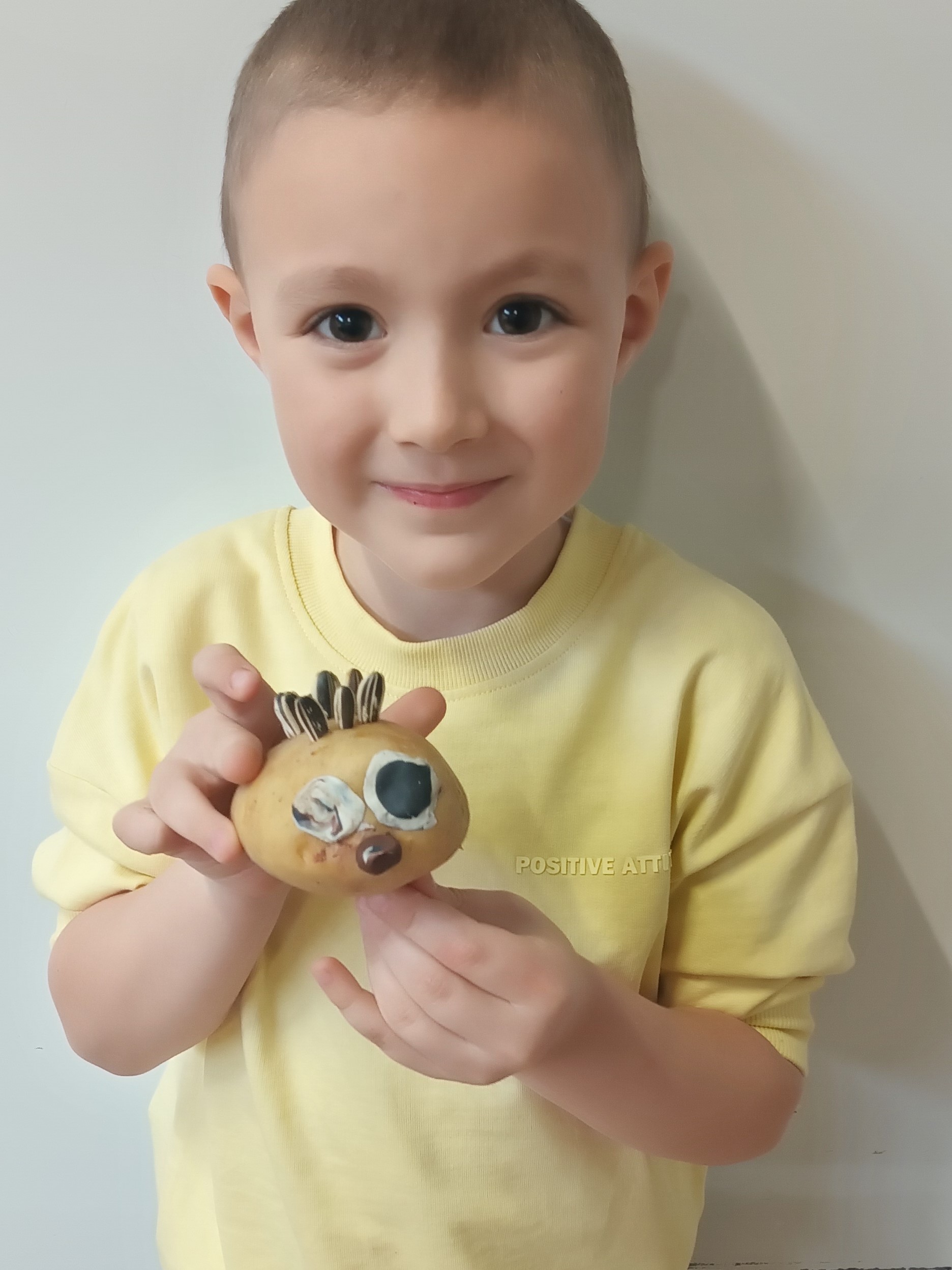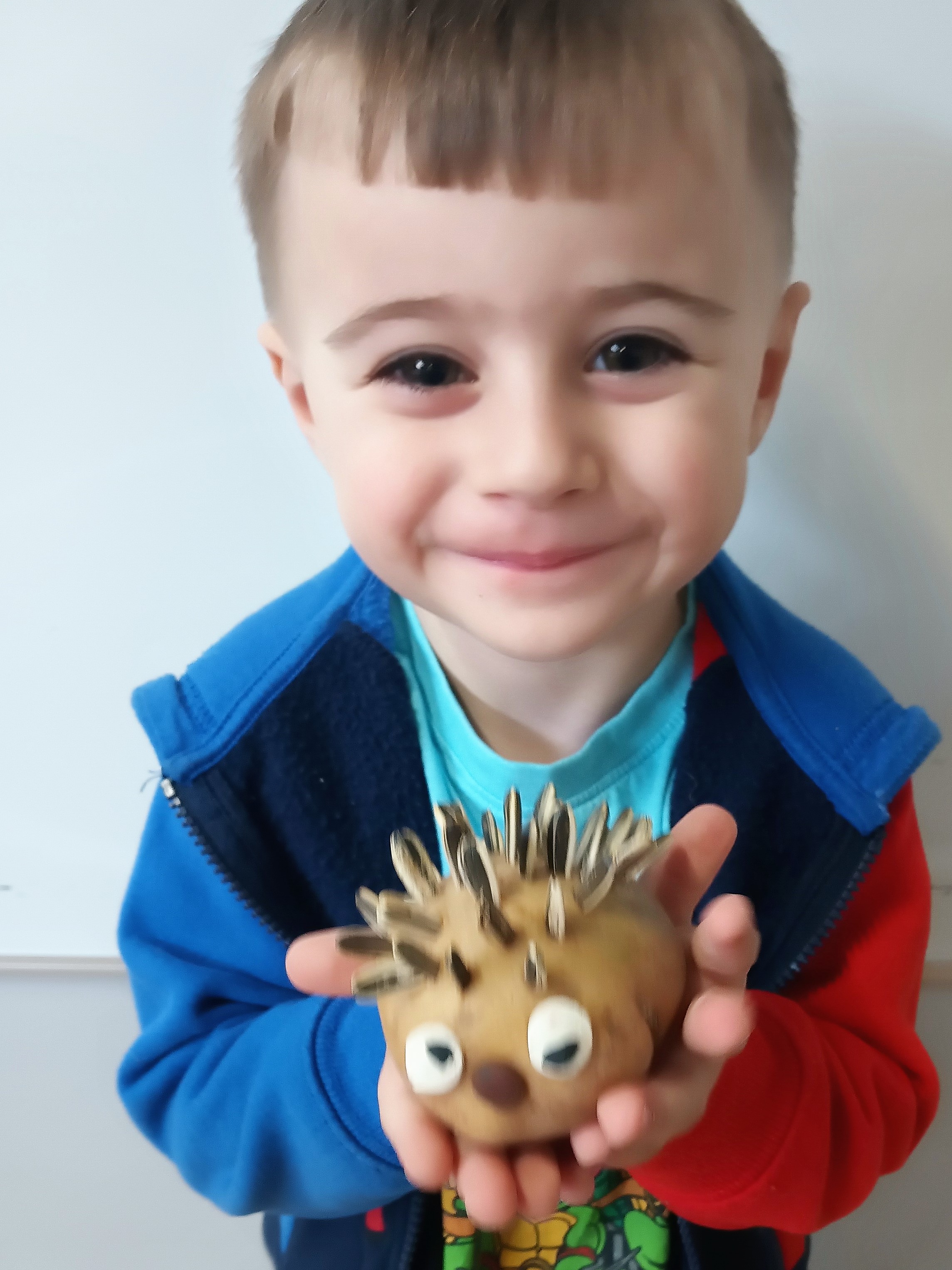 We wtorek poznawaliśmy zwierzęta, które możemy spotkać w lesie. Uczyliśmy się ich nazw w języku angielskim. Graliśmy w memory obrazkowe ze zwierzątkami. Jak za pomocą czarodziejskiej różdżki zamieniliśmy ziemniaki w jeżyki.