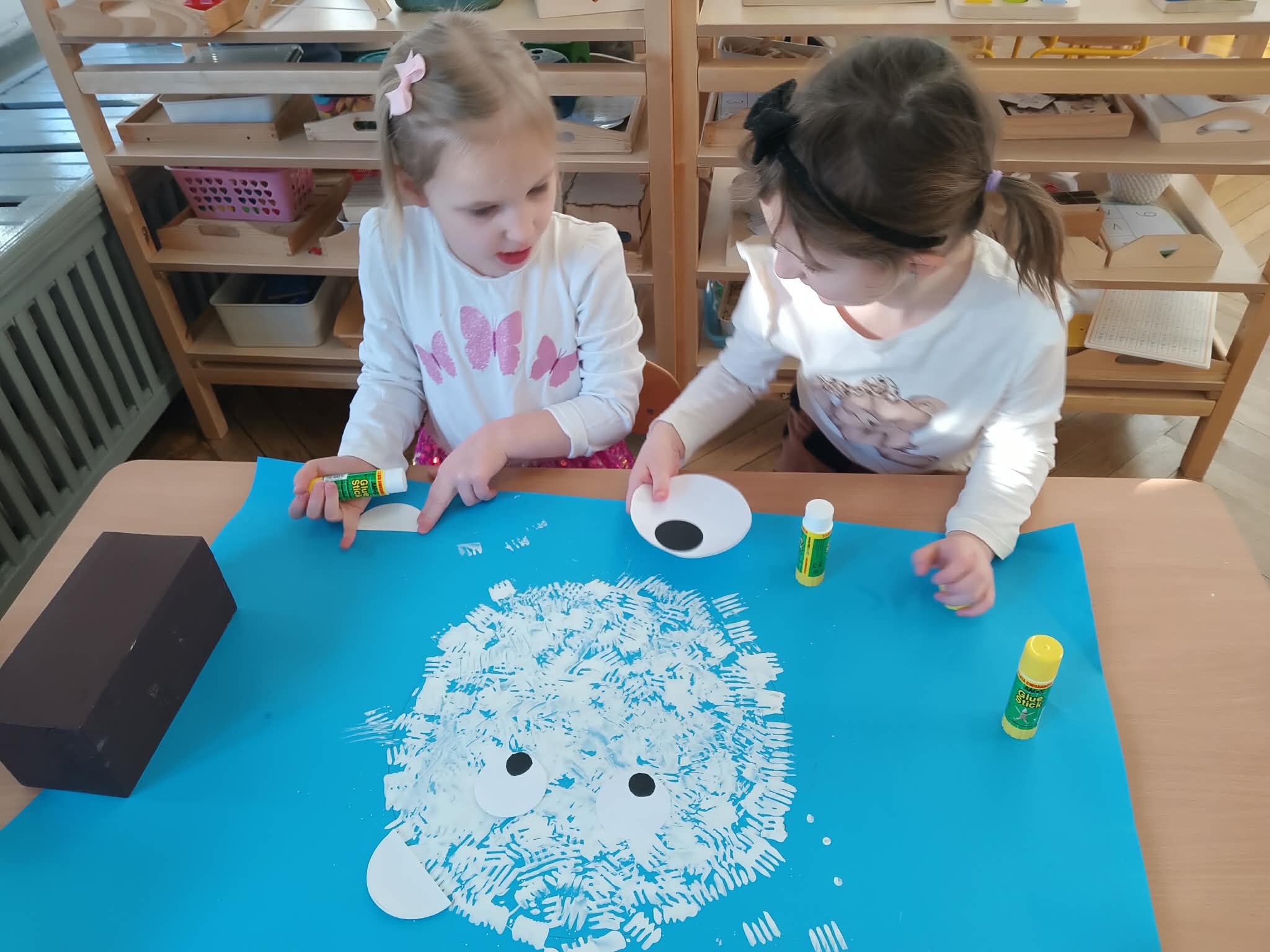 Podczas zajęć zostały przez dzieci wykonane także dwie prace plastyczne - jedna wspólnie, druga każdy osobno.