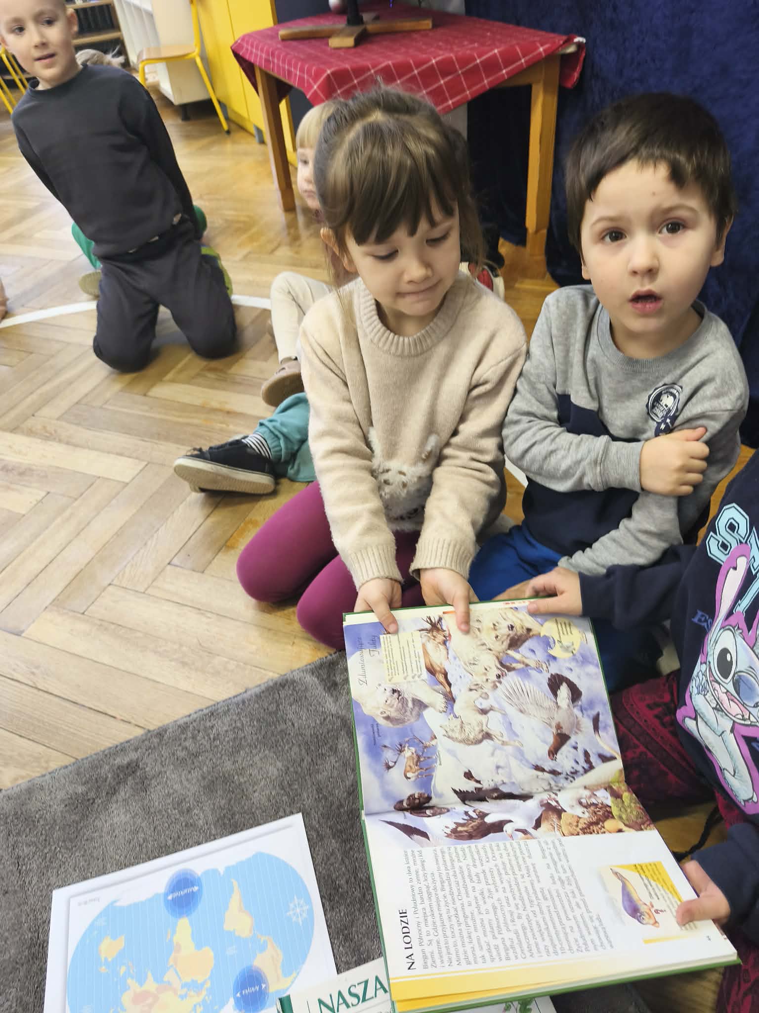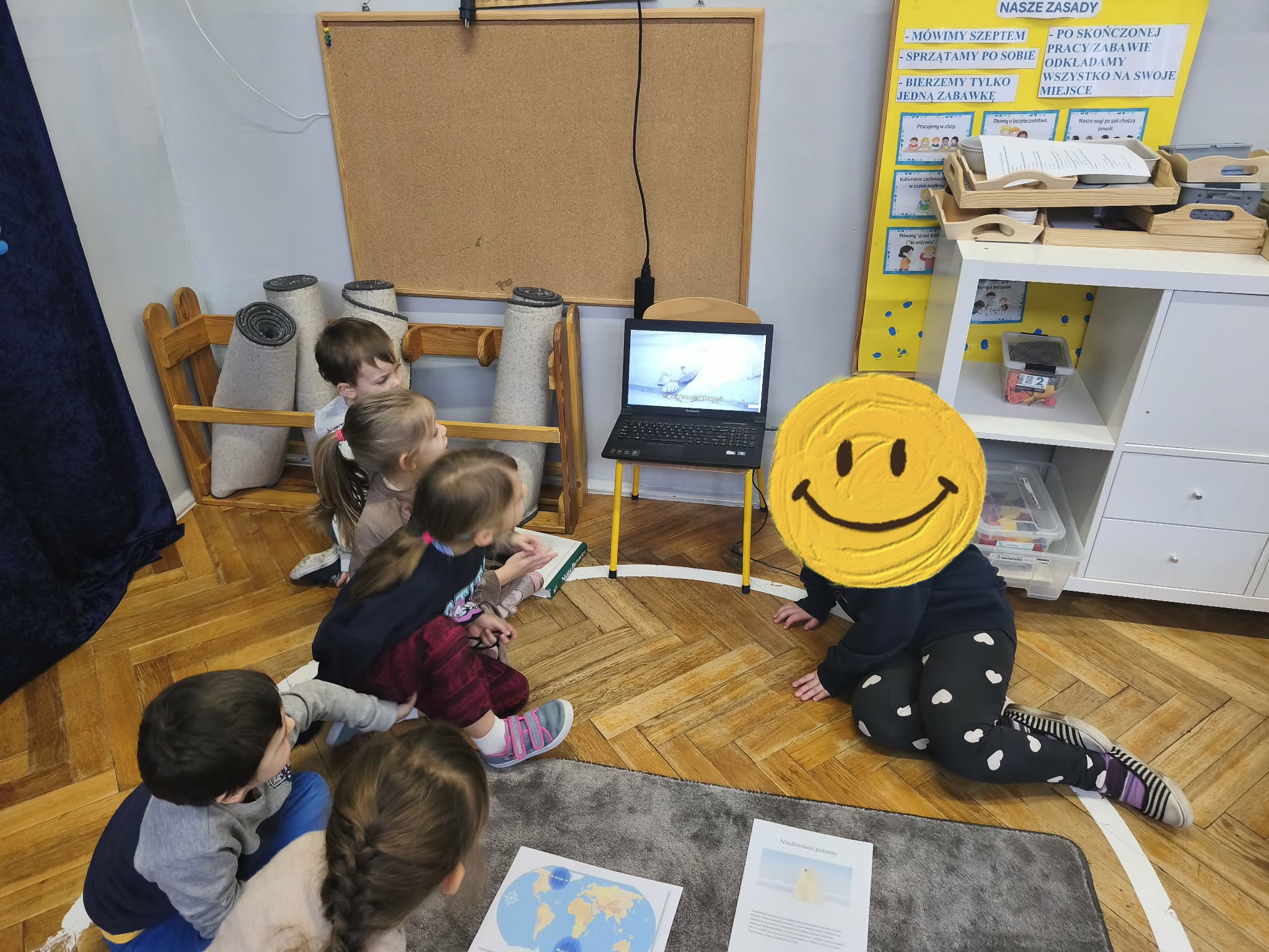 Podążając wybraną ścieżką edukacyjną, dzieci odkrywały tym razem świat różnorodności biologicznej, ochrony gatunków oraz roli człowieka w przyrodzie. Dzieci poznały ciekawostki na temat niedźwiedzia polarnego, oglądając film oraz prezentację multimedialną przygotowaną przez nauczyciela.