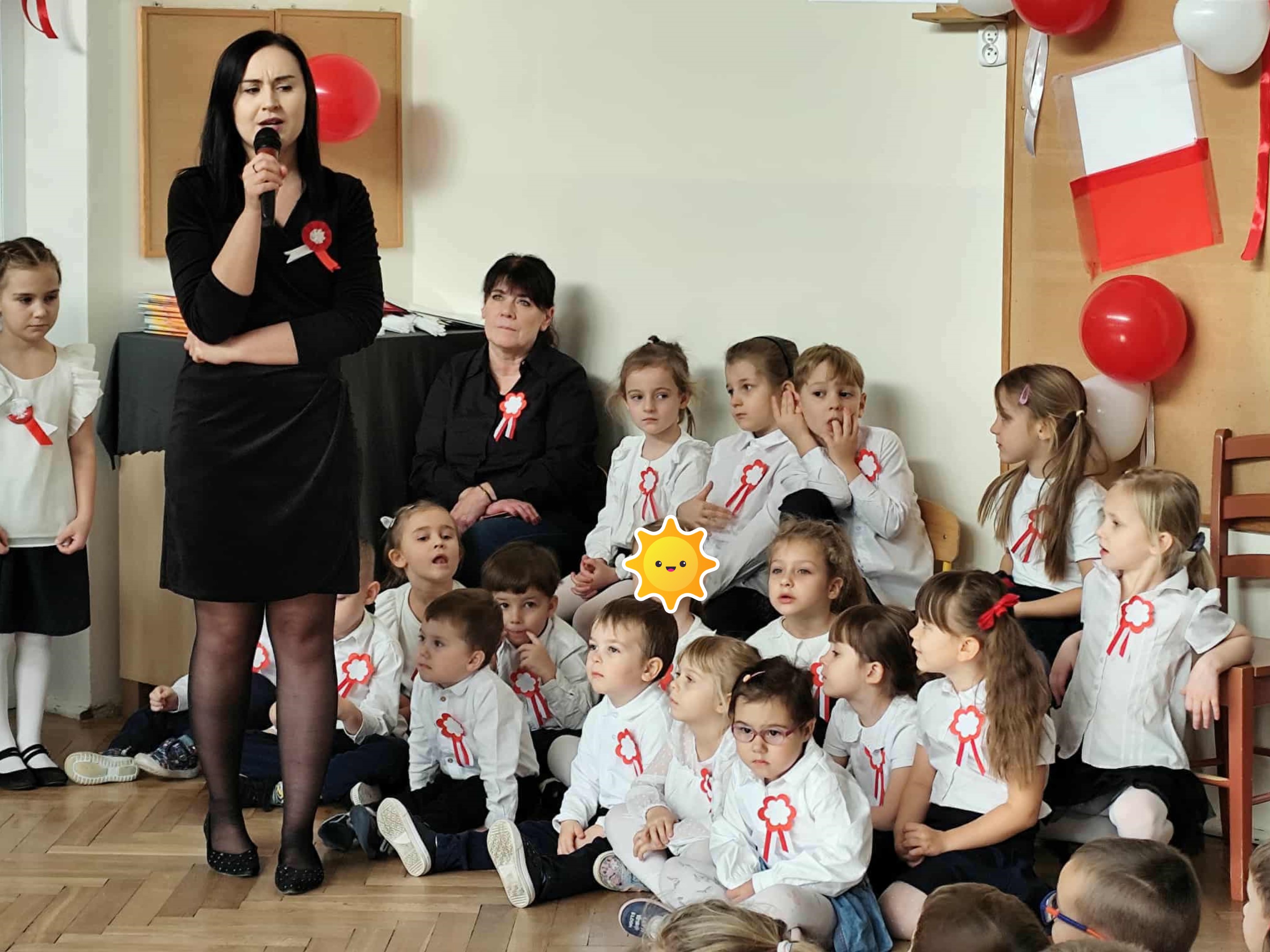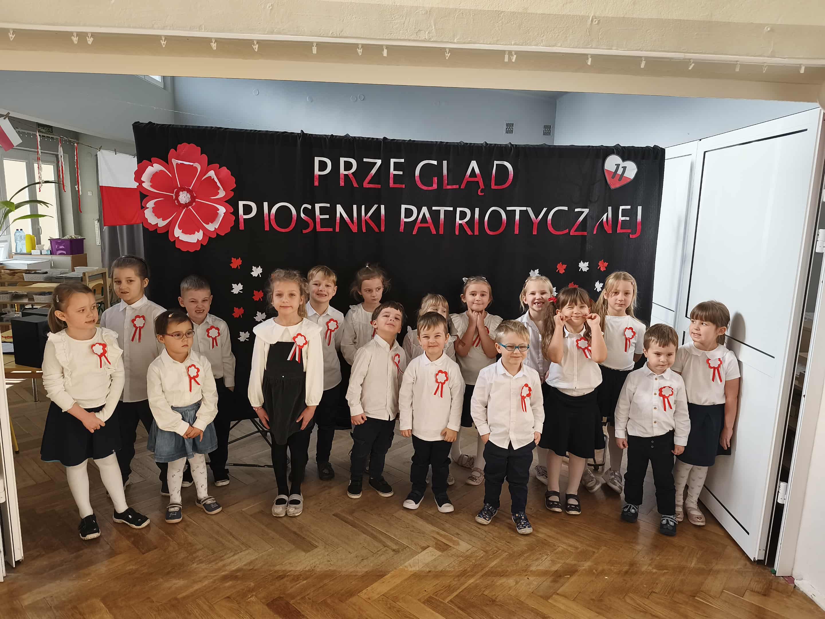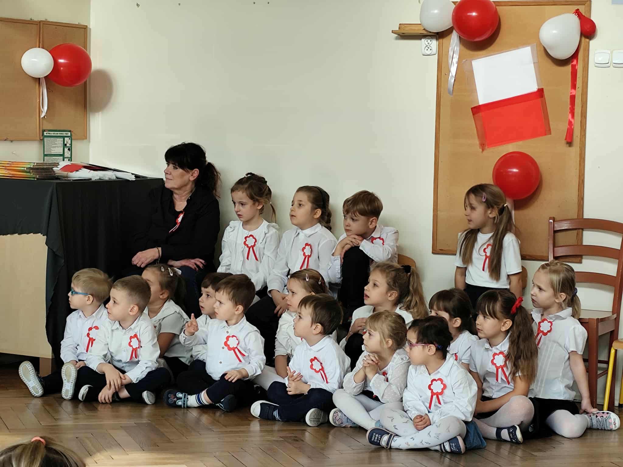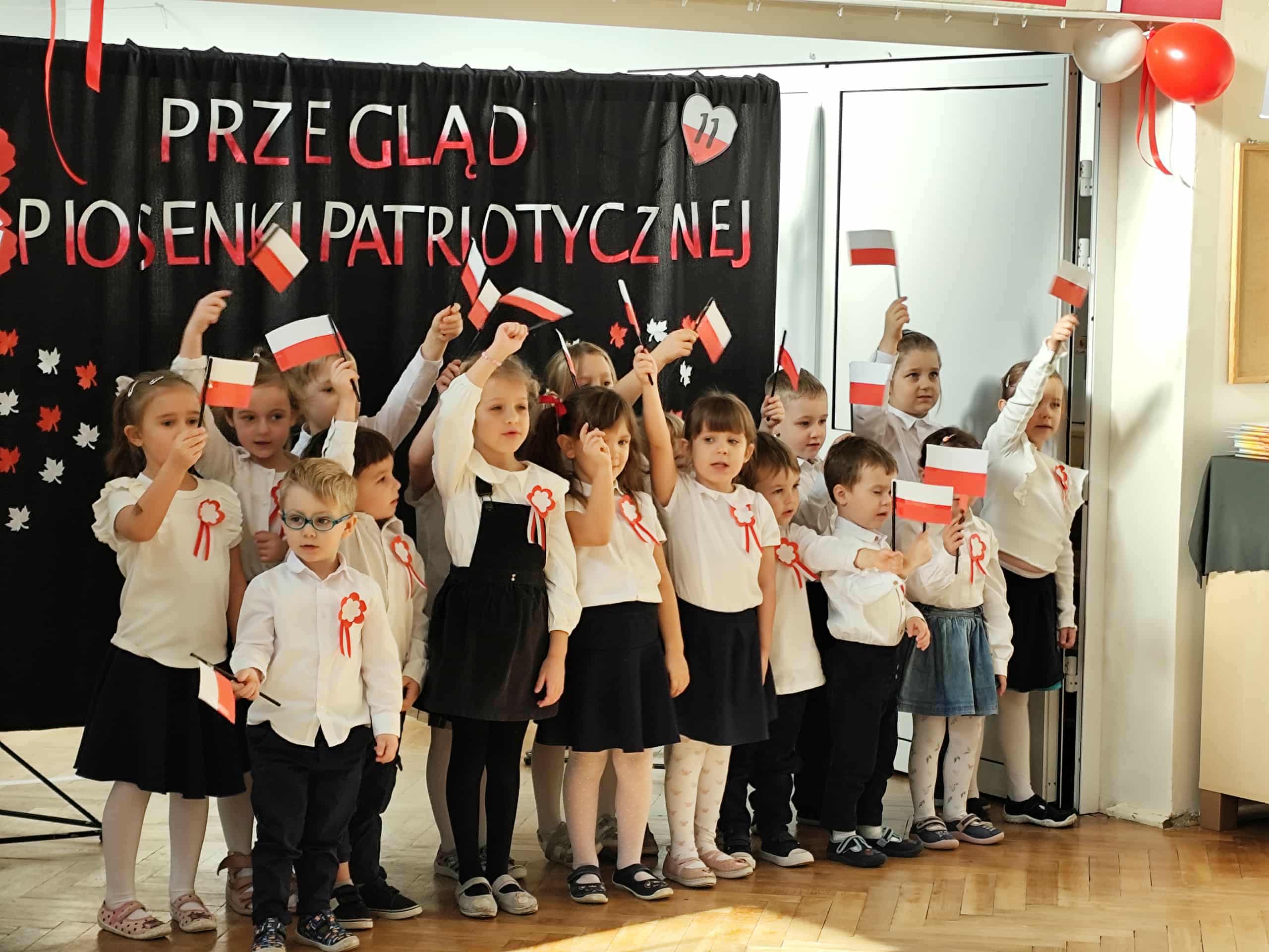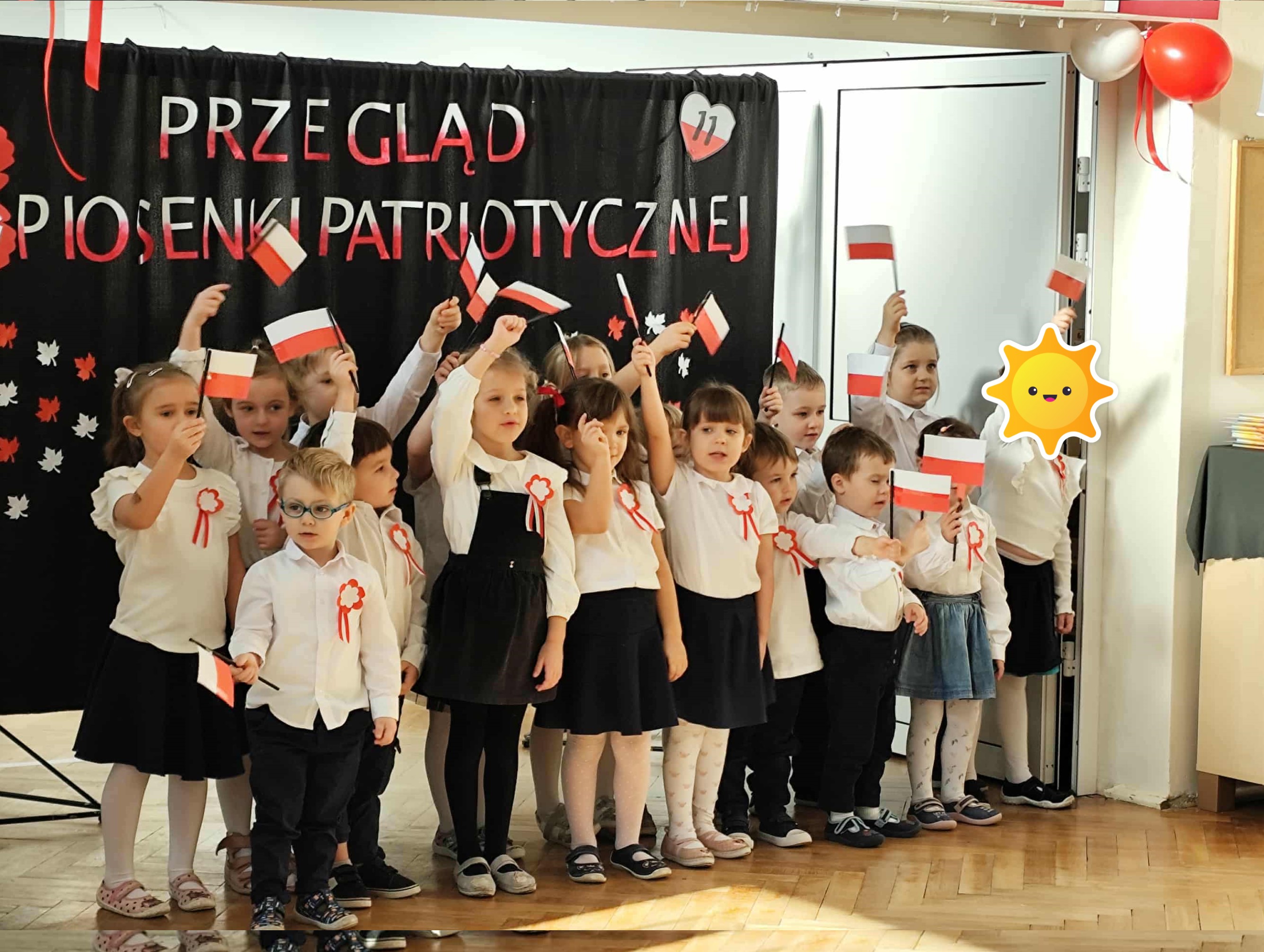 Dnia 7.11.2025r. dzieci z naszej grupy wzięły udział w Przeglądzie piosenki patriotycznej, który odbył się w naszym przedszkolu. Zaśpiewaliśmy piosenkę pt."Polska, Polska biało - czerwona". Odgadywaliśmy wspólnie z innymi dziećmi zagadki słowne o naszej ojczyźnie. Na koniec uroczystości odśpiewaliśmy hymn polski.