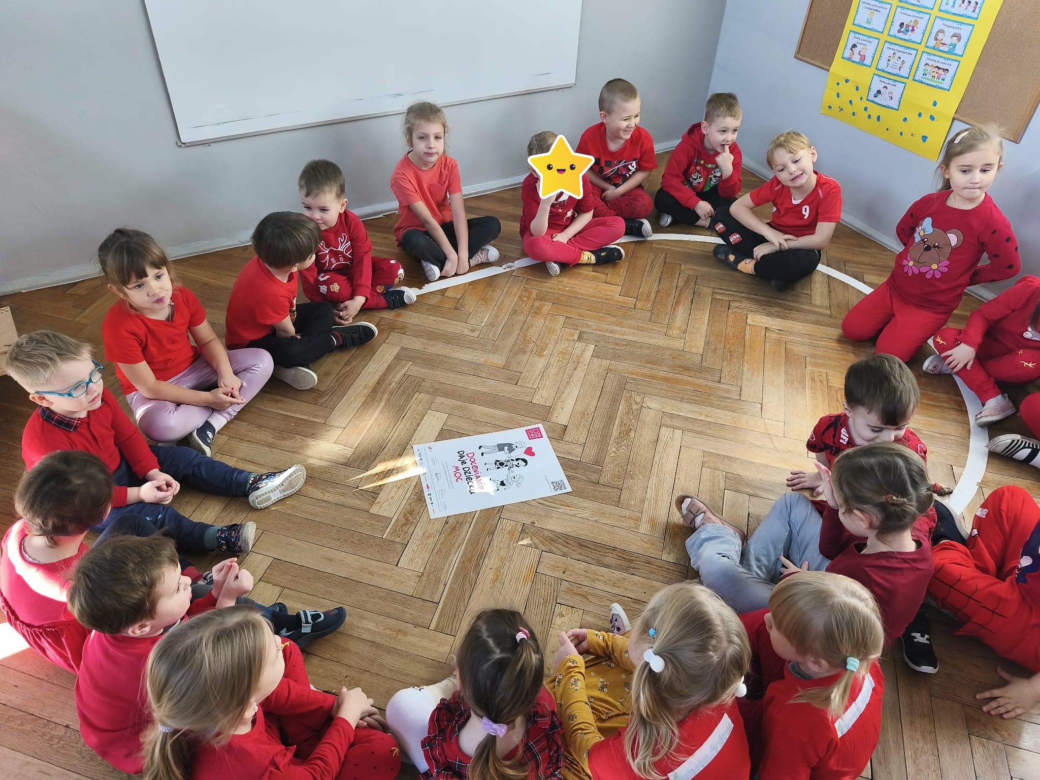 W środę podsumowaliśmy akcję Dzieciństwo bez przemocy rozmawiając o prawie do życia bez przemocy i ubierając się na czerwono. Wyszliśmy również poza mury naszego przedszkola- na skwer Kolbego, by rozdawać ulotki dotyczące tego tematu. Ludzie, których spotkaliśmy byli bardzo mili i życzliwi.