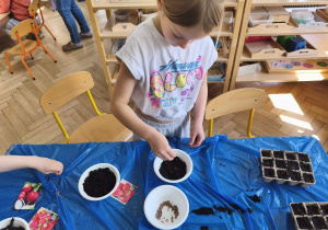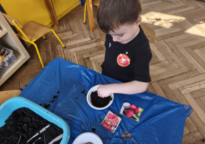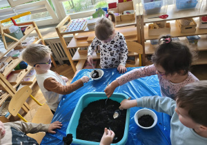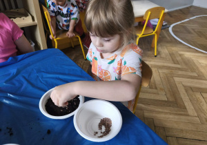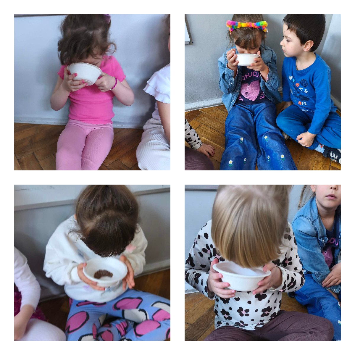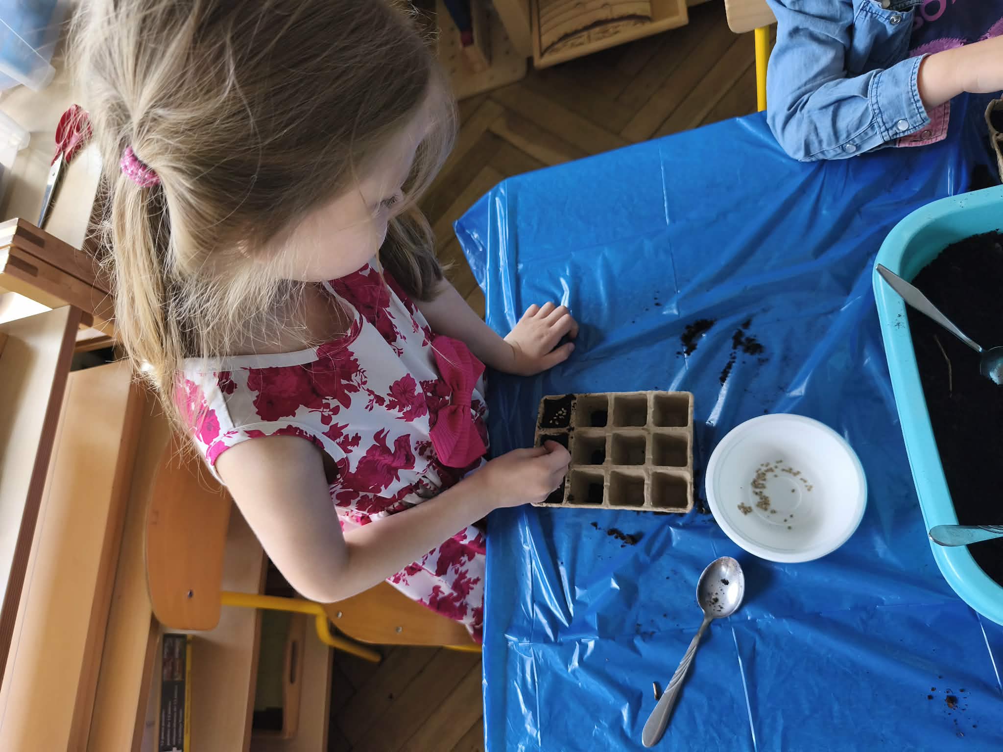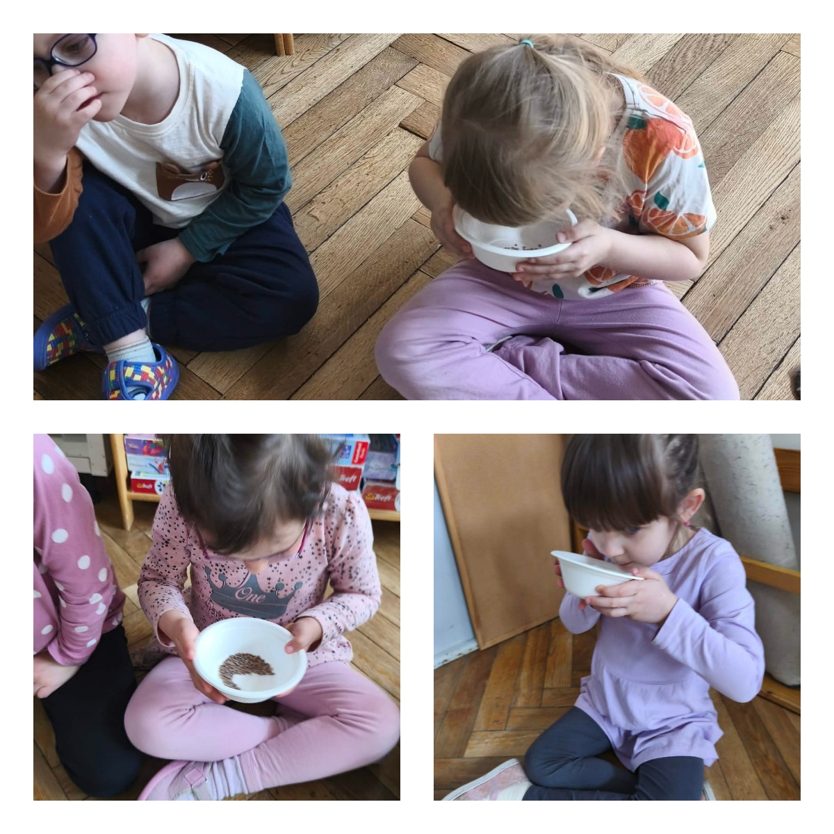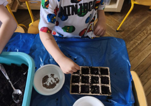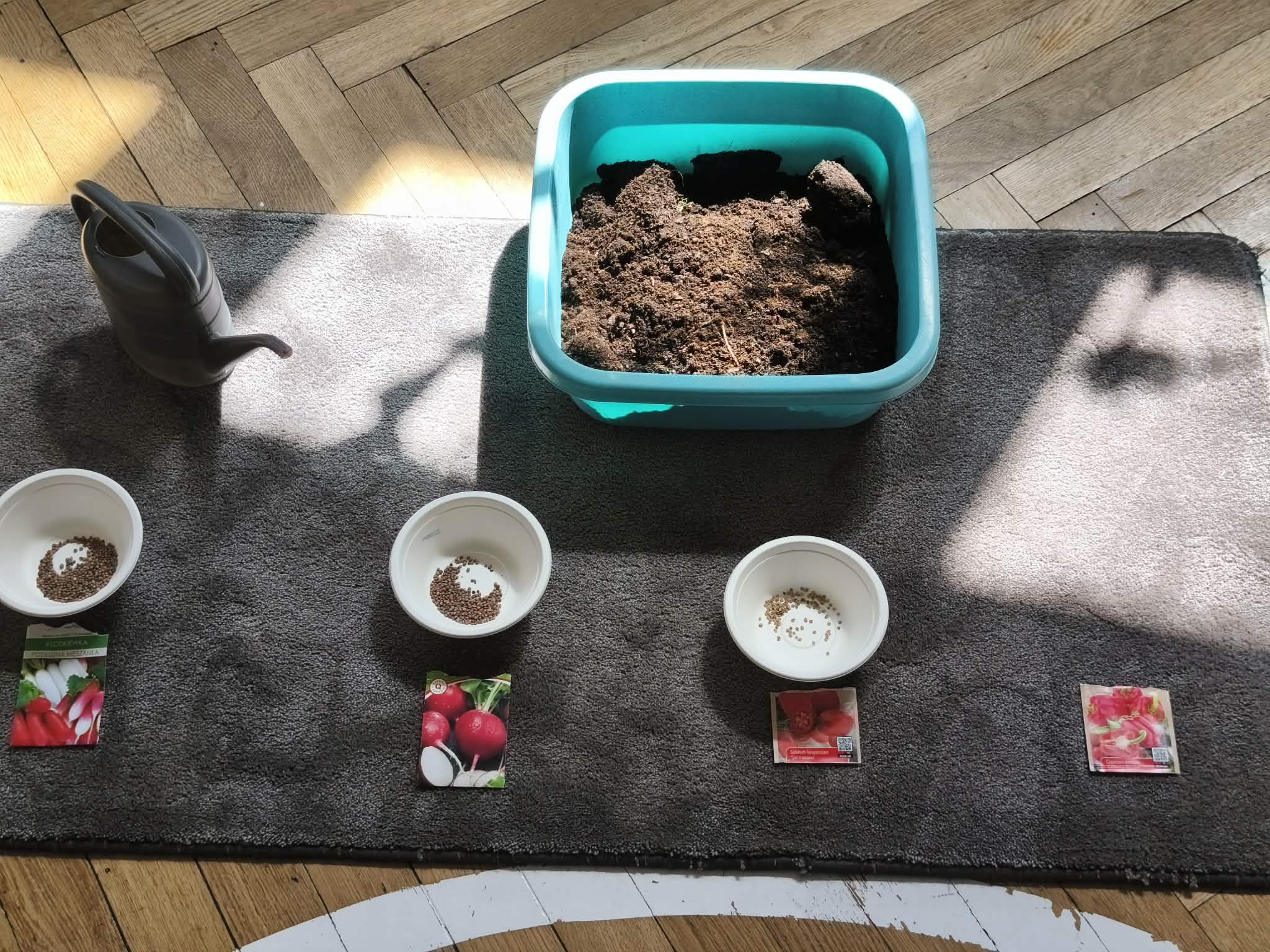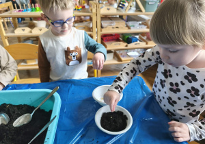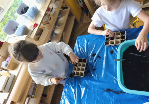 Zanim nasionka trafiły do ziemi, dzieci uważnie je badały – wąchały i obserwowały ziarenka od okrągłej i podłużnej rzodkiewki, po paprykę i pomidorki. Po części badawczej nadszedł czas na działanie – z wielką starannością posialiśmy nasze warzywa, mając nadzieję, że będzie to początek nowemu życiu w naszym ogrodzie.
