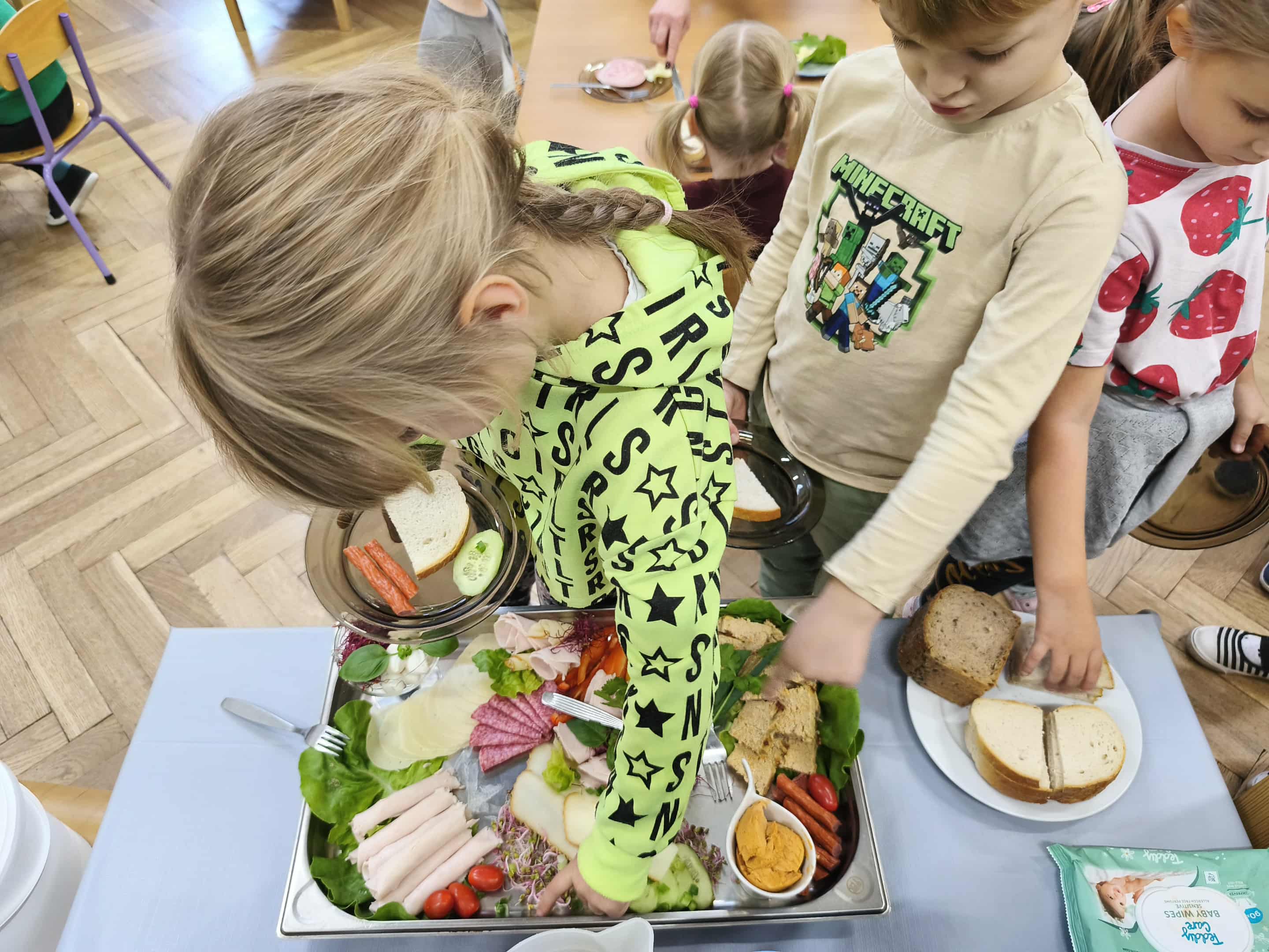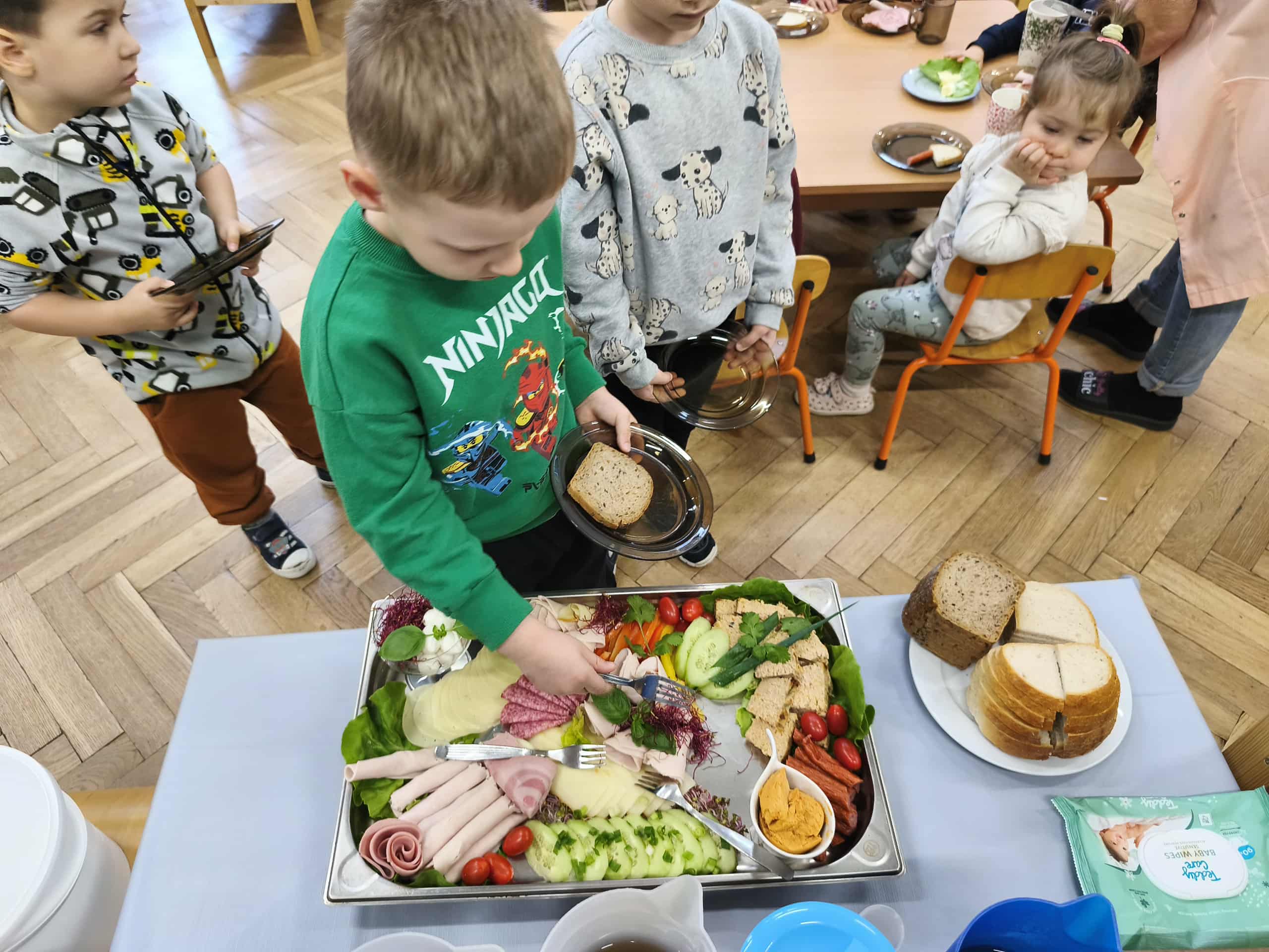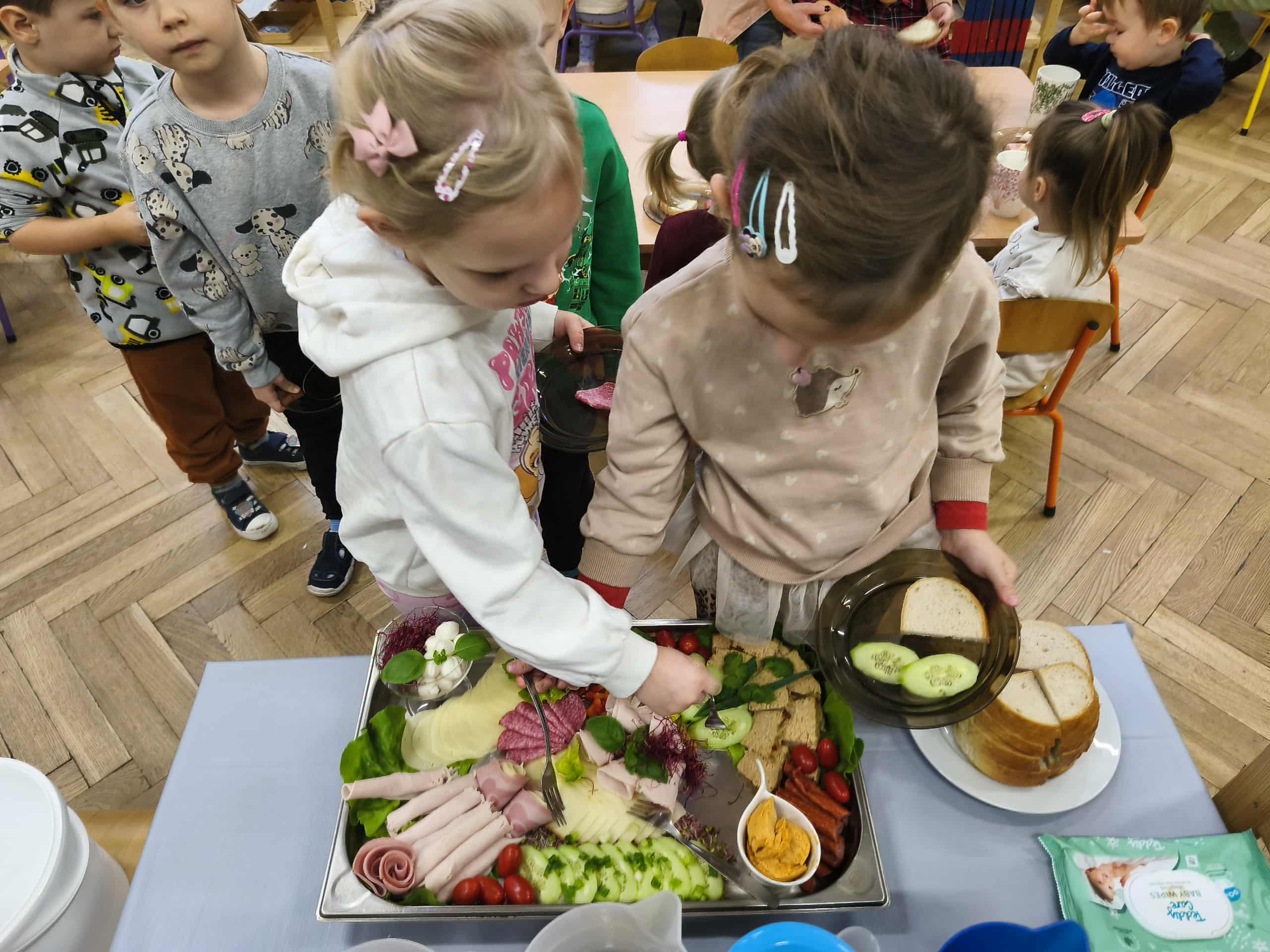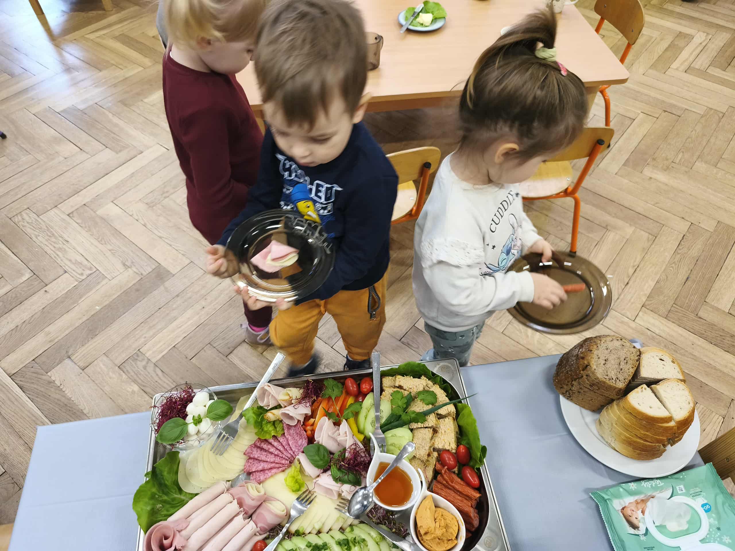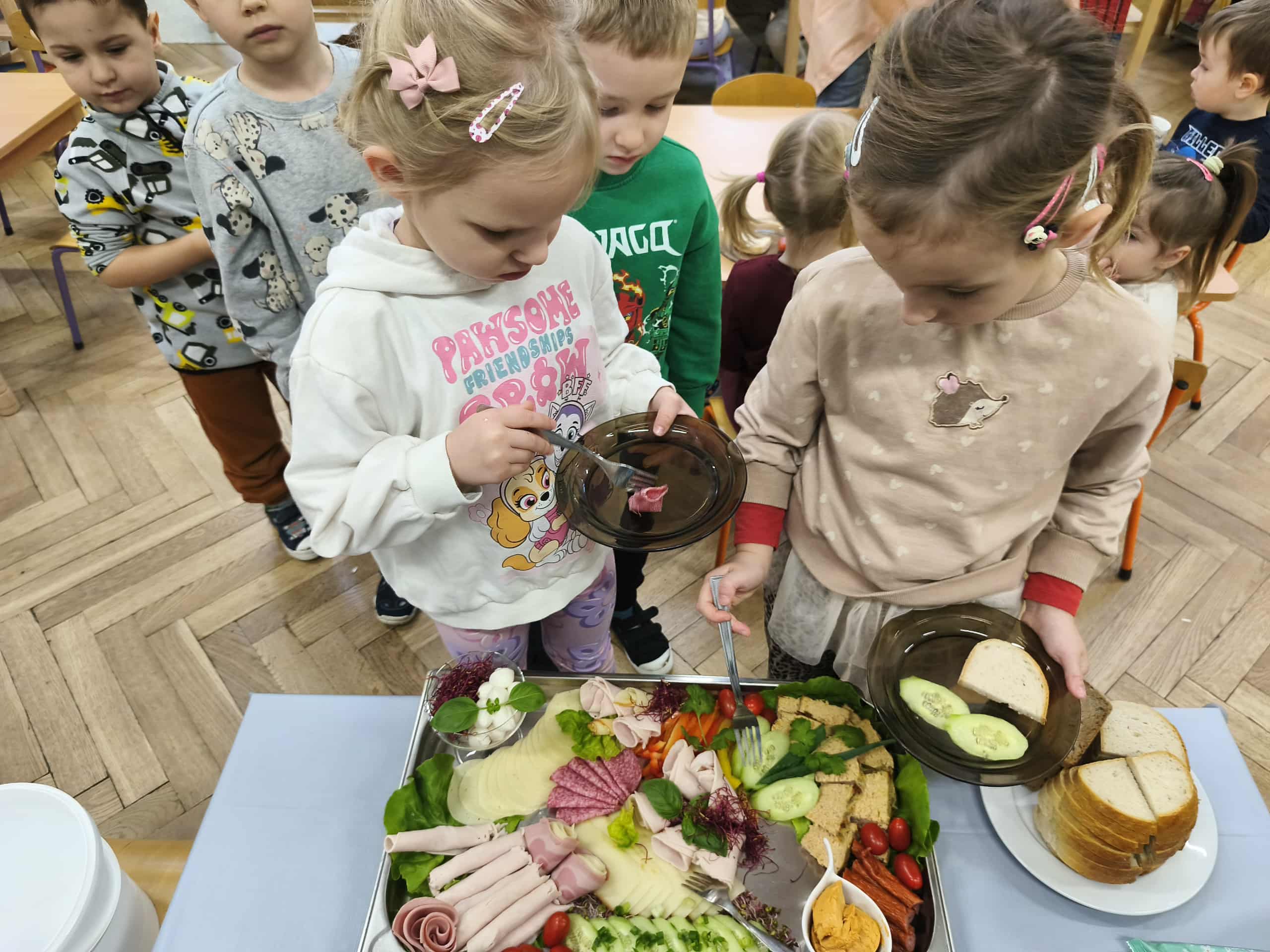 Od miesiąca października co czwartek nasze śniadania będą podawane w postaci szwedzkiego stołu. Dzieci podczas niego będą ćwiczyć oraz doskonalić swoją sprawność manualną - smarując samodzielnie chleb masłem. Wszystkim bardzo taki sposób podania się podoba, gdyż mają oni wtedy wybór i samodzielnie decydują, o tym co zjedzą.