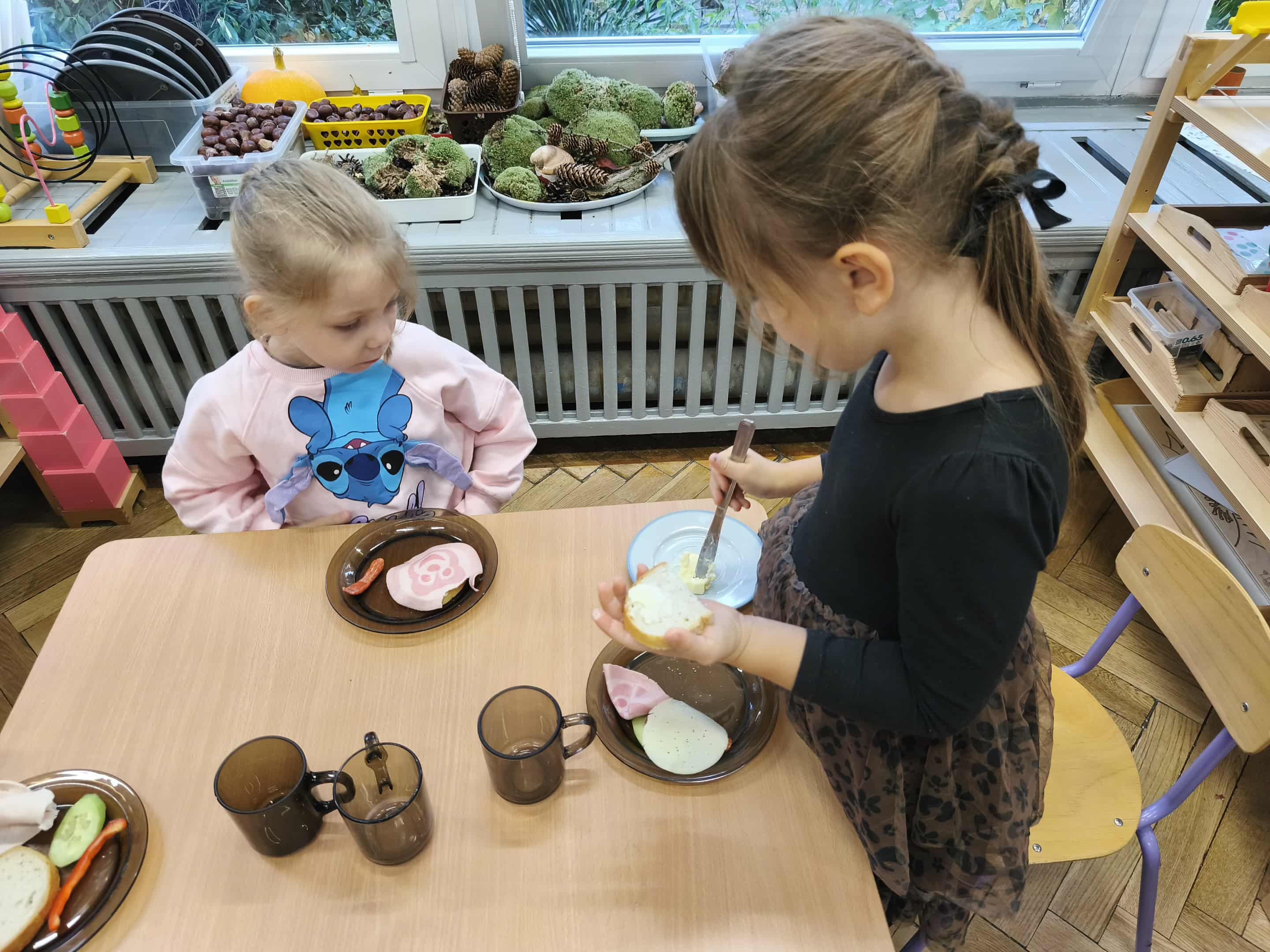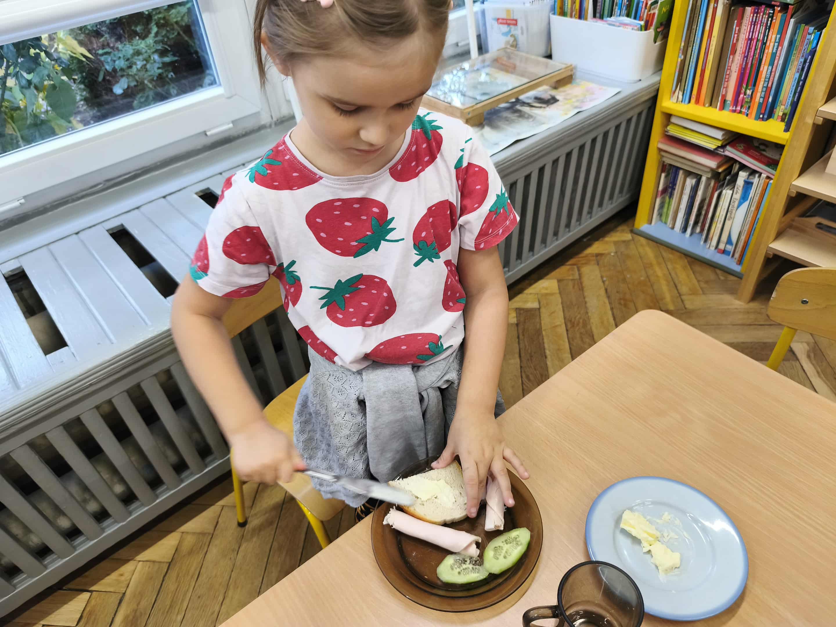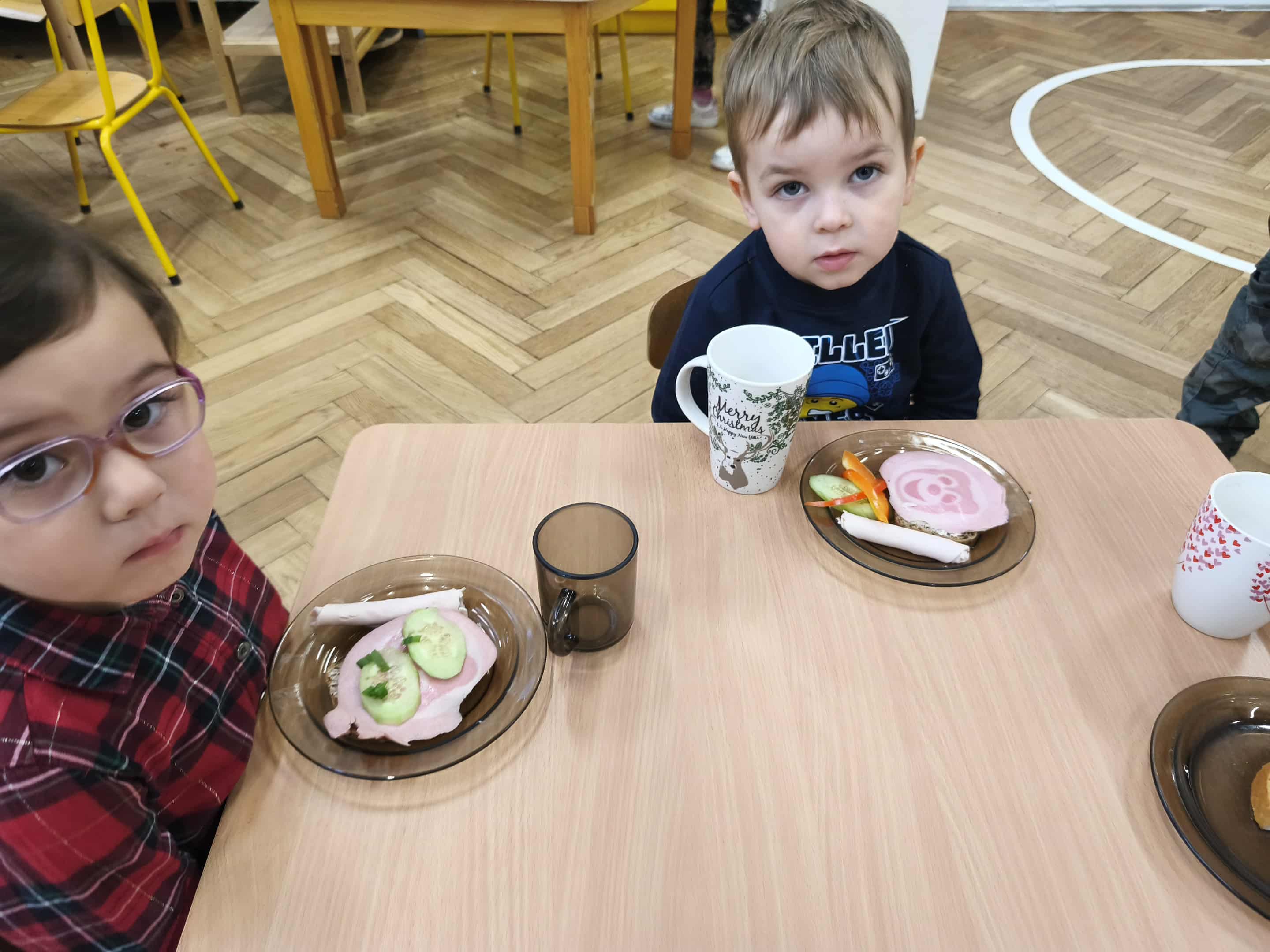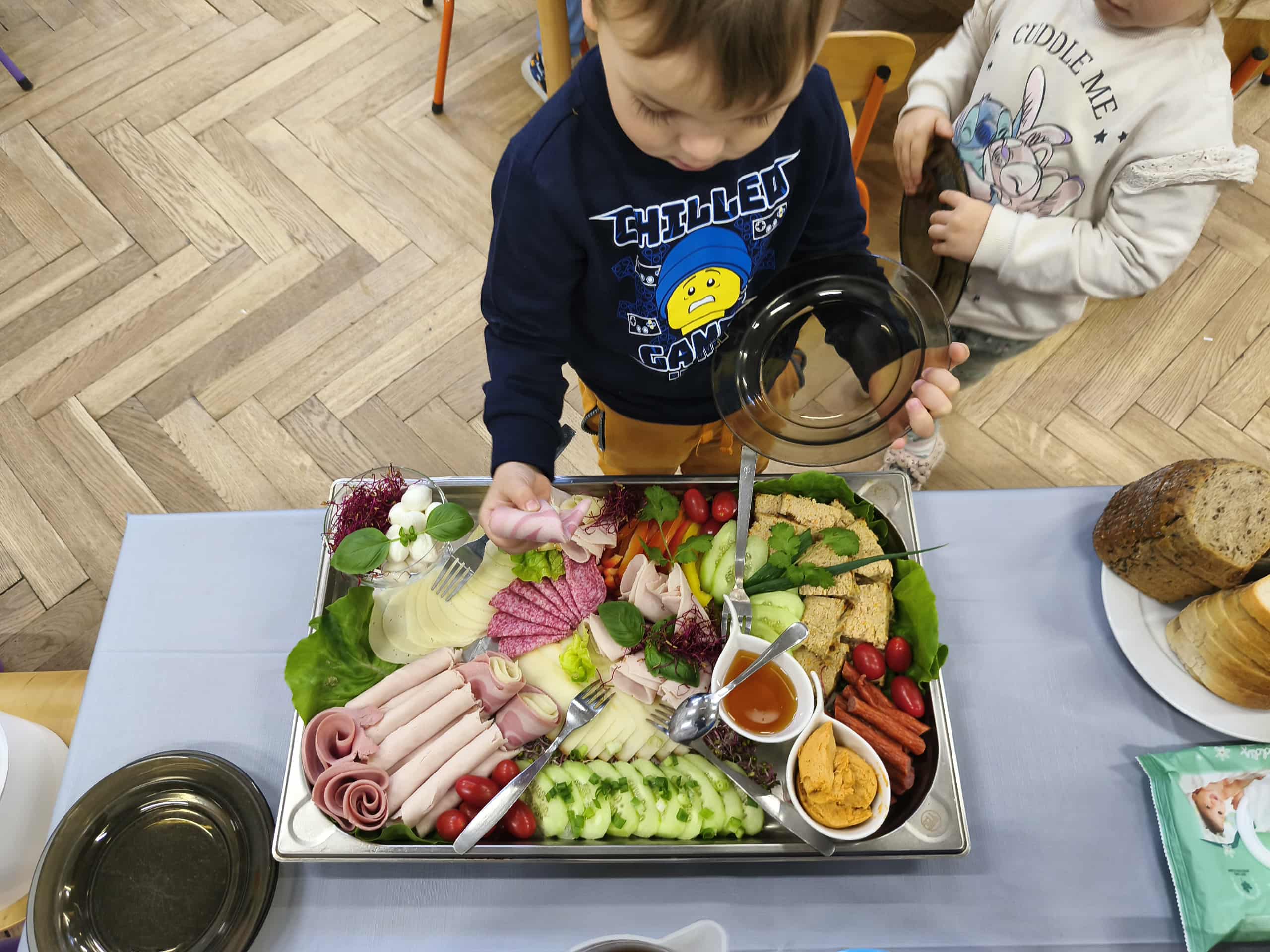 Od miesiąca października co czwartek nasze śniadania będą podawane w postaci szwedzkiego stołu. Dzieci podczas niego będą ćwiczyć oraz doskonalić swoją sprawność manualną - smarując samodzielnie chleb masłem. Wszystkim bardzo taki sposób podania się podoba, gdyż mają oni wtedy wybór i samodzielnie decydują, o tym co zjedzą.