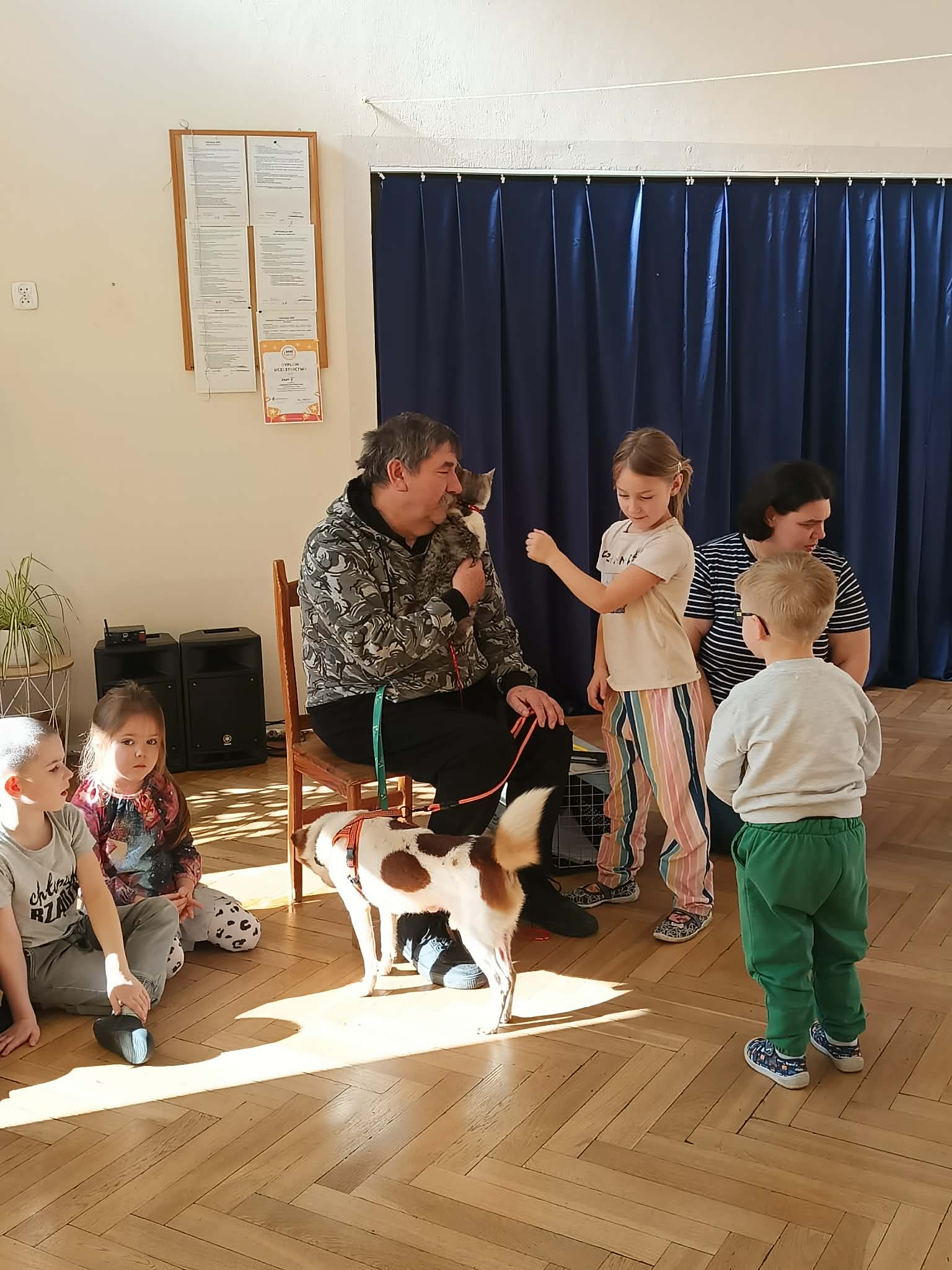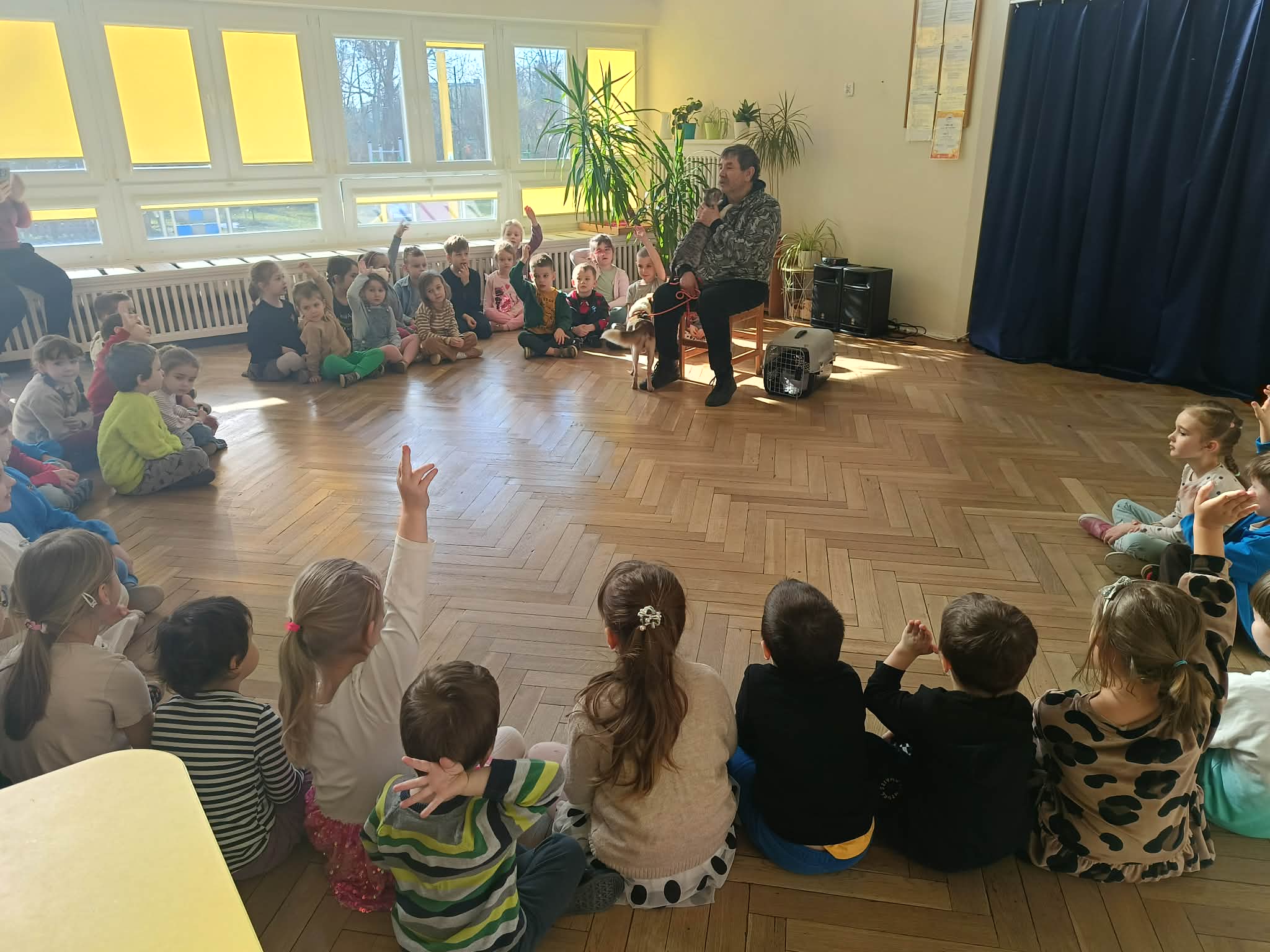 Dziś w ramach podziękowania za zbiórkę odwiedził nas przedstawiciel Fundacji Azyl wraz z dwoma zwierzątkami- pieskiem i kotkiem. Pan z Fundacji opowiedział nam o swojej pracy oraz o tym jak powinniśmy zachowywać się w towarzystwie zwierząt- nie tylko psów i kotów, ale też tych nieudomowionych gatunków. Warto przy tym wspomnieć, że fundacja ratuje zwierzęta także te dzikie- leczy je, pomaga wrócić na łono natury, a jeśli nie jest to możliwie to obejmuje swoją opieką.