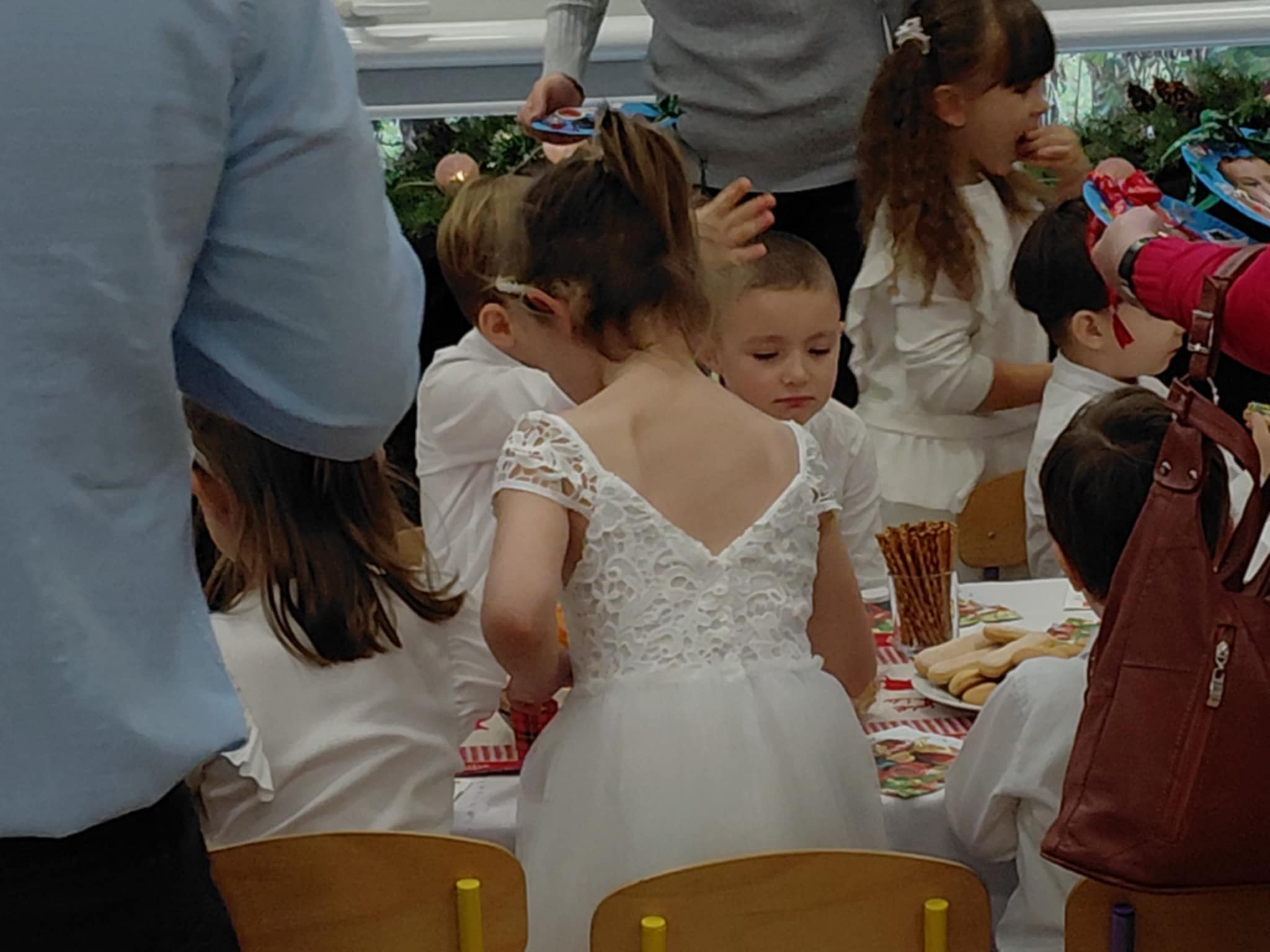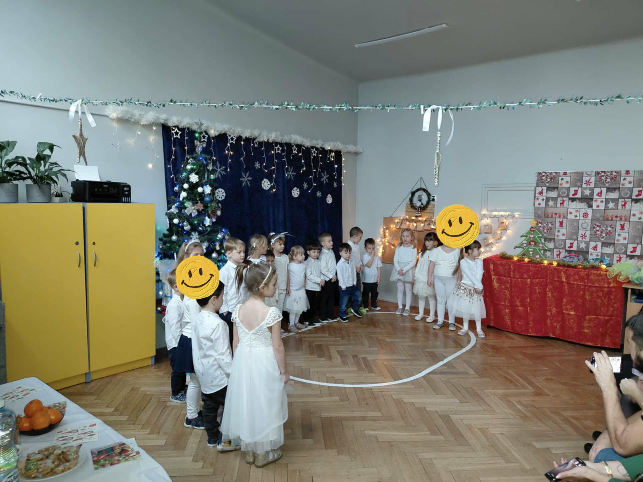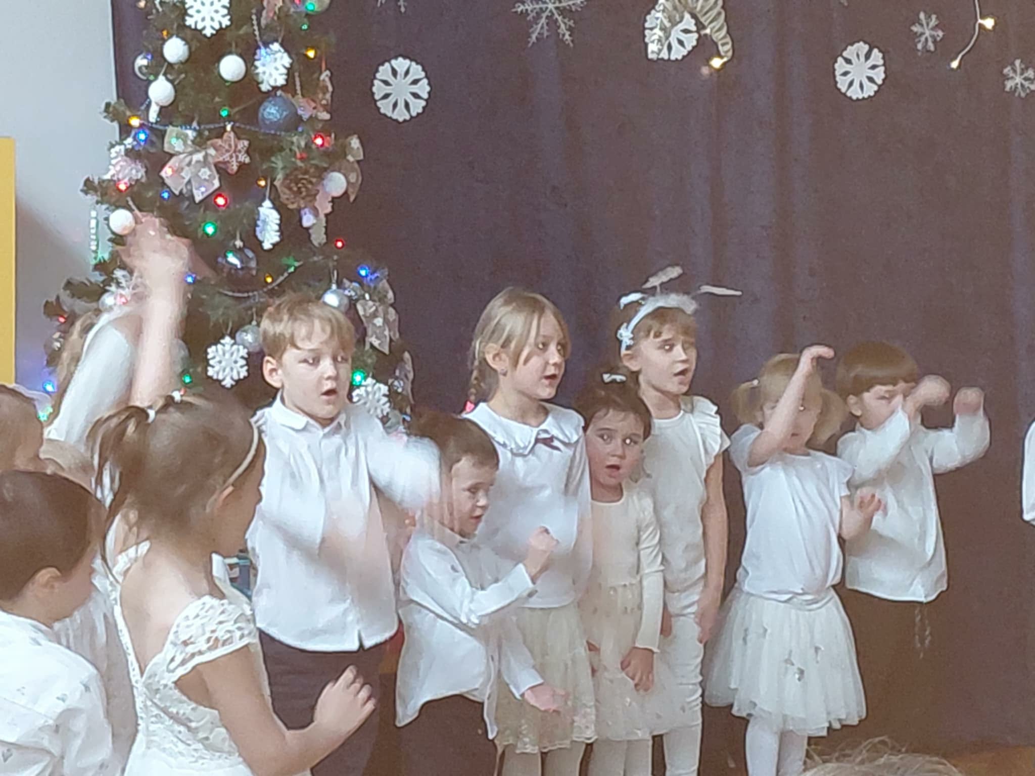 W dniu 16.12.2025r. wszystkie dzieci spotkały się wraz ze swoimi rodzicami na Spotkaniu Świątecznym. Zaprezentowały nauczone wiersze, piosenki o charakterze świątecznym, taniec i wręczyły kolorowe bombki.