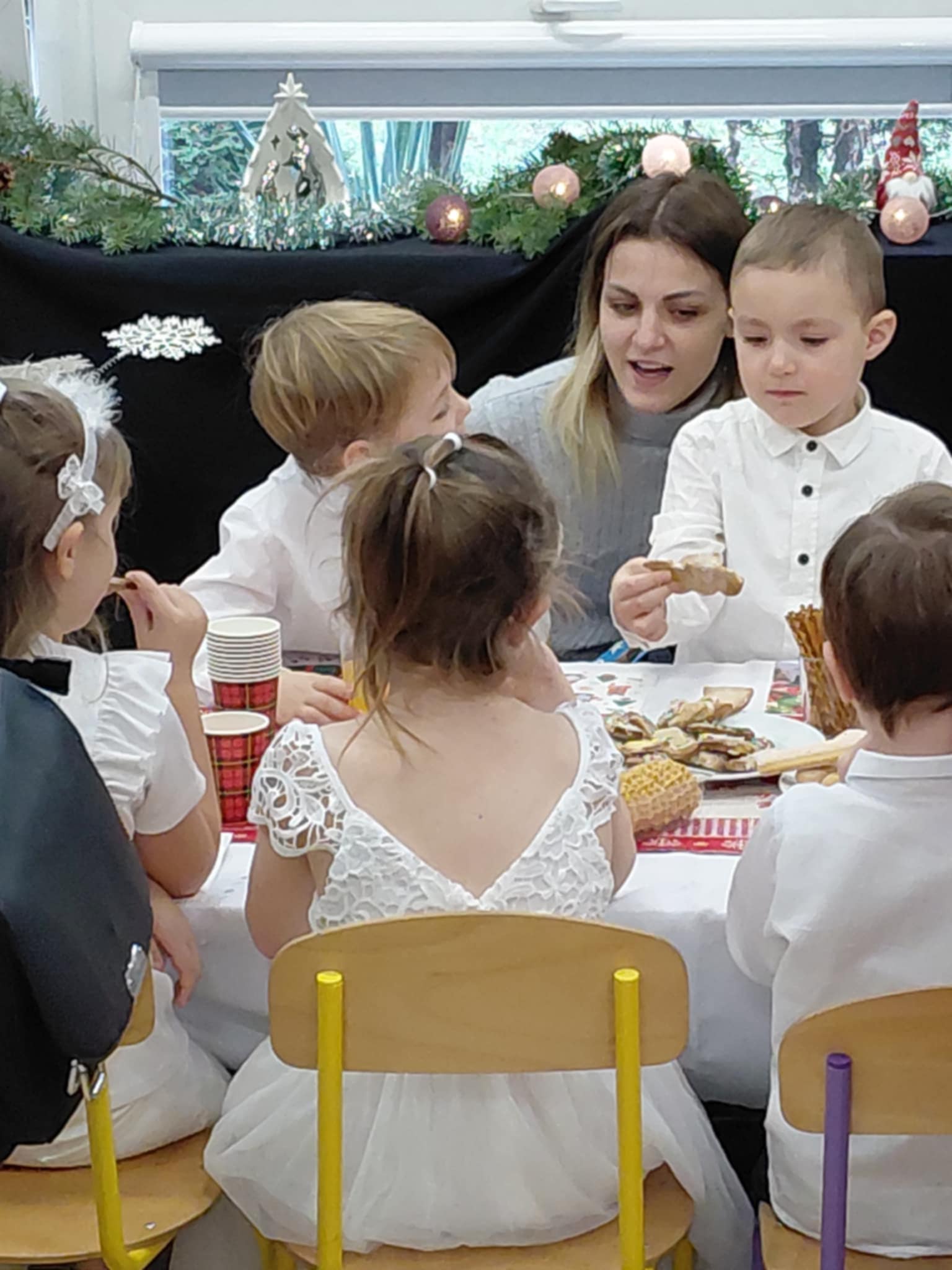 Na wspólnym kolędowaniu i słuchaniu pastorałek upływał miło i przyjemnie czas. Wierzymy, że wspólne świętowanie na długo zostanie w pamięci dzieci i rodziców, a także będzie miłym wstępem do przeżywania