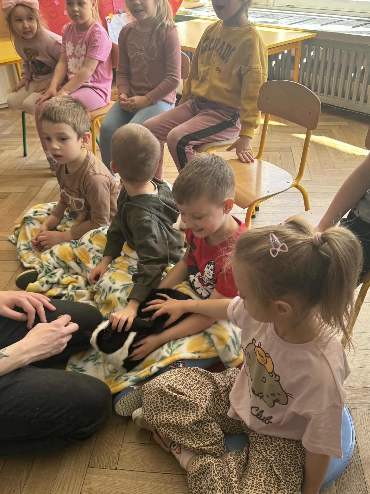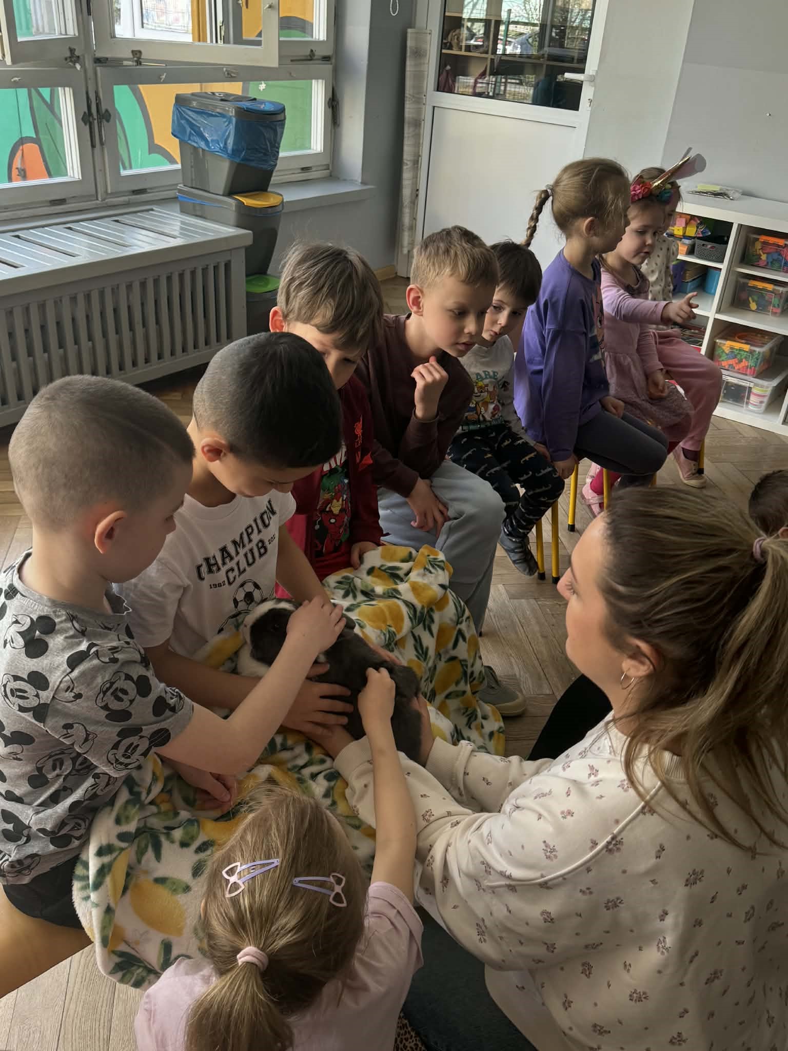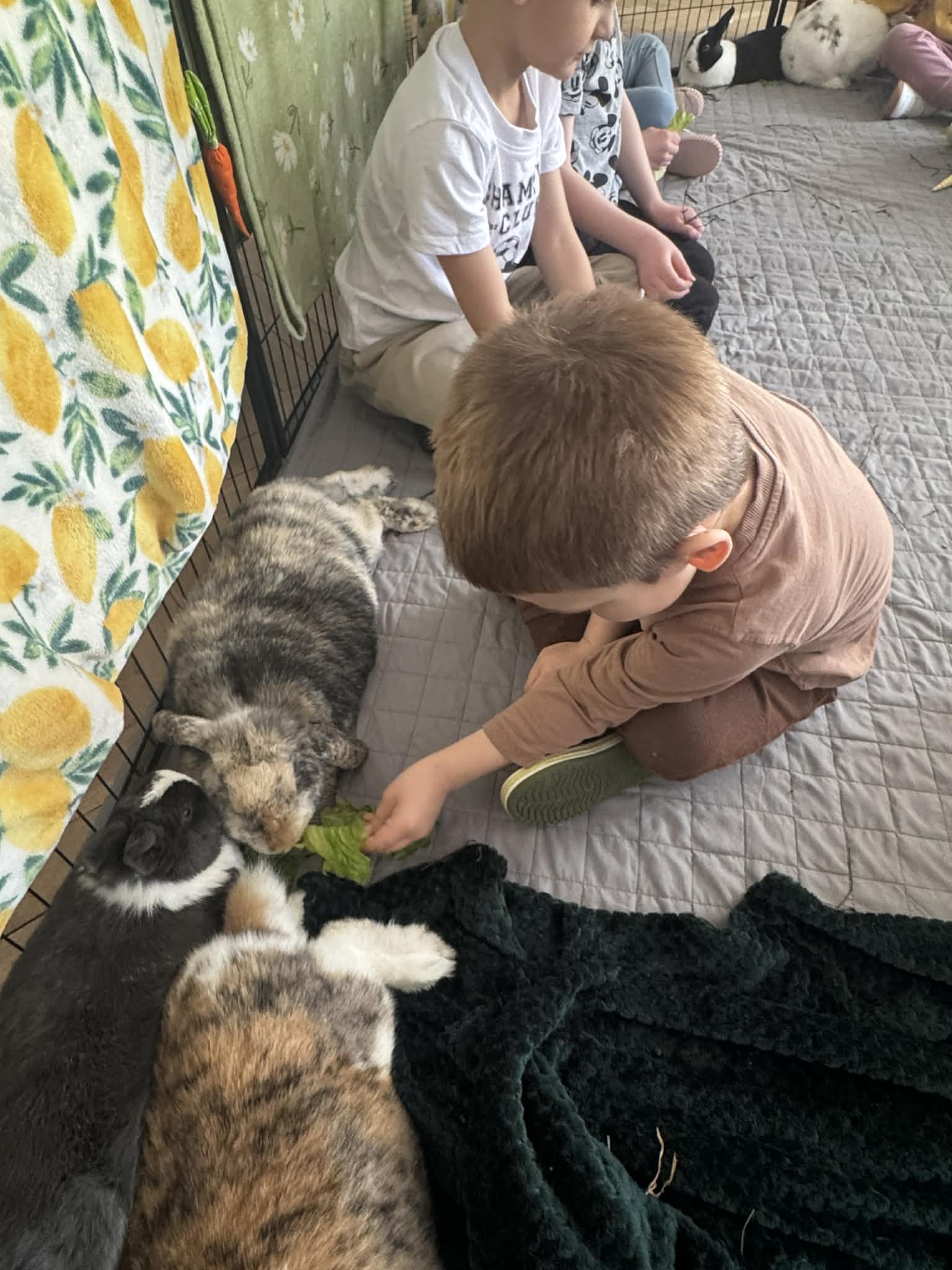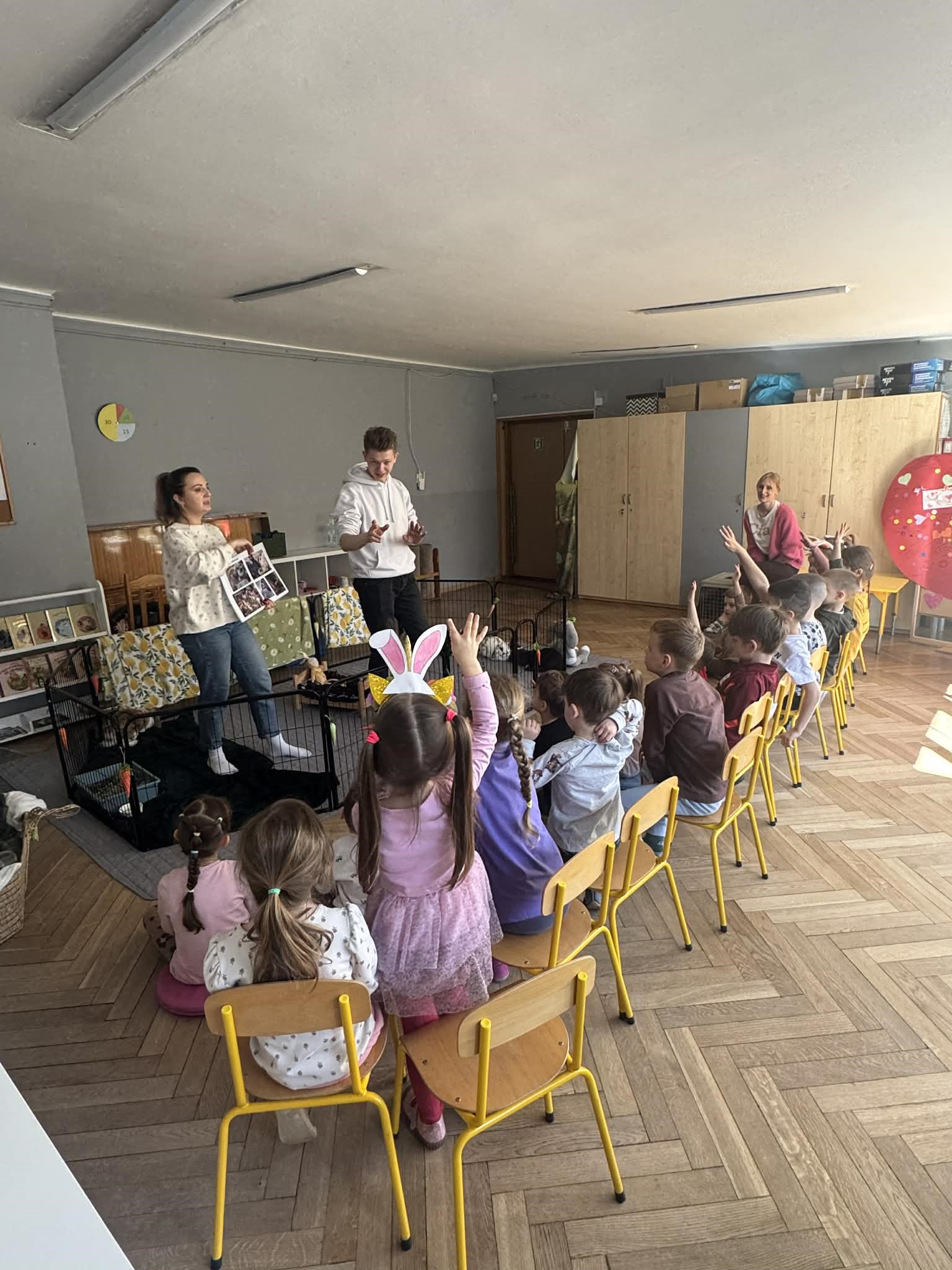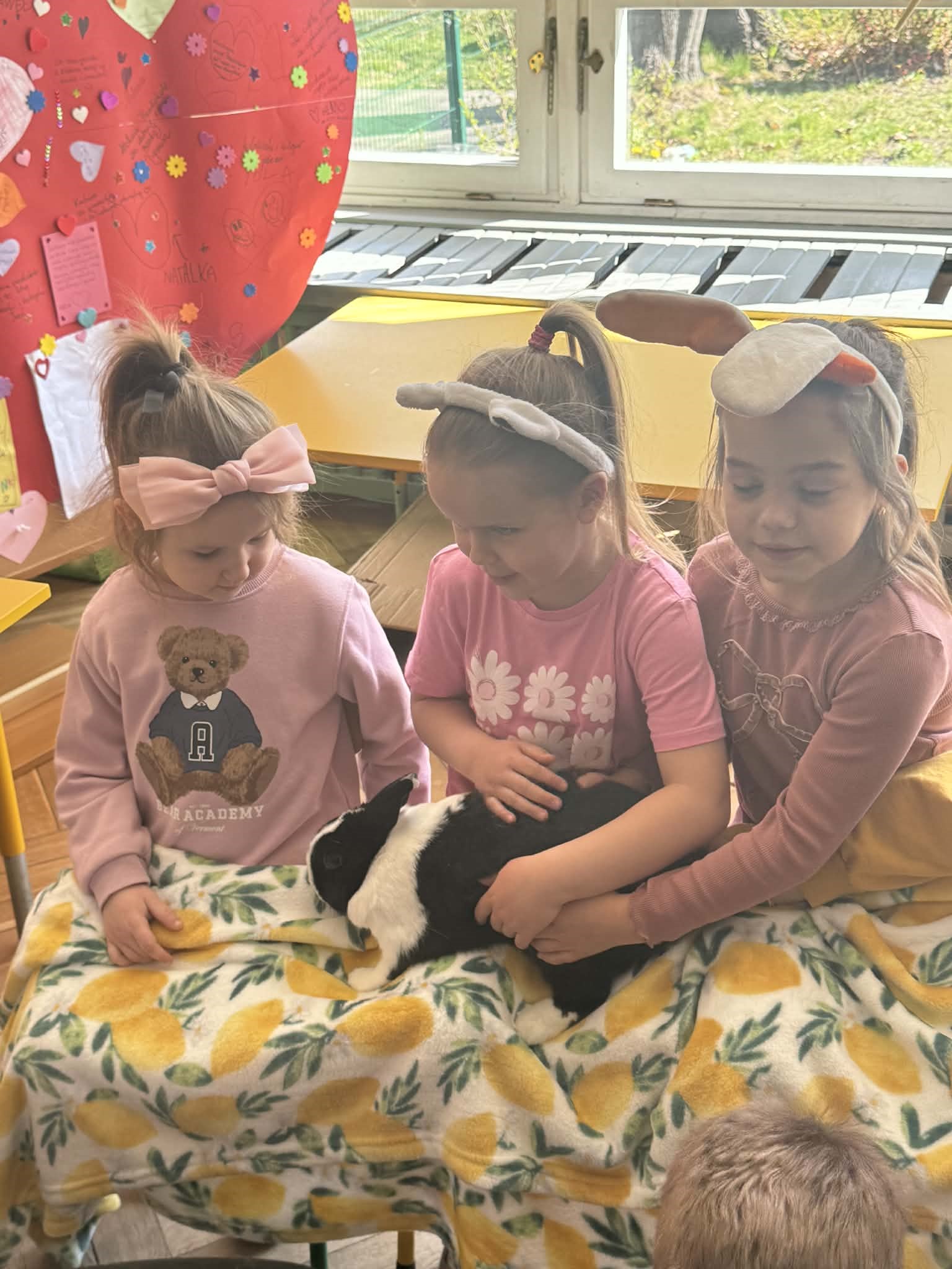 Dziś dzieci miały okazje spotkać się z cudownymi, puchatymi królikami. Podczas warsztatów dowiedziały się jak żyją króliki, co lubią a czego nie, czym można je karmić i jak lubią spędzać czas. Dodatkowo mogły wziąć je na ręce, pogłaskać i przytulić się do nich. Każde dziecko miało innego faworyta. Trudno powiedzieć, który z nich był najfajniejszy.