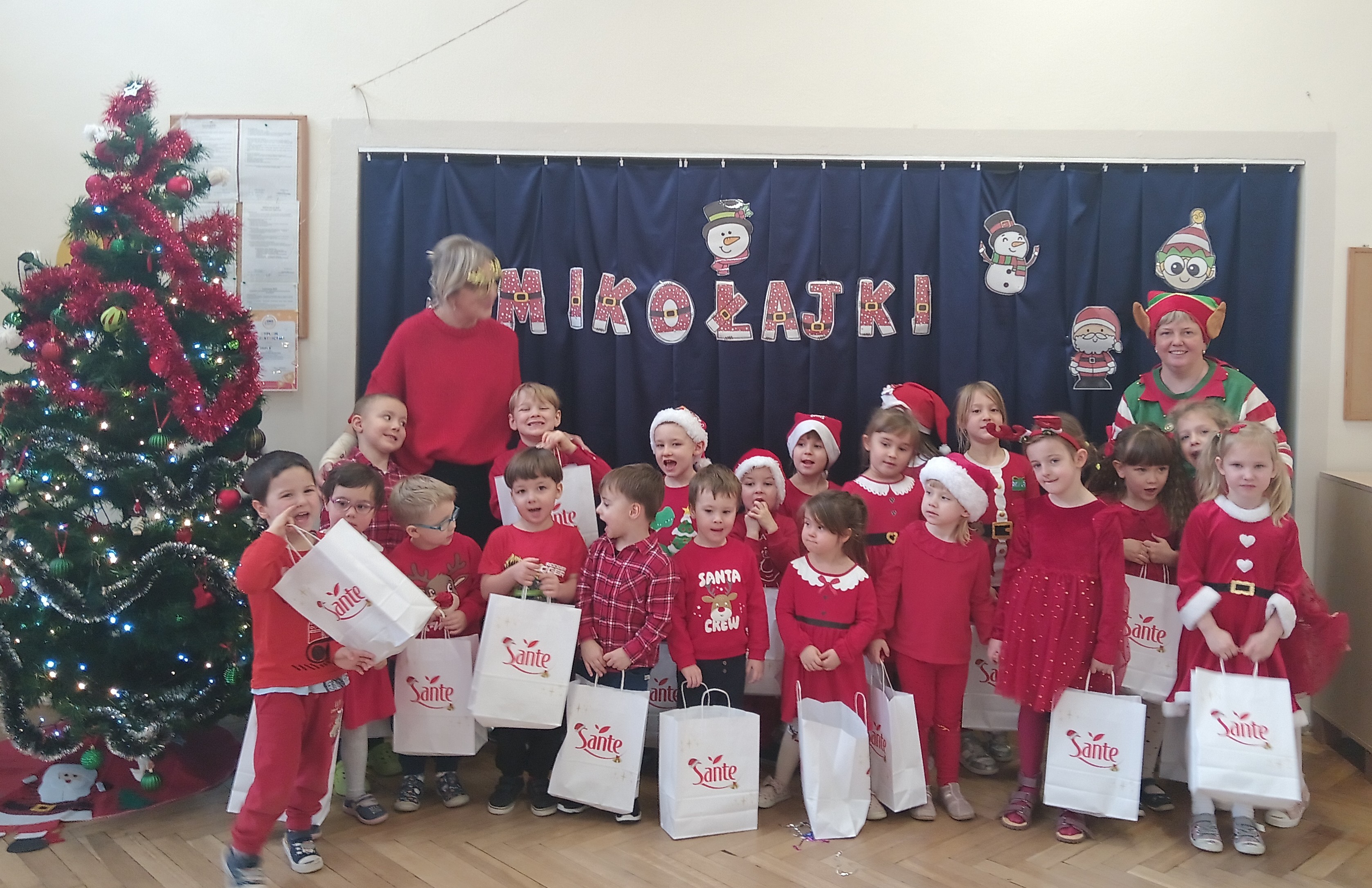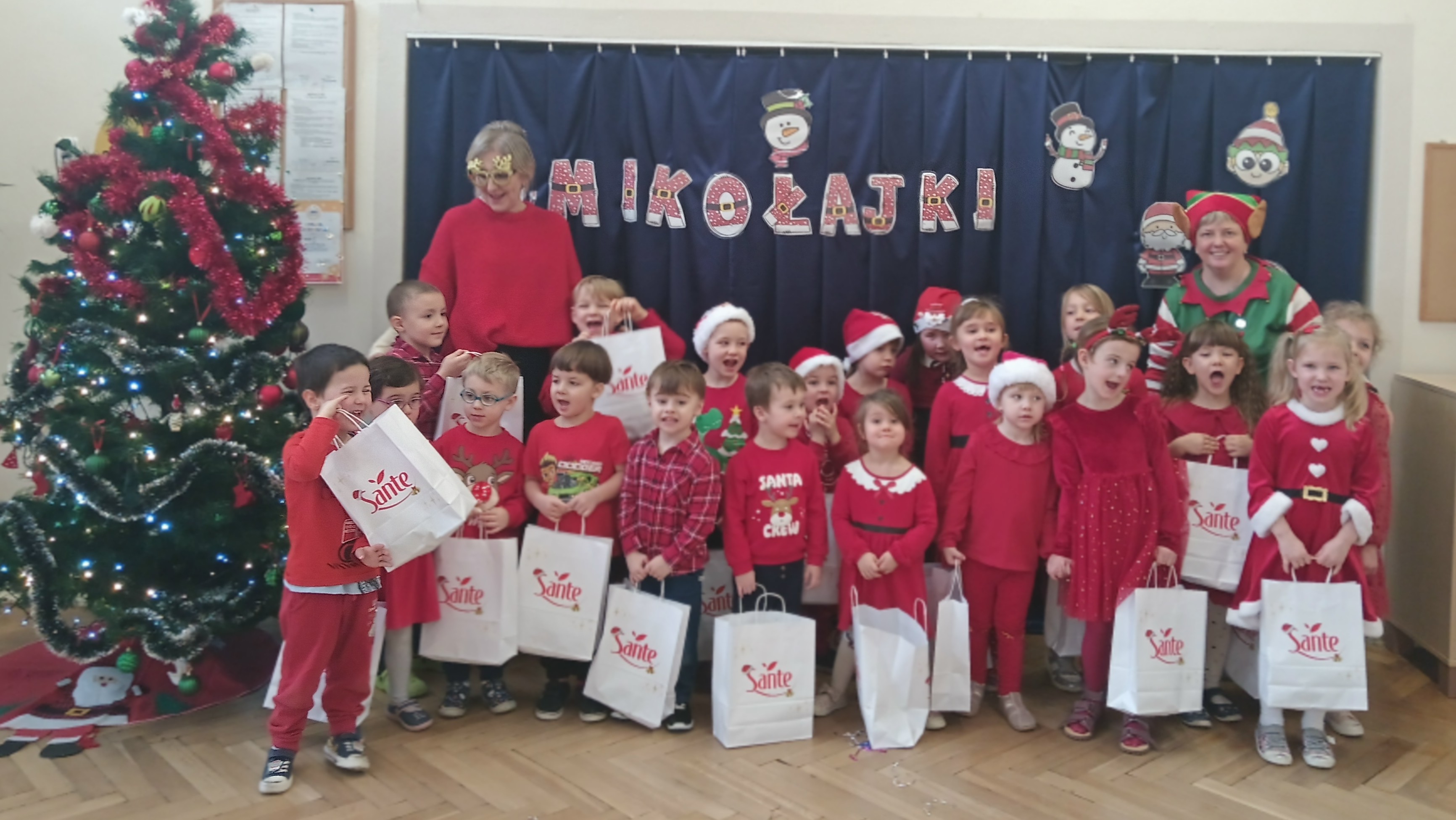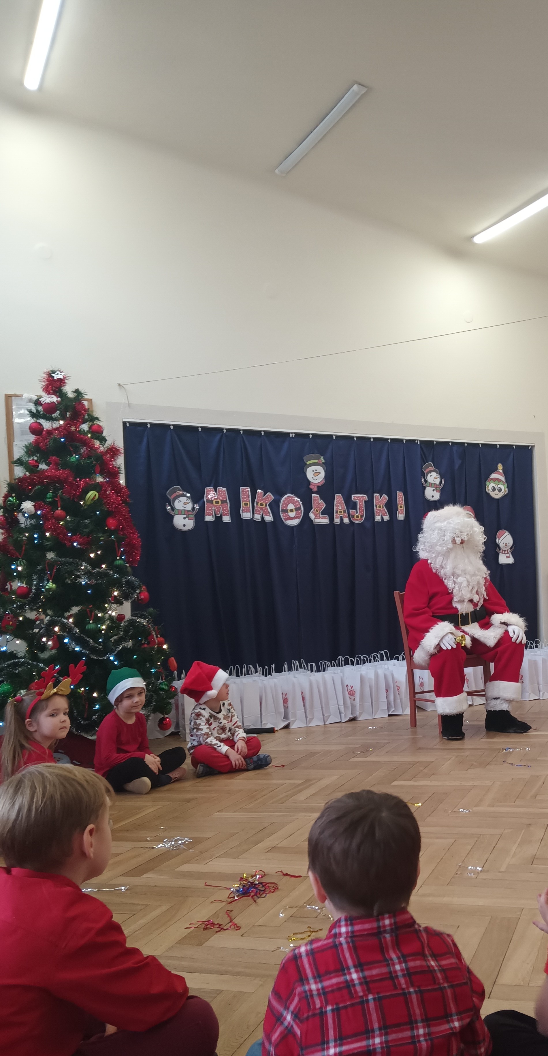 Po odczytaniu listu okazało się, że mamy w Przedszkolu gości - Mikołaja i jego żonę. Pani Mikołajowa przygotowała dla Nas mnóstwo zabaw przy muzyce. Później pojawił się Mikołaj, któremu każda z grup zaśpiewała piosenkę. Na koniec każde dziecko otrzymało prezent. To był dzień pełen atrakcji!