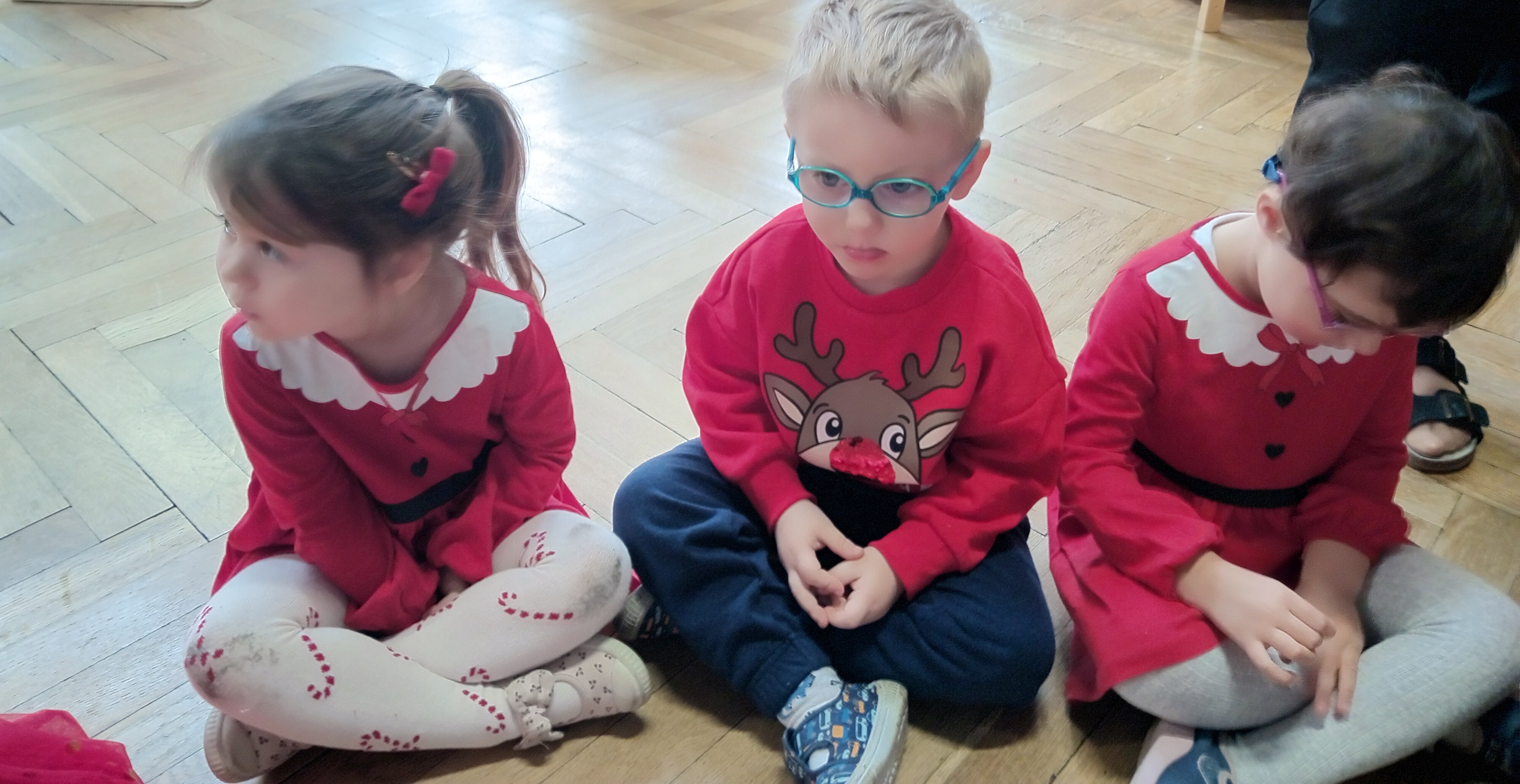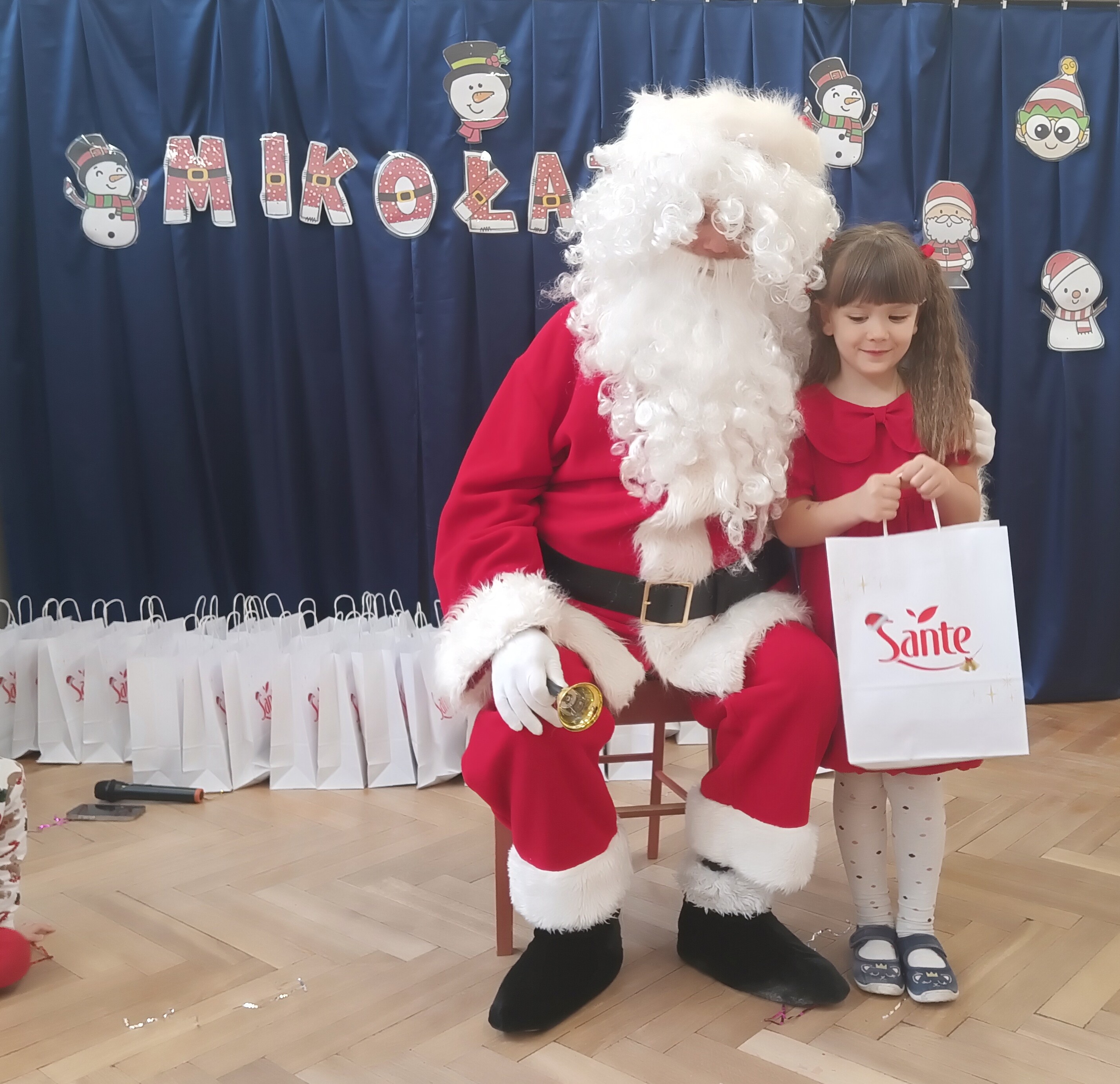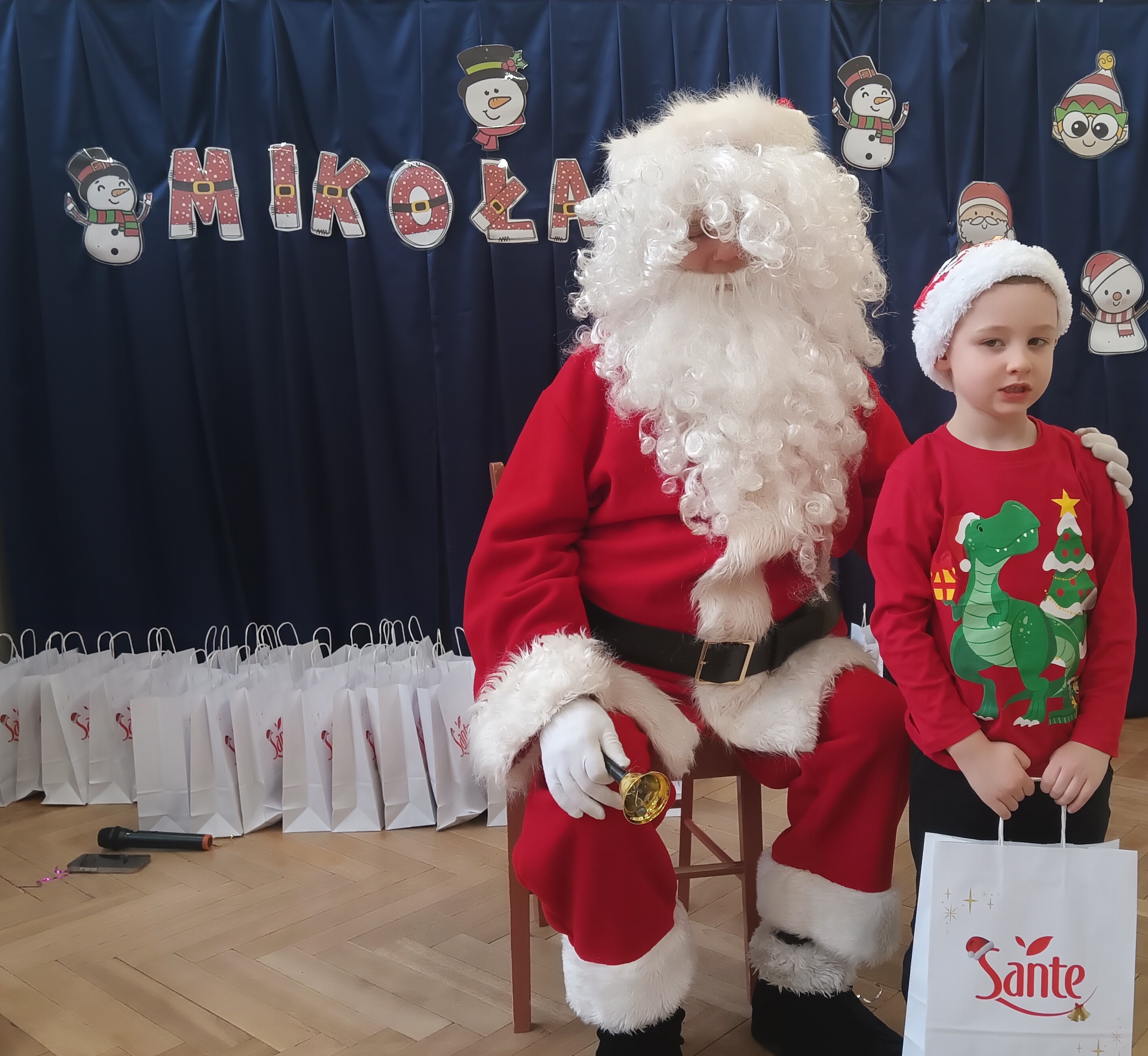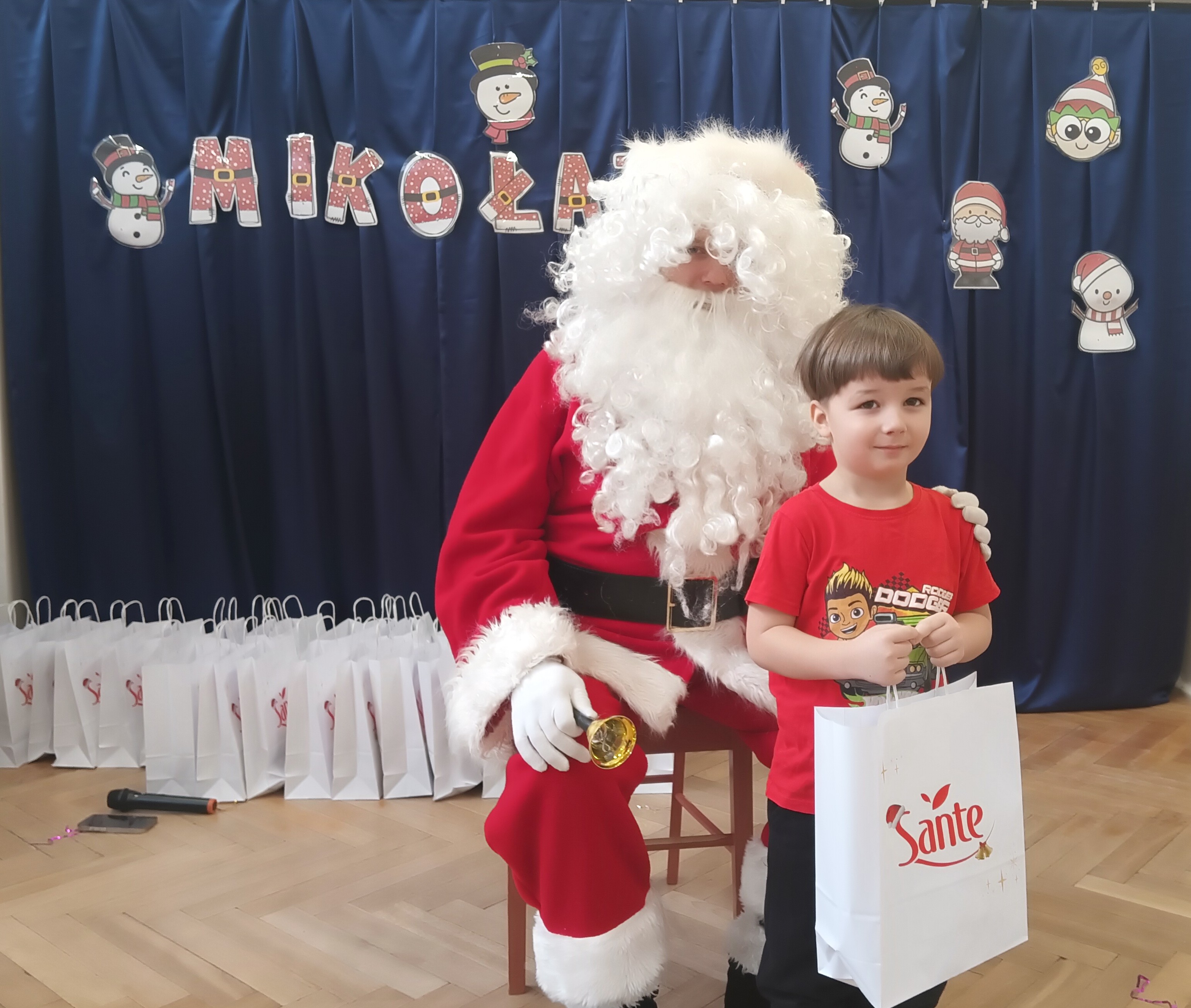 Po odczytaniu listu okazało się, że mamy w Przedszkolu gości - Mikołaja i jego żonę. Pani Mikołajowa przygotowała dla Nas mnóstwo zabaw przy muzyce. Później pojawił się Mikołaj, któremu każda z grup zaśpiewała piosenkę. Na koniec każde dziecko otrzymało prezent. To był dzień pełen atrakcji!