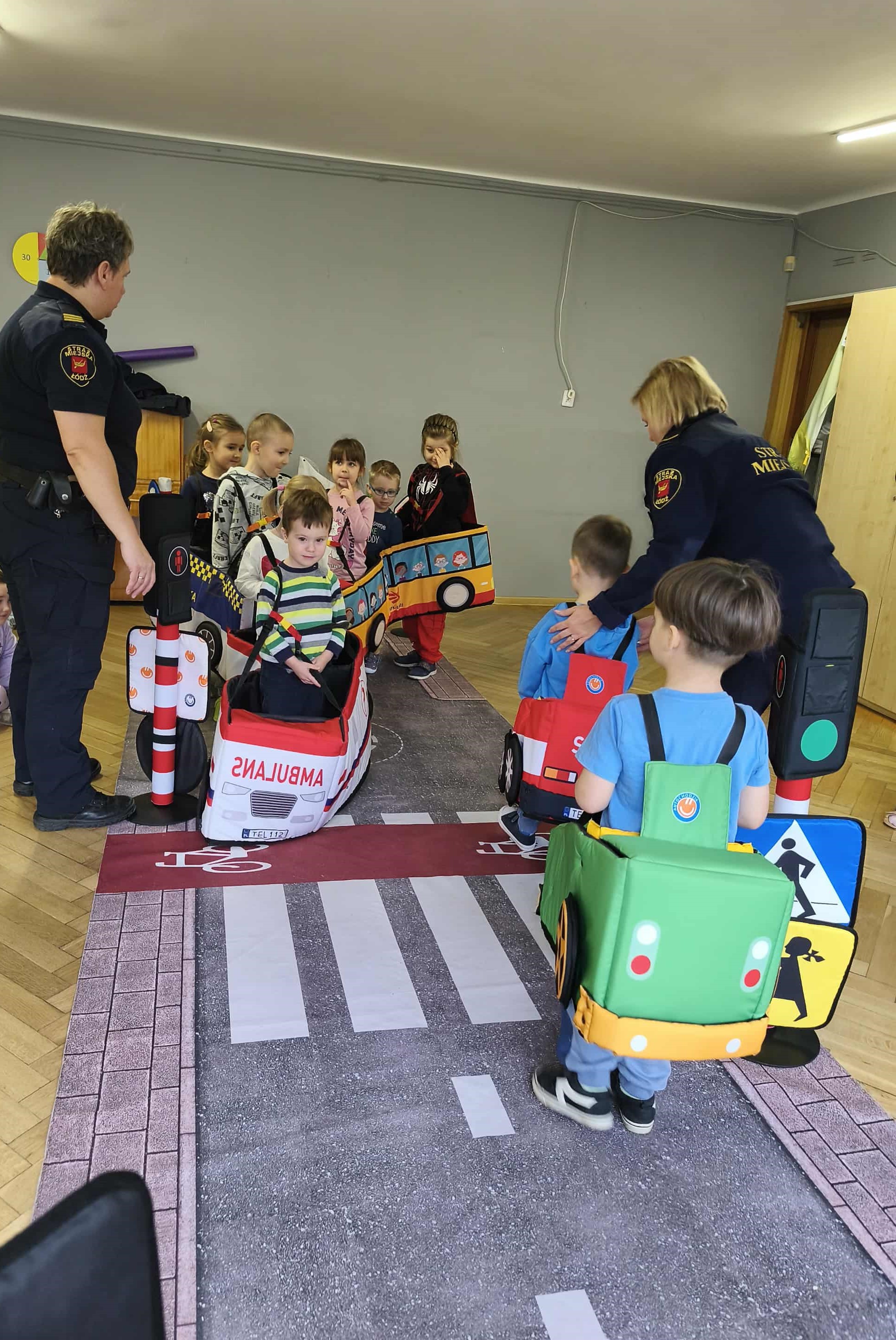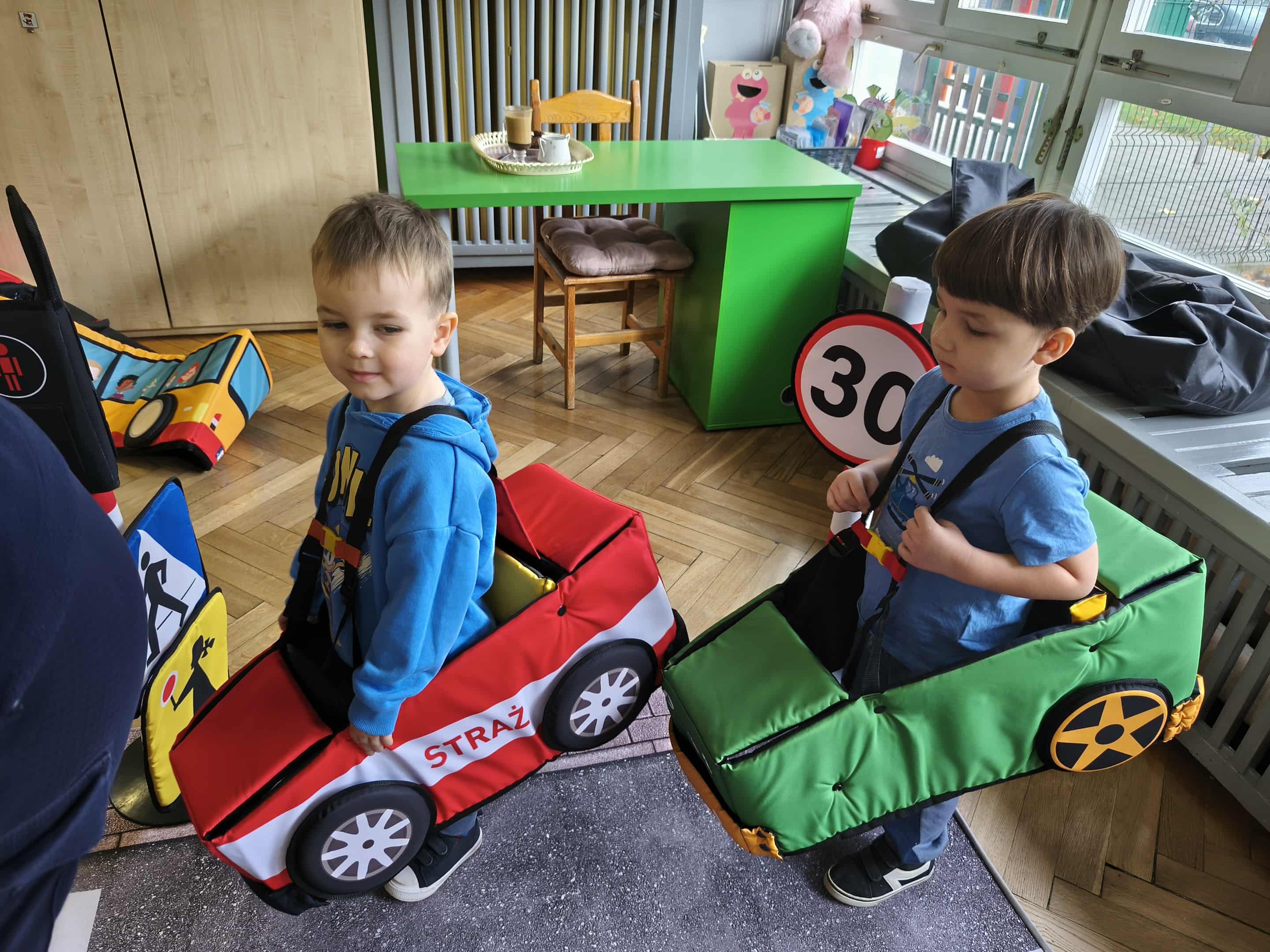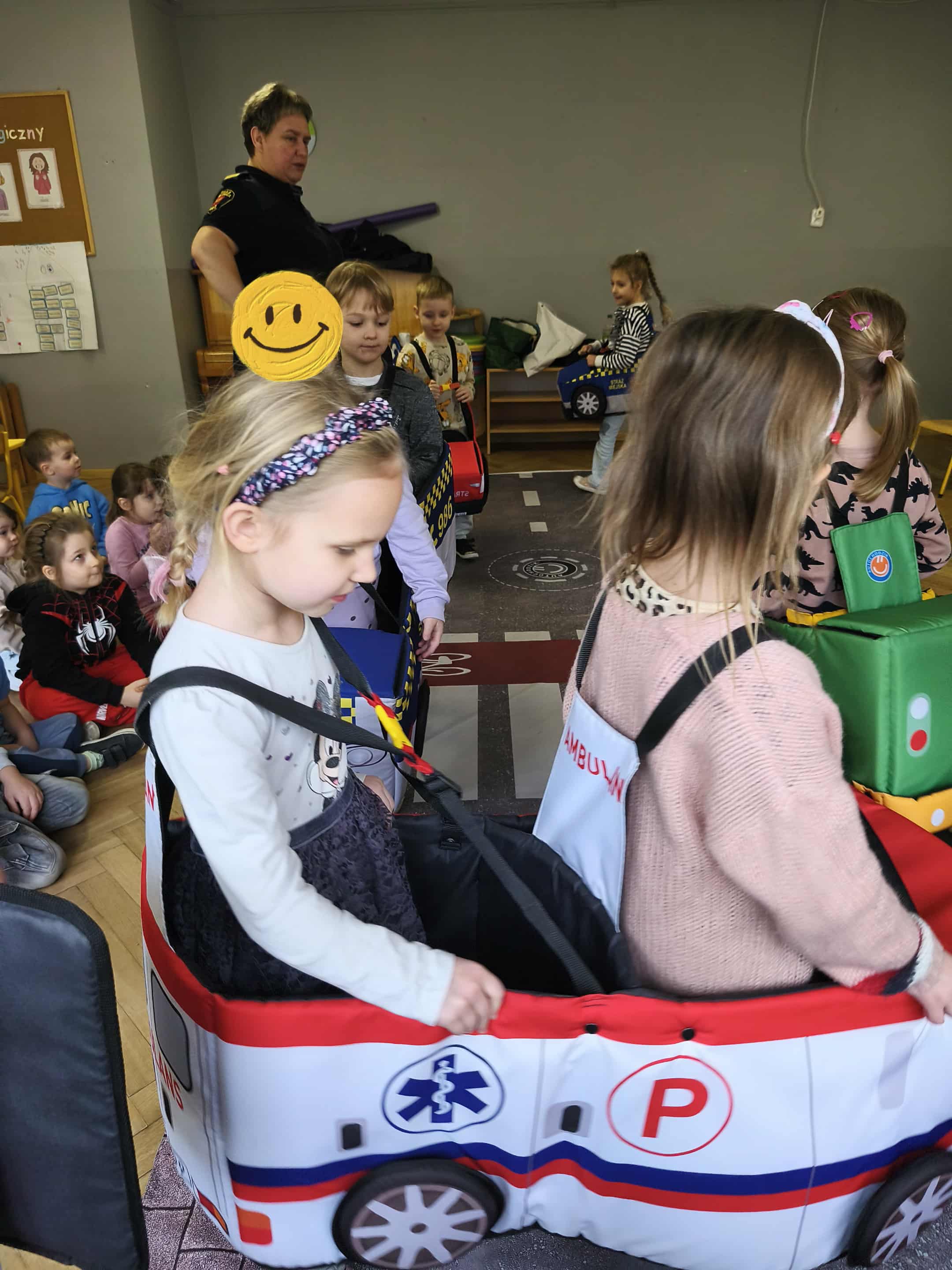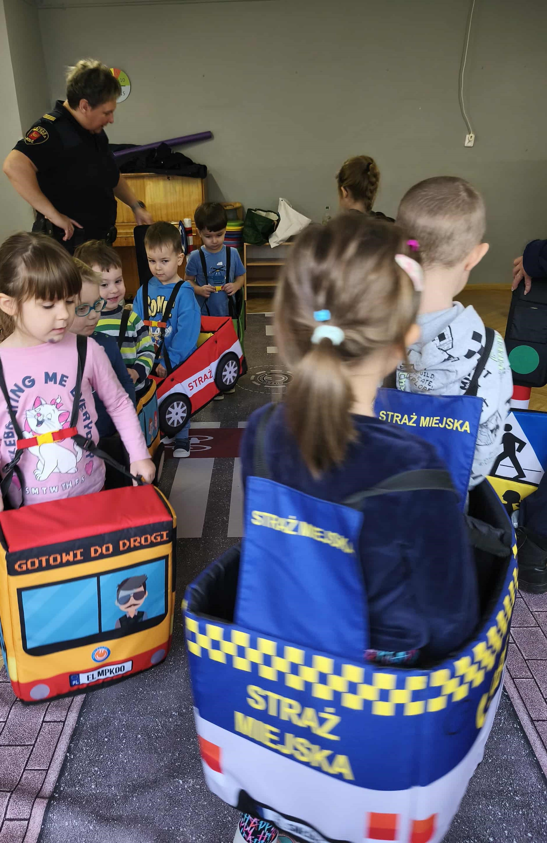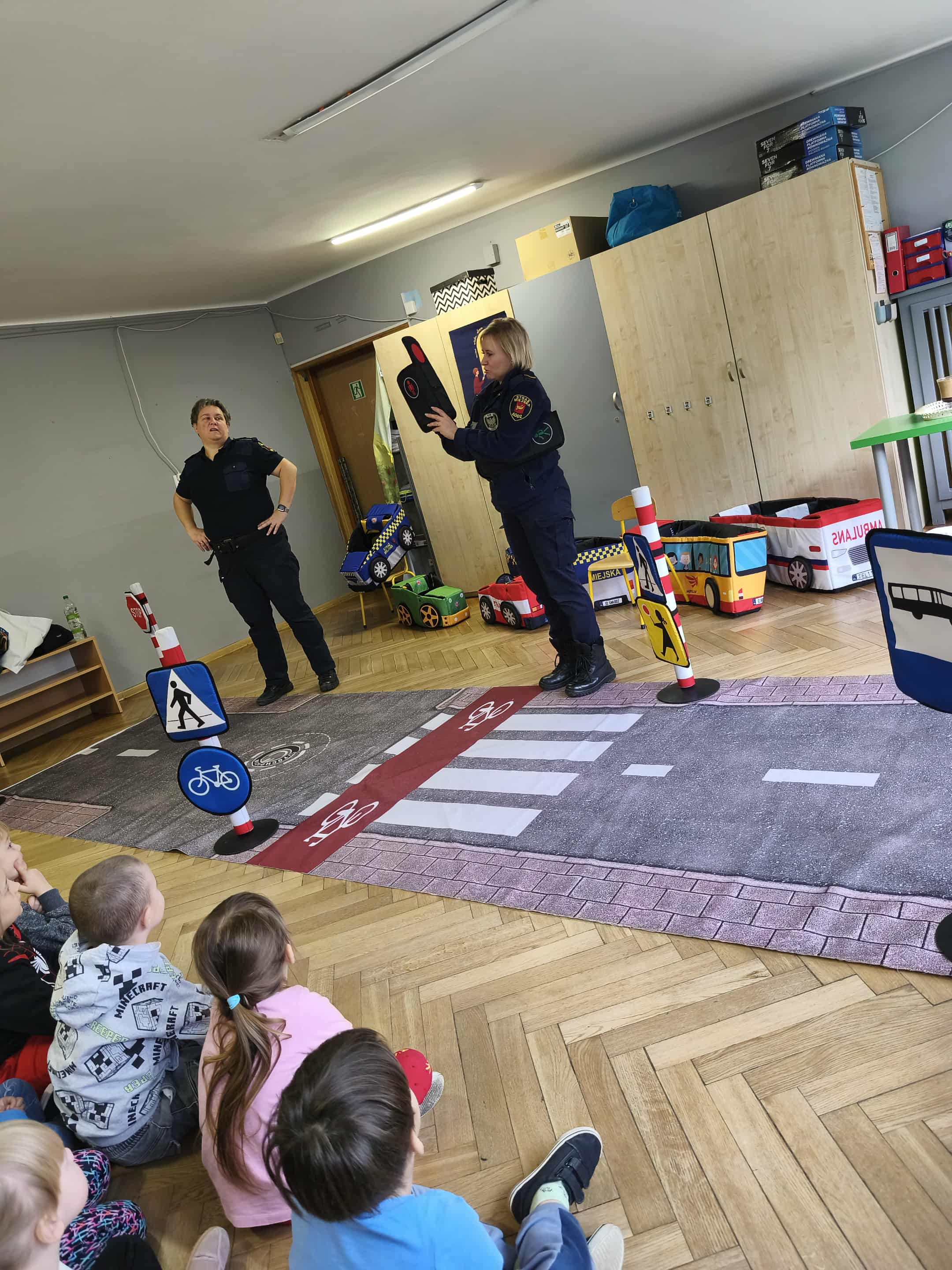 Dzisiejszego dnia zaraz po śniadaniu uczestniczyliśmy w zajęciach edukacyjnych o tematyce "Bezpieczny Przedszkolak". Zajęcia prowadziły dwie panie ze Straży Miejskiej w Łodzi. Odpowiadaliśmy na pytania dotyczące nie tylko bezpieczeństwa na drodze, ale także bezpieczeństwa w domu, na placu zabaw, podczas pobytu np. z rodzicami w sklepie - gdy się zgubimy, itp. Wiedzieliśmy, że np. z obcą osobą nie możemy rozmawiać, wziąć od niej cukierka. Na zakończenie przypomnieliśmy sobie bezpieczeństwo w ruchu drogowym. Mieliśmy możliwość bycia autami jeżdżącymi po drodze i pieszymi przechodzącymi przez ulicę. Wymagało to od nas wielkiego skupienia, koncentracji i obserwacji zmieniających się świateł.