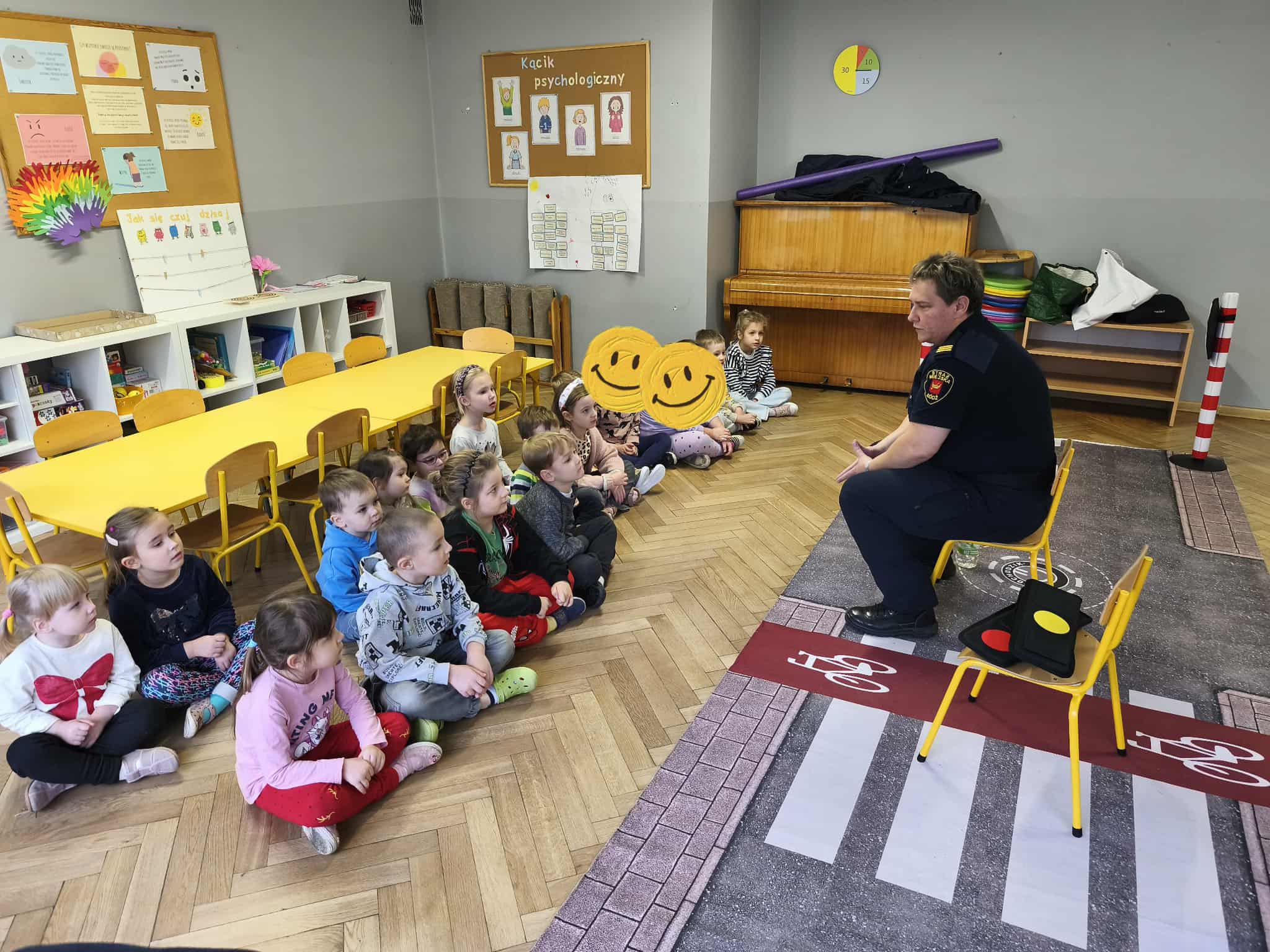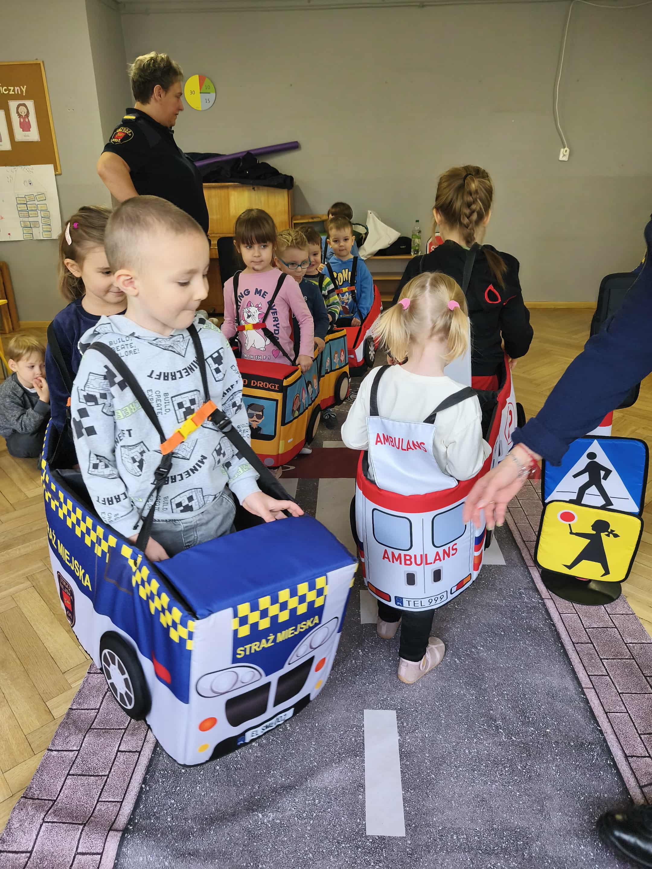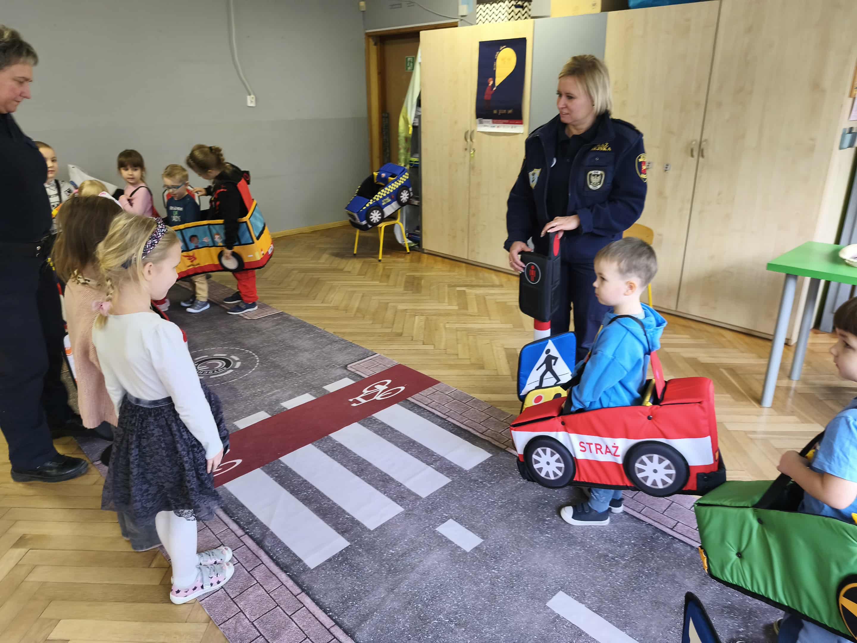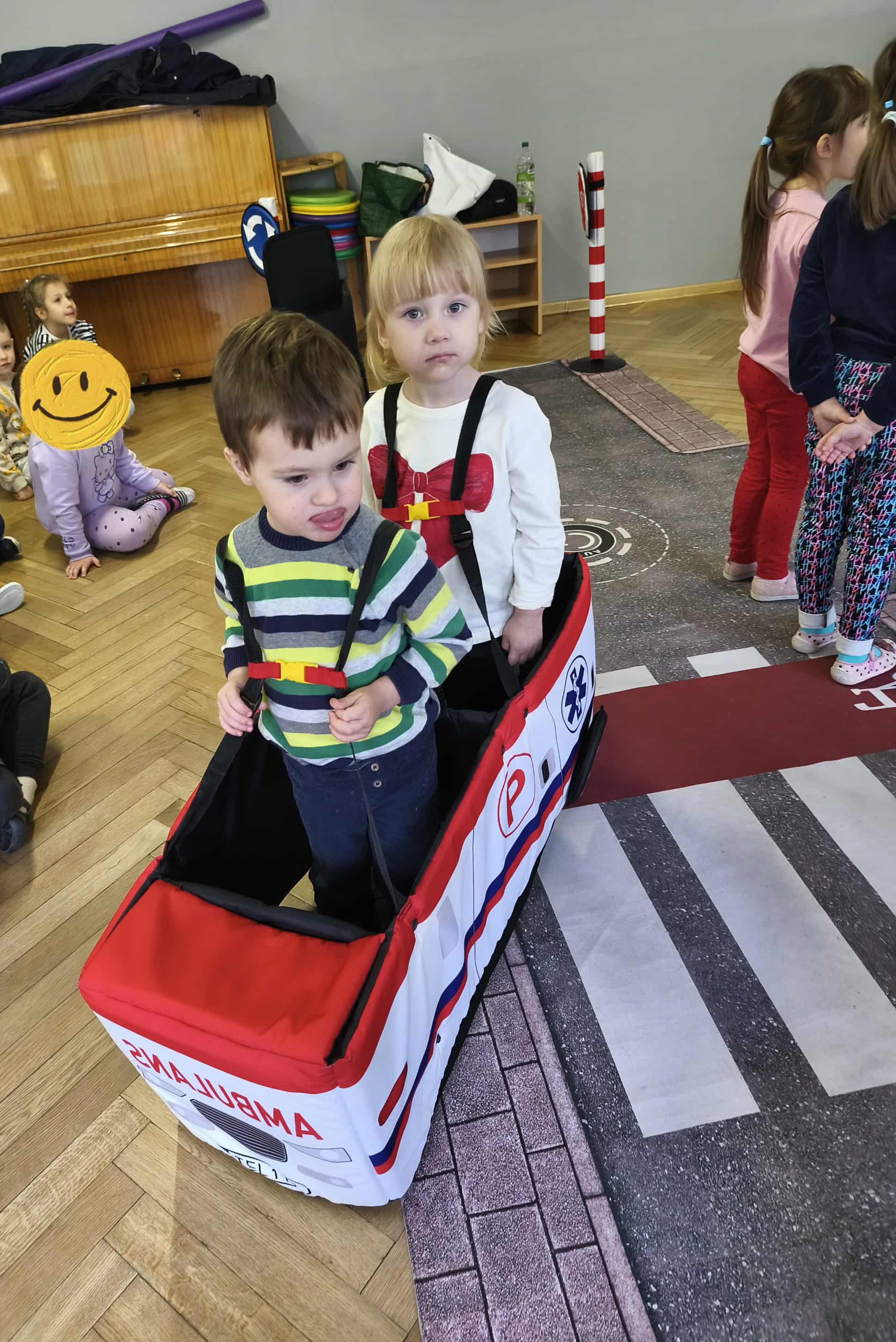 Dzisiejszego dnia zaraz po śniadaniu uczestniczyliśmy w zajęciach edukacyjnych o tematyce "Bezpieczny Przedszkolak". Zajęcia prowadziły dwie panie ze Straży Miejskiej w Łodzi. Odpowiadaliśmy na pytania dotyczące nie tylko bezpieczeństwa na drodze, ale także bezpieczeństwa w domu, na placu zabaw, podczas pobytu np. z rodzicami w sklepie - gdy się zgubimy, itp. Wiedzieliśmy, że np. z obcą osobą nie możemy rozmawiać, wziąć od niej cukierka. Na zakończenie przypomnieliśmy sobie bezpieczeństwo w ruchu drogowym. Mieliśmy możliwość bycia autami jeżdżącymi po drodze i pieszymi przechodzącymi przez ulicę. Wymagało to od nas wielkiego skupienia, koncentracji i obserwacji zmieniających się świateł.