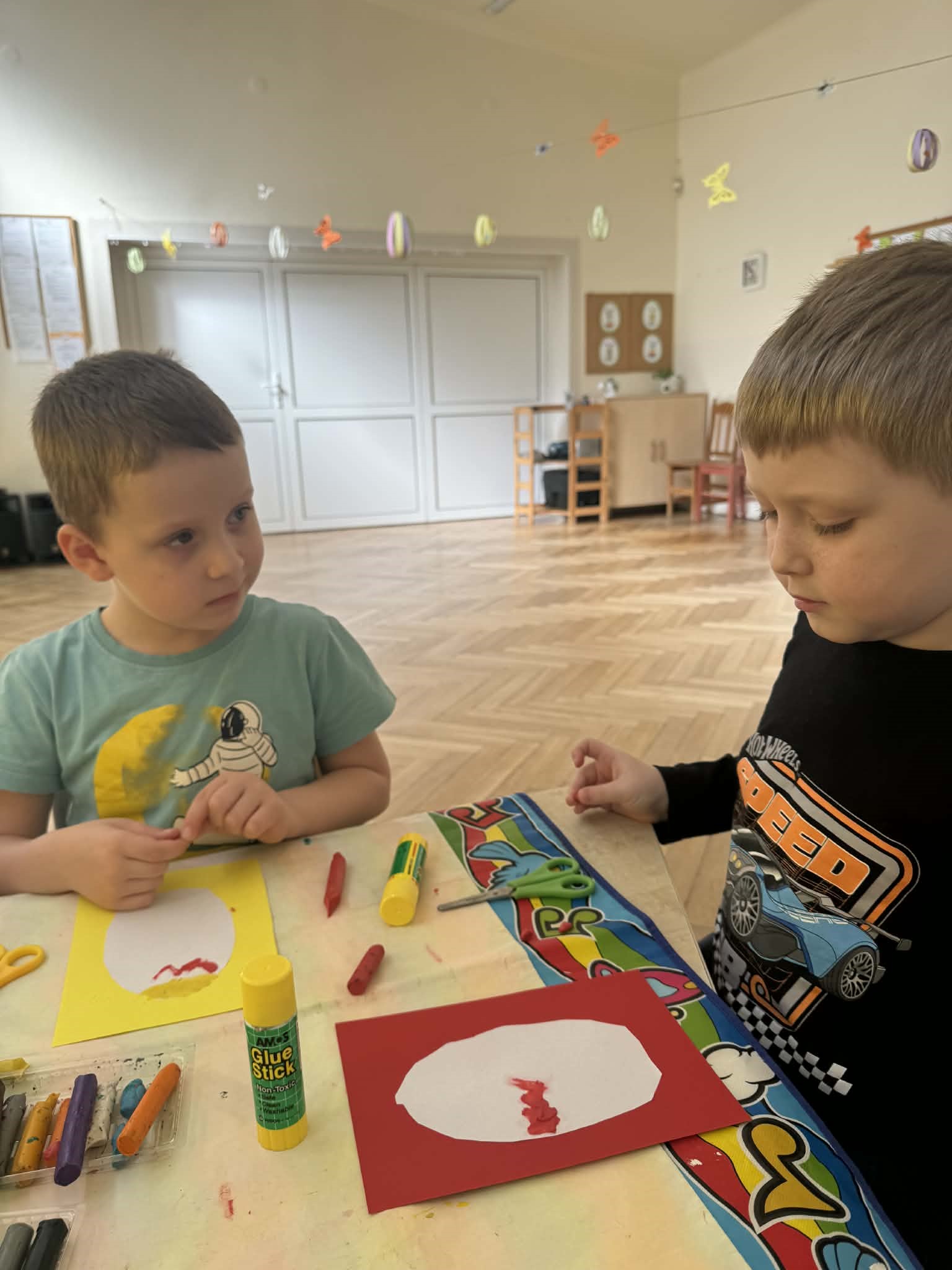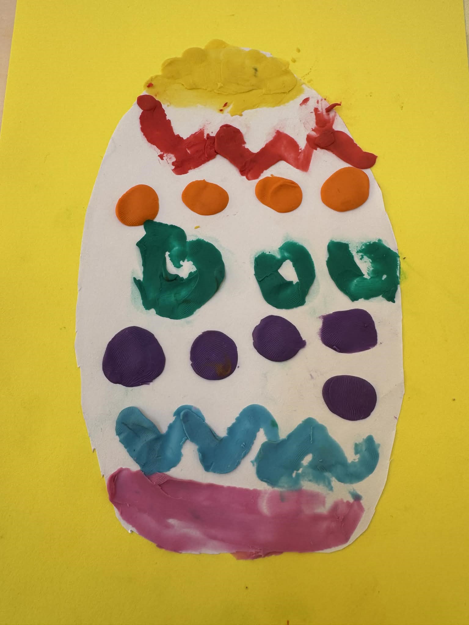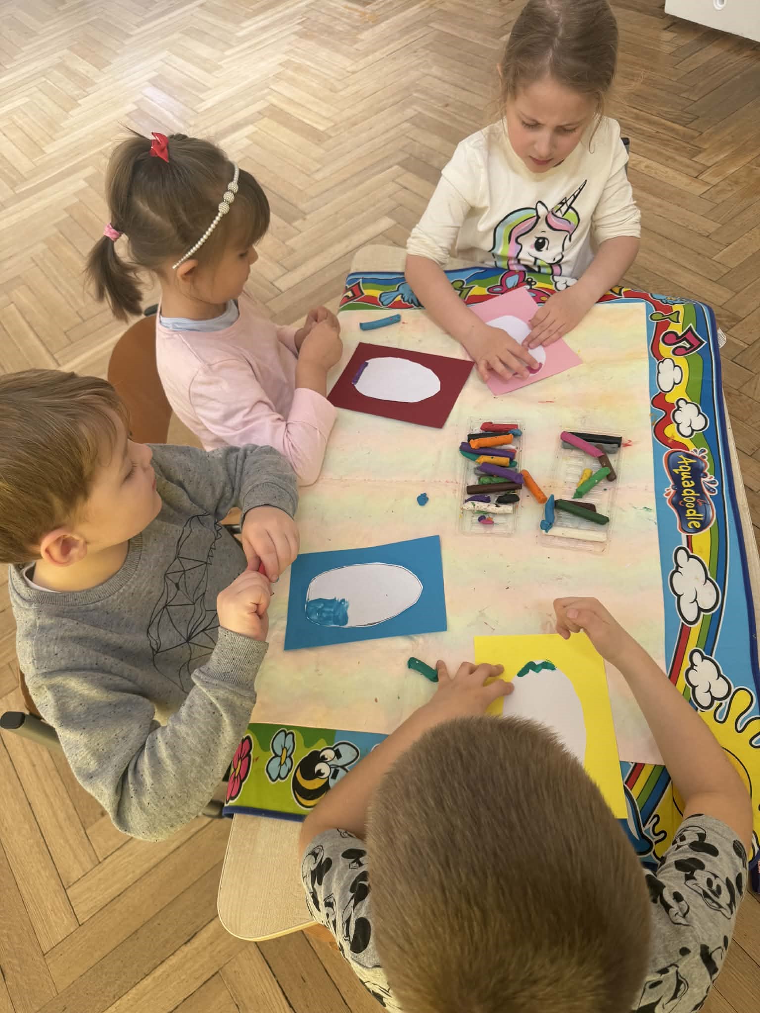 W logopedii ważne jest zarówno ćwiczenie aparatu artykulacyjnego, jak i rozwijanie innych umiejętności takich jak np. mała motoryka. Przy okazji świąt dzieci wykonały pisanki według swojego pomysłu, ćwicząc przy tym pracę ręki.