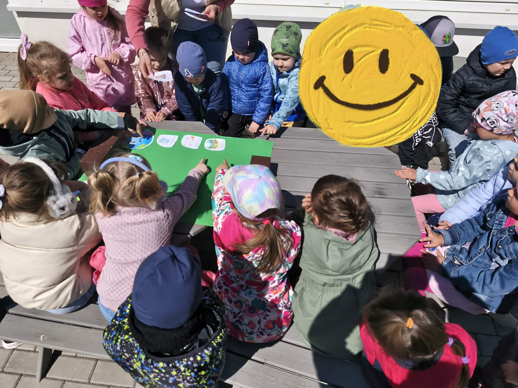 Wspólnie stworzyliśmy wyjątkowy plakat porównujący Ziemię zdrową i chorą. Podczas zajęć w ogrodzie dzieci uczyły się rozróżniać postawy ekologiczne, przyporządkowując konkretne działania do tych dobrych dla planety oraz tych, które jej szkodzą. Była to świetna okazja do rozmowy o tym, jak nasze codzienne wybory wpływają na środowisko.