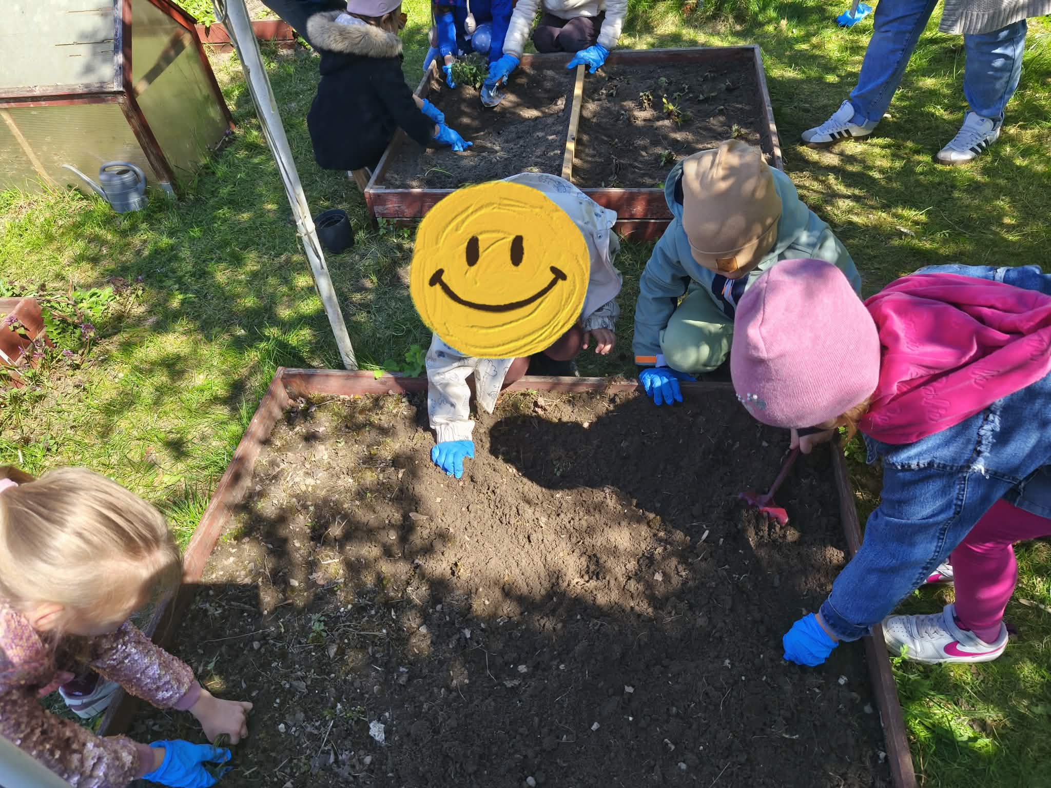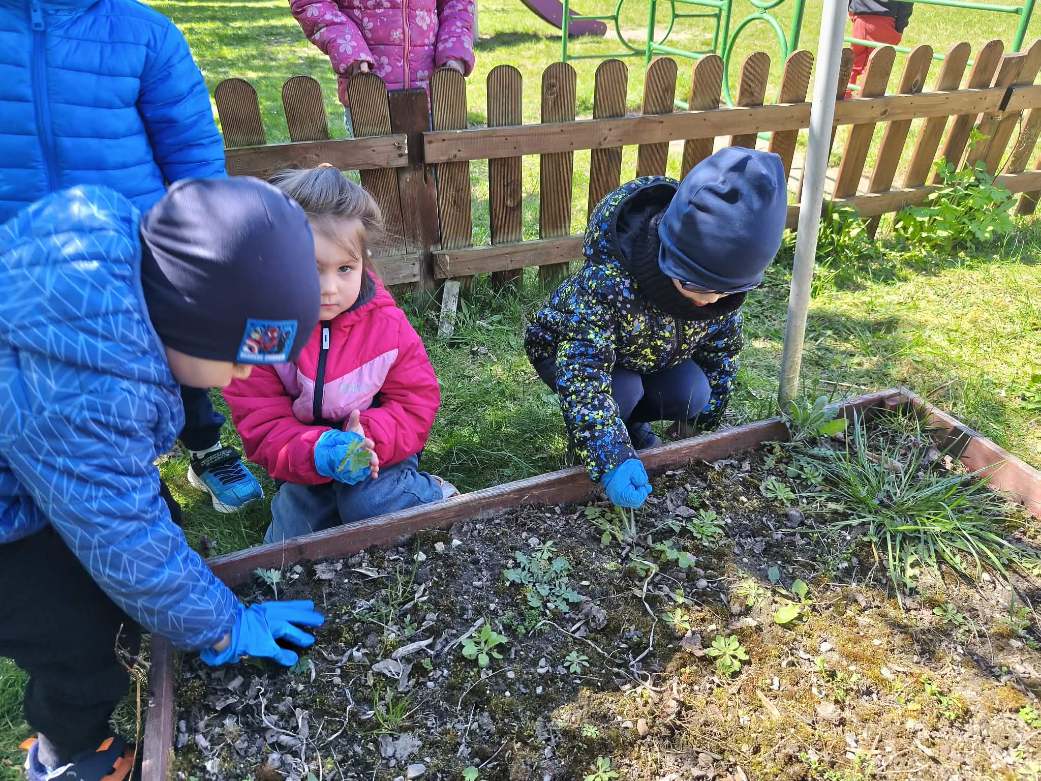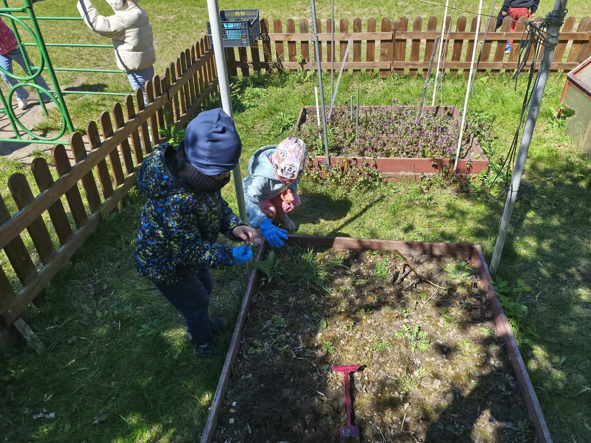 Teorię natychmiast przekuliśmy w praktykę. W ramach dbania o czystość naszej planety ruszyliśmy do ogródka, gdzie wspólnie pieliliśmy chwasty, trawę i mech. Dzięki pracowitym rączkom dzieci nasz zielony zakątek odzyskał blask, a przedszkolaki dowiedziały się, że każdy, nawet najmniejszy gest, ma ogromne znaczenie dla dobra Ziemi.