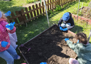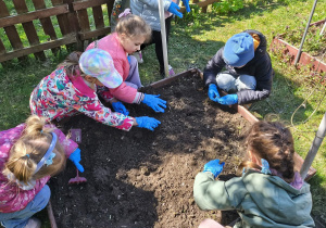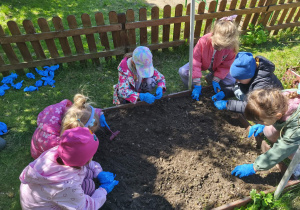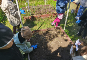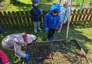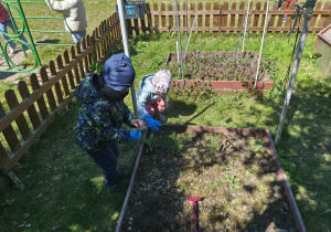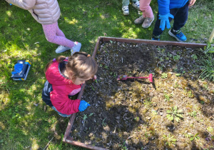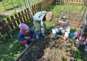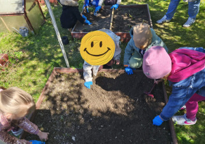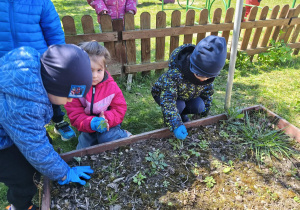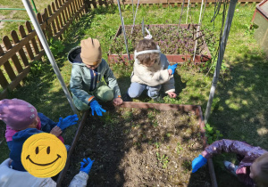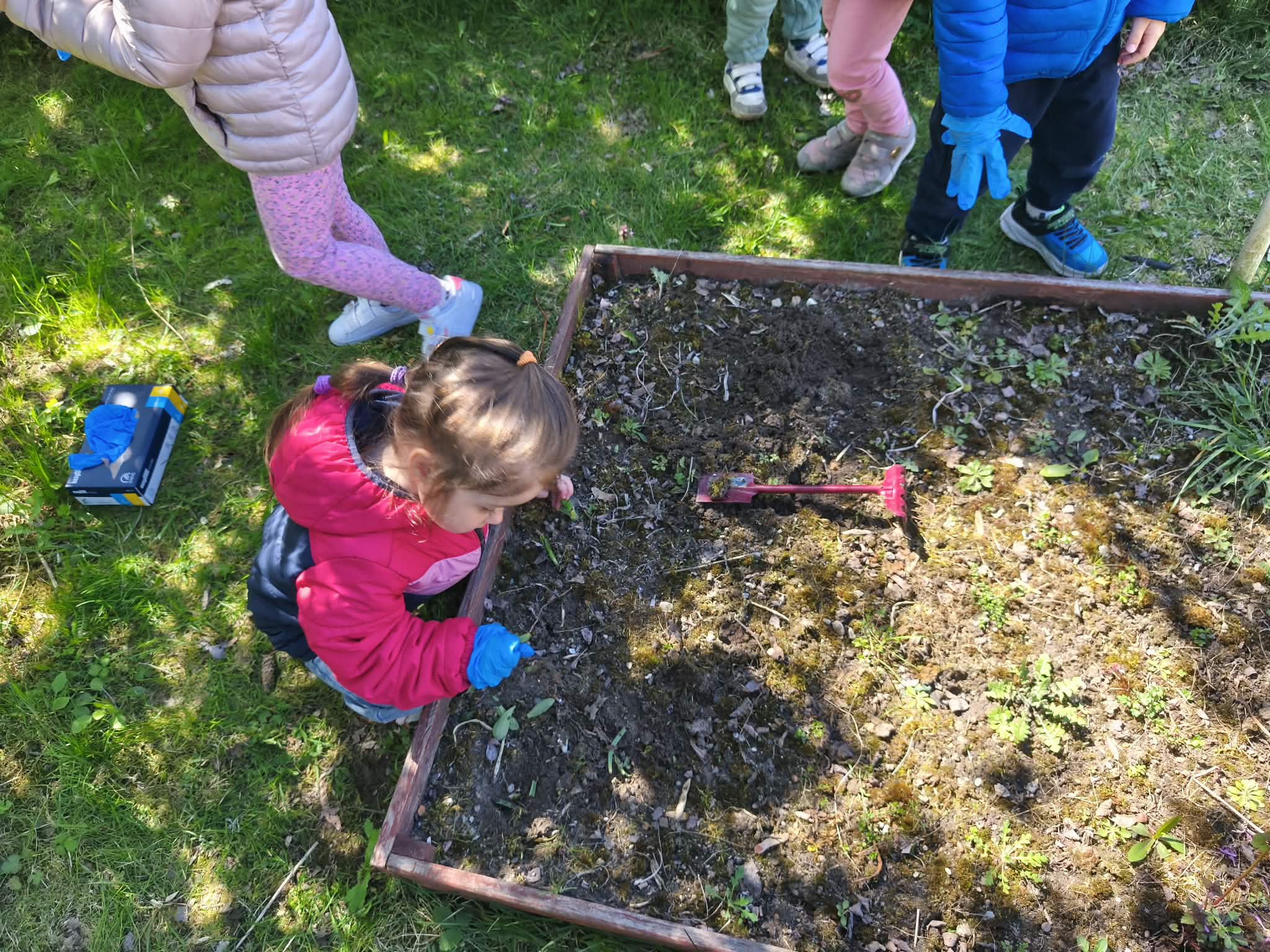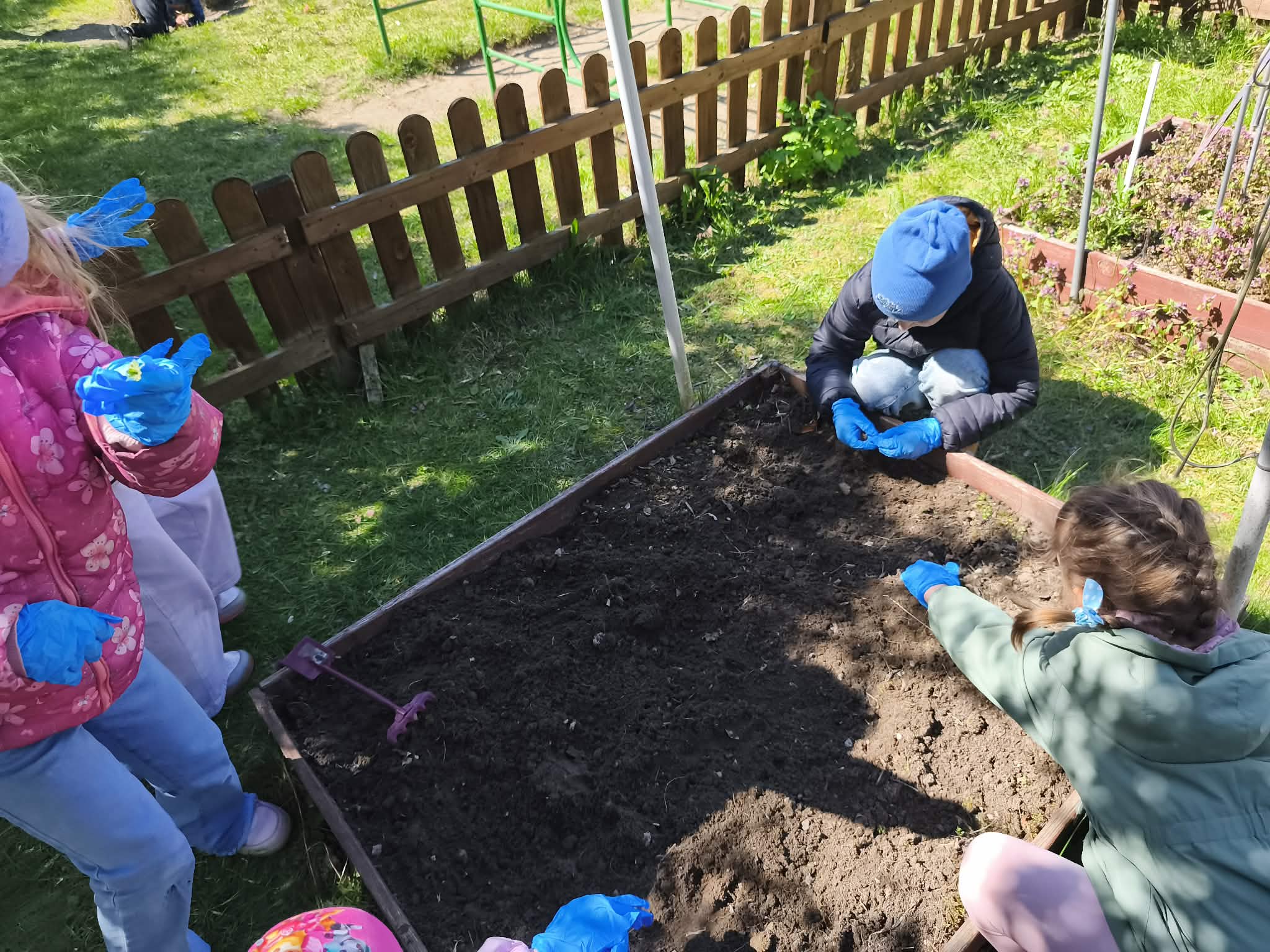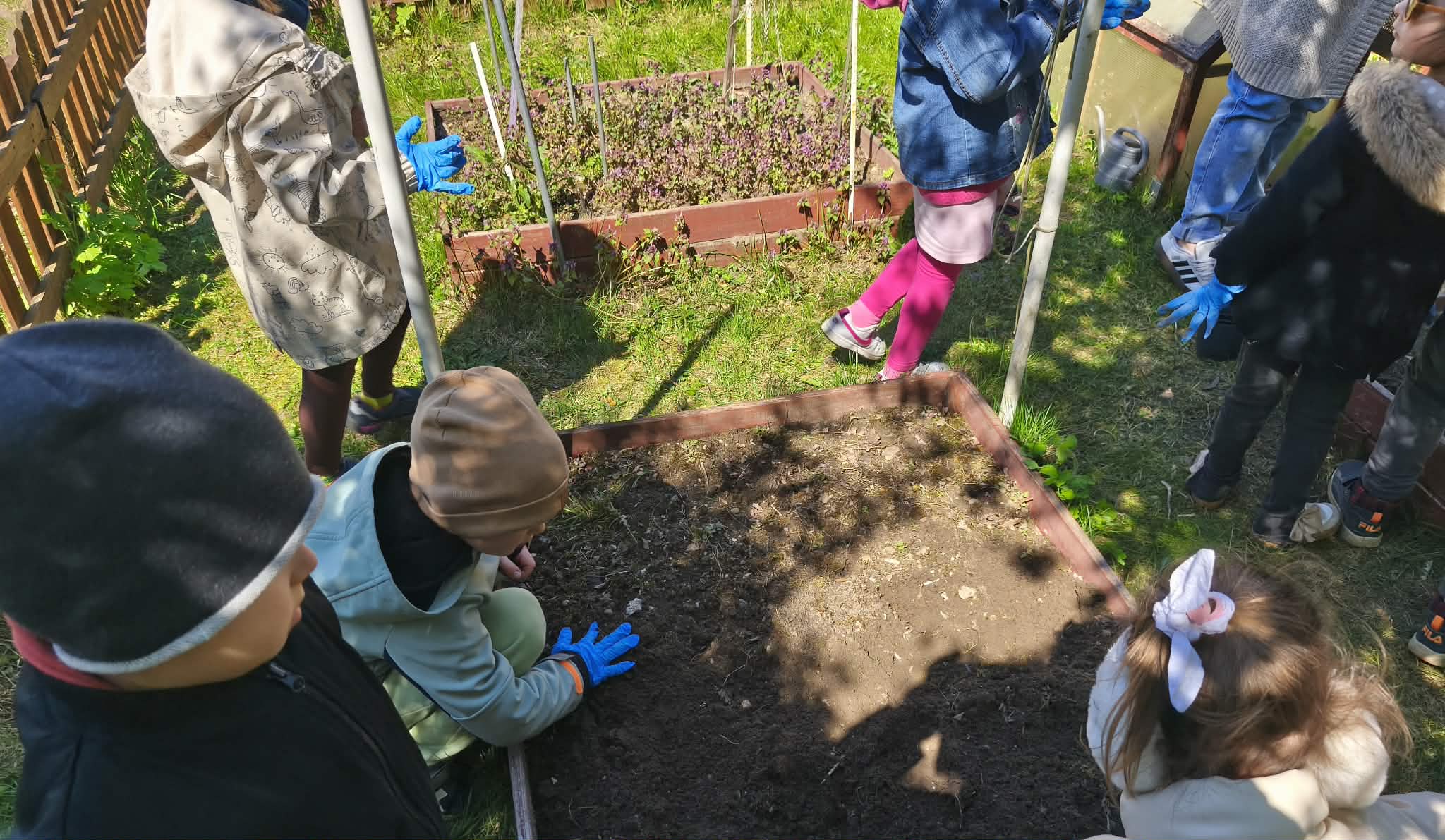 Teorię natychmiast przekuliśmy w praktykę. W ramach dbania o czystość naszej planety ruszyliśmy do ogródka, gdzie wspólnie pieliliśmy chwasty, trawę i mech. Dzięki pracowitym rączkom dzieci nasz zielony zakątek odzyskał blask, a przedszkolaki dowiedziały się, że każdy, nawet najmniejszy gest, ma ogromne znaczenie dla dobra Ziemi.