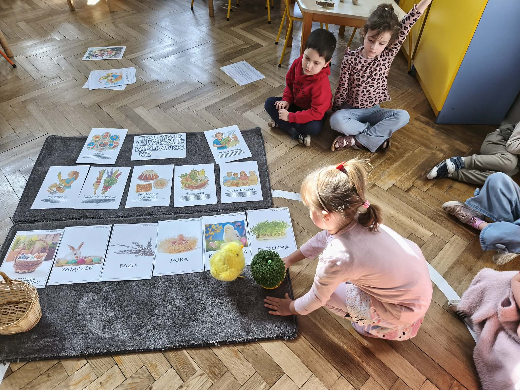 W minionym tygodniu dzieci wyruszyły w podróż śladami wielkanocnych tradycji i zwyczajów. Podczas zajęć poznały symbolikę świątecznego koszyczka oraz dowiedziały się, dlaczego jajko jest tak ważnym elementem nadchodzących świąt – symbol nowego życia i radości.