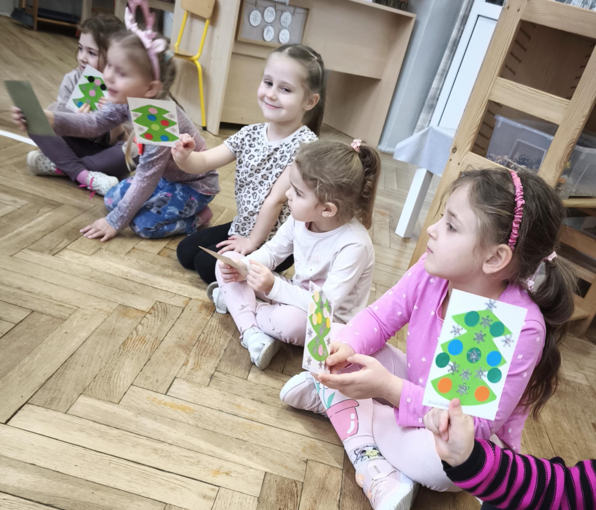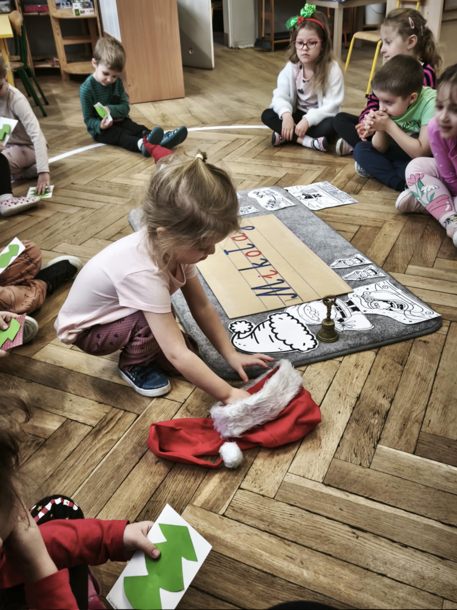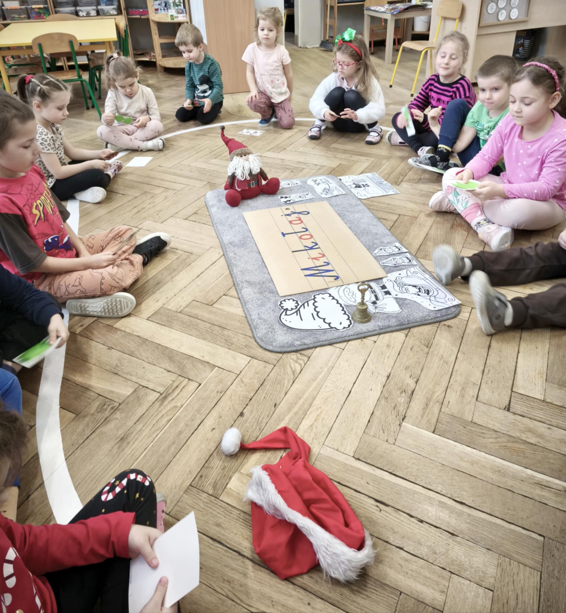 Oczekując na spotkanie z Mikołajem, dzieci postanowiły się dobrze do tego przygotować. W trakcie tego tygodnia towarzyszyły nam piosenki, nauka legendy o św. Mikołaju i rozmowy na temat jego historii i tradycji. Przedszkolaki dowiedziały się również, że każdy z nas może być Mikołajem (kto chciał na chwilkę się w niego zamienił) i obdarować kogoś prezentem własnoręcznie przygotowanym. Tak właśnie się stało, podczas Mikołajkowego losowania - każdy, każdemu zrobił piękną kartkę świąteczną.