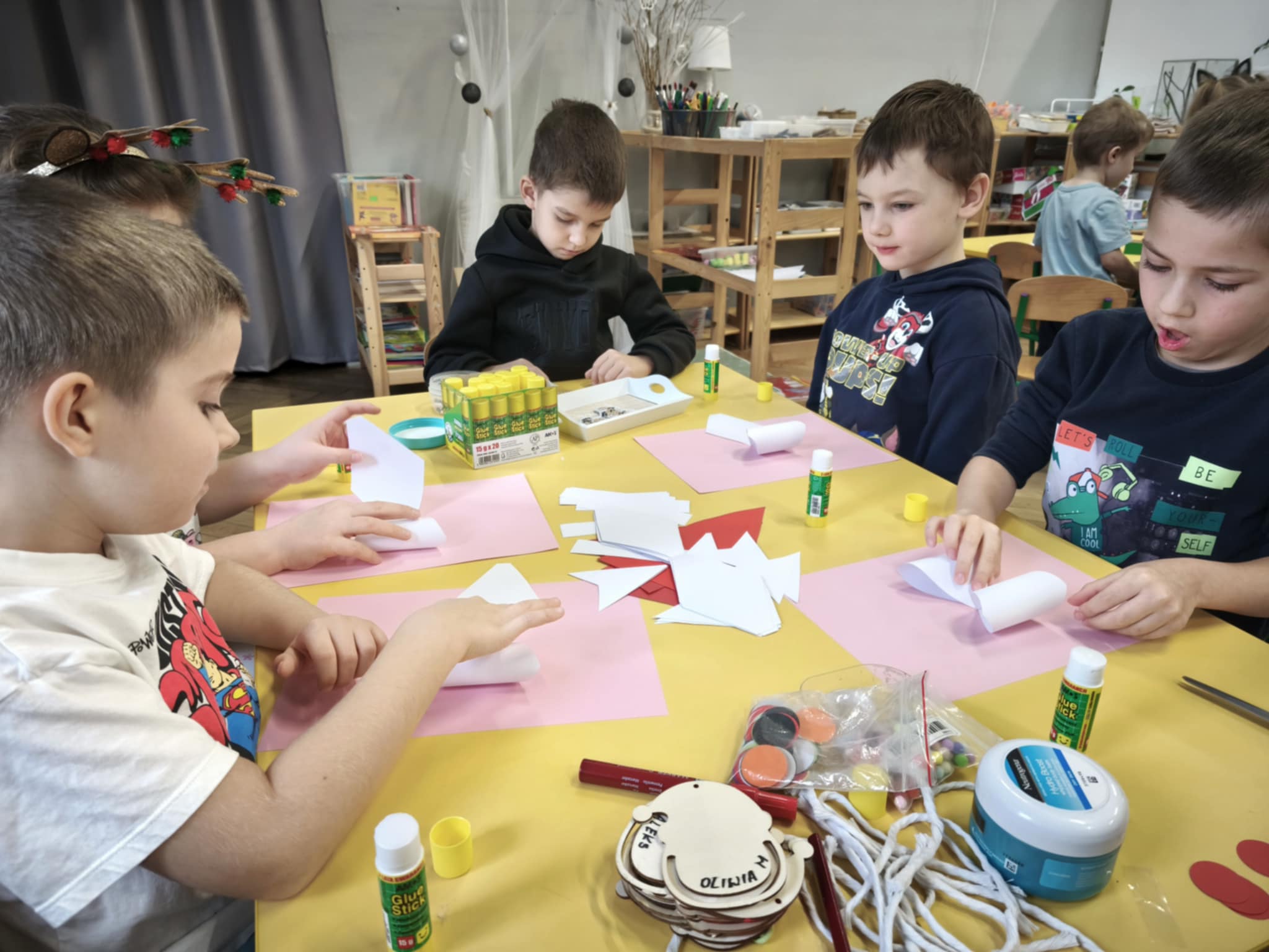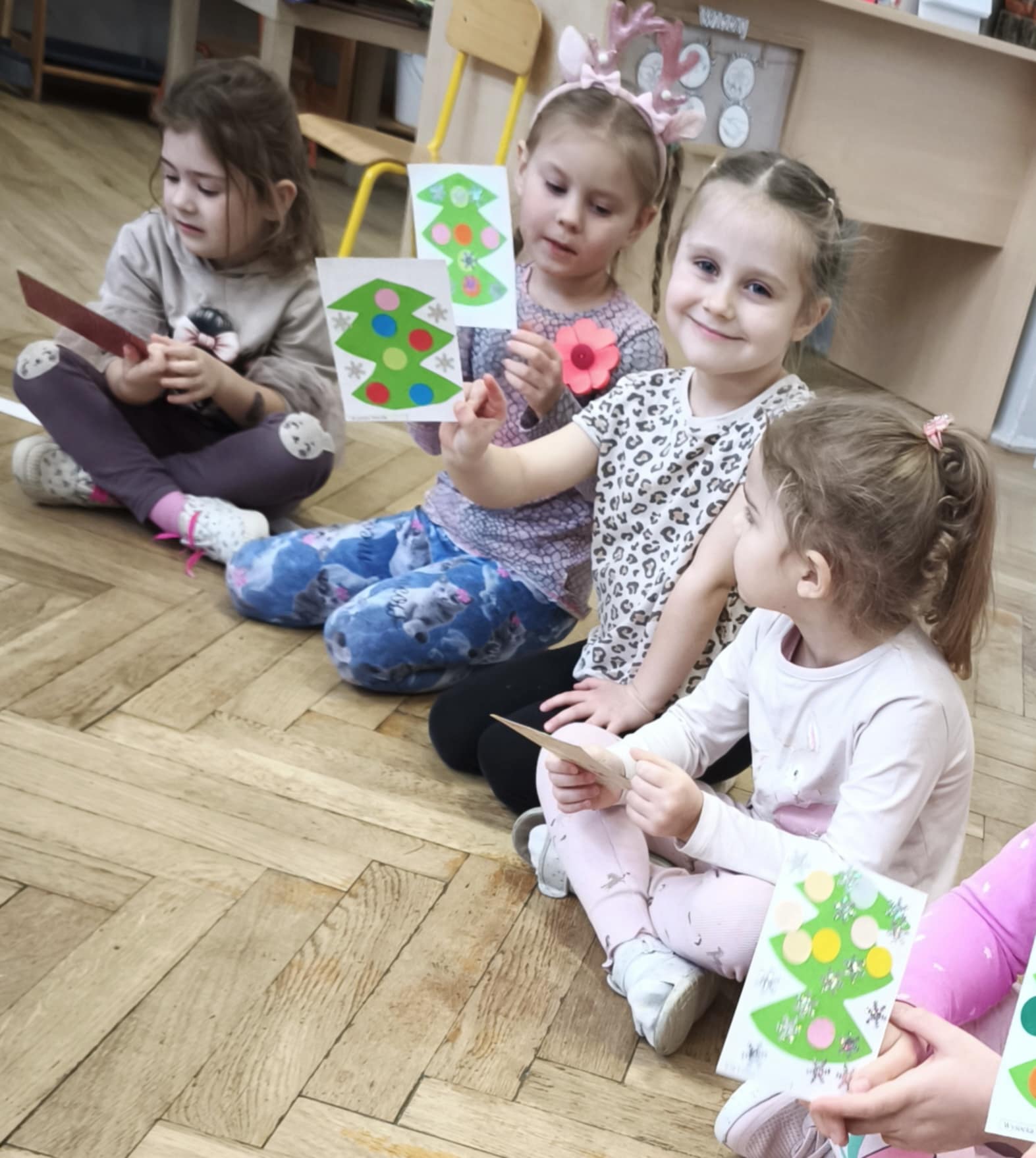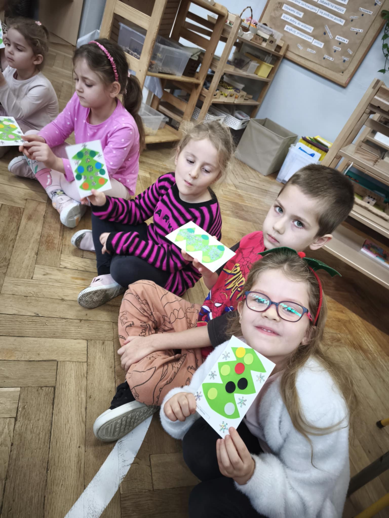 Oczekując na spotkanie z Mikołajem, dzieci postanowiły się dobrze do tego przygotować. W trakcie tego tygodnia towarzyszyły nam piosenki, nauka legendy o św. Mikołaju i rozmowy na temat jego historii i tradycji. Przedszkolaki dowiedziały się również, że każdy z nas może być Mikołajem (kto chciał na chwilkę się w niego zamienił) i obdarować kogoś prezentem własnoręcznie przygotowanym. Tak właśnie się stało, podczas Mikołajkowego losowania - każdy, każdemu zrobił piękną kartkę świąteczną.