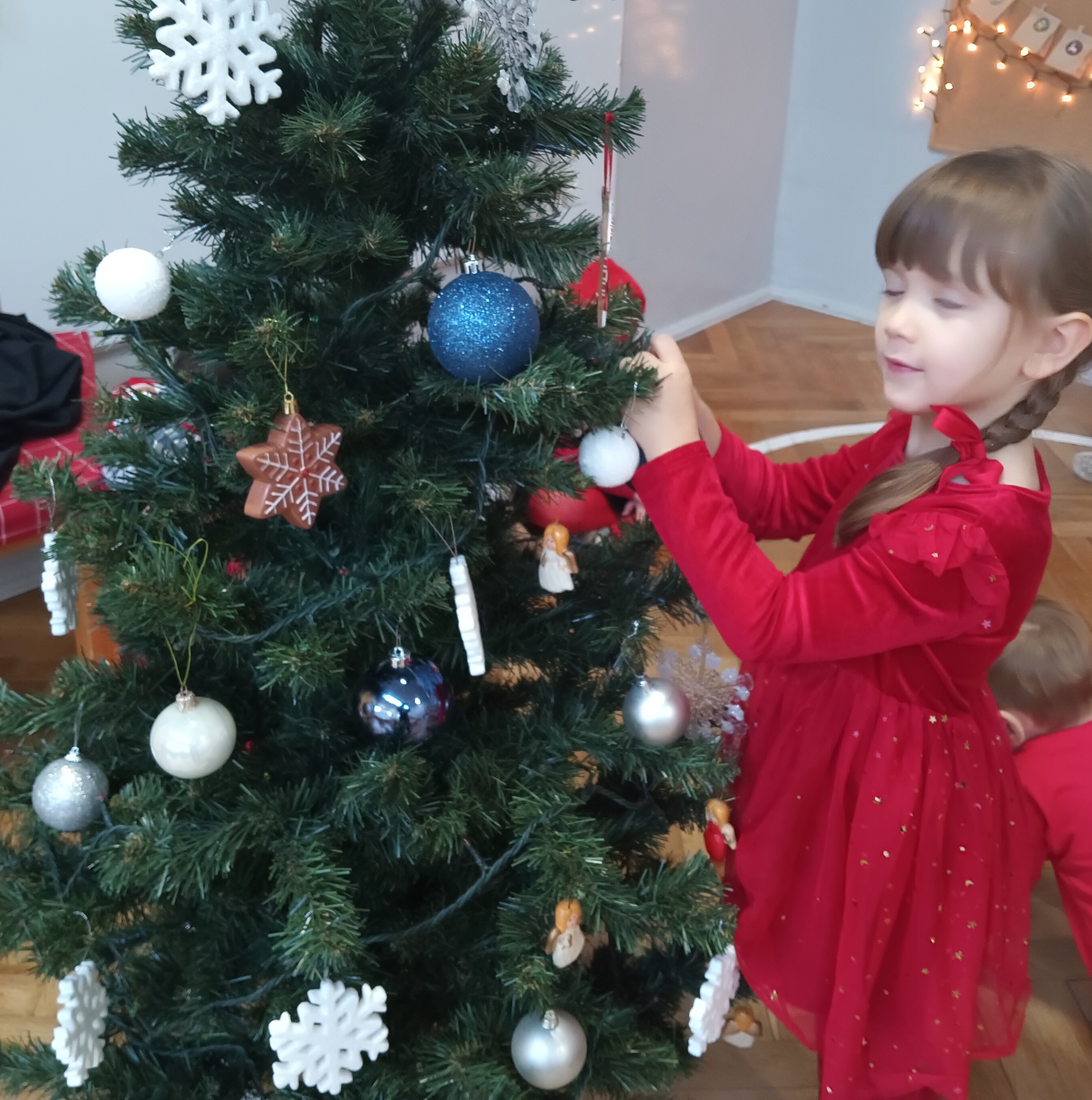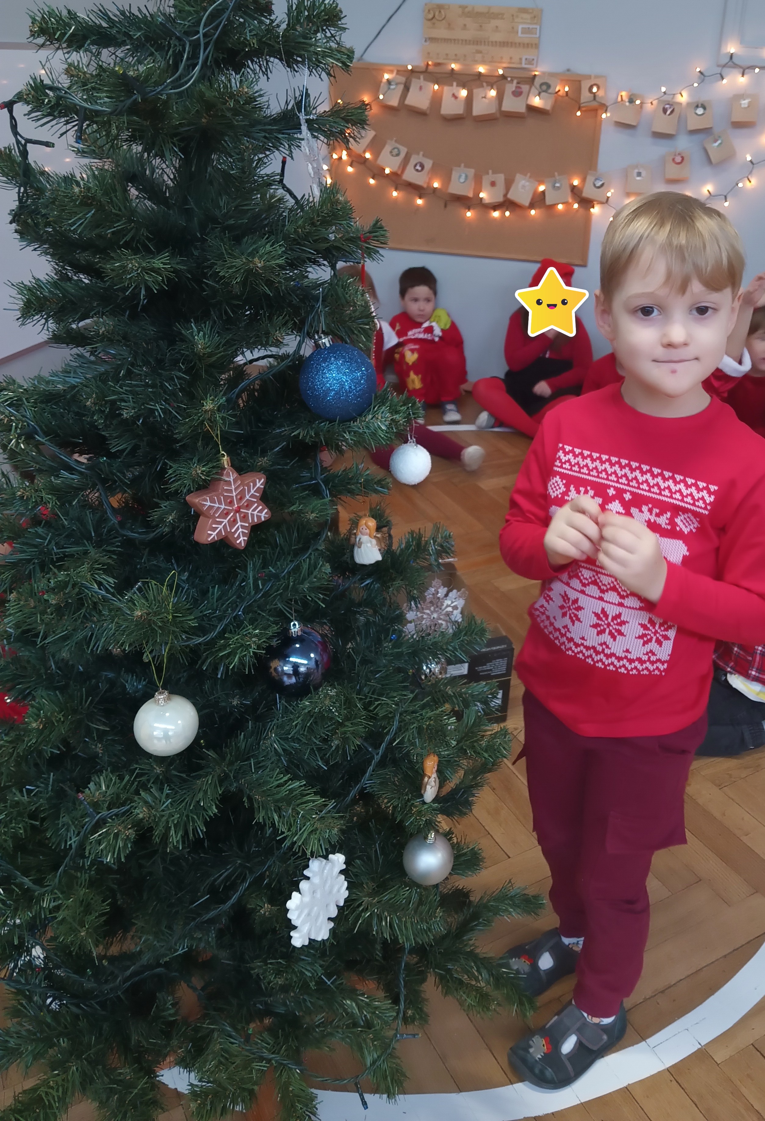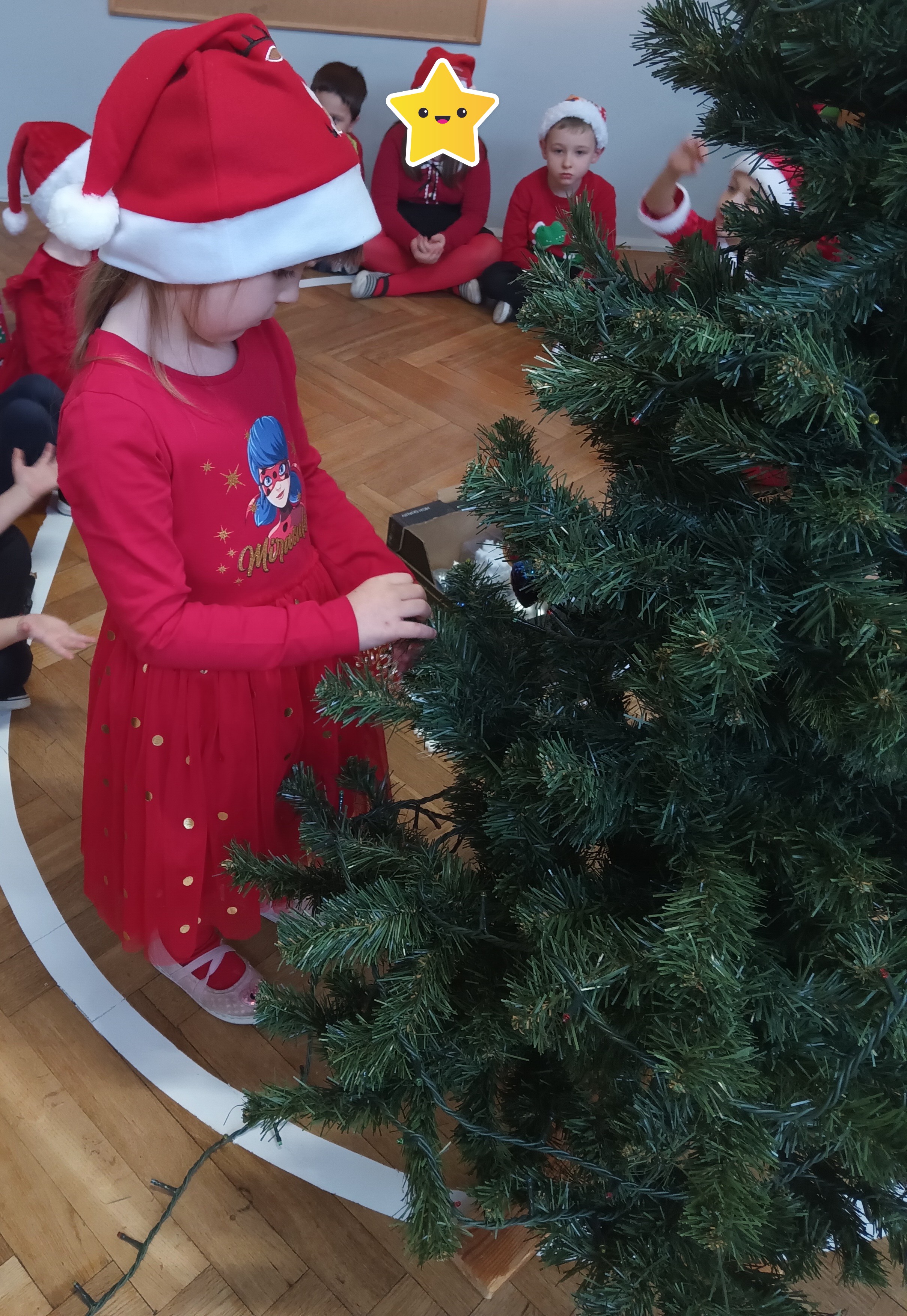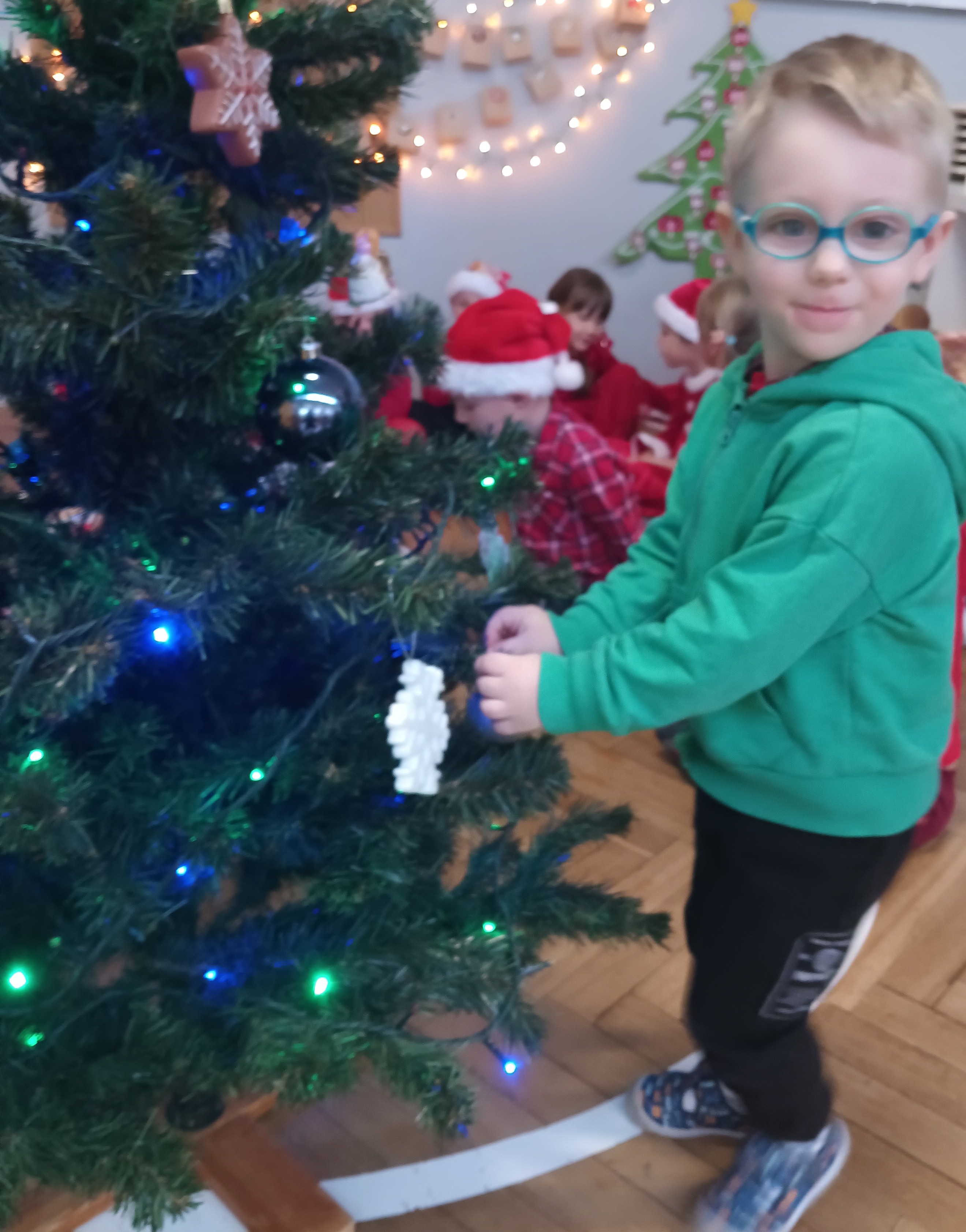 Z okazji zbliżających się Mikołajek postanowiliśmy ozdobić świątecznie naszą salę i ubrać wspólnie choinkę. Każde dziecko miało możliwość zawiesić wybraną przez siebie ozdobę na choince.