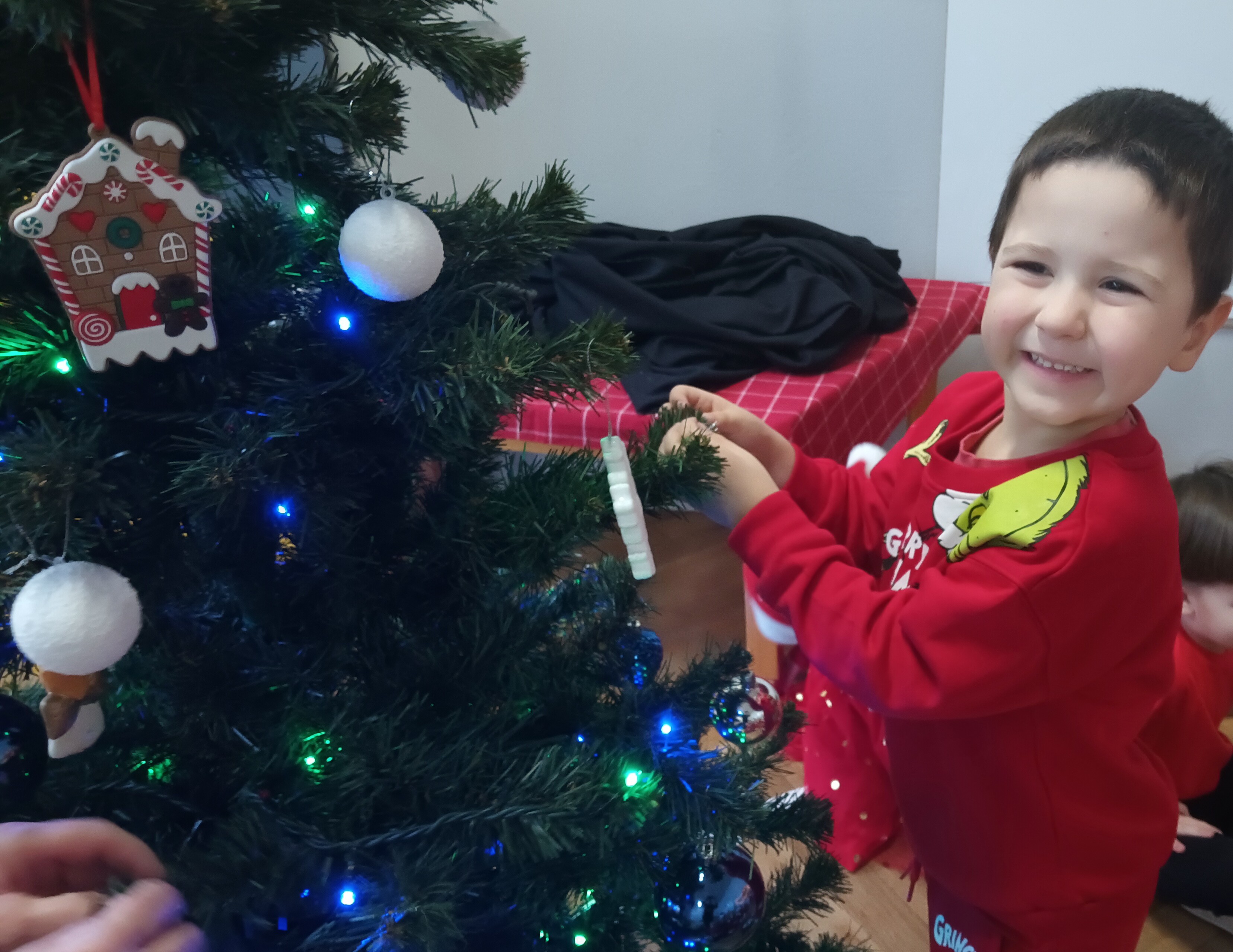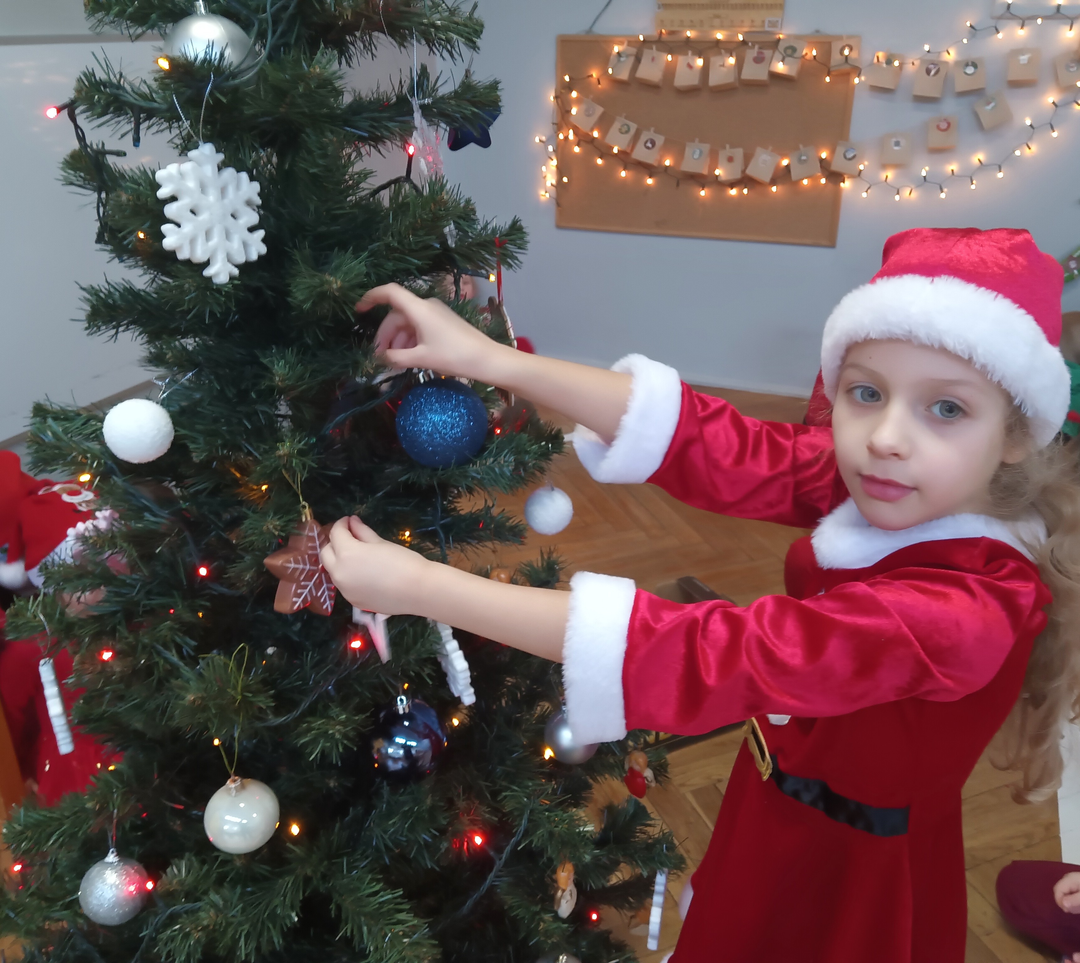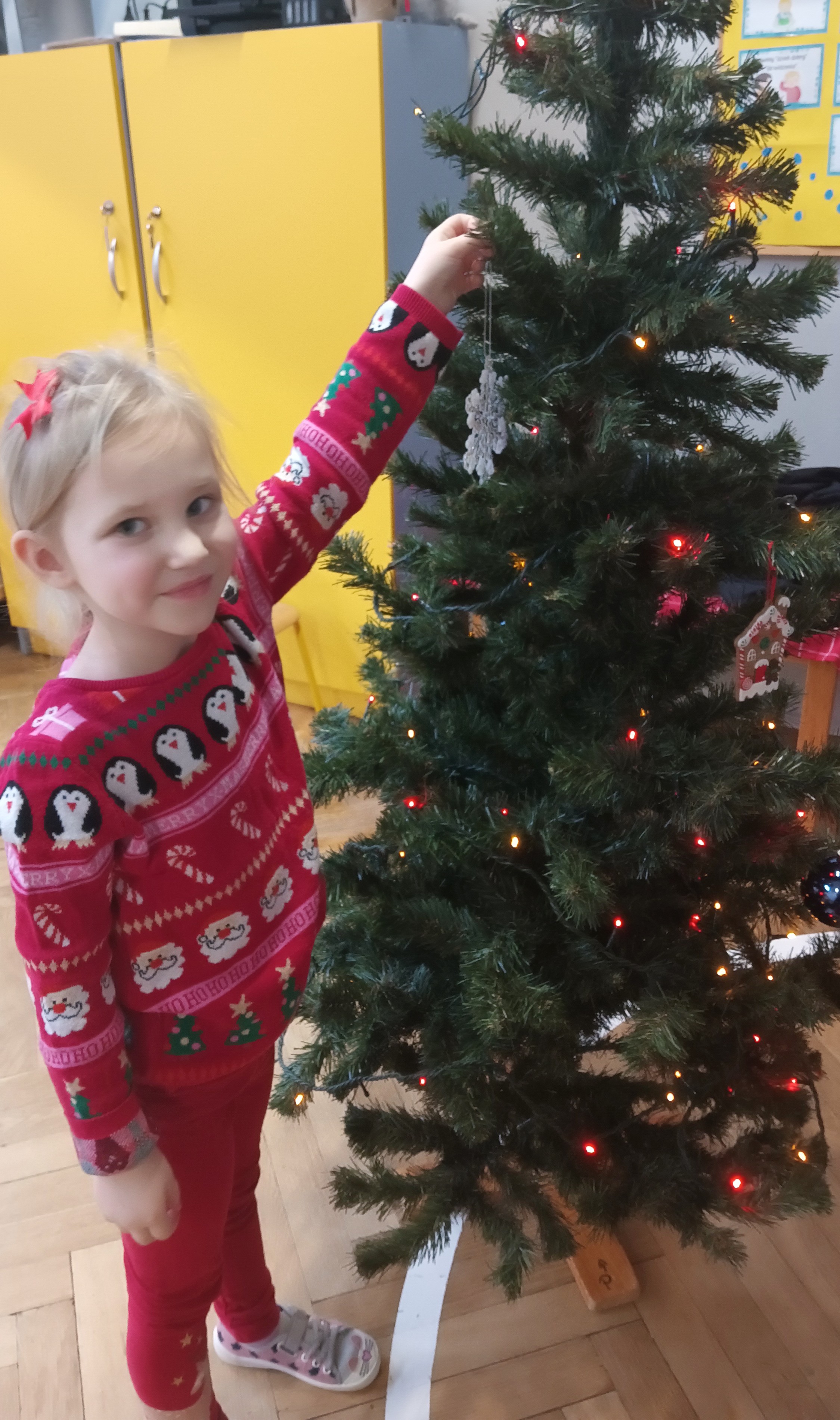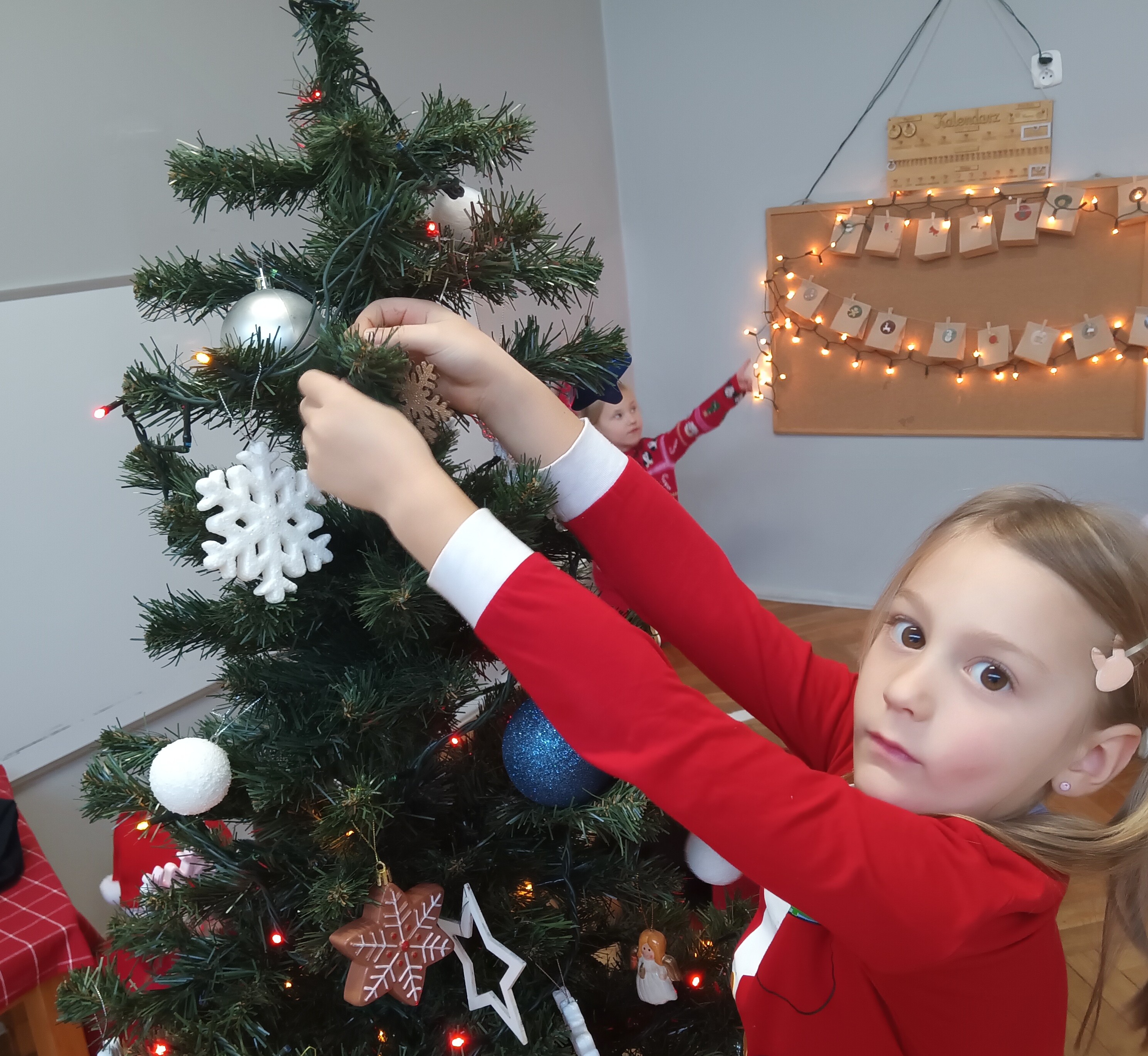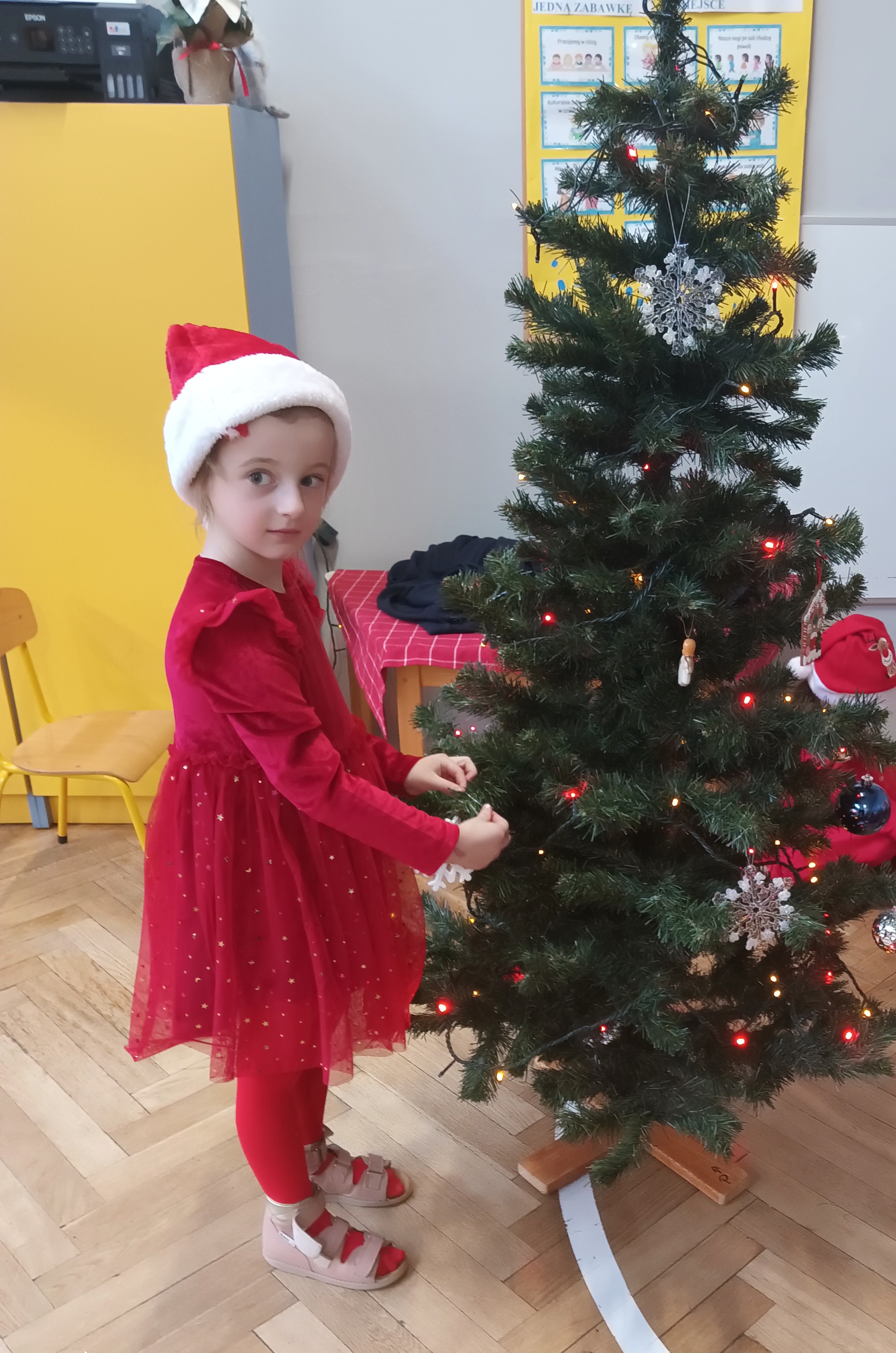 Z okazji zbliżających się Mikołajek postanowiliśmy ozdobić świątecznie naszą salę i ubrać wspólnie choinkę. Każde dziecko miało możliwość zawiesić wybraną przez siebie ozdobę na choince.
