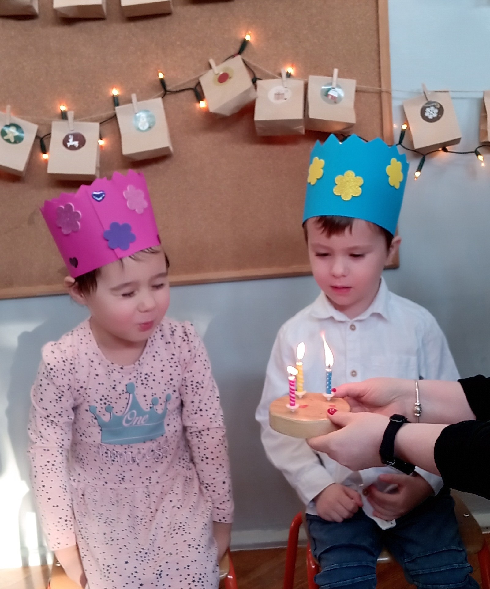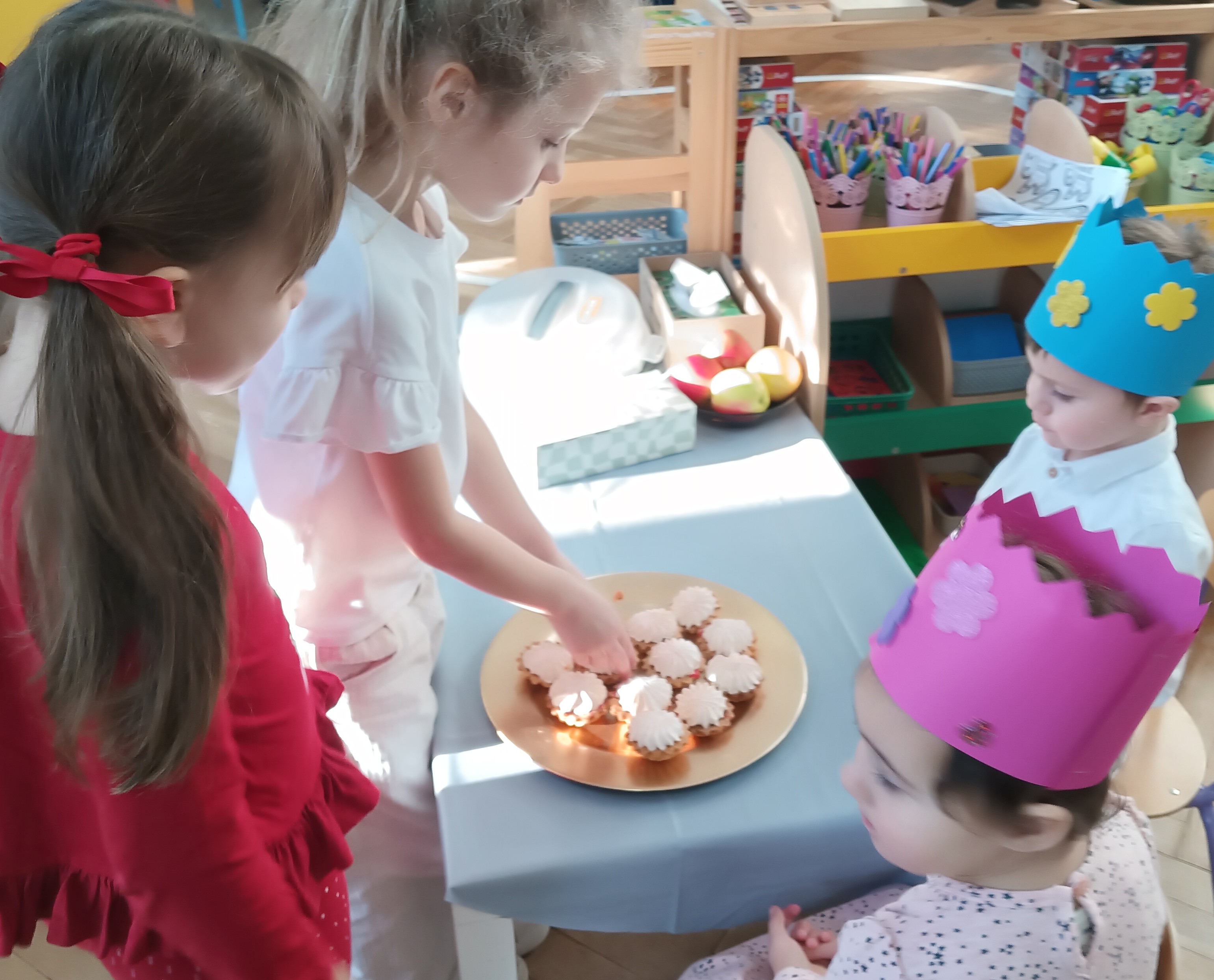 W poniedziałek Marlenka i Marcel będą obchodzić swoje 3 urodzinki. My w przedszkolu świętowaliśmy je już w piątek. Marcelek i Marlenka ułożyli z koralików swoją linie życia, obejrzeliśmy zdjęcia z różnych etapów ich życia. Wspólnie odśpiewaliśmy "Sto lat" i Jubilaci zdmuchnęli świeczki na symbolicznym torcie. Marcelek i Marlenka poczęstowali dzieci wafelkiem, babeczką i sokiem. Jeszcze raz życzymy im dużo zdrowia i radości!