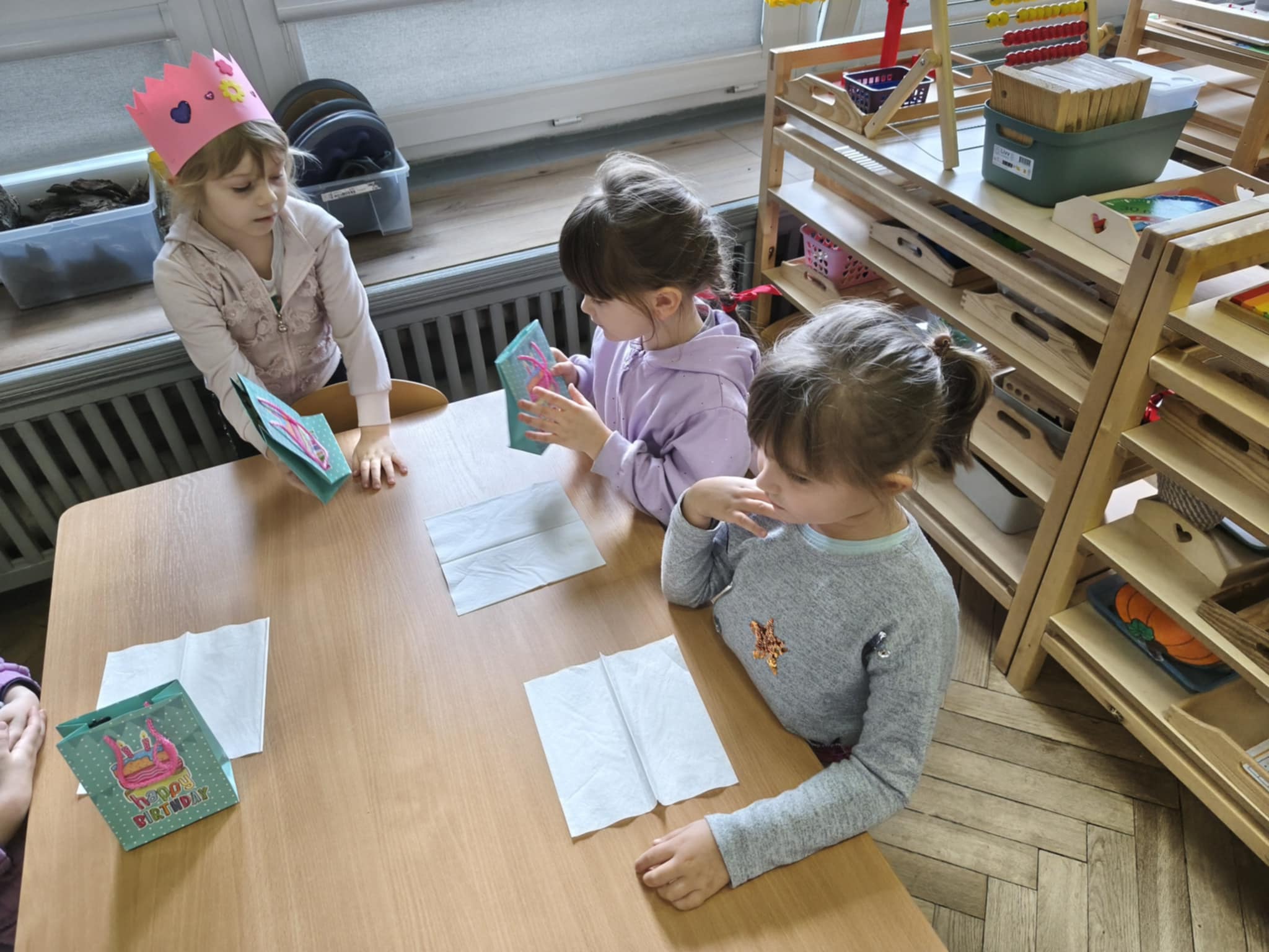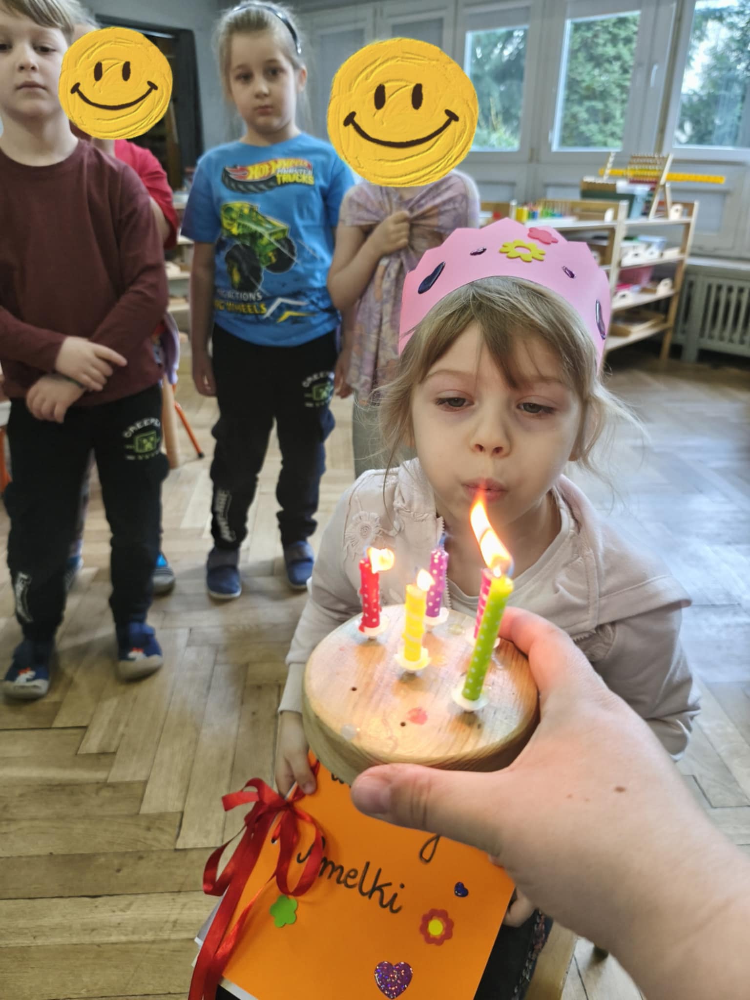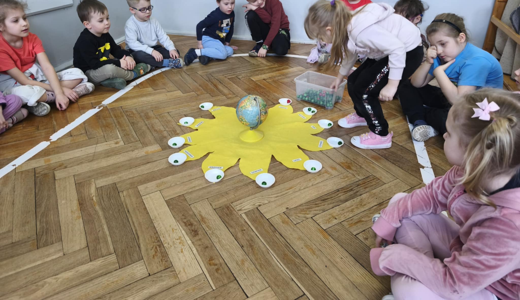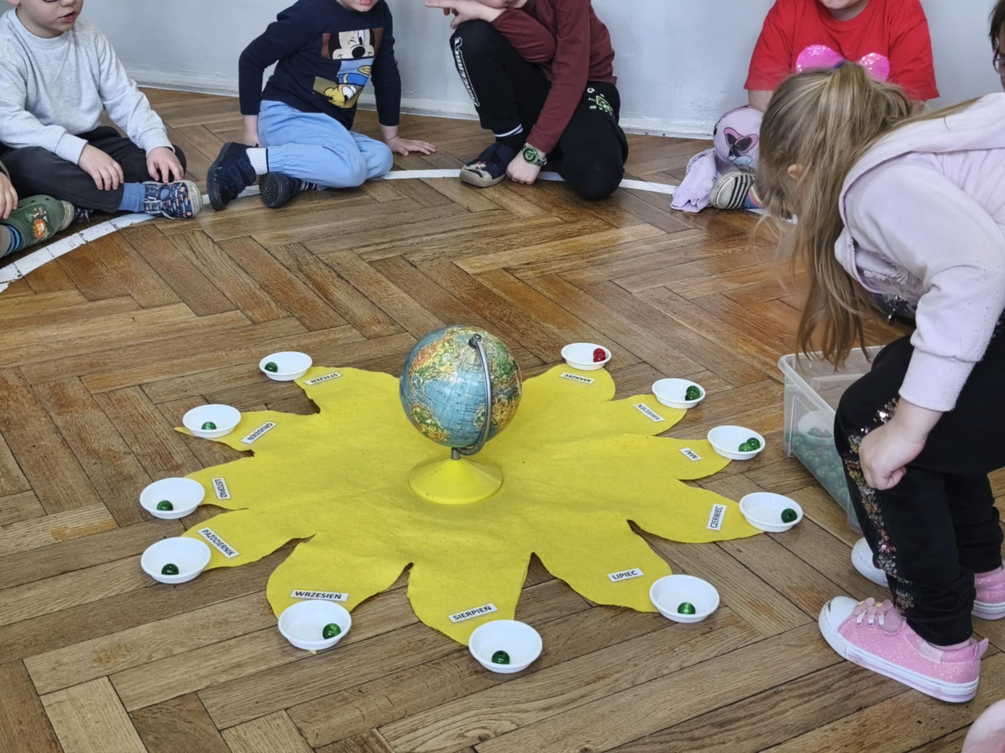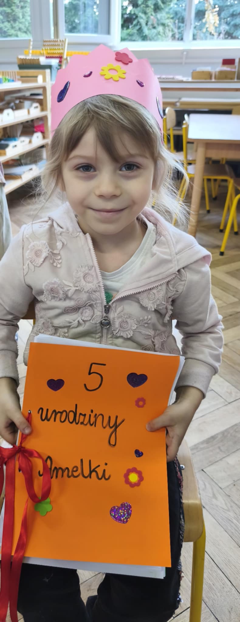 Dzisiejszego dnia świętowaliśmy 5 urodziny Amelki zgodnie z tradycją Montessori. Jubilatka wykonała symboliczne okrążenia wokół słońca, wkładając do miseczek koraliki. Wspólnie oglądaliśmy zdjęcia z różnych etapów życia Jubilatki.