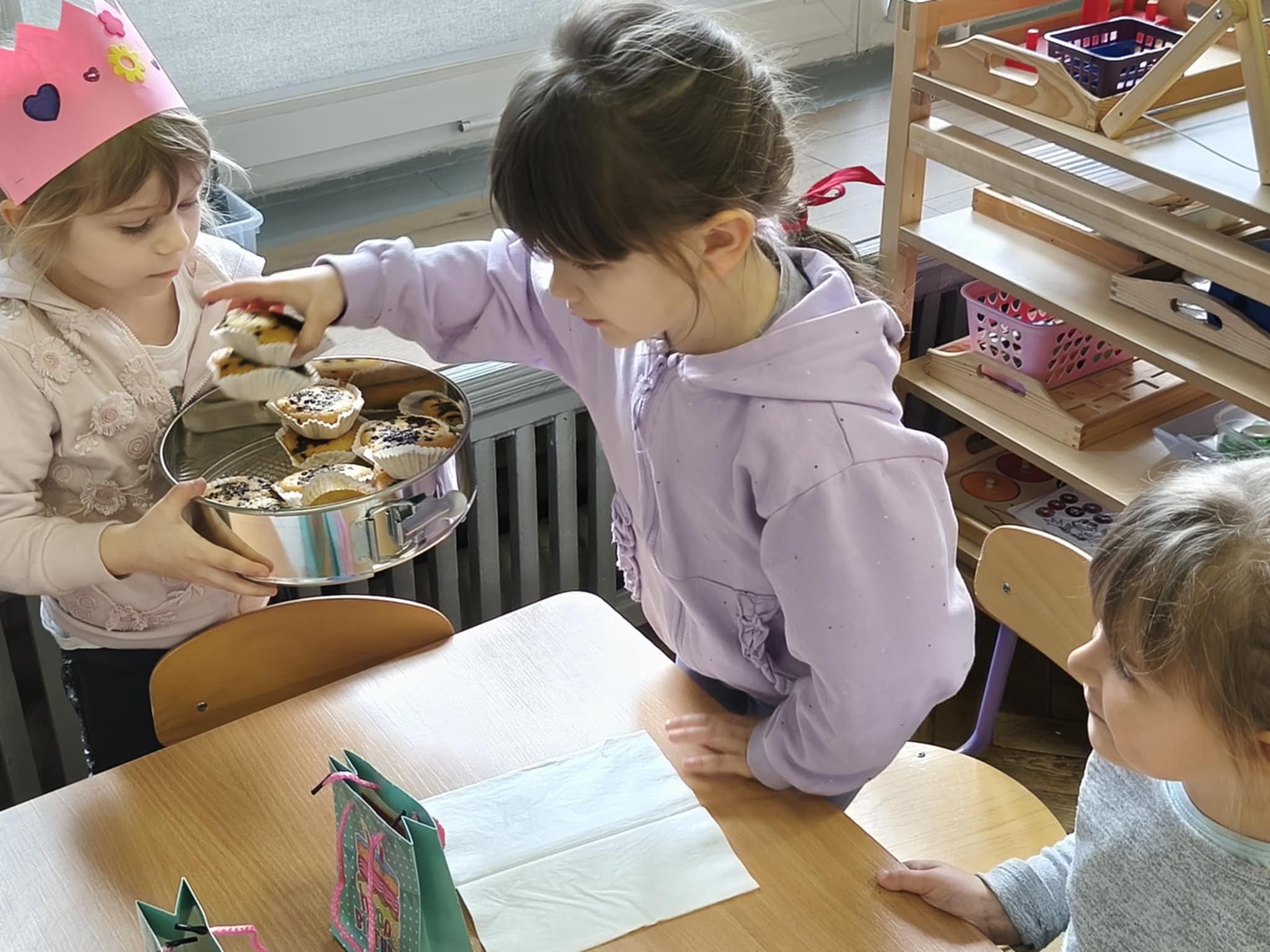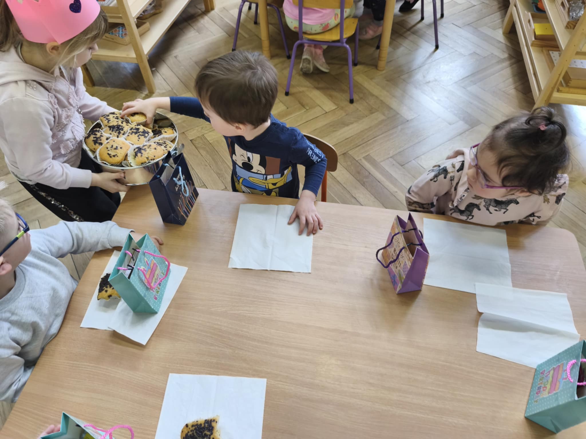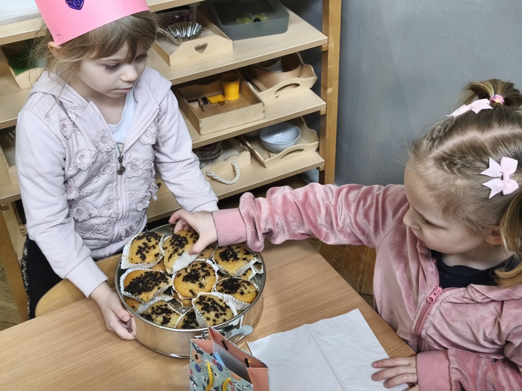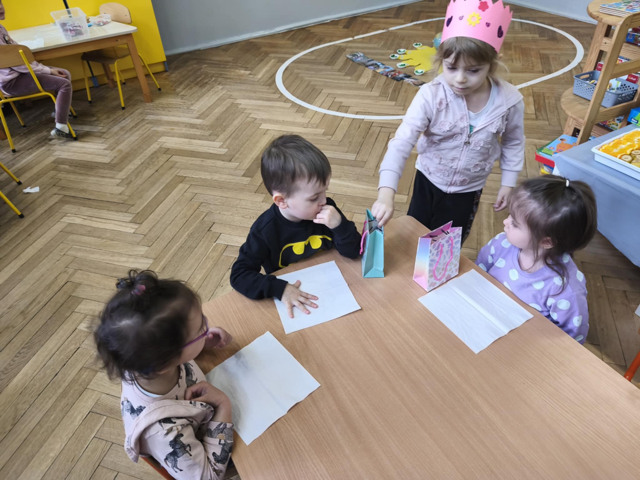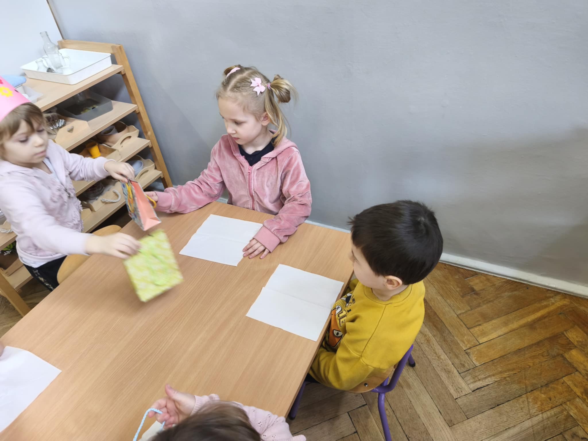 Dzisiejszego dnia świętowaliśmy 5 urodziny Amelki zgodnie z tradycją Montessori. Jubilatka wykonała symboliczne okrążenia wokół słońca, wkładając do miseczek koraliki. Wspólnie oglądaliśmy zdjęcia z różnych etapów życia Jubilatki.