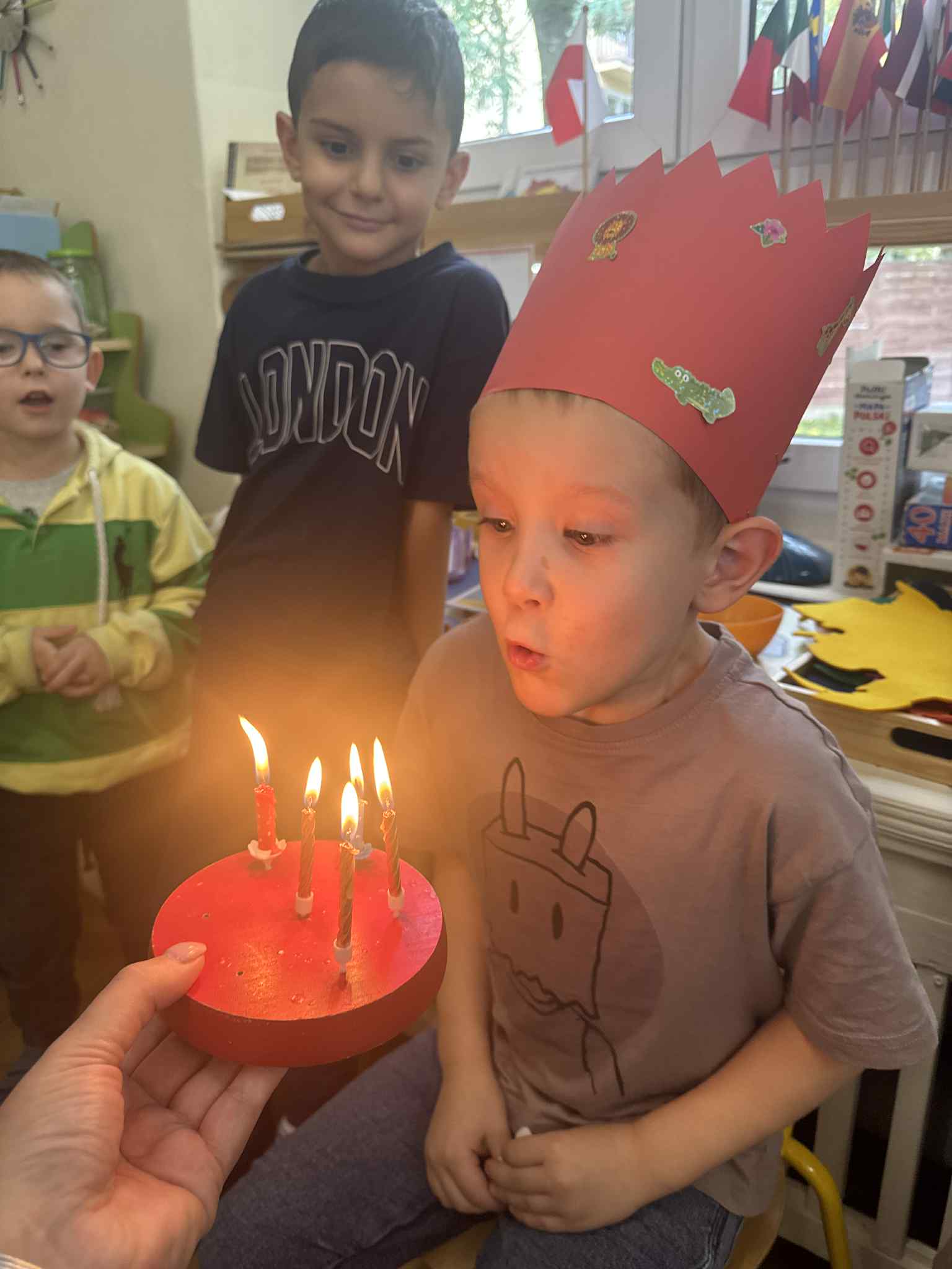 Dziś, po raz pierwszy, swoje urodziny w przedszkolu obchodził Igor. To był dla Niego ważny dzień- pełen wrażeń i emocji. Usłyszał wiele ciepłych słów o sobie, wymyślił sobie życzenie, i zdmuchnął świeczki na torcie.