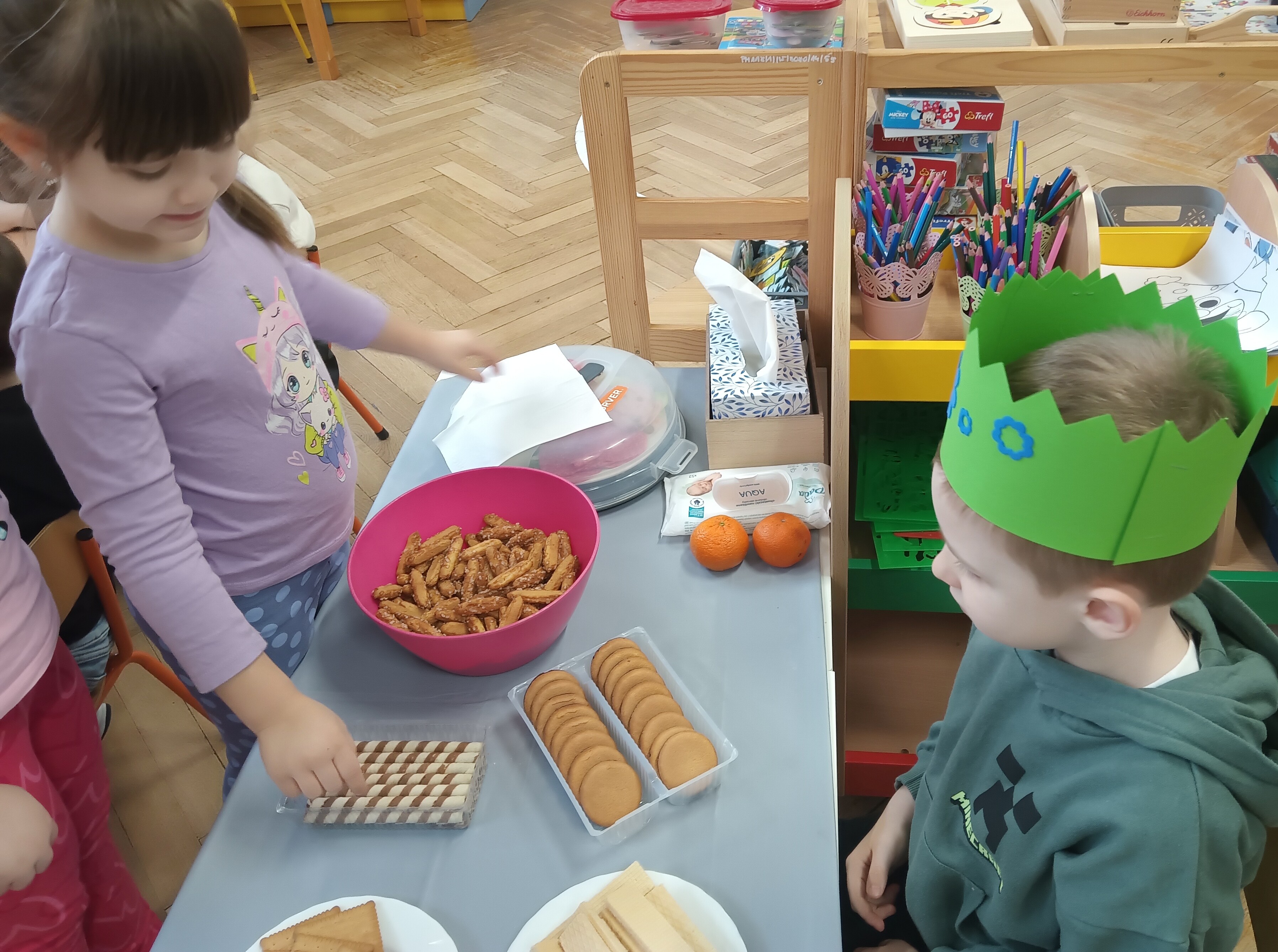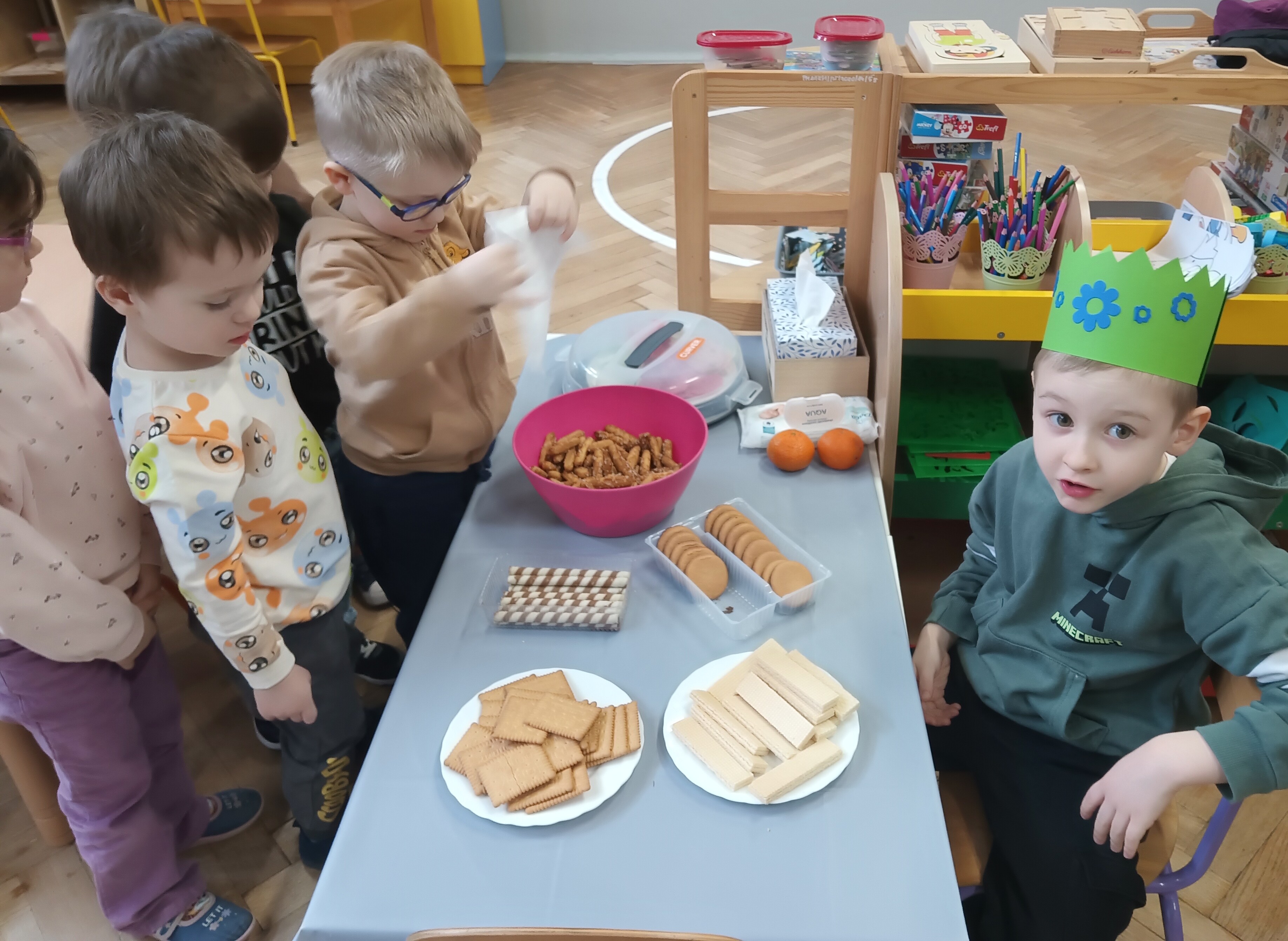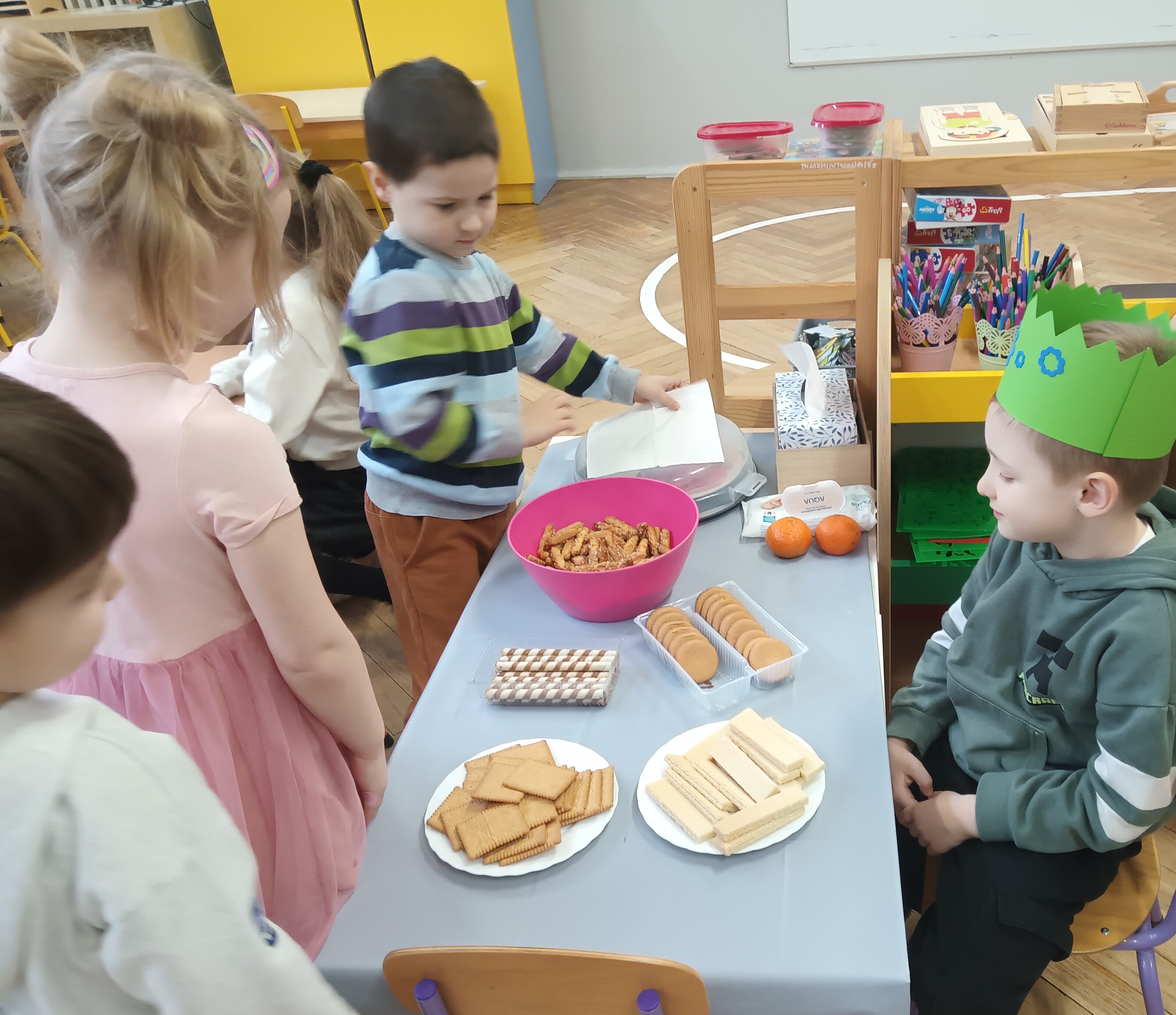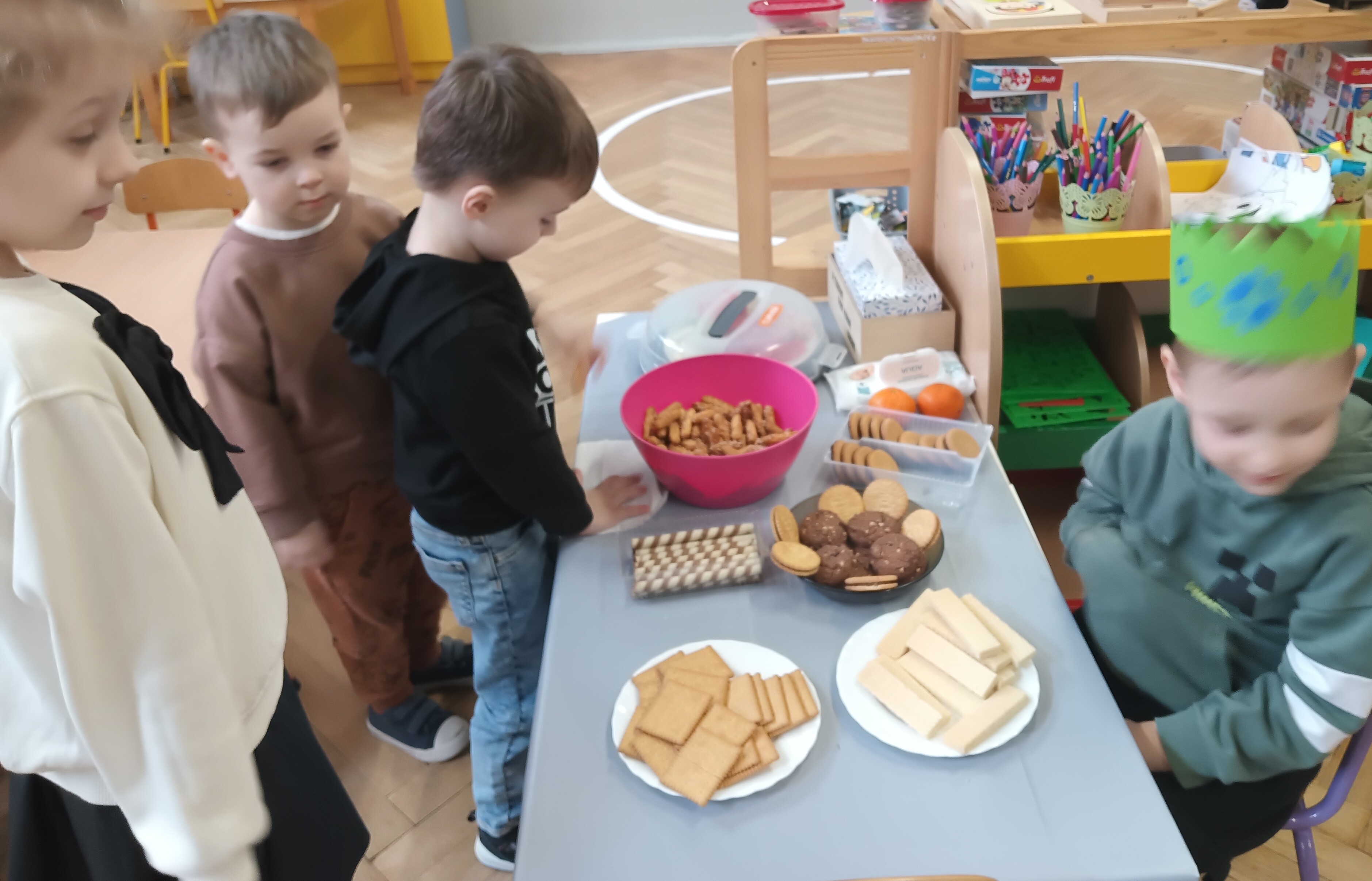 We wtorek swoje urodziny obchodził Olek. Chłopiec układał z korali swoją linie życia. Wspólnie oglądaliśmy zdjęcia z różnych okresów jego dzieciństwa. Jubilat poczęstował dzieci słodyczami, a cała grupa odśpiewała "Sto lat". Życzymy Ci, Olku dużo zdrówka i radości!