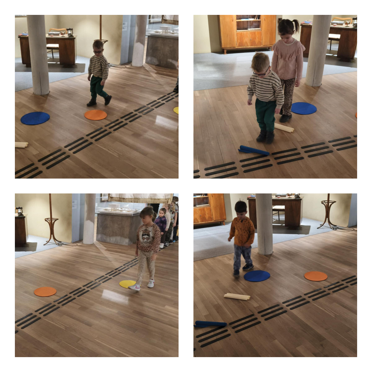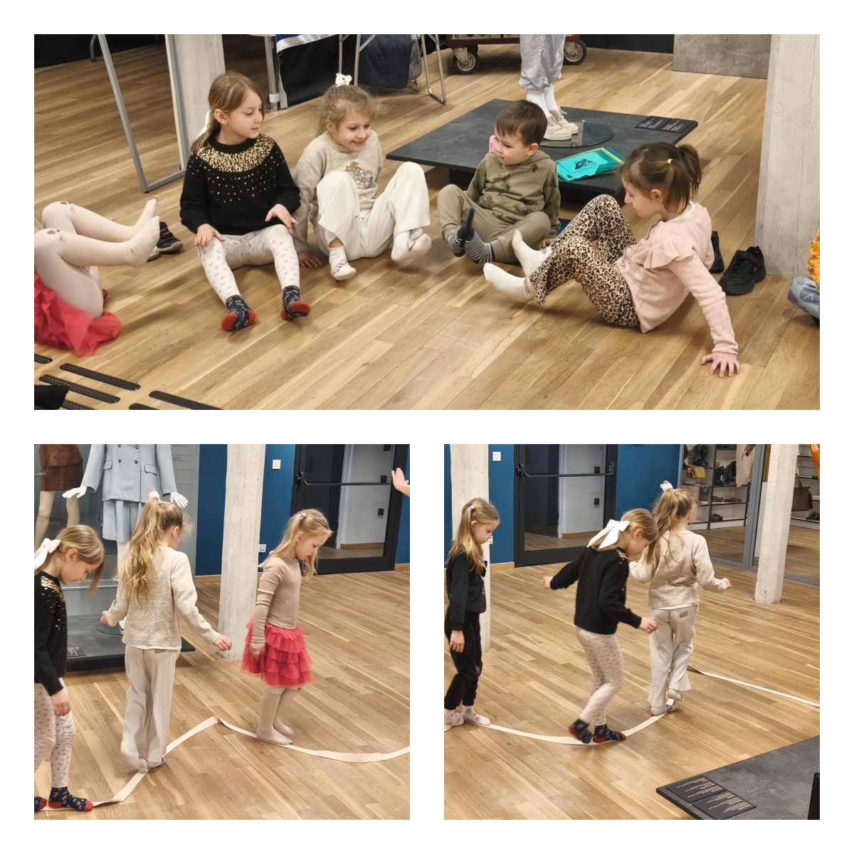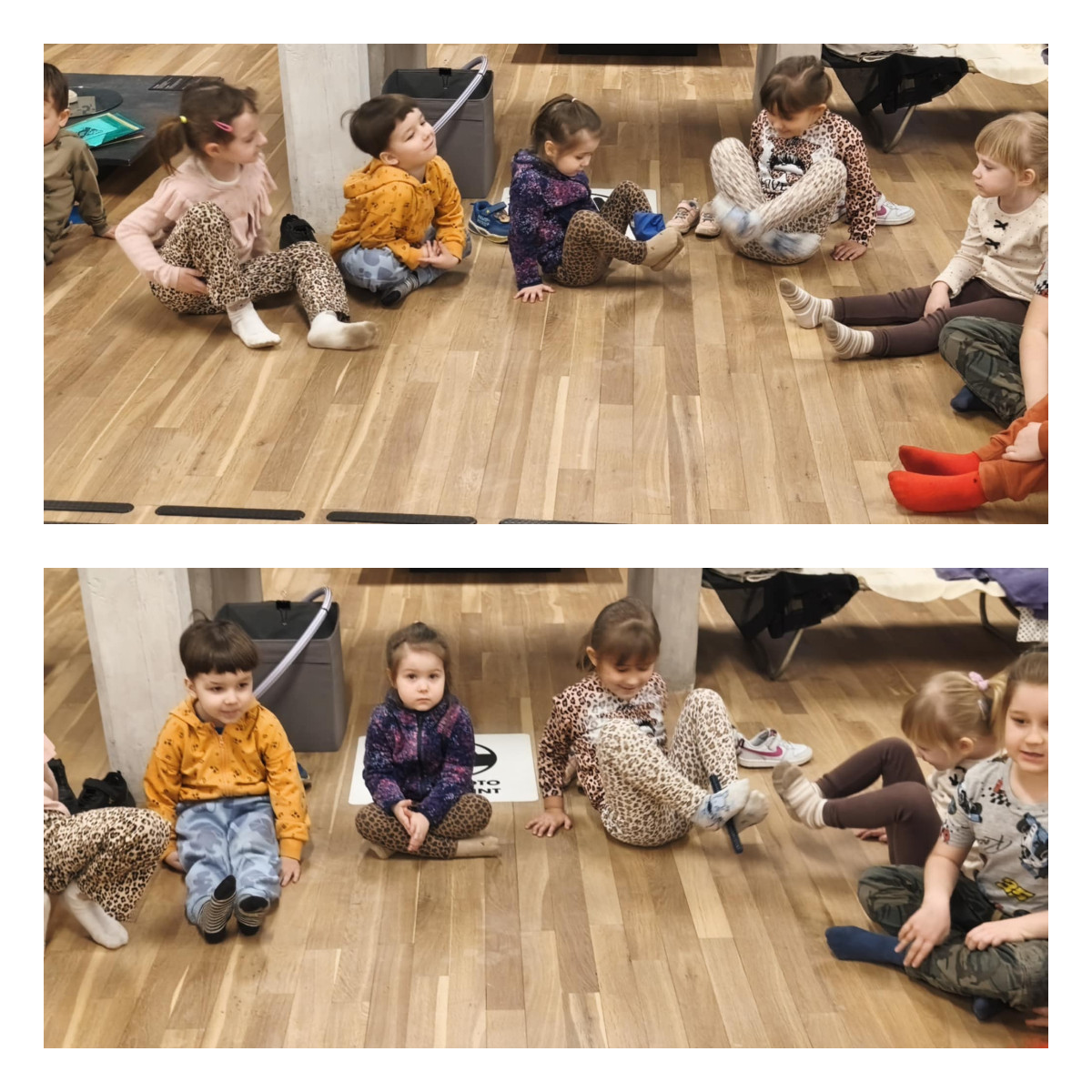 Podczas zajęć m.in.: trenowaliśmy naszą cierpliwość i zręczność, mierząc się z nauką wiązania sznurowadeł. Sprawdzaliśmy, czy nasze stopy są tak samo zwinne jak dłonie. Przekładaliśmy przedmioty, testowaliśmy różne sposoby chodzenia, a także badaliśmy różnorodne faktury i powierzchnie, odkrywając świat zupełnie nowych wrażeń dotykowych.