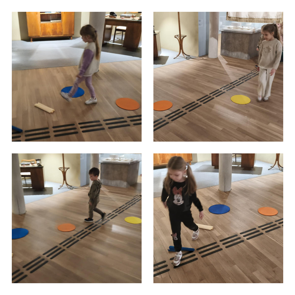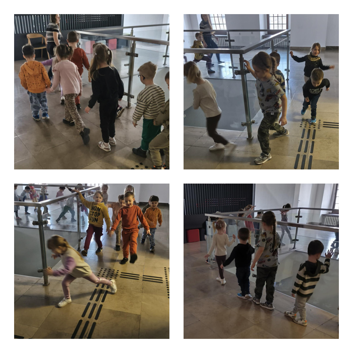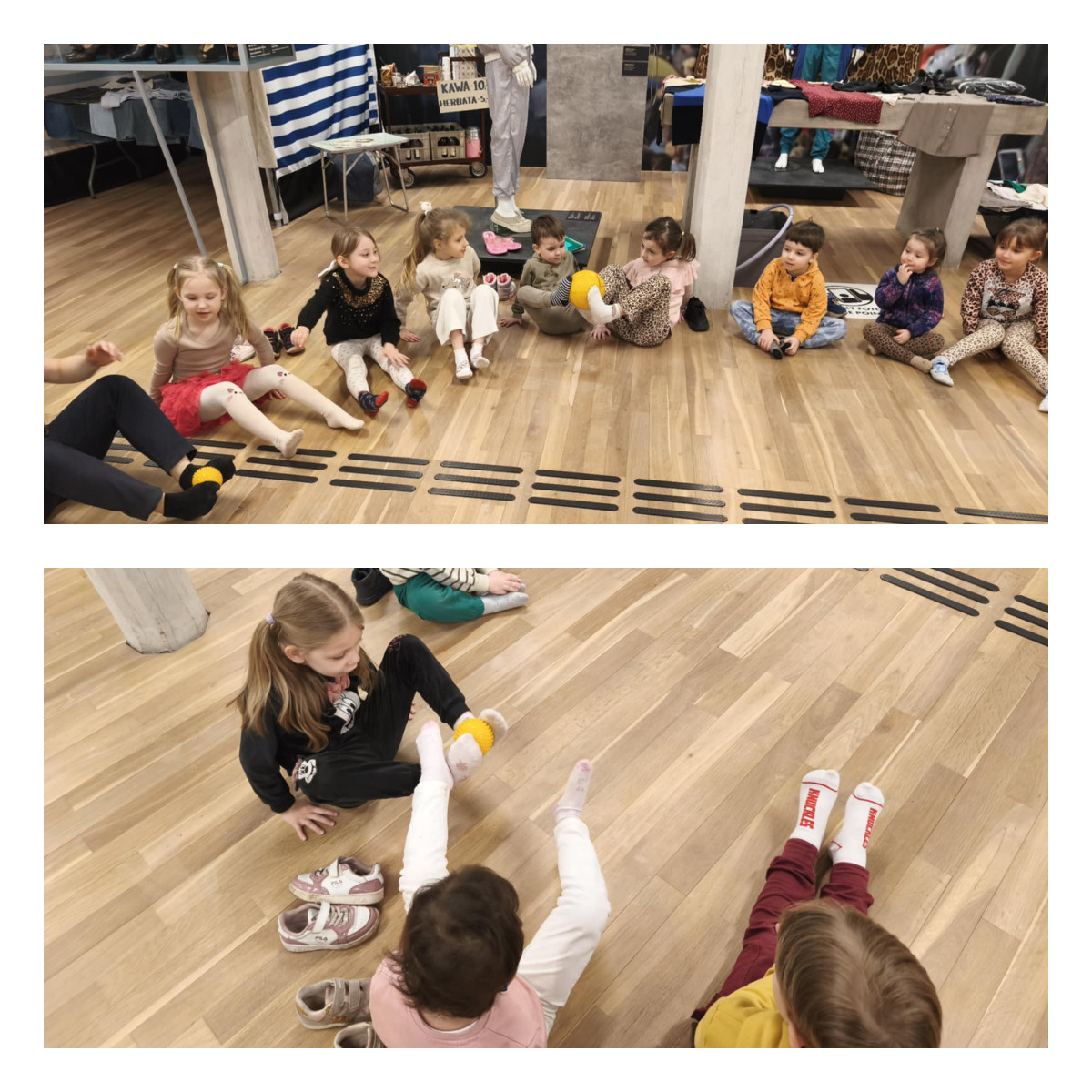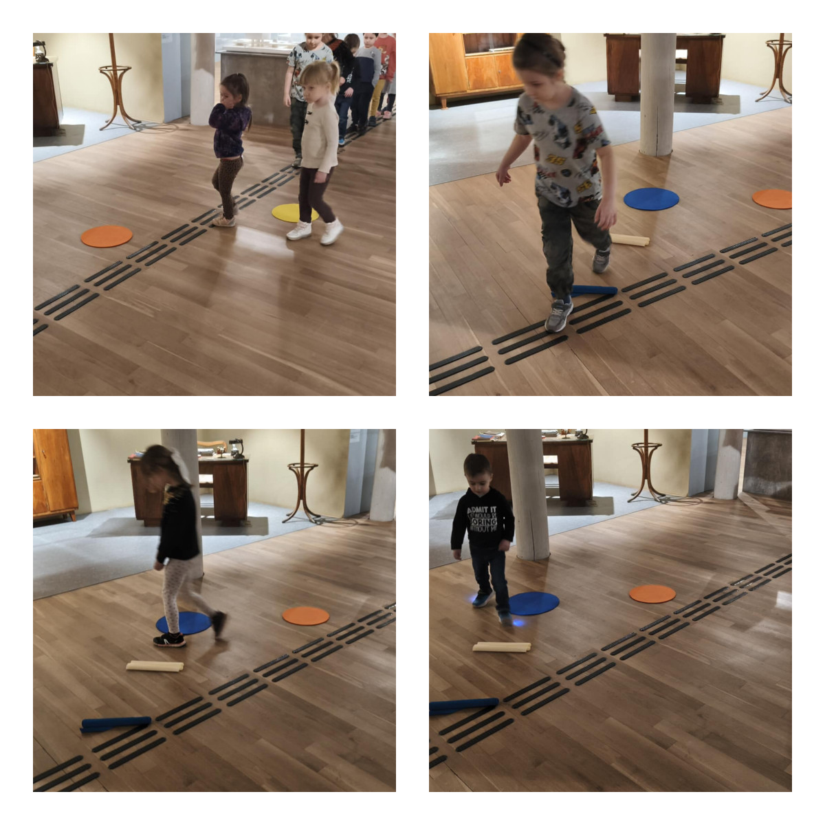 Podczas zajęć m.in.: trenowaliśmy naszą cierpliwość i zręczność, mierząc się z nauką wiązania sznurowadeł. Sprawdzaliśmy, czy nasze stopy są tak samo zwinne jak dłonie. Przekładaliśmy przedmioty, testowaliśmy różne sposoby chodzenia, a także badaliśmy różnorodne faktury i powierzchnie, odkrywając świat zupełnie nowych wrażeń dotykowych.