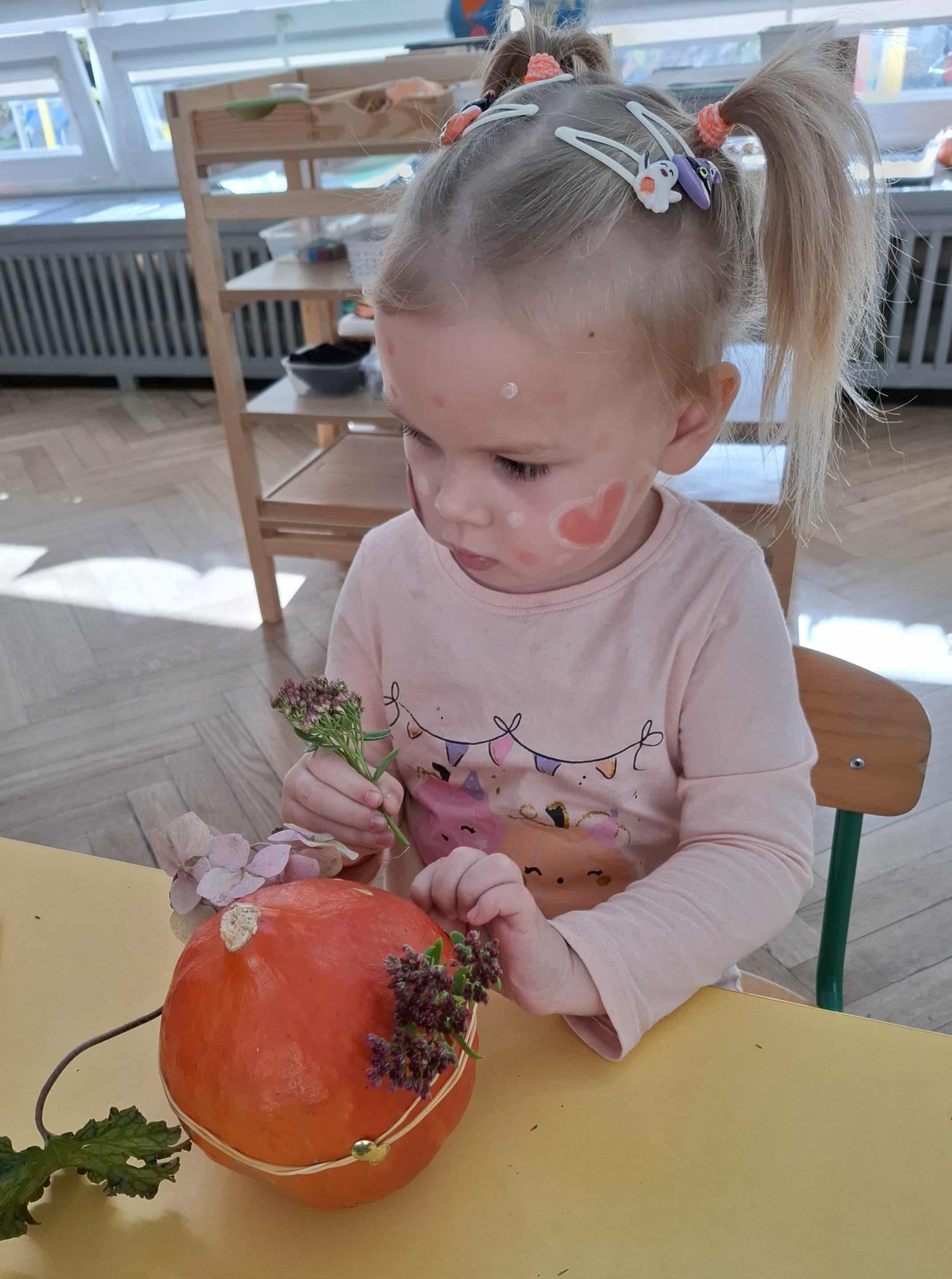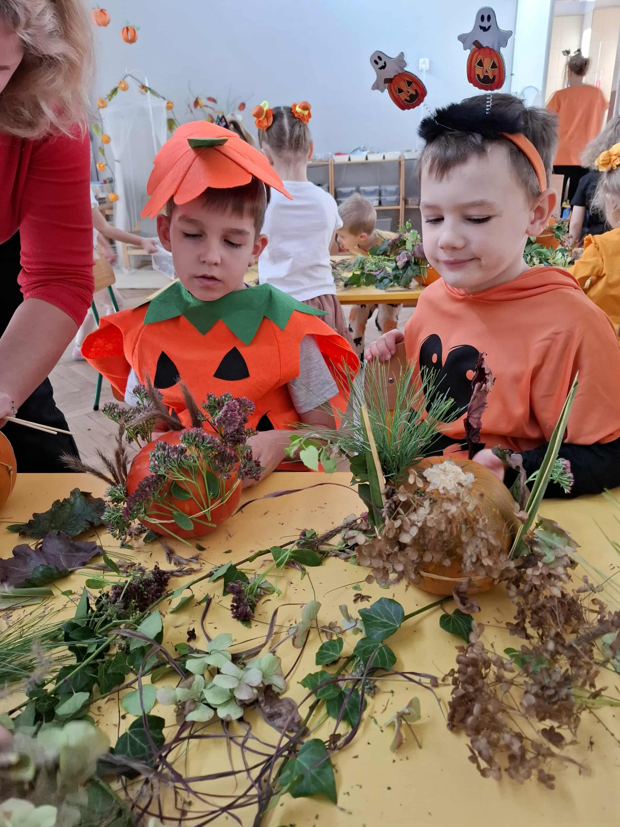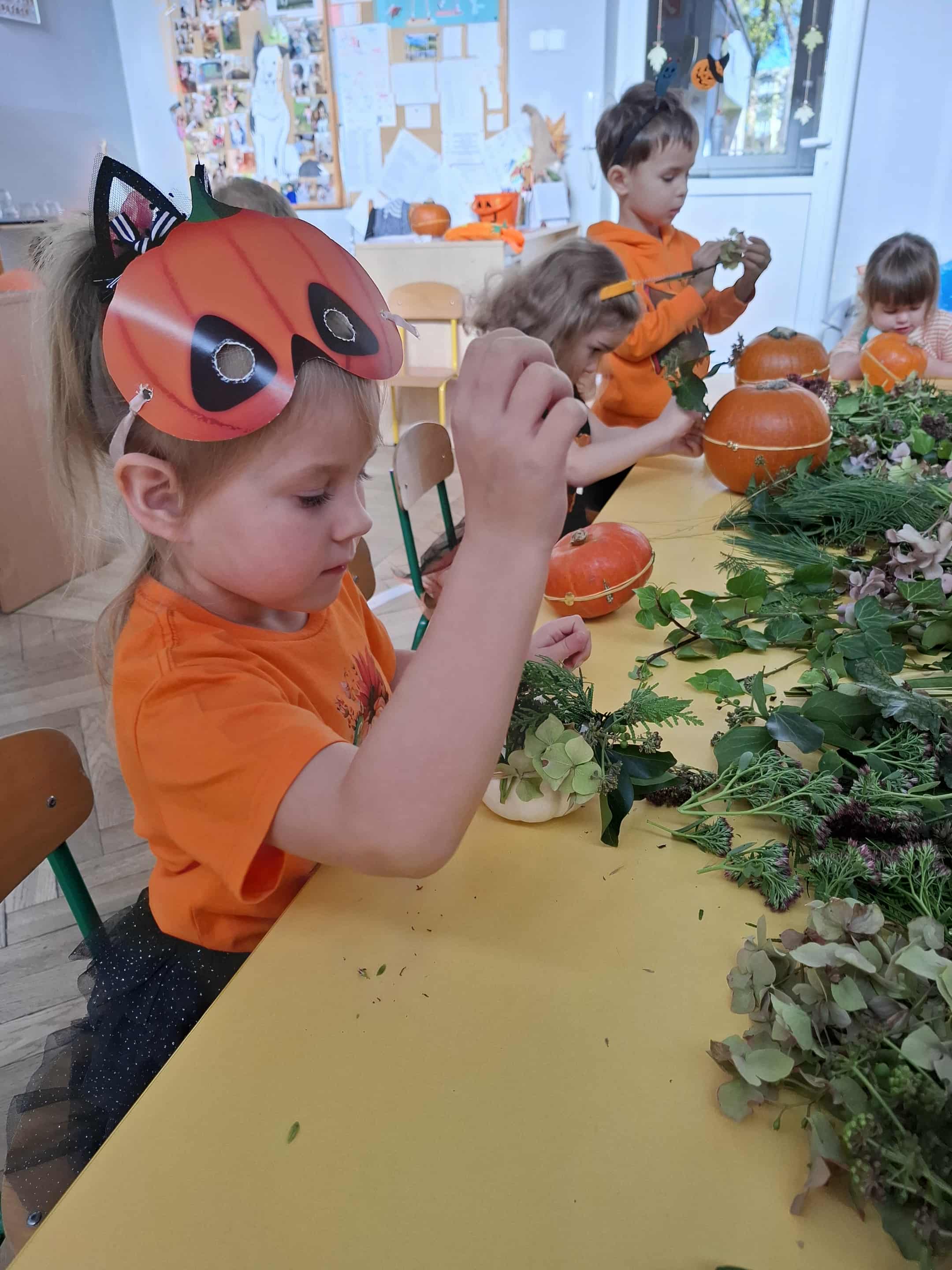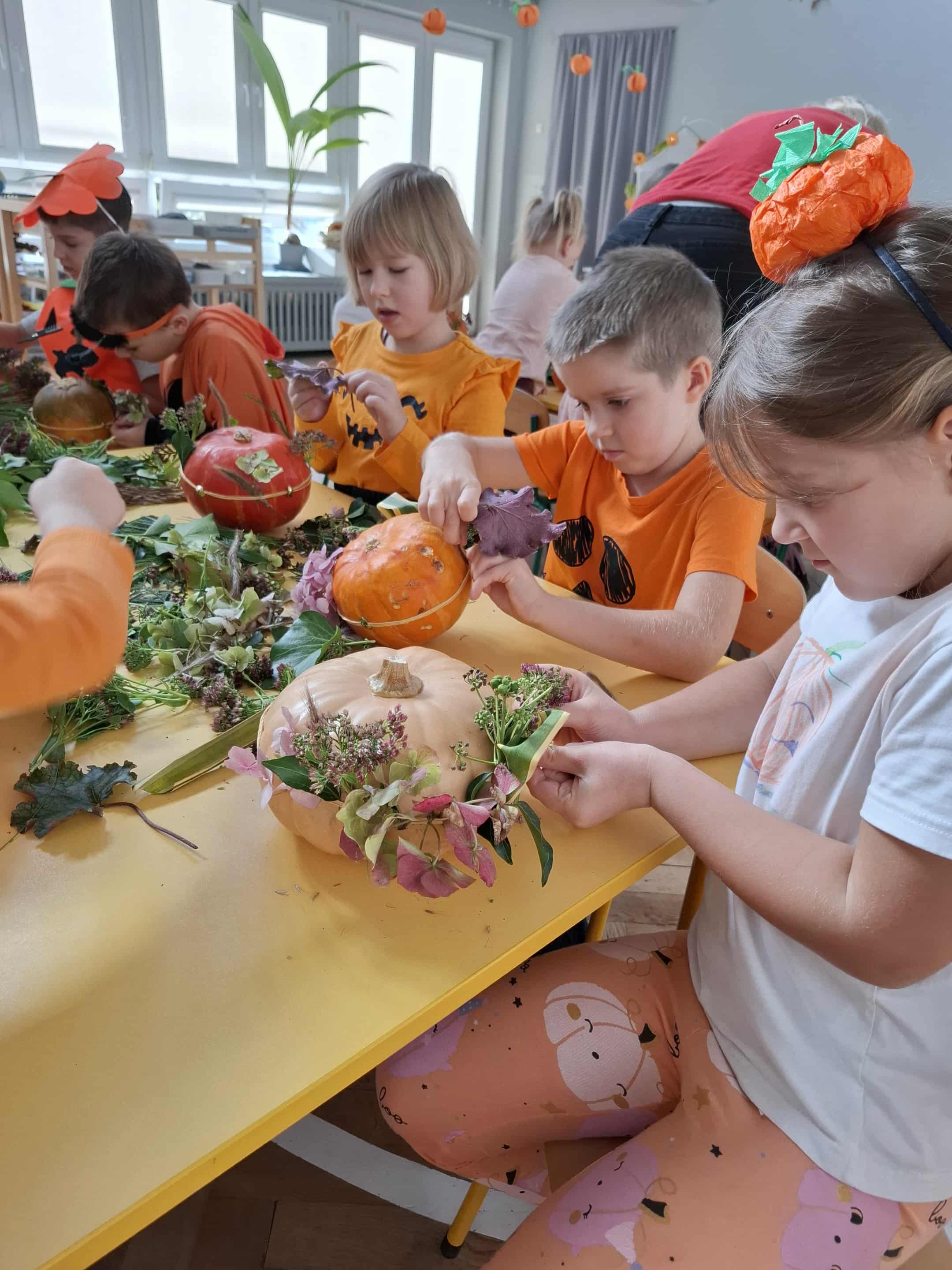 Podczas warsztatów z mamą Zosi przenieśliśmy się do świata roślin i kolorów! W roli głównej wystąpiła oczywiście dynia – piękna, pachnąca i gotowa na nowe stylizacje. Dzieci z ogromnym zapałem ozdabiały swoje dynie, tworząc prawdziwe, jesienne arcydzieła z liści, kwiatów i innych roślin. Każda praca była inna, wyjątkowa – dokładnie tak jak nasi mali artyści! Na koniec każdy z dumą zabrał swoją dynię do domu, by dalej roztaczała jesienny urok. Mamie Zosi serdecznie dziękujemy i nie możemy doczekać się kolejnego spotkania.