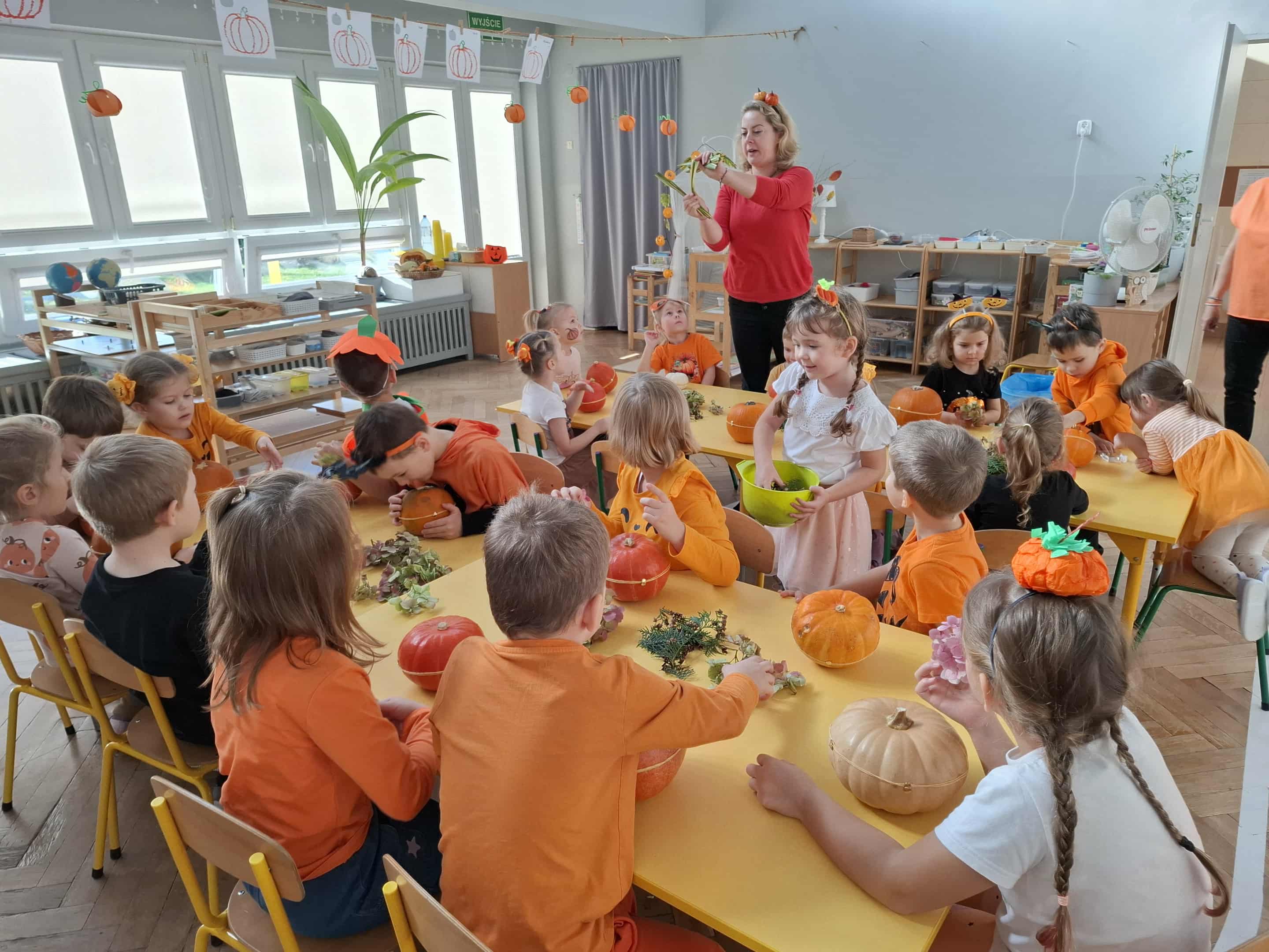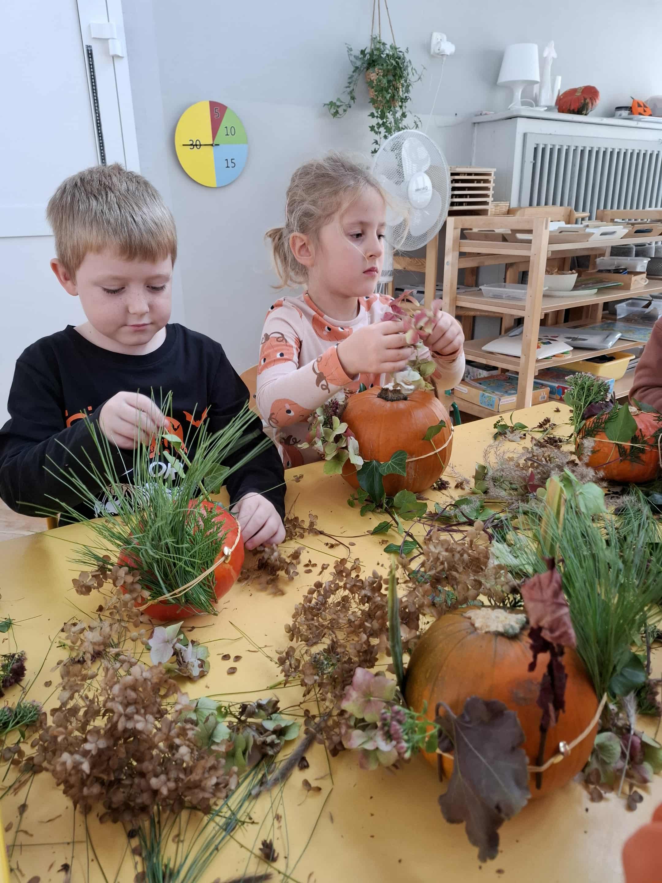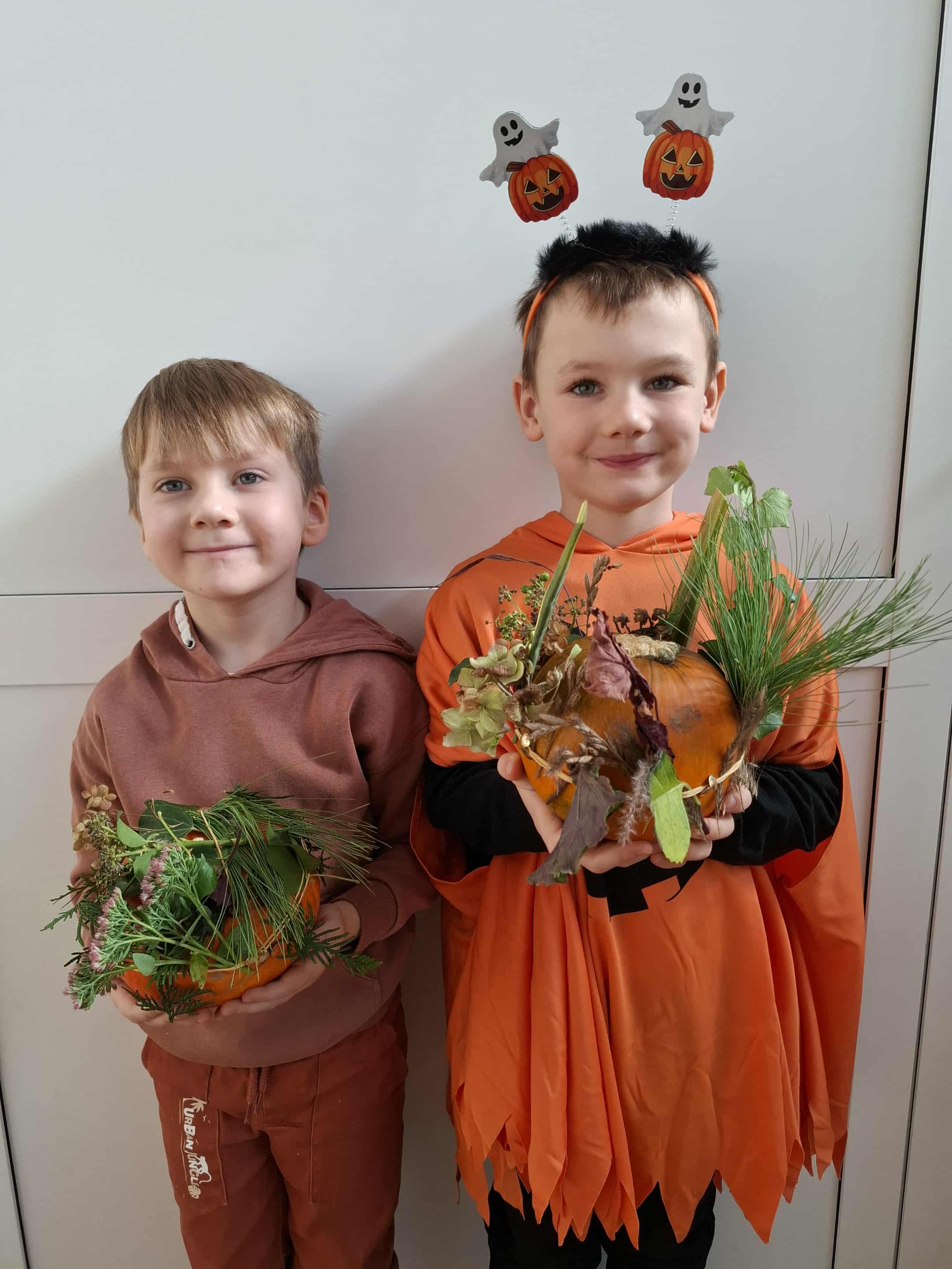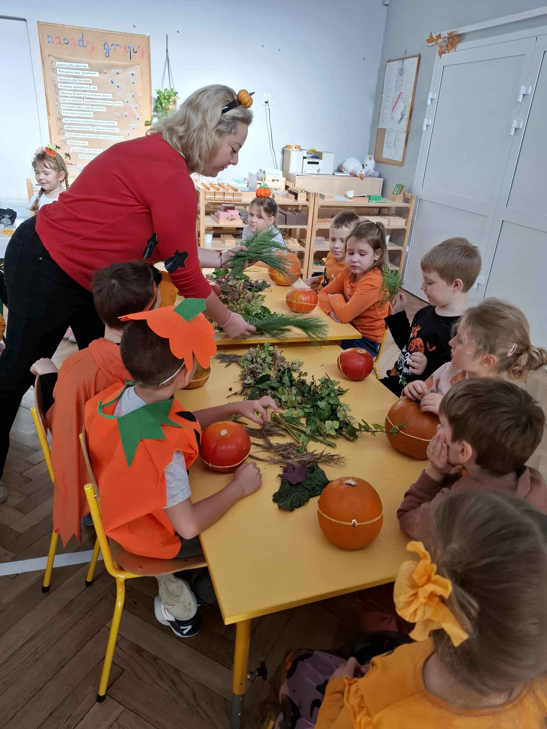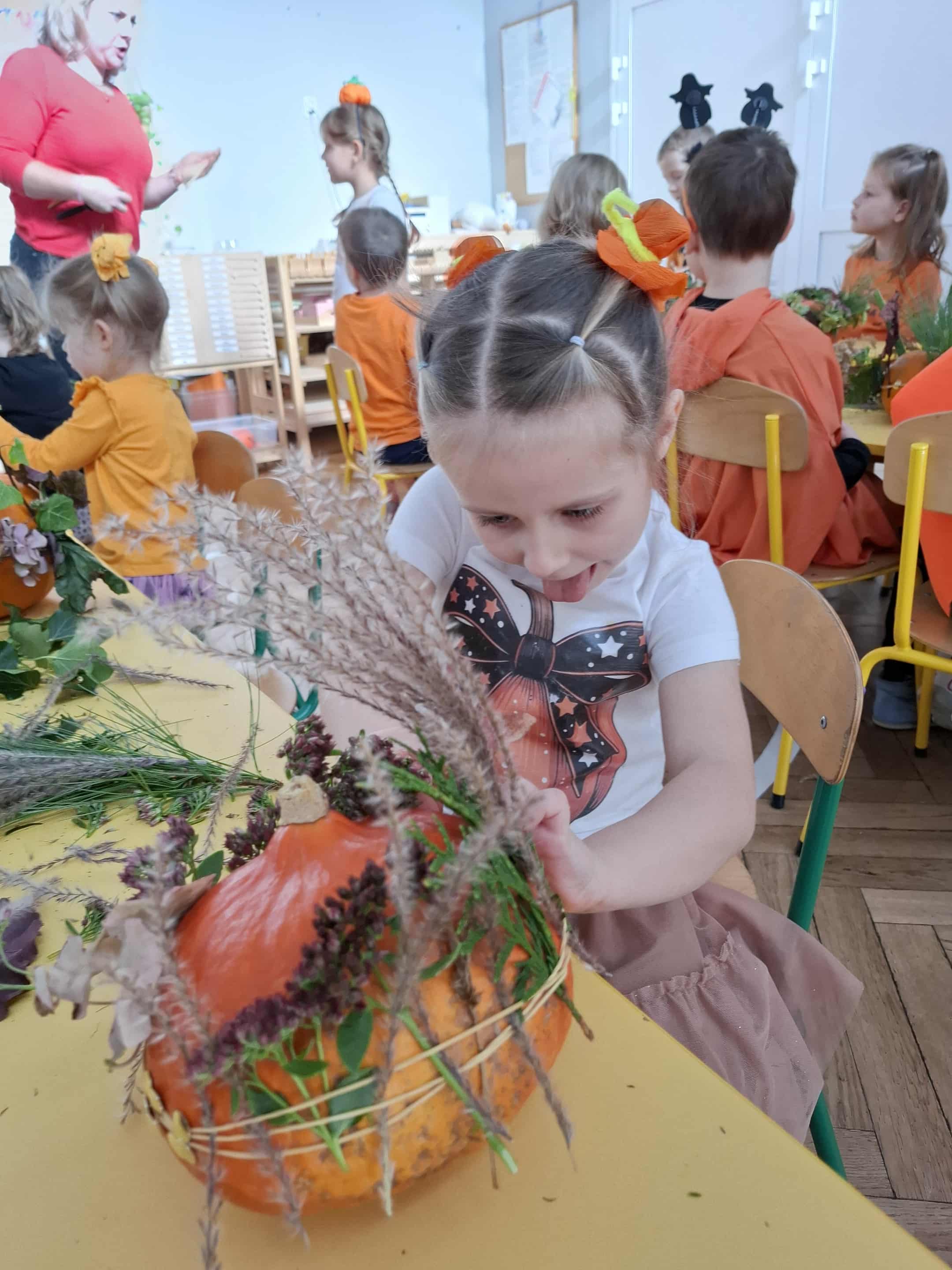 Podczas warsztatów z mamą Zosi przenieśliśmy się do świata roślin i kolorów! W roli głównej wystąpiła oczywiście dynia – piękna, pachnąca i gotowa na nowe stylizacje. Dzieci z ogromnym zapałem ozdabiały swoje dynie, tworząc prawdziwe, jesienne arcydzieła z liści, kwiatów i innych roślin. Każda praca była inna, wyjątkowa – dokładnie tak jak nasi mali artyści! Na koniec każdy z dumą zabrał swoją dynię do domu, by dalej roztaczała jesienny urok. Mamie Zosi serdecznie dziękujemy i nie możemy doczekać się kolejnego spotkania.