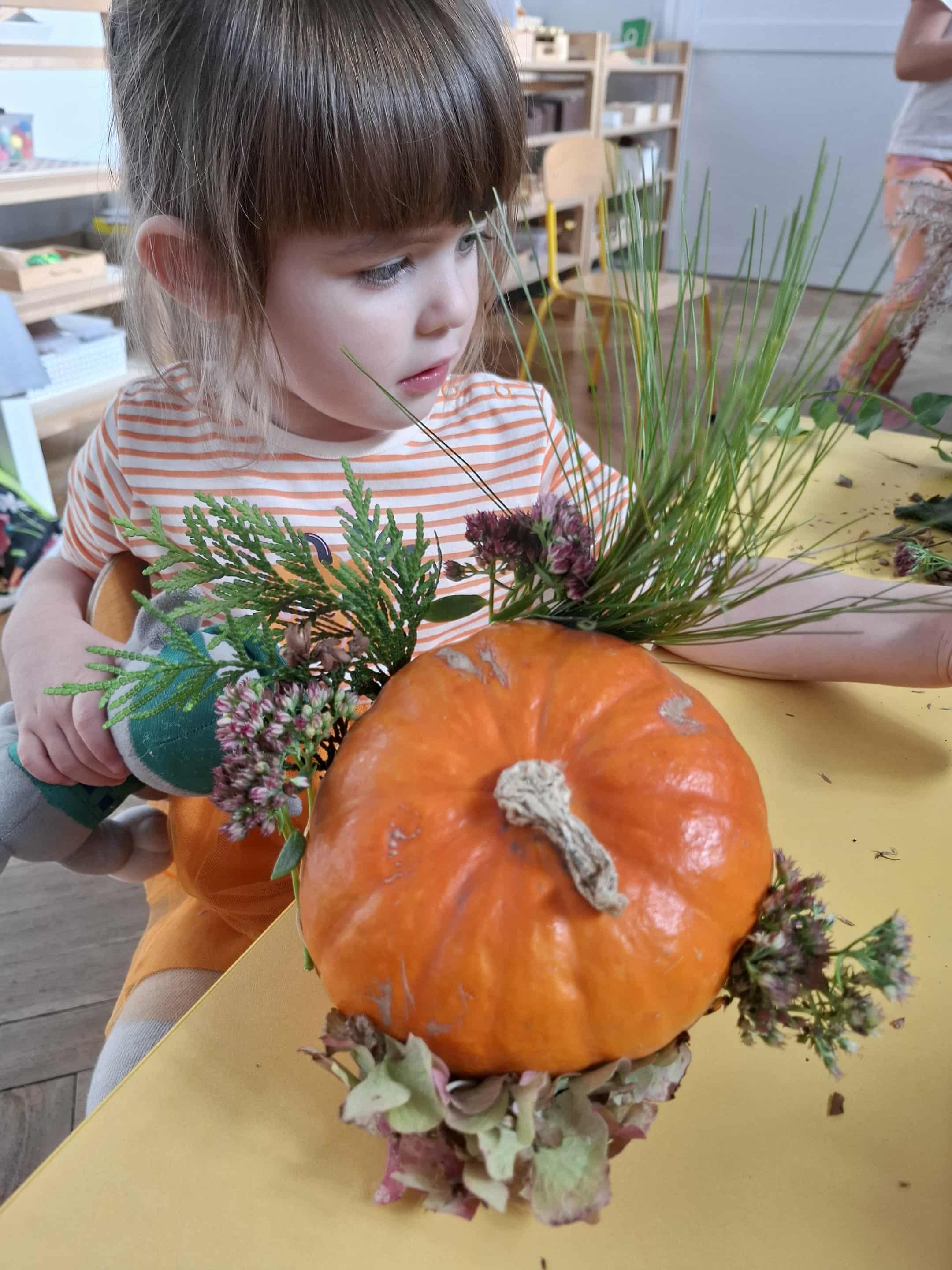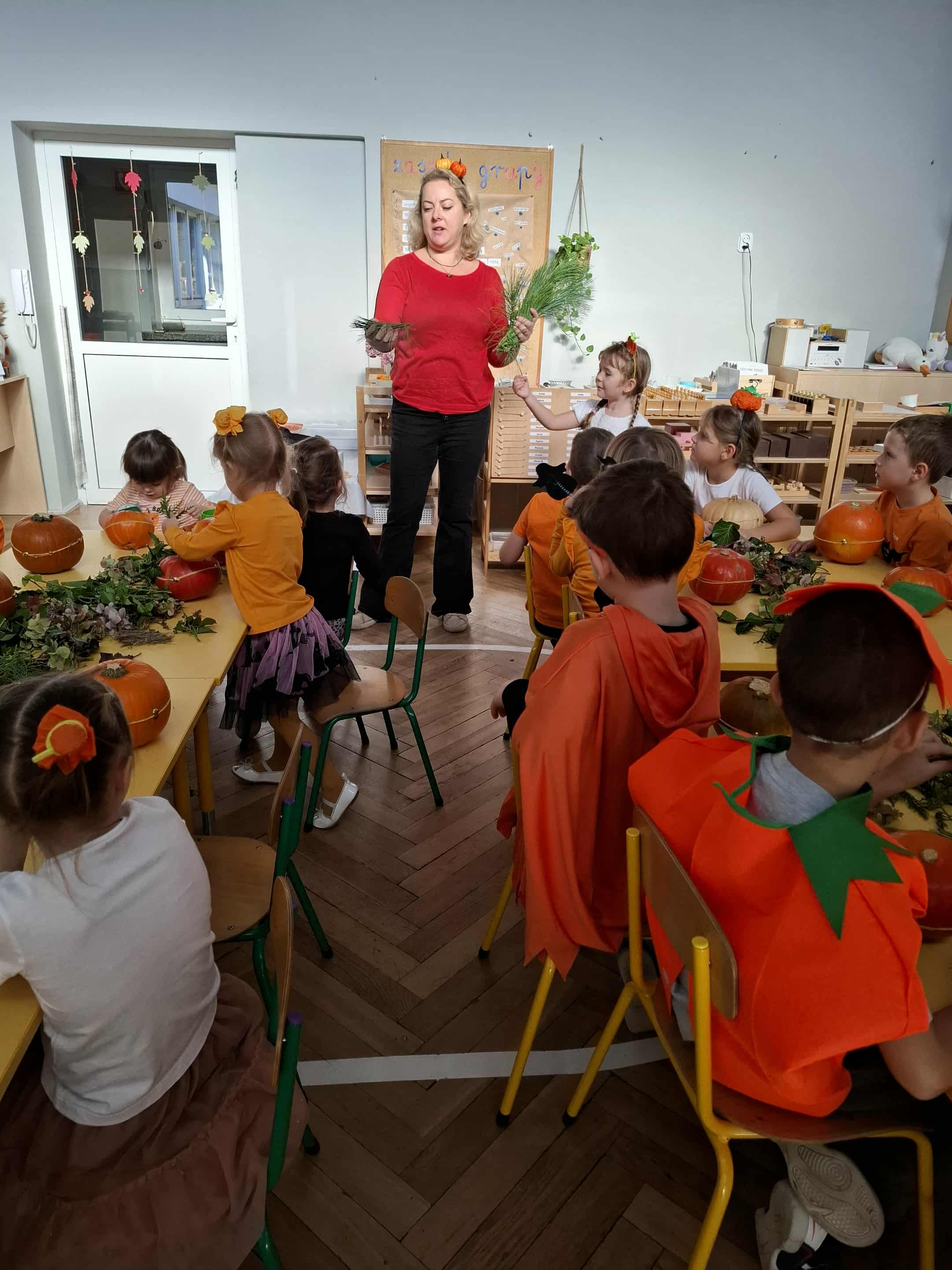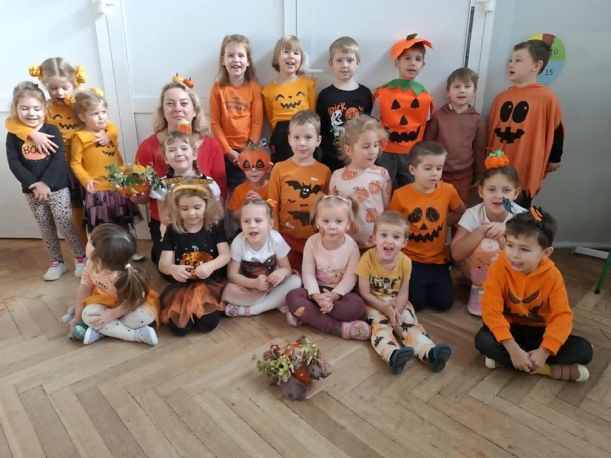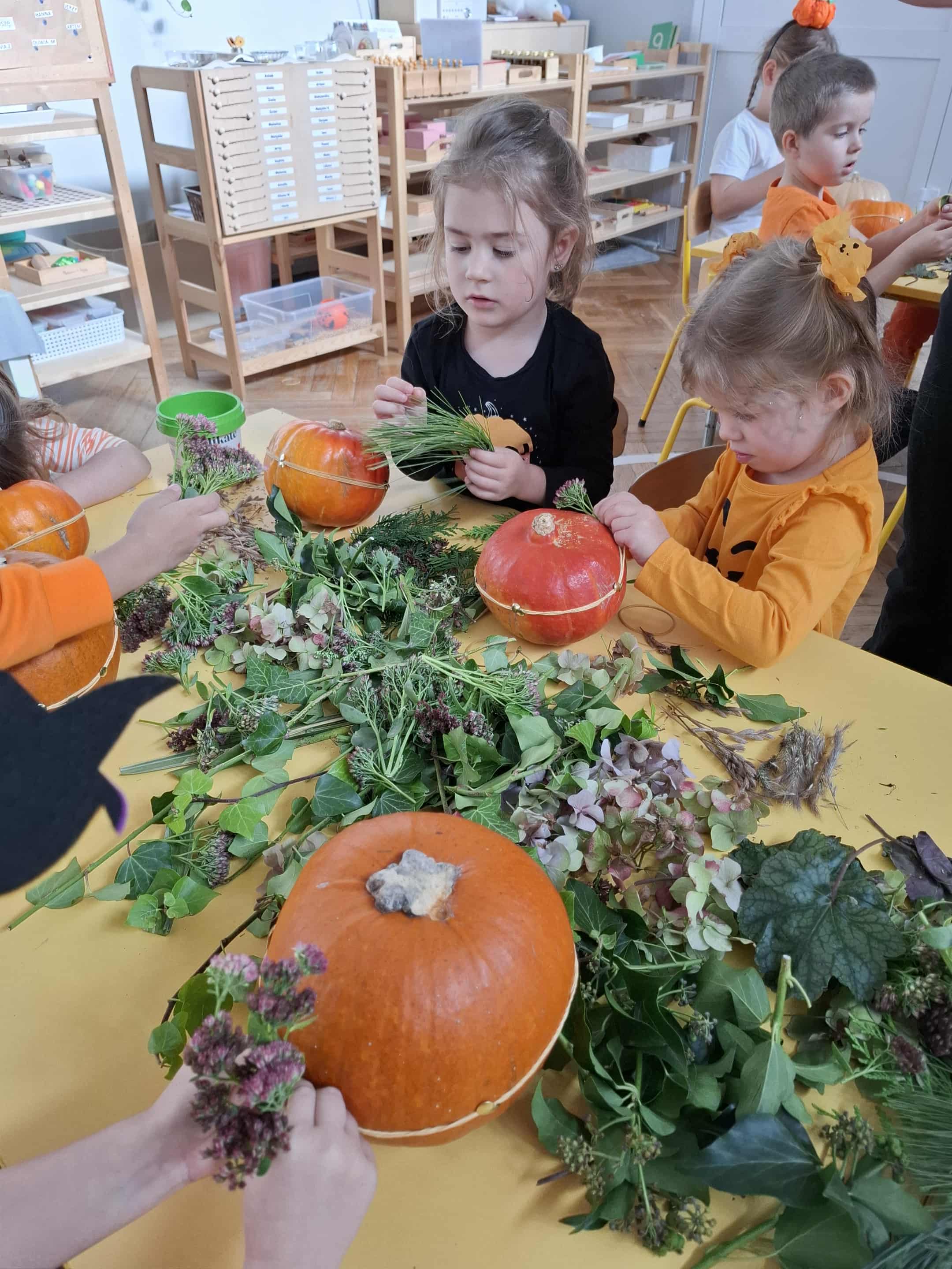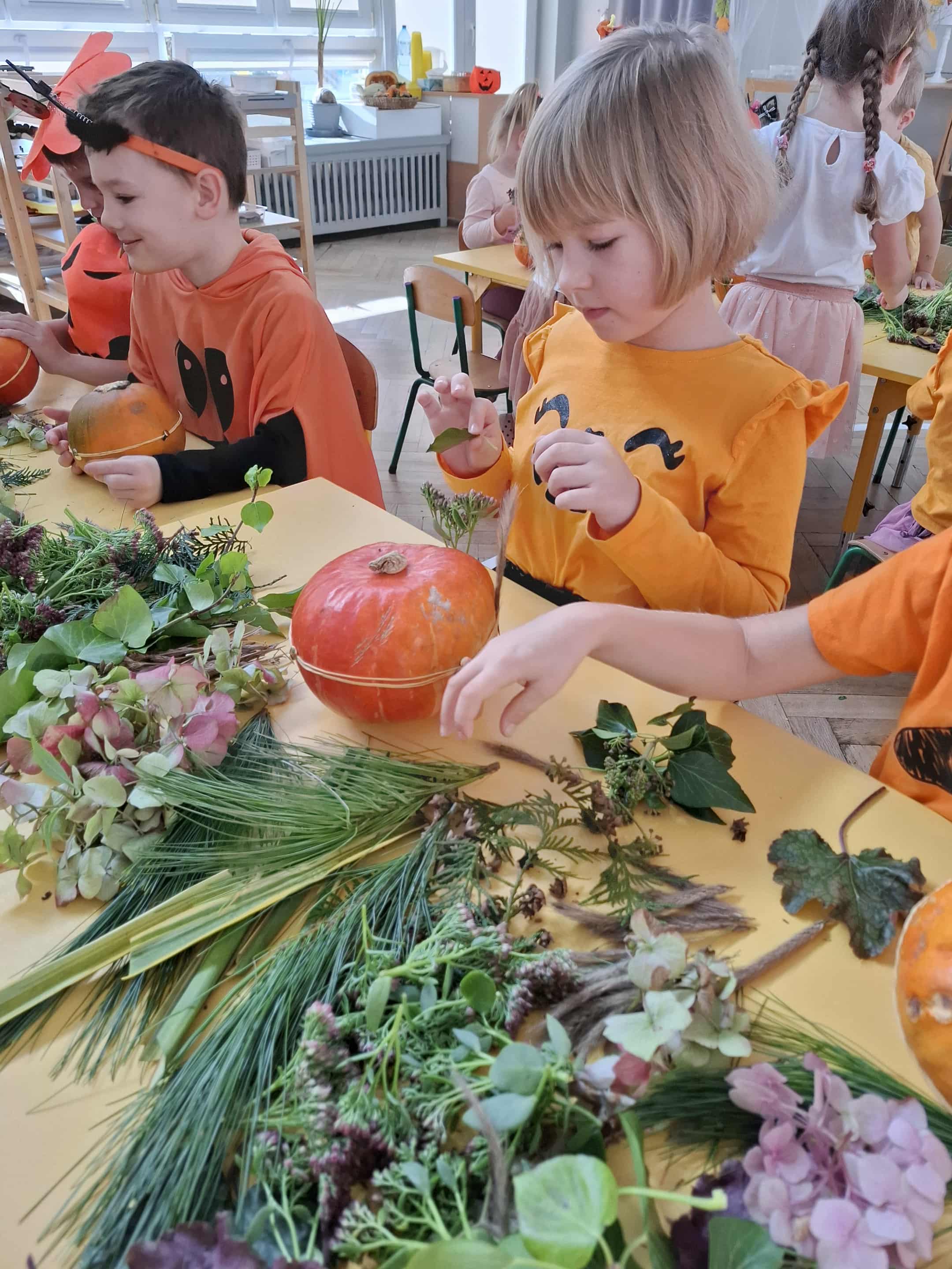 Podczas warsztatów z mamą Zosi przenieśliśmy się do świata roślin i kolorów! W roli głównej wystąpiła oczywiście dynia – piękna, pachnąca i gotowa na nowe stylizacje. Dzieci z ogromnym zapałem ozdabiały swoje dynie, tworząc prawdziwe, jesienne arcydzieła z liści, kwiatów i innych roślin. Każda praca była inna, wyjątkowa – dokładnie tak jak nasi mali artyści! Na koniec każdy z dumą zabrał swoją dynię do domu, by dalej roztaczała jesienny urok. Mamie Zosi serdecznie dziękujemy i nie możemy doczekać się kolejnego spotkania.