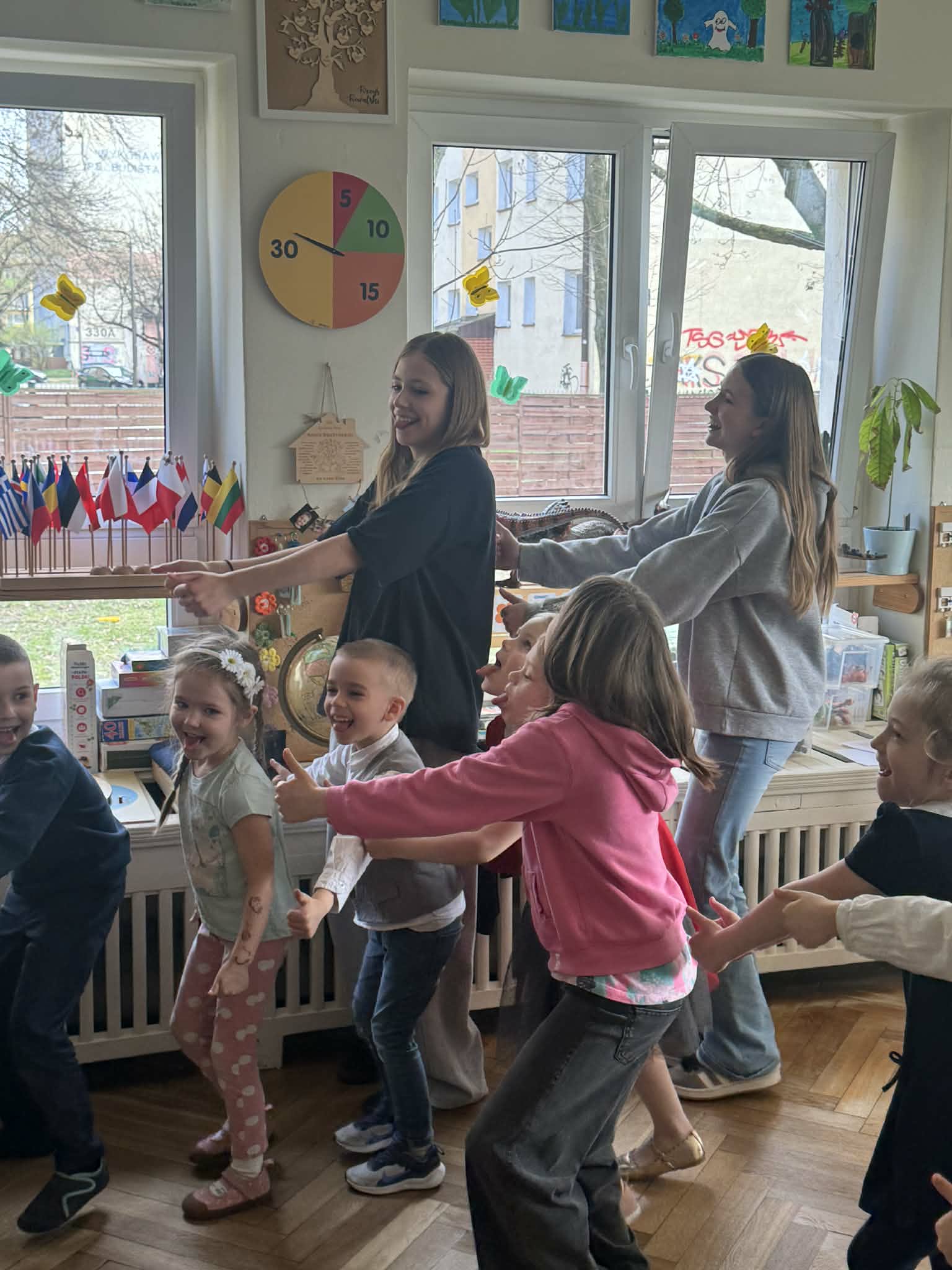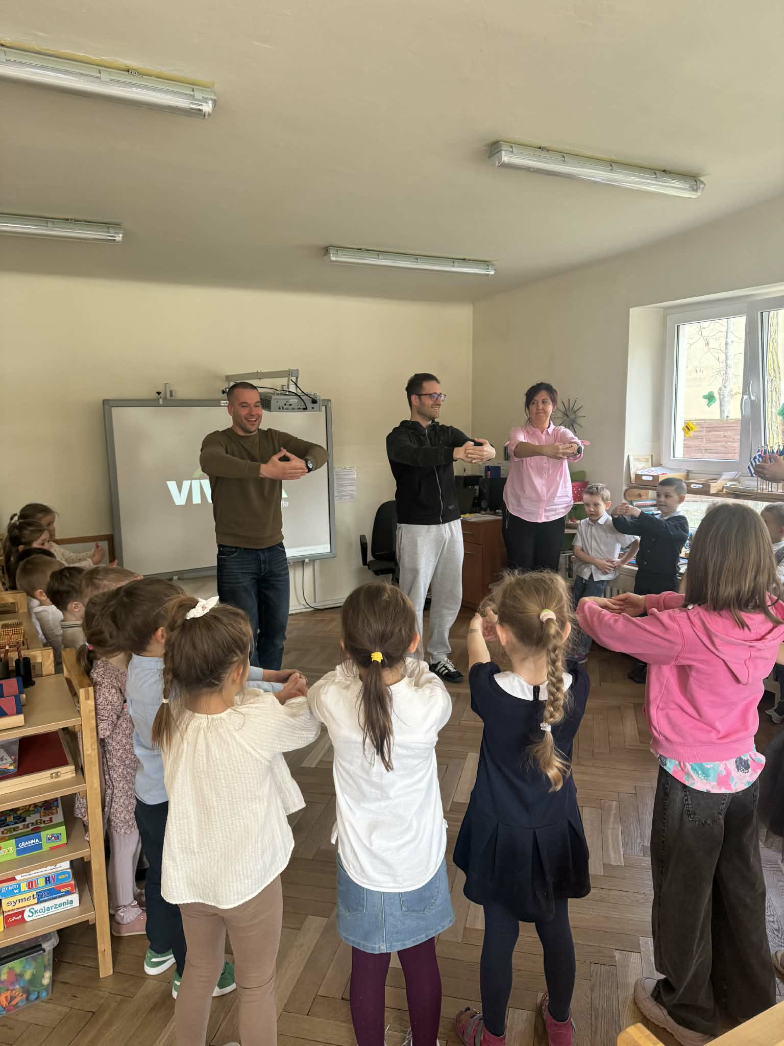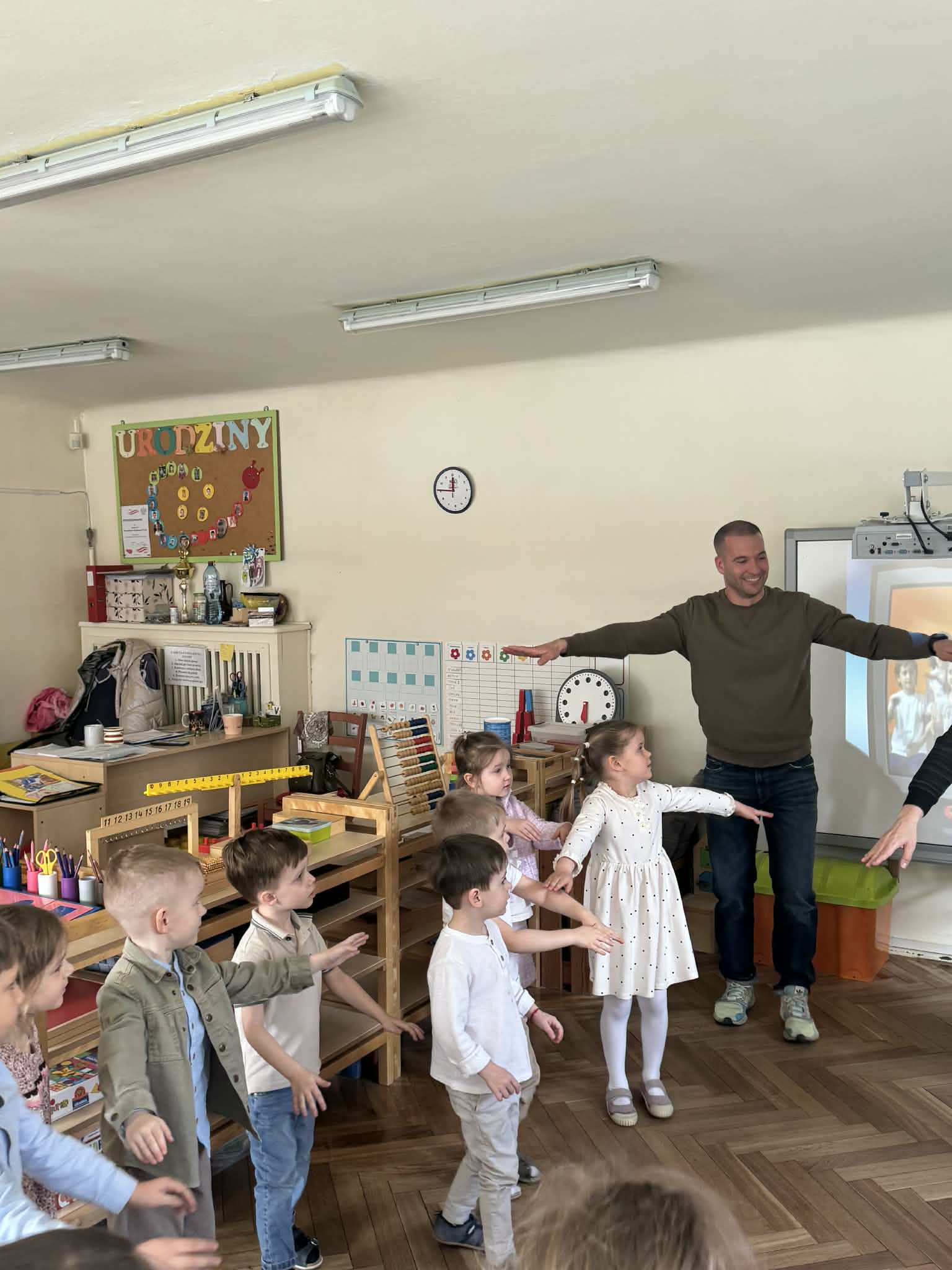 W ostatnich dniach nasze przedszkole miało przyjemność gościć wyjątkowych odwiedzających. Odwiedzili nas wolontariusze z Hiszpanii, którzy gościli w latach 2016 - 2017 r oraz nasi absolwenci, którzy z sentymentem wrócili w przedszkolne progi. Goście z Hiszpanii mieli okazję spróbować typowych potraw z okazji Świąt uczestnicząc z nami w świątecznym śniadaniu. Była też okazja do poznania kilku słów w języku hiszpańskim i powrót do zabaw sprzed 10 lat. Dla dzieci nie istnieje coś takiego jak bariera językowa więc szybko nawiązały kontakt z wolontariuszami i świetnie się bawiły. Równie miłym momentem była wizyta absolwentek przedszkola, które z uśmiechem i radością wspominały chwile spędzone w naszym przedszkolu