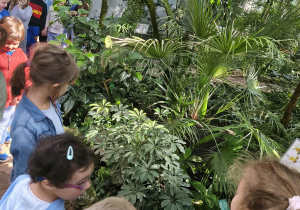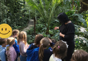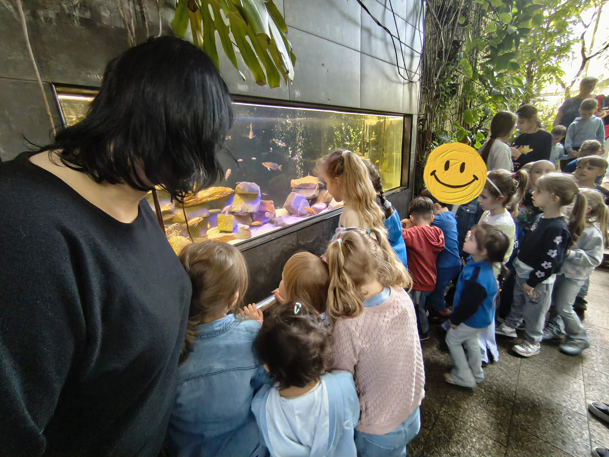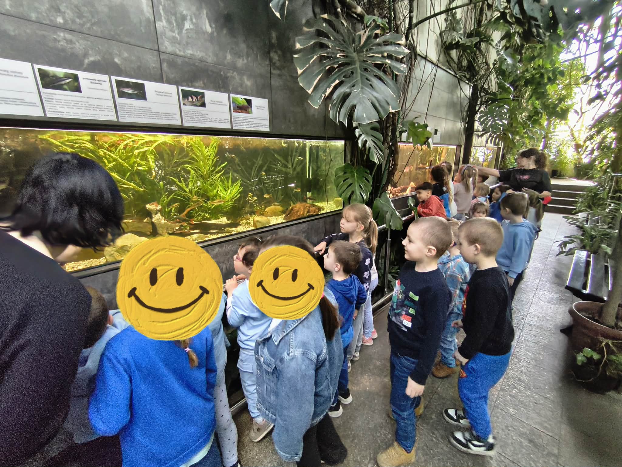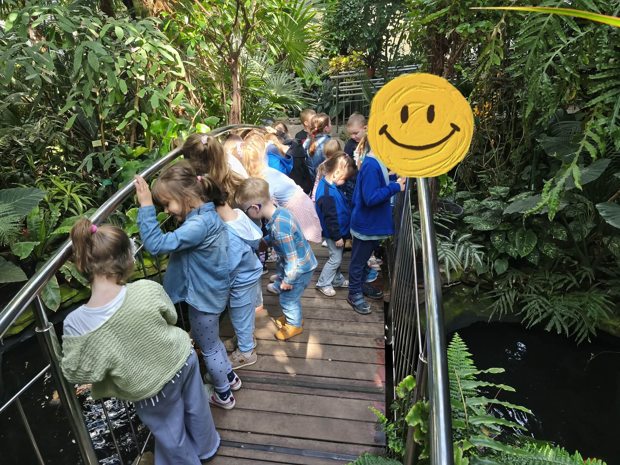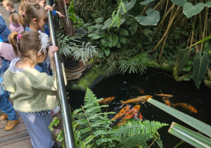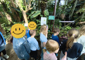 Podczas spaceru poznawaliśmy ciekawostki o różnych strefach klimatycznych i obserwowaliśmy, jak rośliny przystosowują się do życia w tropikach. Wielką atrakcją okazały się wielkie akwaria i oczka wodne, w których pływały różnobarwne ryby – w tym „złota rybka”.