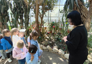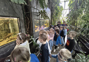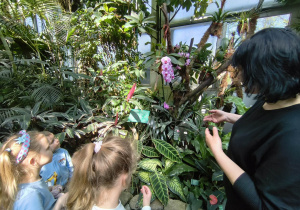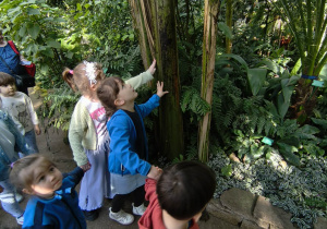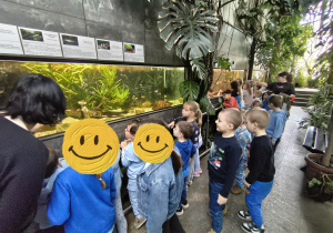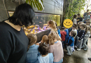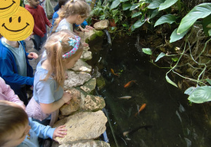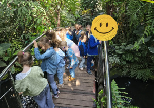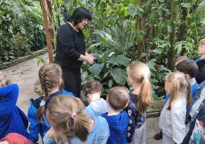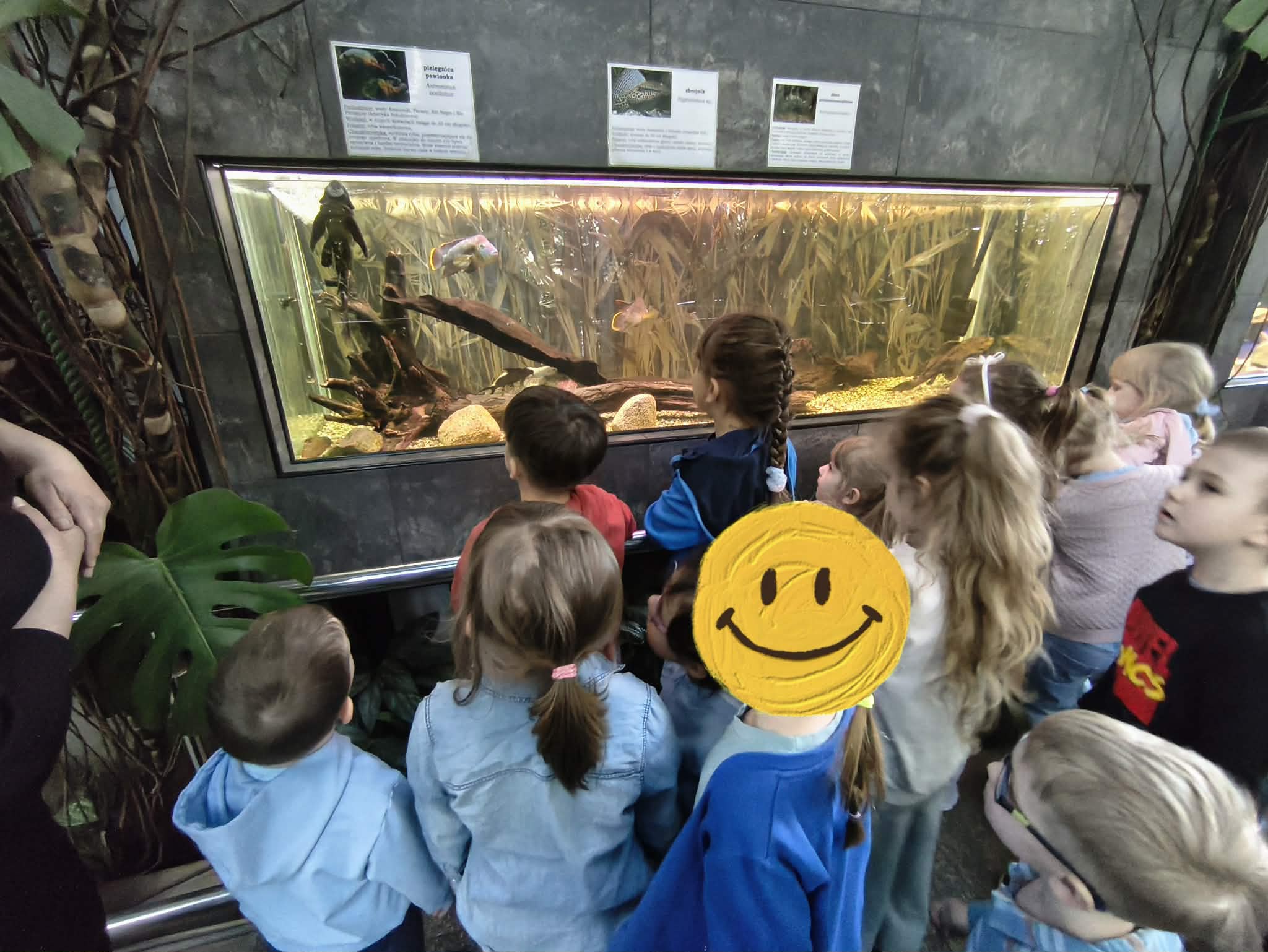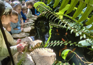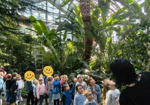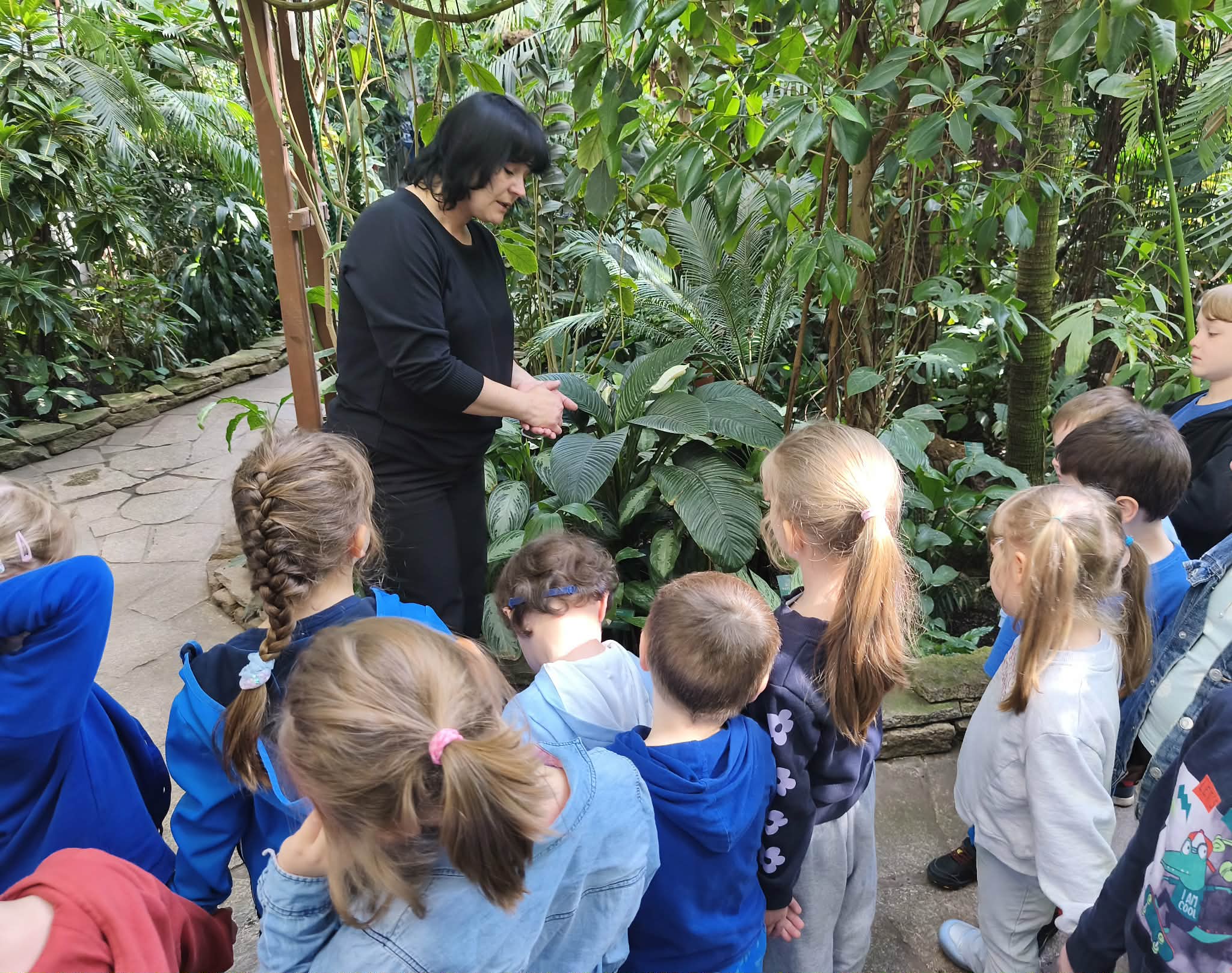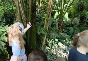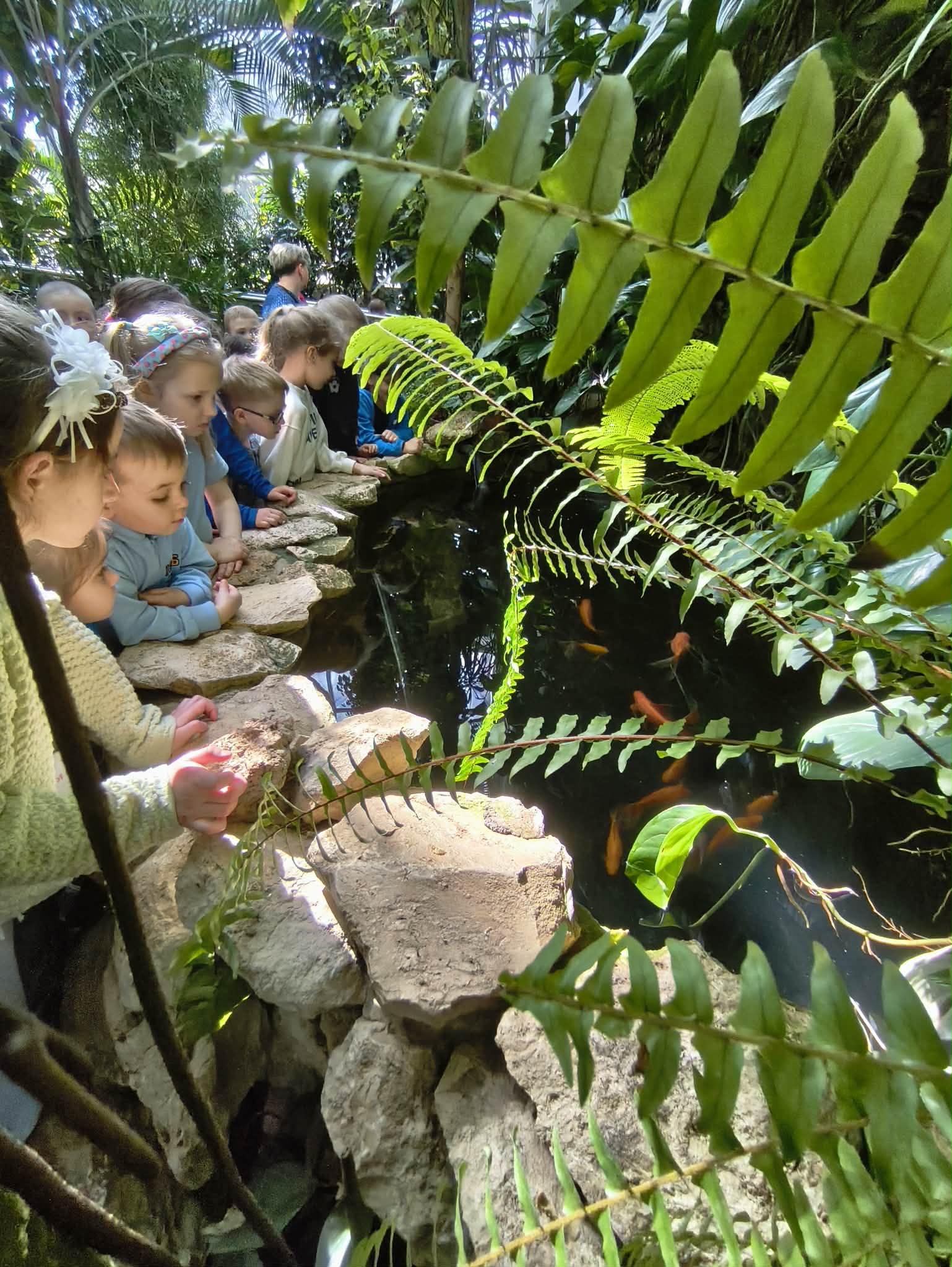 Podczas spaceru poznawaliśmy ciekawostki o różnych strefach klimatycznych i obserwowaliśmy, jak rośliny przystosowują się do życia w tropikach. Wielką atrakcją okazały się wielkie akwaria i oczka wodne, w których pływały różnobarwne ryby – w tym „złota rybka”.