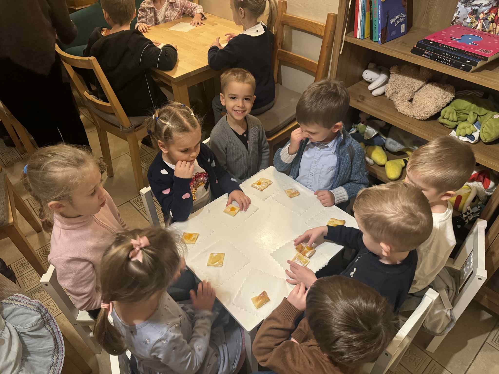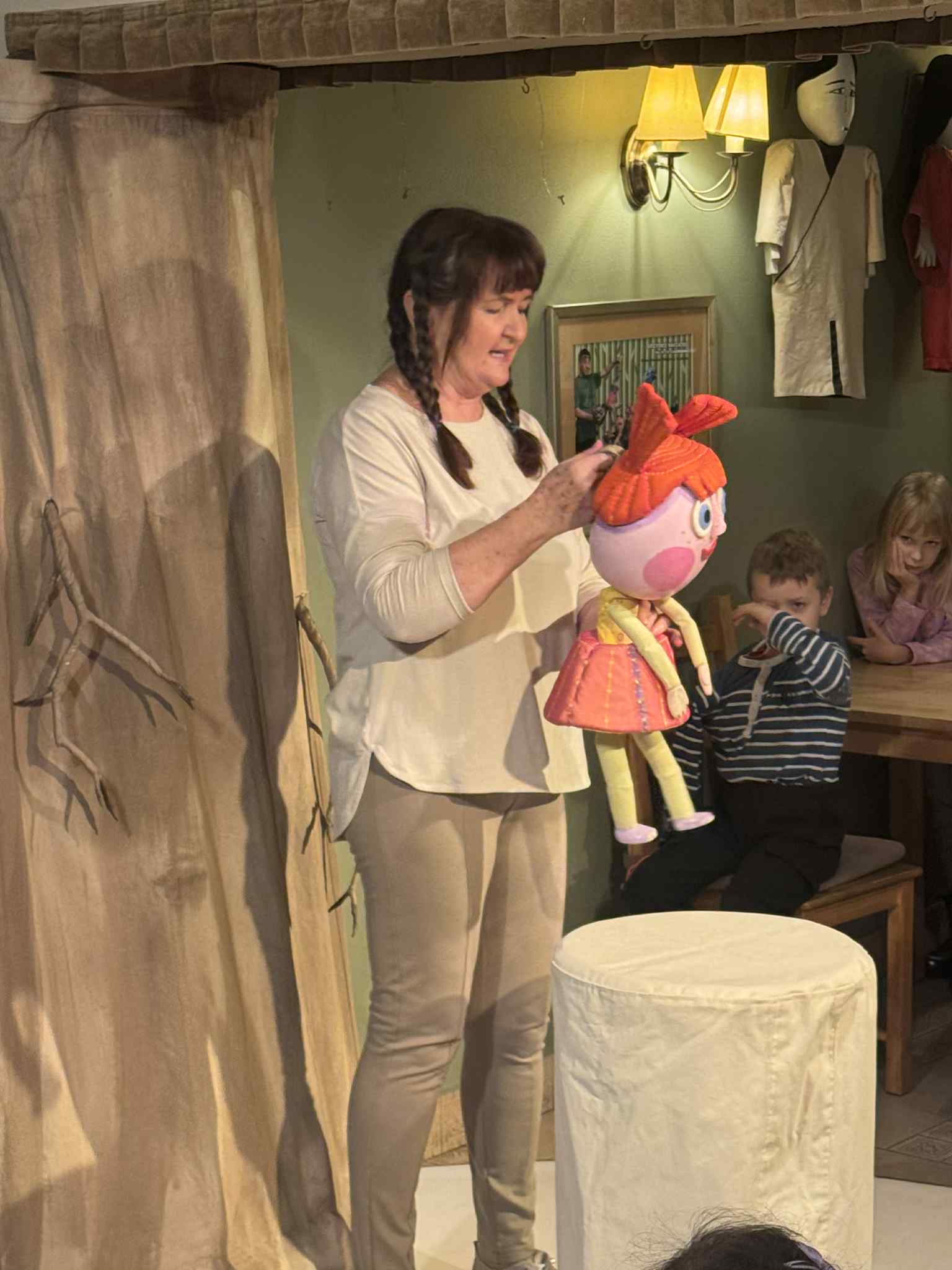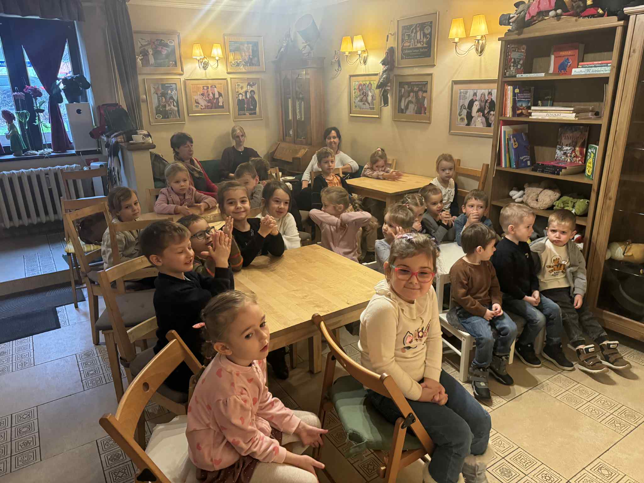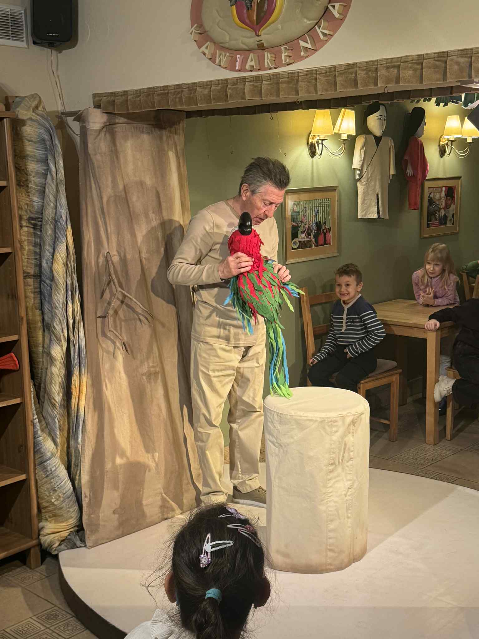 Dziś pojechaliśmy do Baśniowej Kawiarenki na przedstawienie "Magiczna kropla wody". Bajka poruszała bardzo ważną tematykę- zmian klimatycznych. Dodatkowo dzieci mogły zobaczyć różne rodzaje kukiełek, używanych podczas spektaklu. Dodatkowo zjadły domowe ciasteczko z brzoskwinią i wypiły soczek. Jak przystało na prawdziwą kawiarnię.