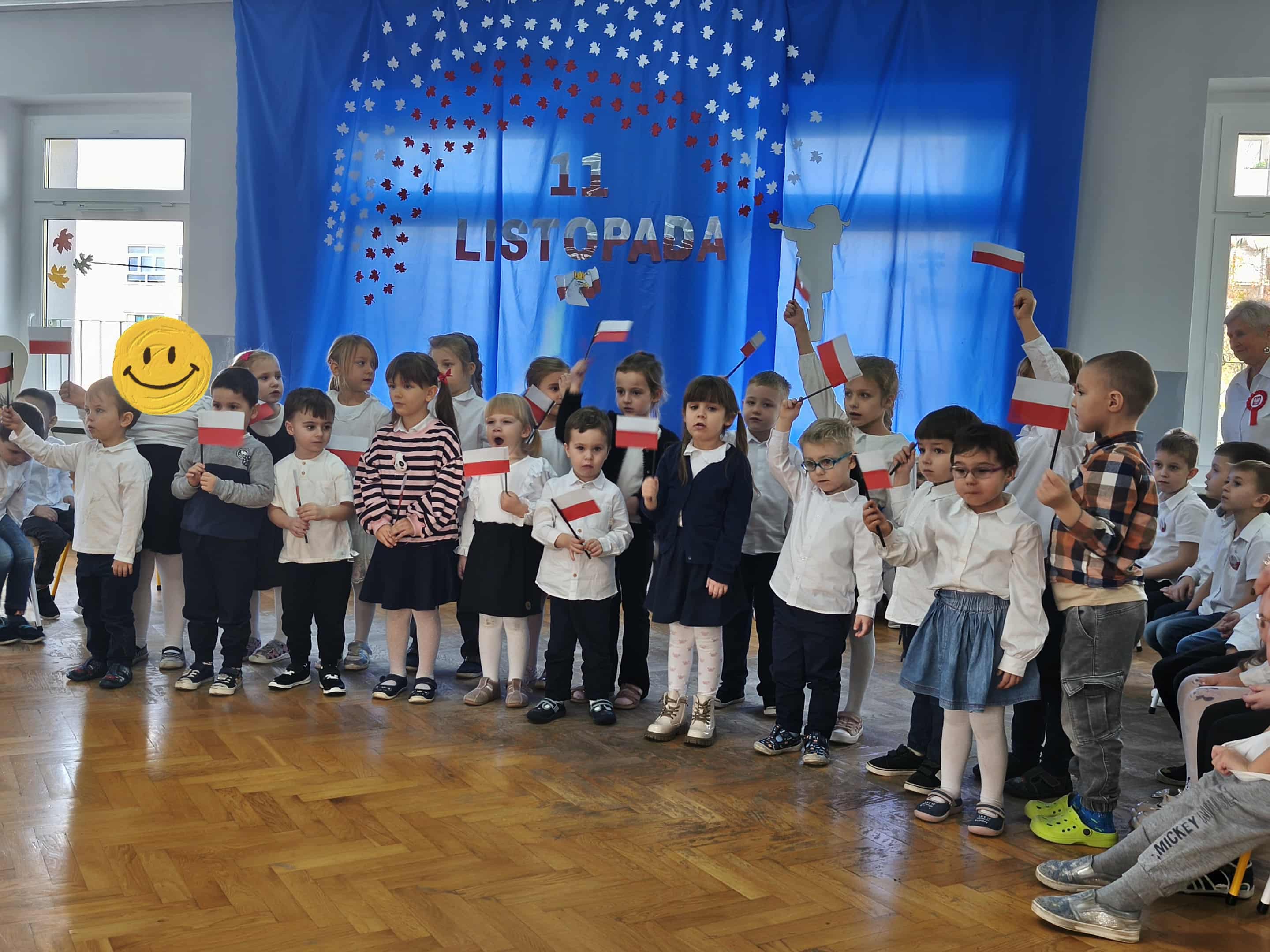 Dzisiejszego dnia po śniadaniu poszliśmy do Przedszkola Miejskiego Nr 131. Dzieci 5,6-letnie z goszczącego nas przedszkola przygotowały występ z okazji Święta 11 Listopada. Po obejrzeniu go mieliśmy możliwość wystąpienia przed innymi dziećmi śpiewając piosenkę "Polska, Polska biało-czerwona". Otrzymaliśmy gromkie brawa od dzieci z Przedszkola Miejskiego Nr 131, od dzieci ze SP Nr 38 oraz wszystkich uczestników.