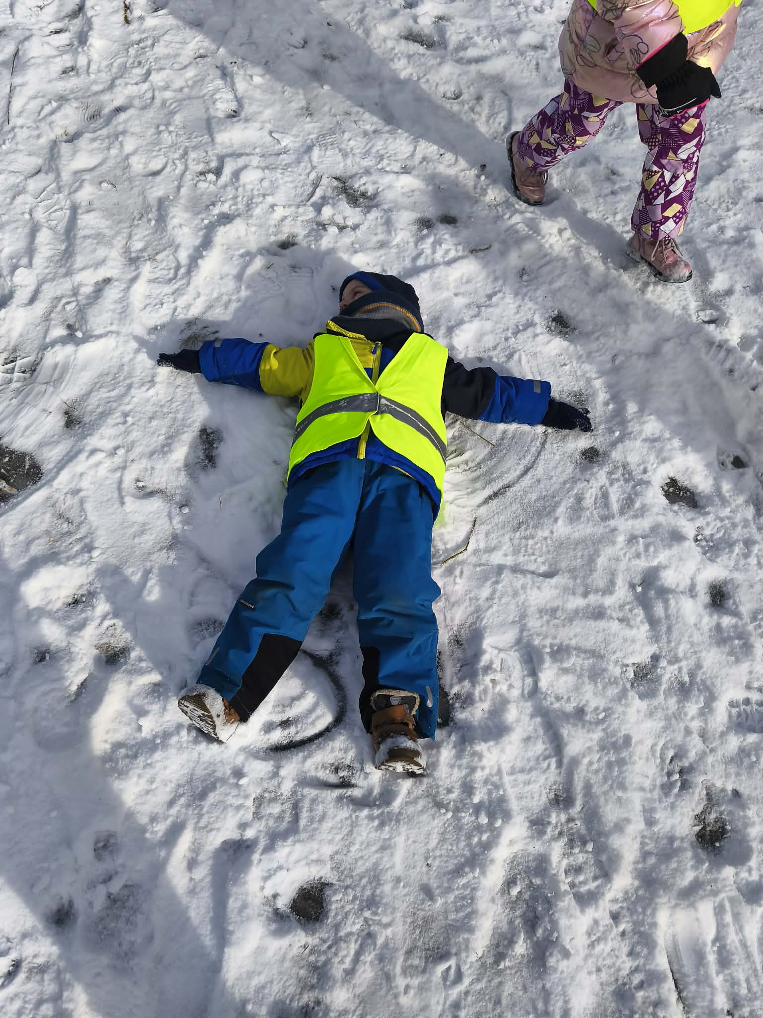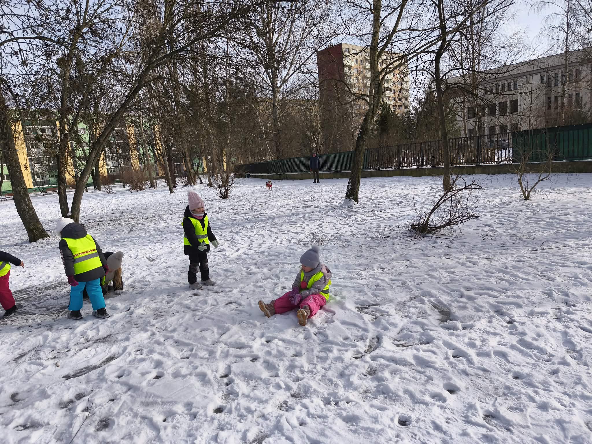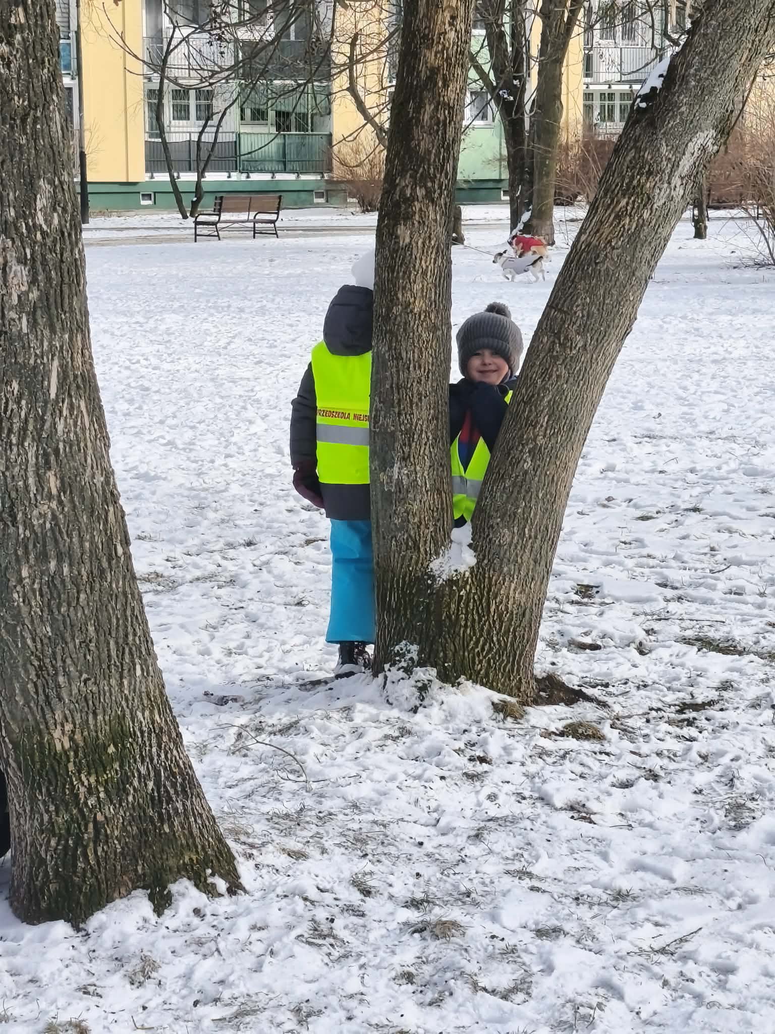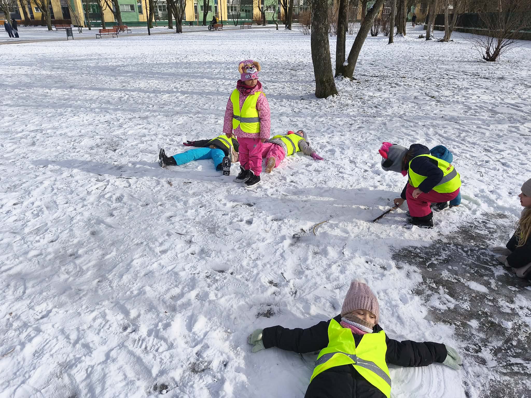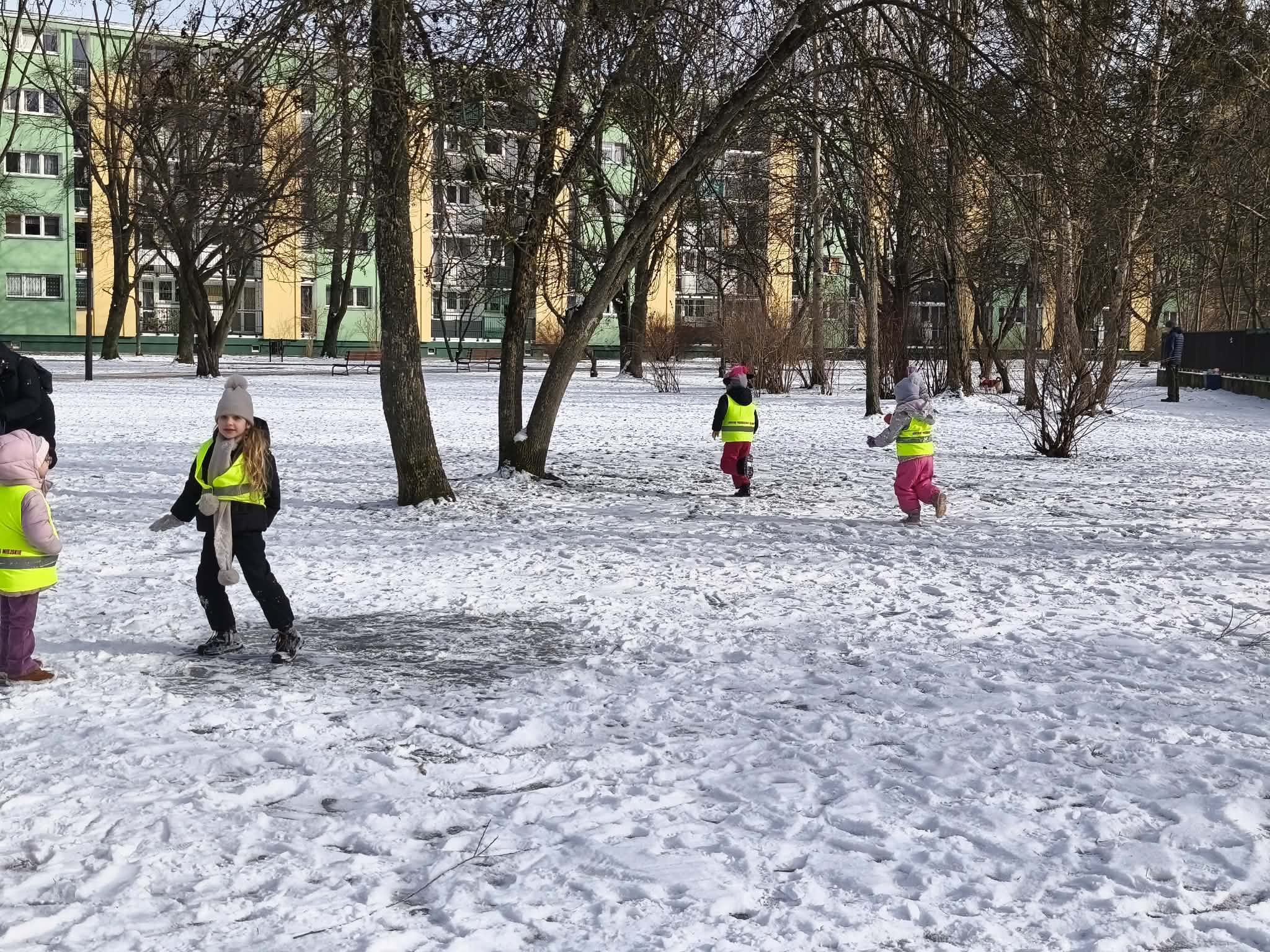 W piątek dzieci wybrały się na zimowy spacer na pobliski Skwer Św. Maksymiliana Kolbego. Leżący śnieg na trawie stał się idealnym placem zabaw – dzieci z radością rzucały się śnieżkami i „czarowały” na ziemi śnieżne aniołki. Poza beztroską zabawą był to też czas ważnych obserwacji przyrodniczych. Małym odkrywcom udało się wypatrzeć na drzewie opuszczone gniazdo oraz gęste kępy zielonej jemioły, która pięknie wyróżniała się na tle zimowego krajobrazu. Pełni wrażeń i rześkiego powietrza wróciliśmy do przedszkola z uśmiechami na twarzach.